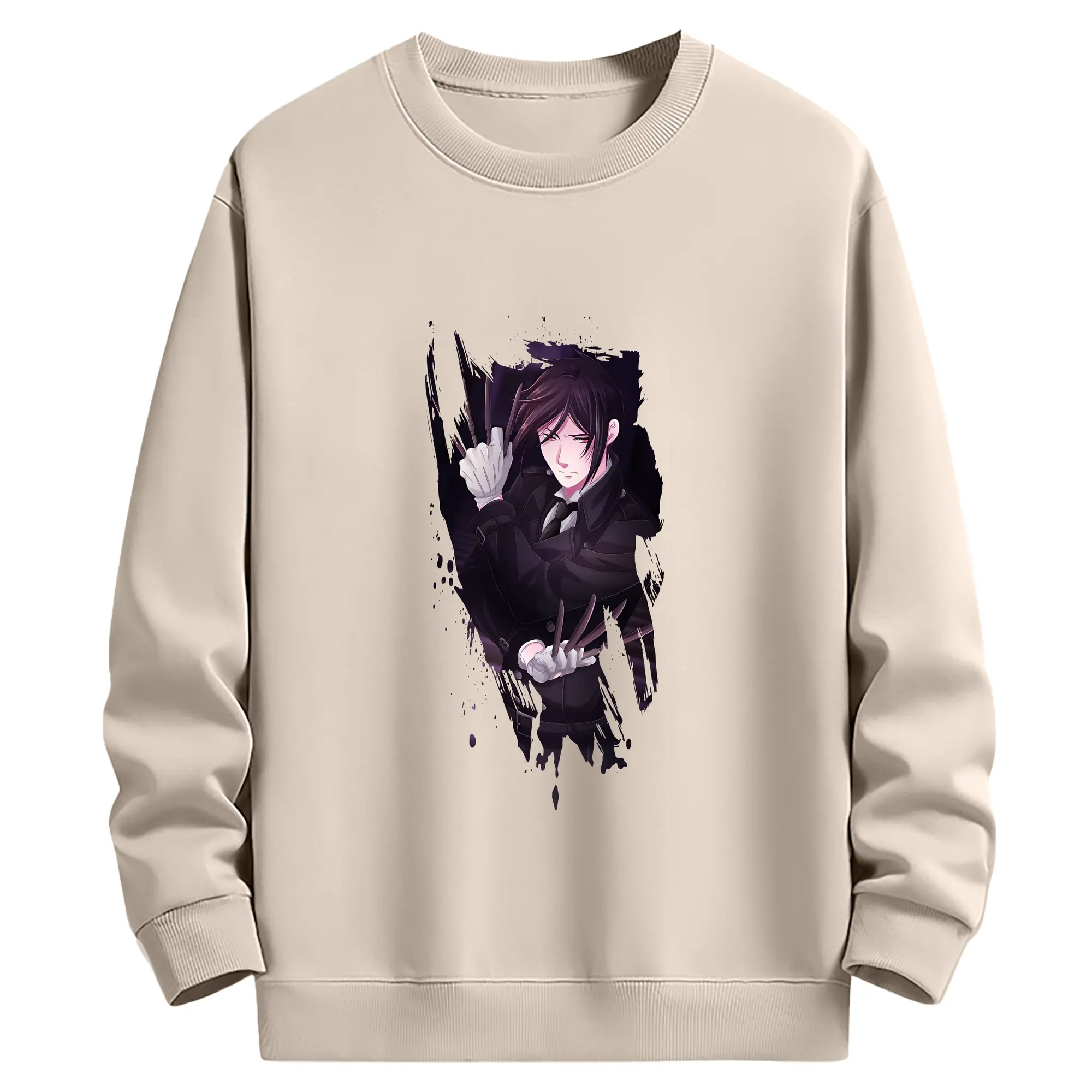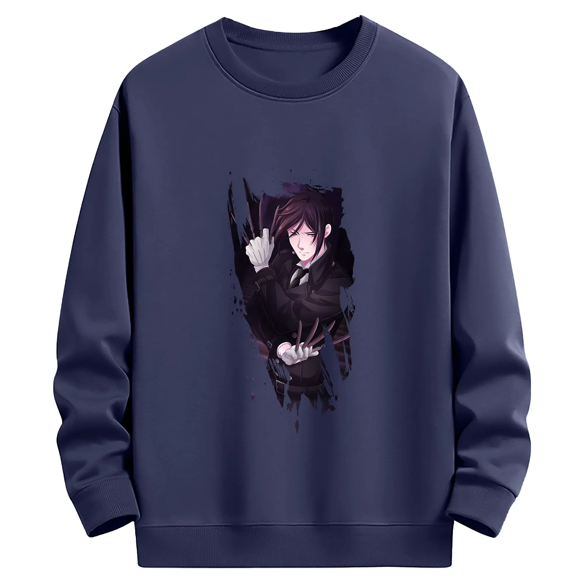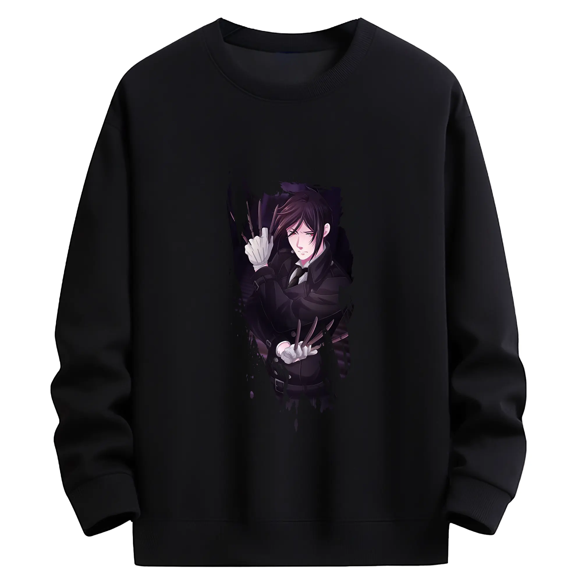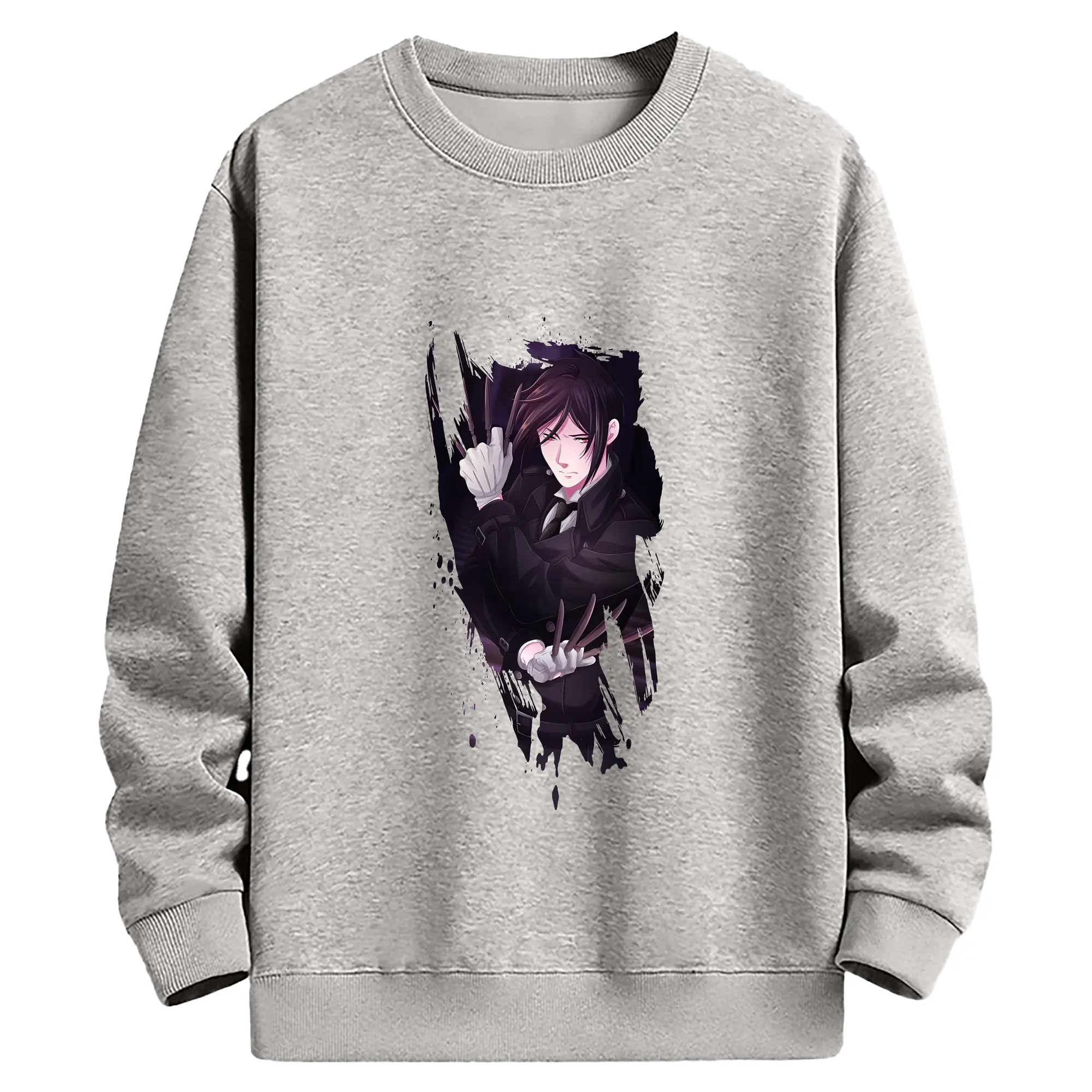 黒執事 グッズ,セバスチャン・ミカエリス - 薄手 クルーネック スウェット 裏毛260g · ポリエステル 春秋向け カジュアル 男女兼用 · トレーナー デイリー スポーツ 散歩に最適