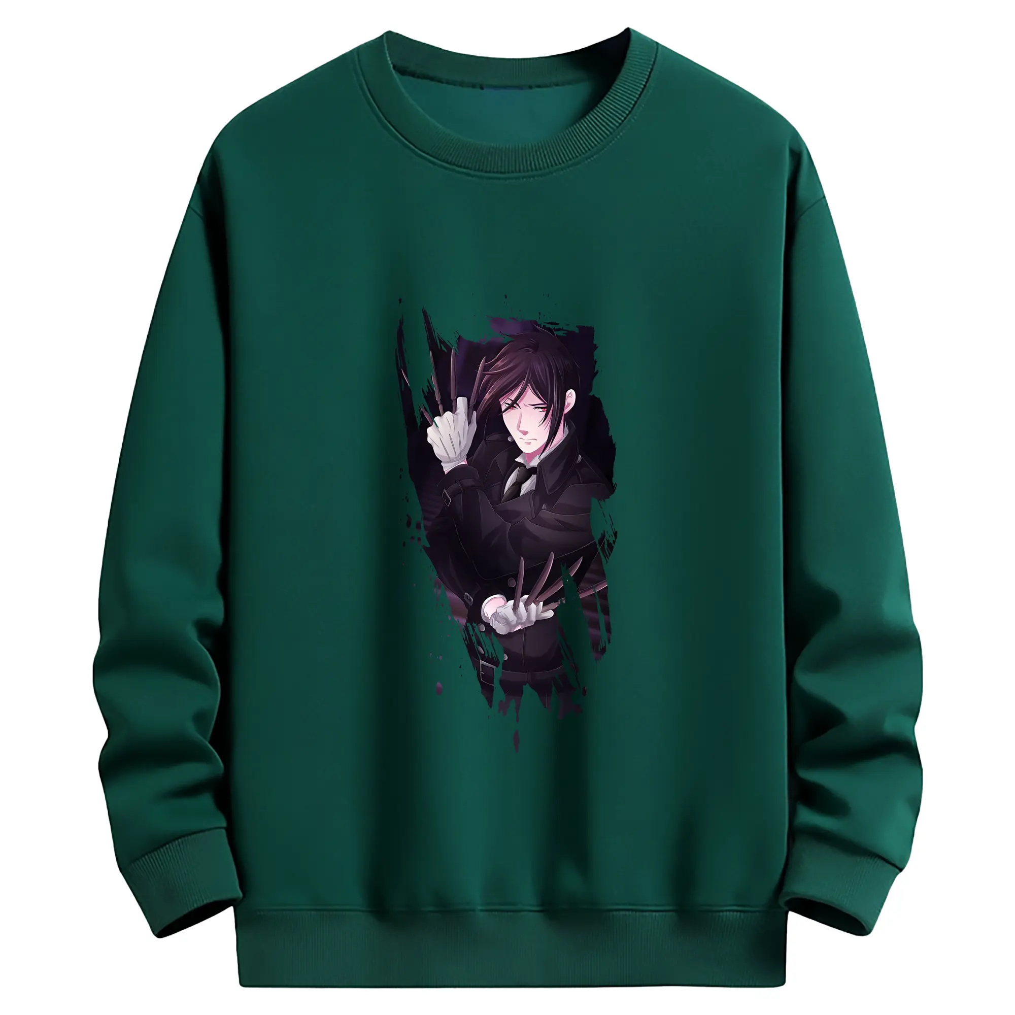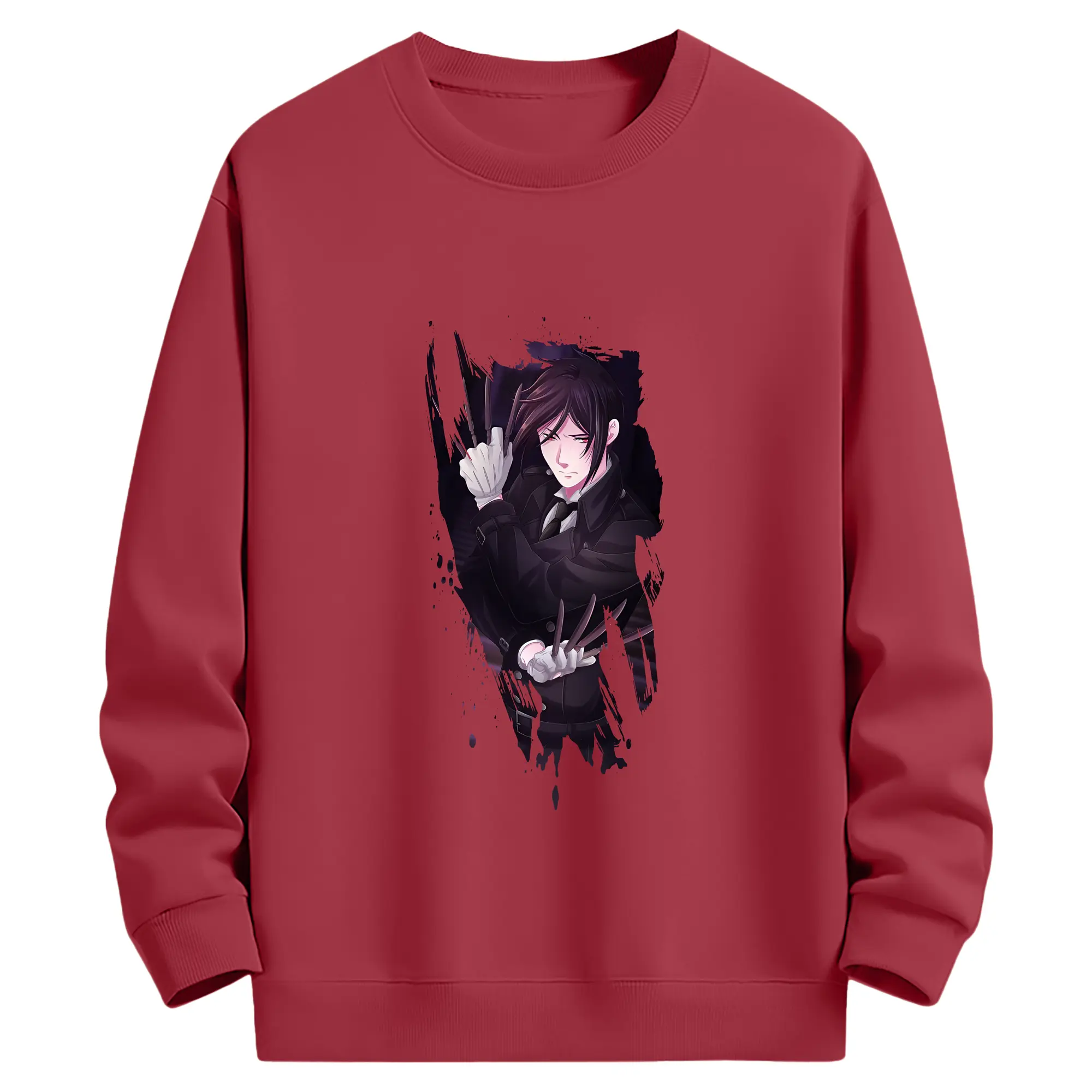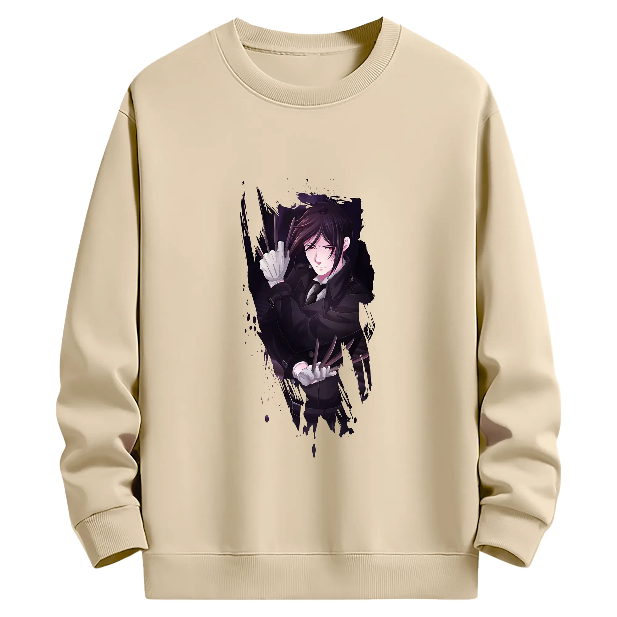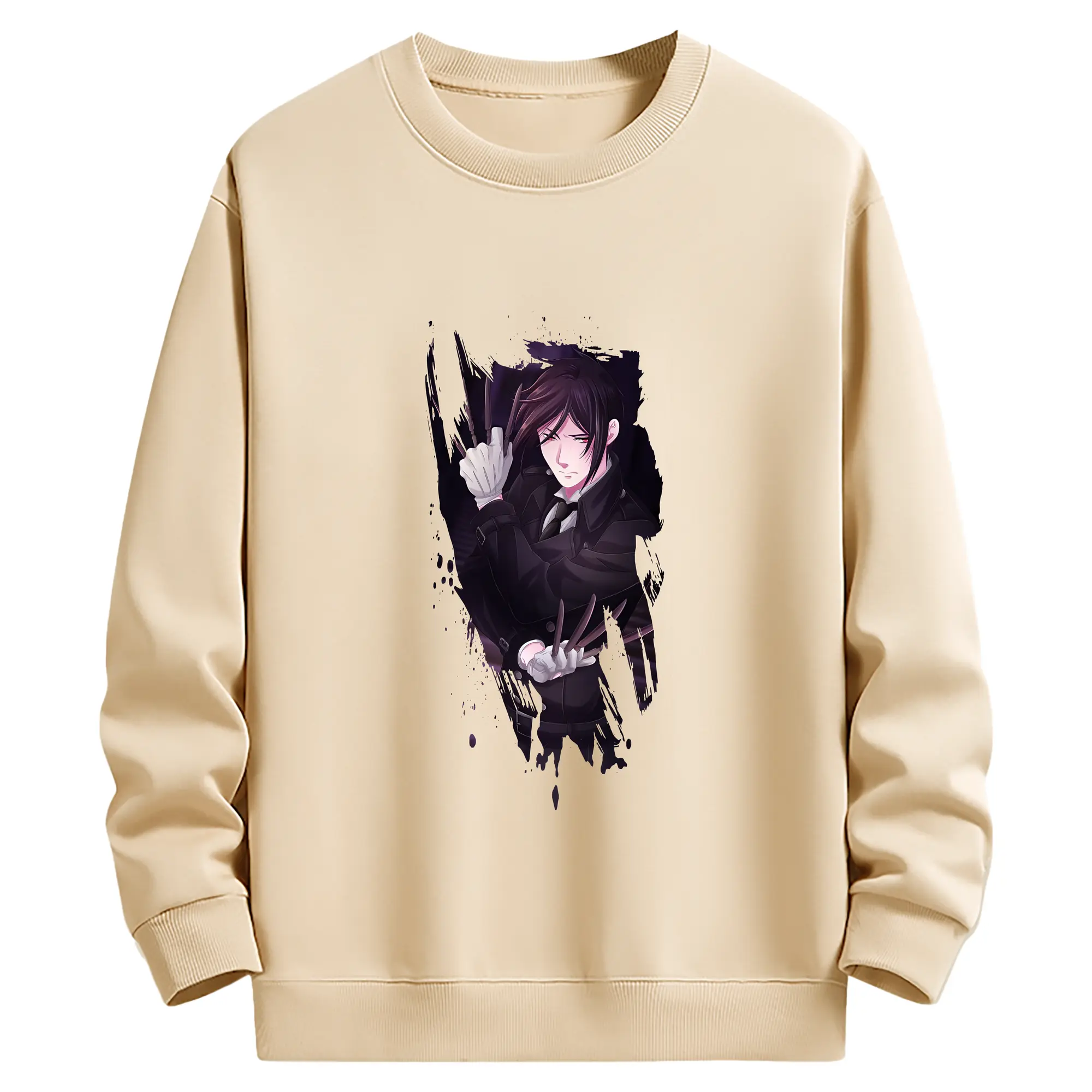 黒執事 グッズ,セバスチャン・ミカエリス - 薄手 クルーネック スウェット 裏毛260g · ポリエステル 春秋向け カジュアル 男女兼用 · トレーナー デイリー スポーツ 散歩に最適