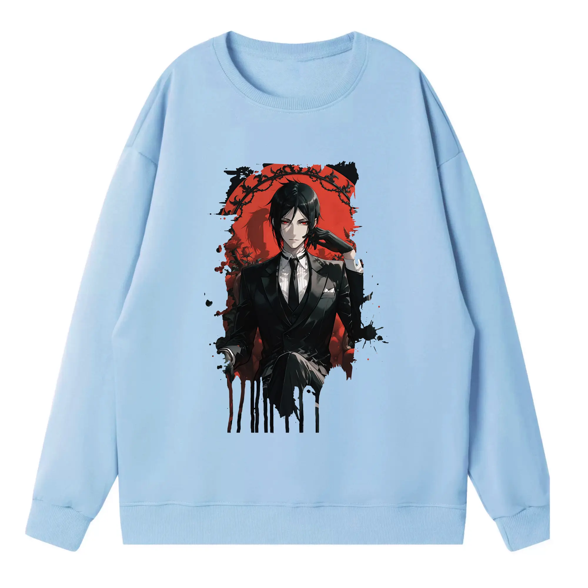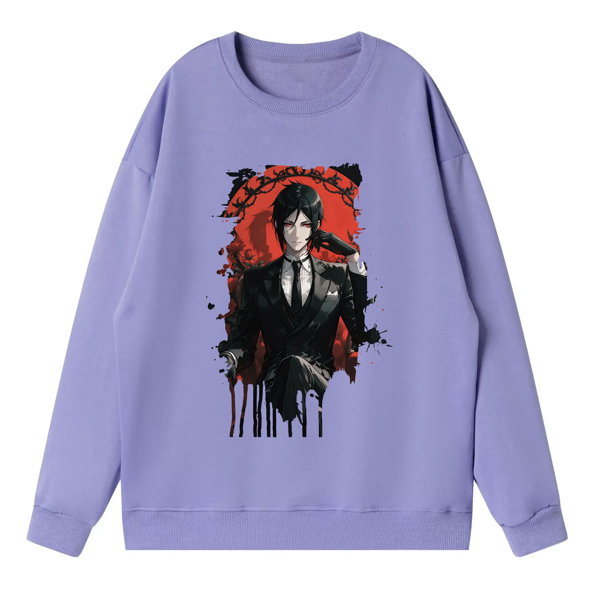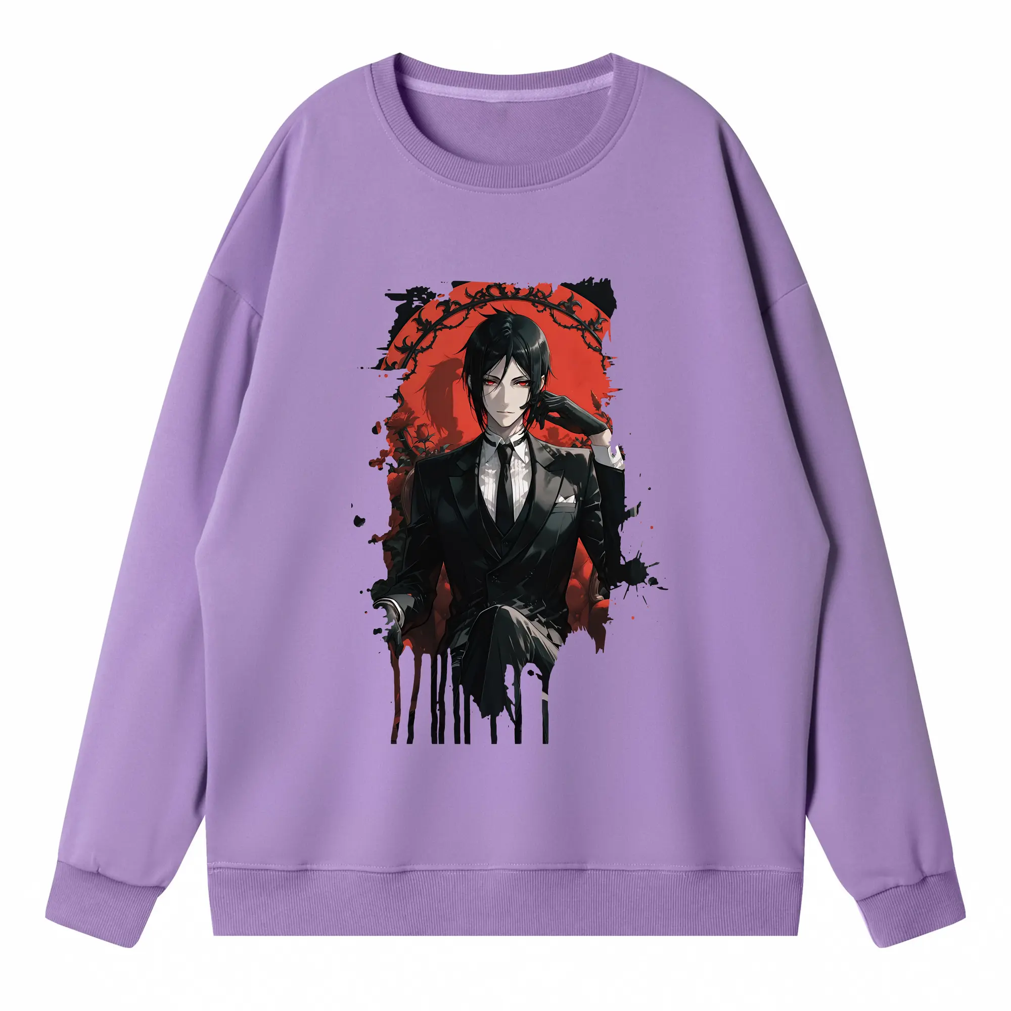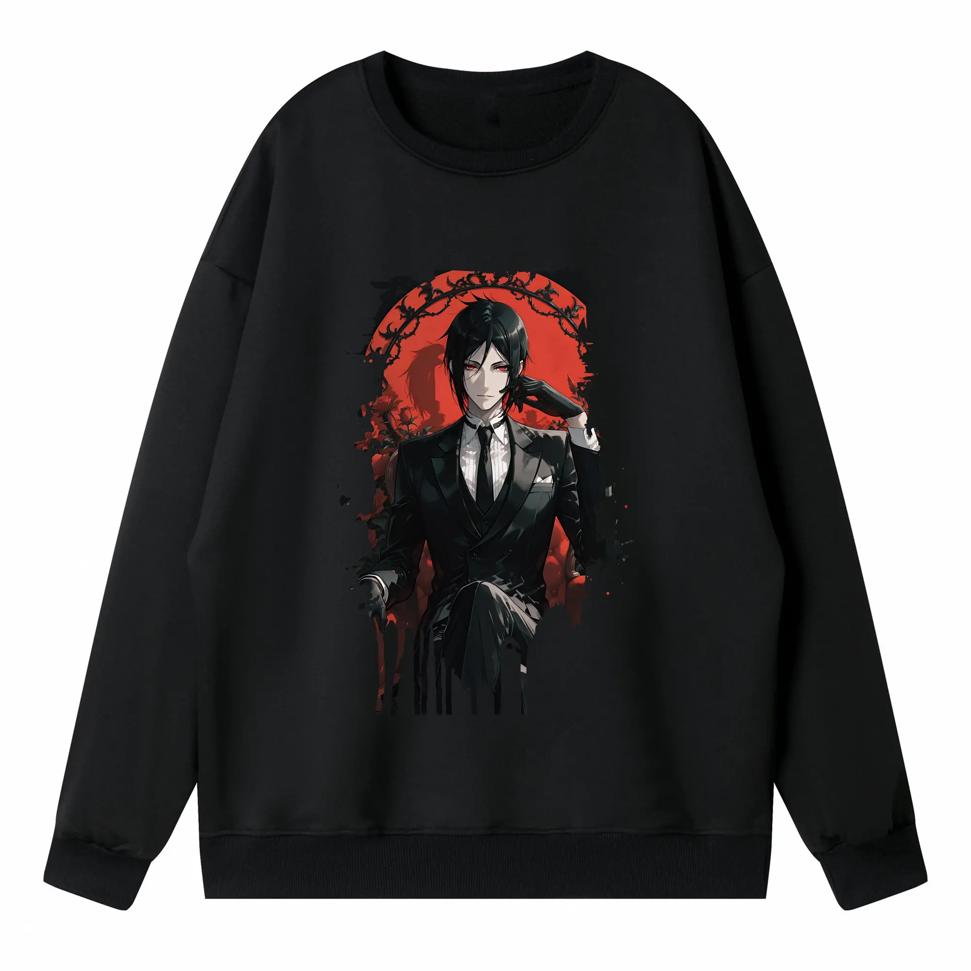 黒執事 グッズ,セバスチャン・ミカエリス - 薄手 クルーネック スウェット 裏毛260g · ポリエステル 春秋向け カジュアル 男女兼用 · トレーナー デイリー スポーツ 散歩に最適