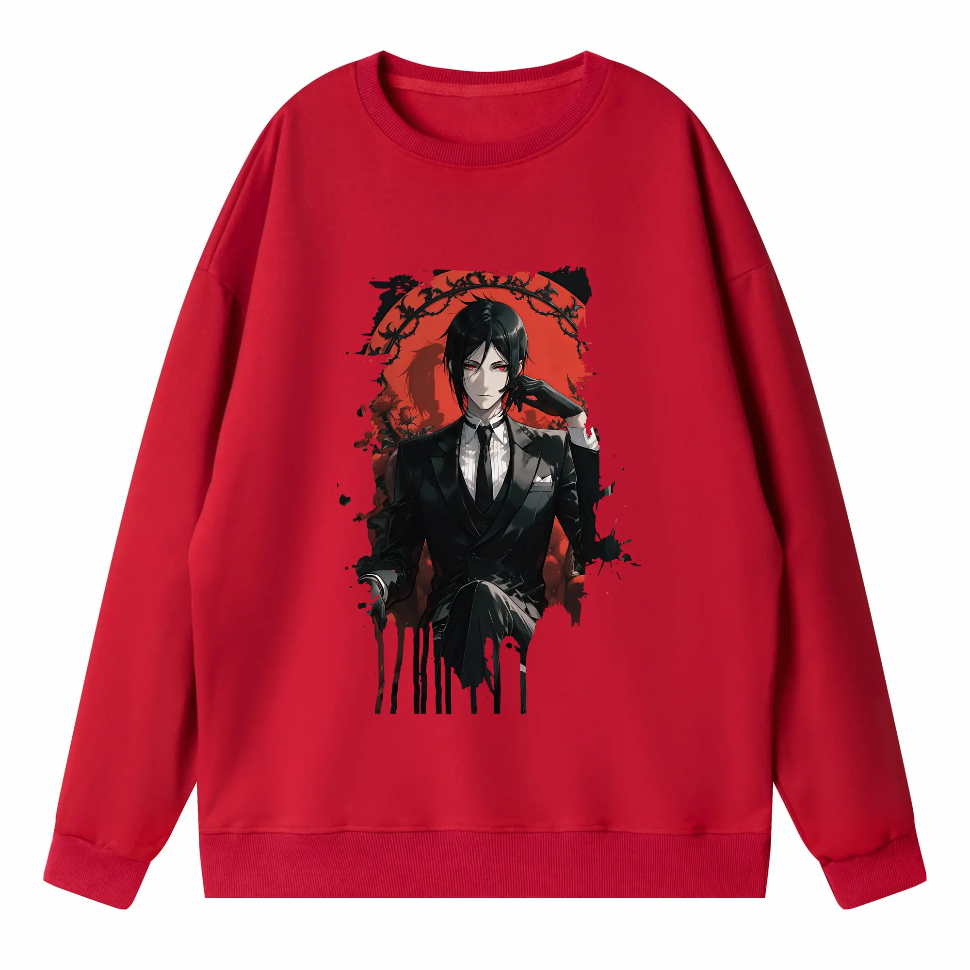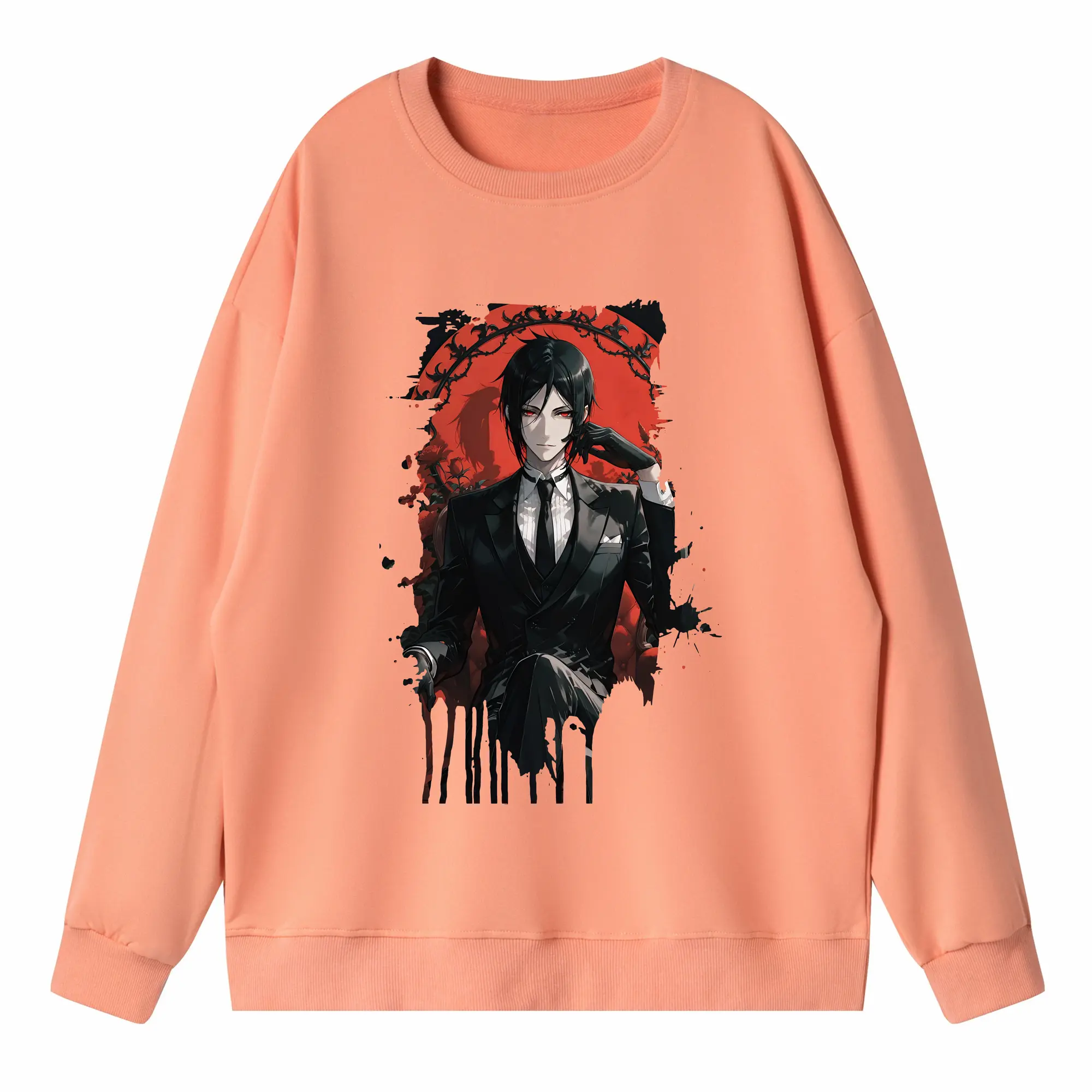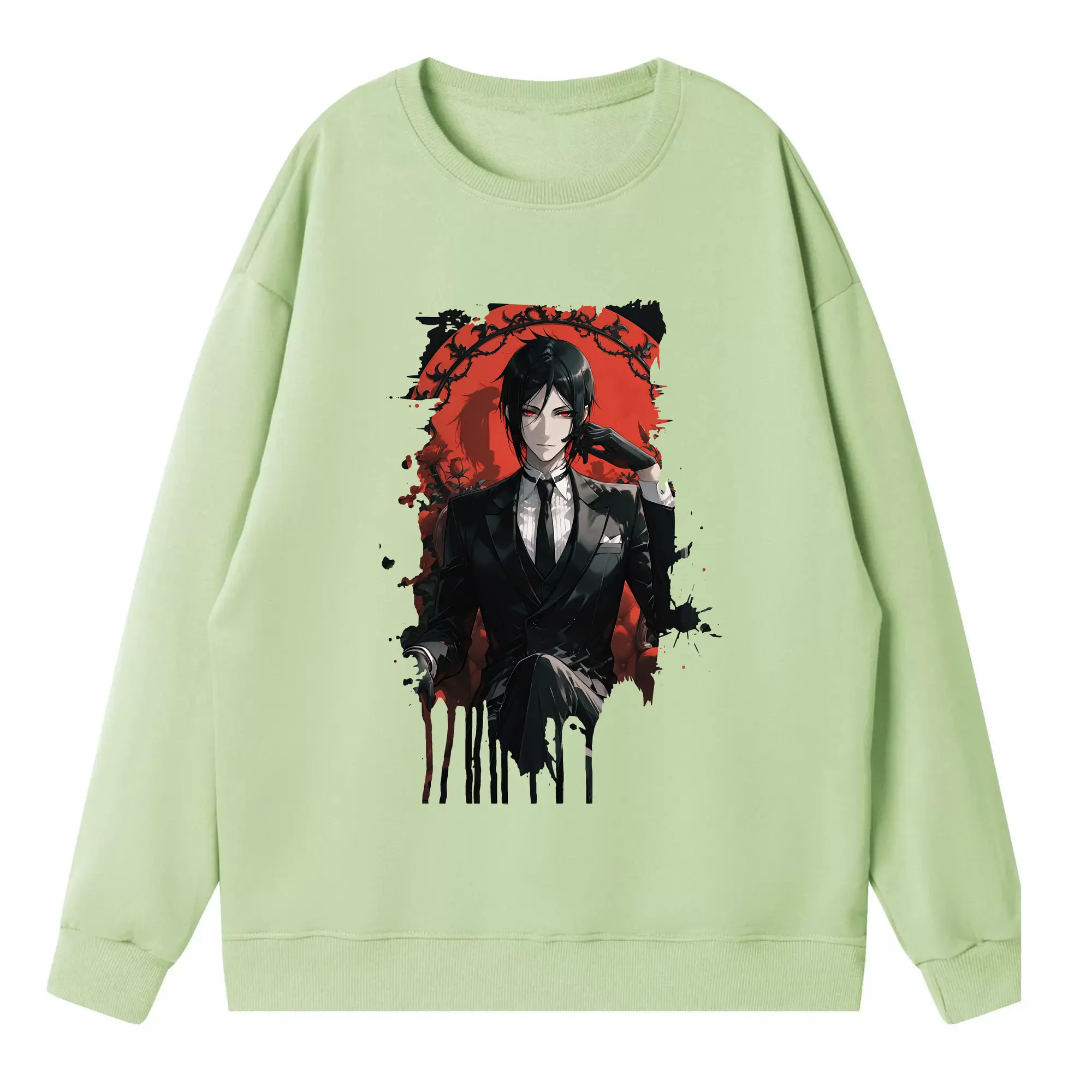 黒執事 グッズ,セバスチャン・ミカエリス - 薄手 クルーネック スウェット 裏毛260g · ポリエステル 春秋向け カジュアル 男女兼用 · トレーナー デイリー スポーツ 散歩に最適
