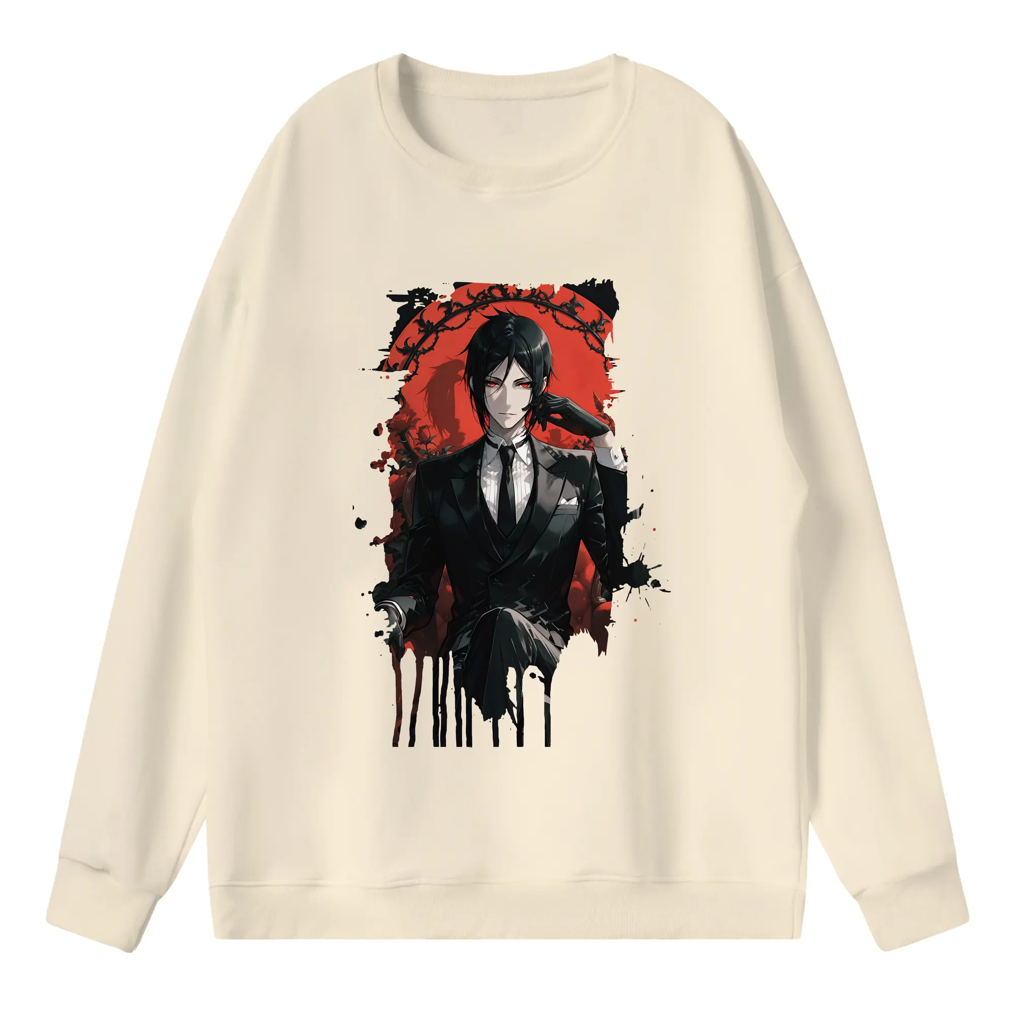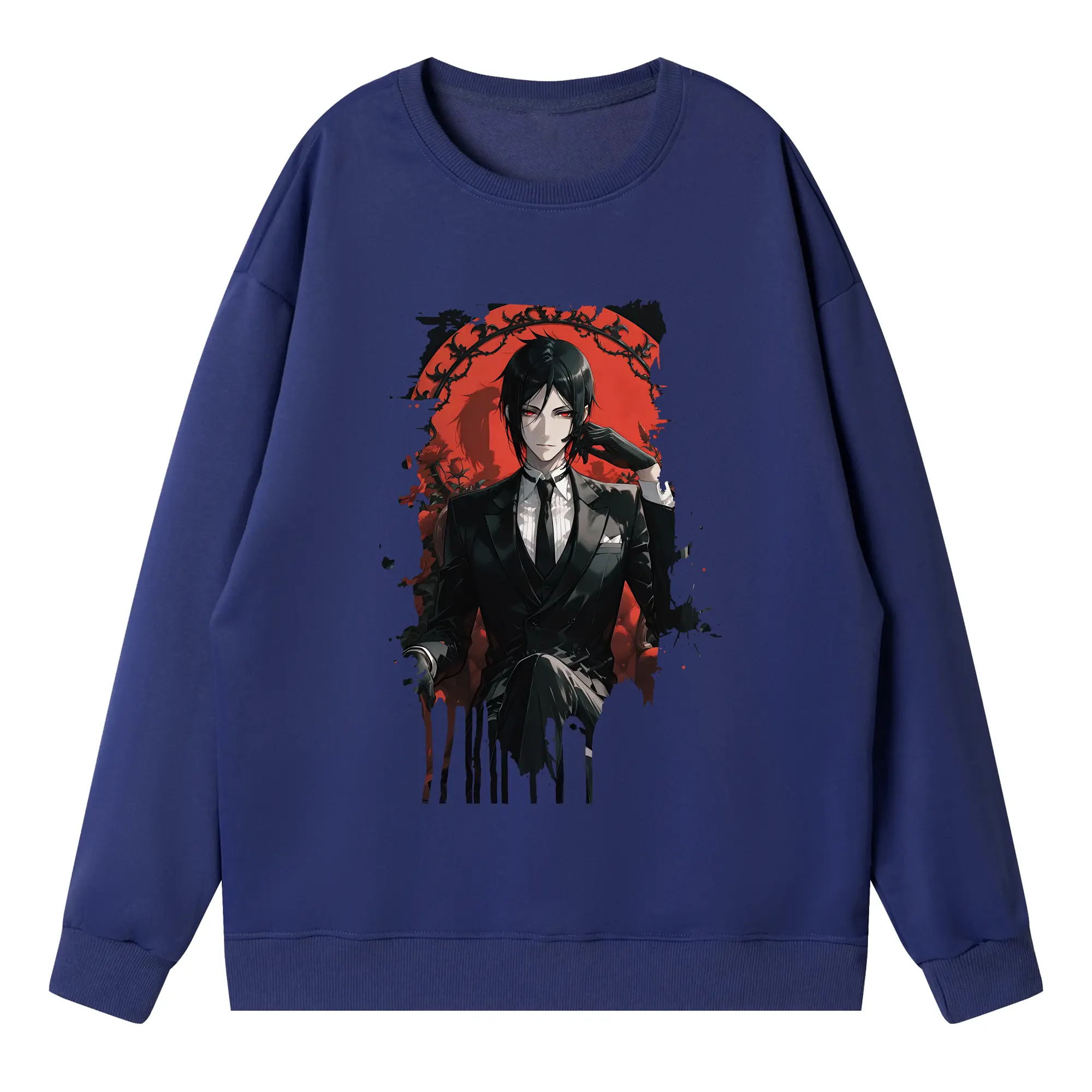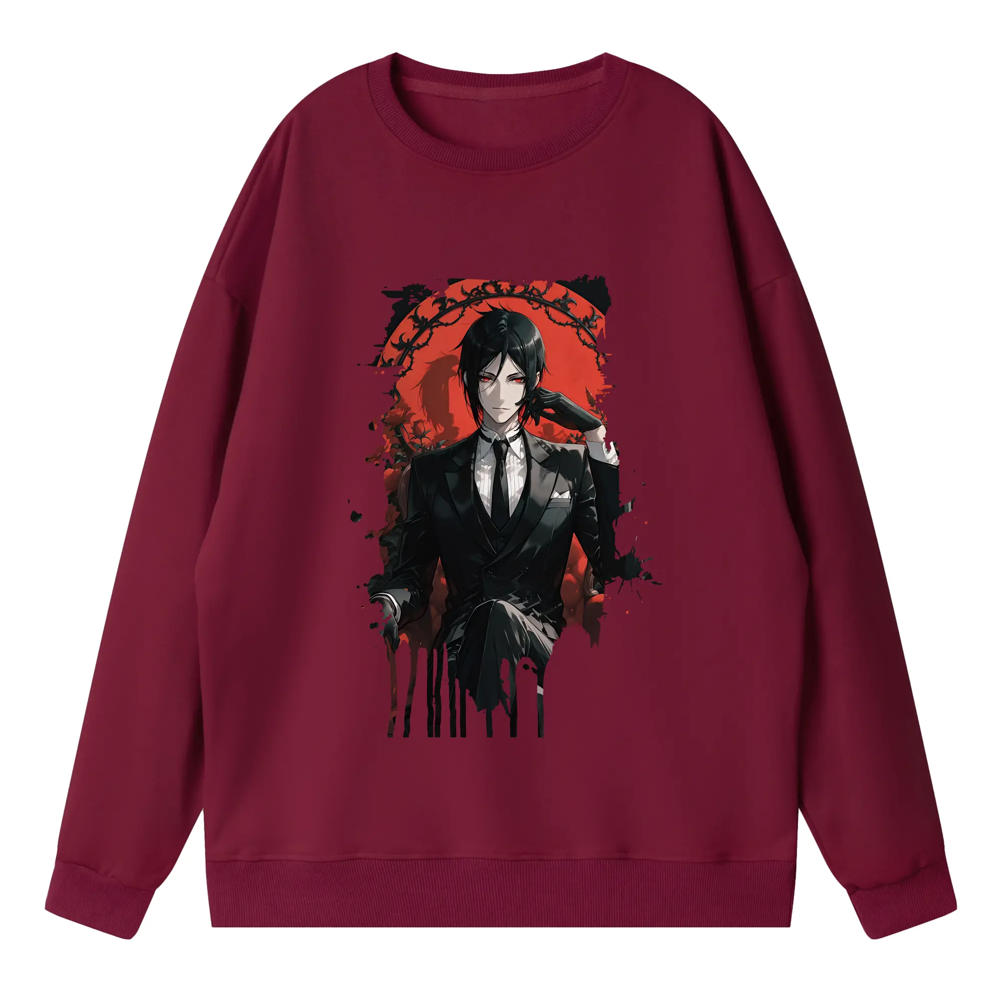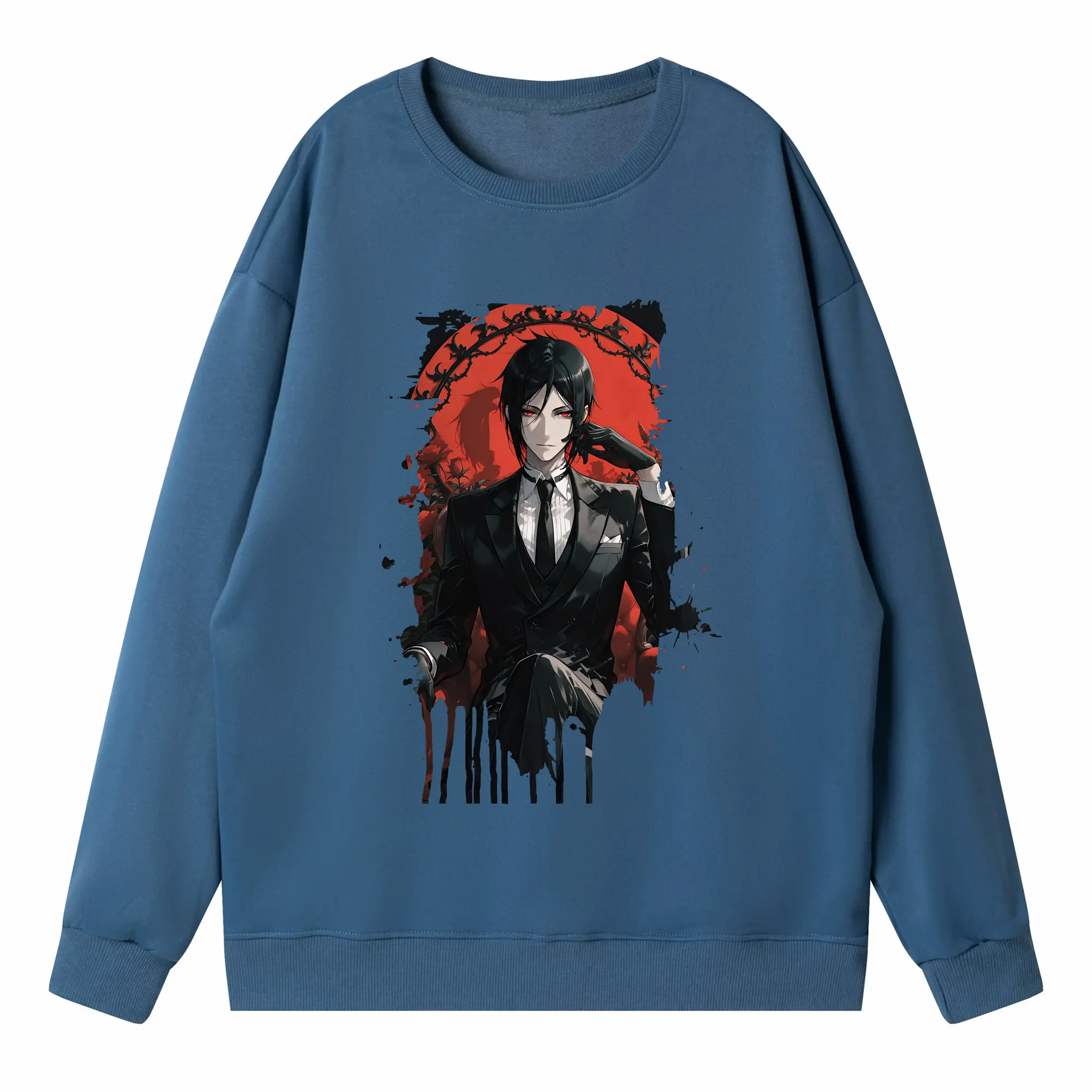 黒執事 グッズ,セバスチャン・ミカエリス - 薄手 クルーネック スウェット 裏毛260g · ポリエステル 春秋向け カジュアル 男女兼用 · トレーナー デイリー スポーツ 散歩に最適