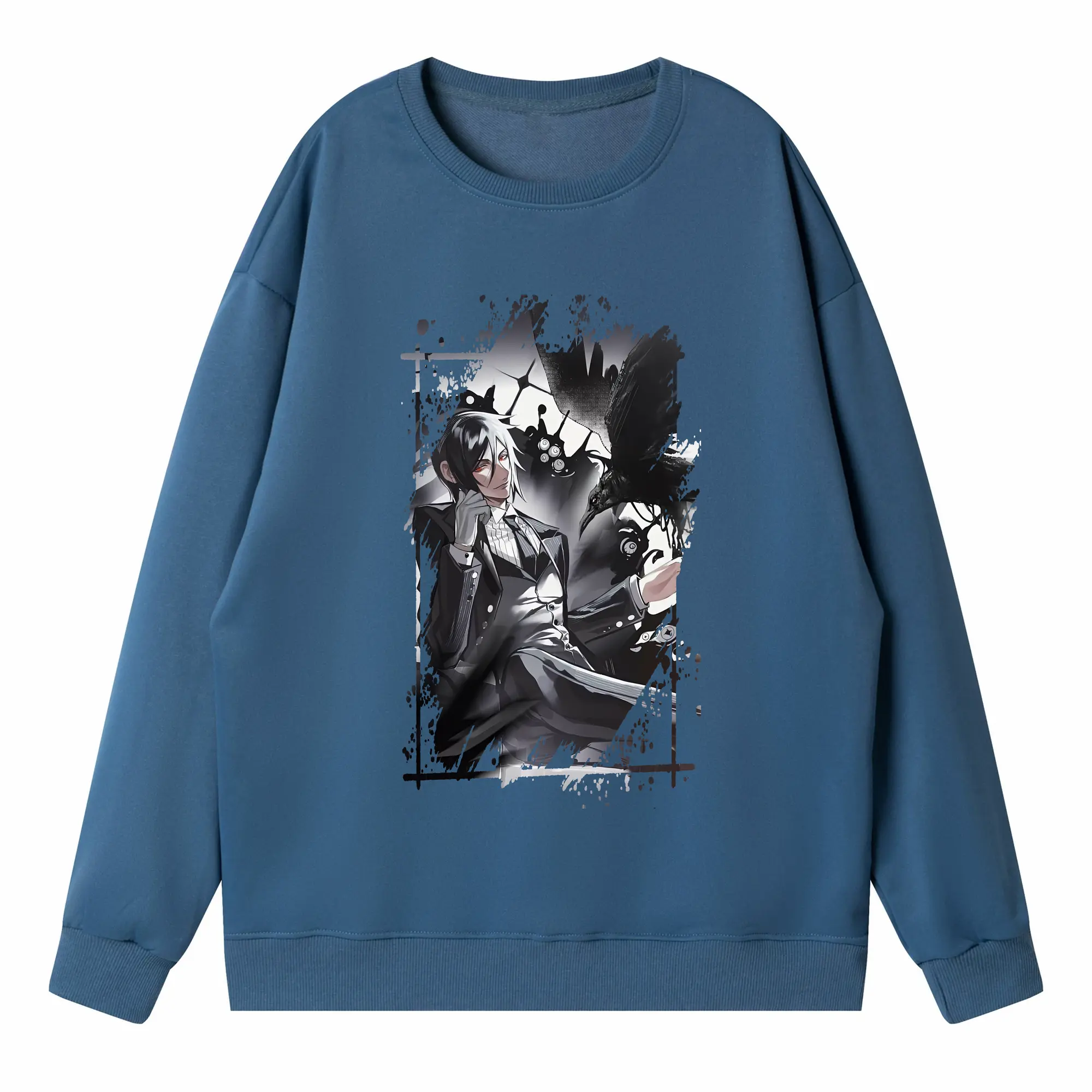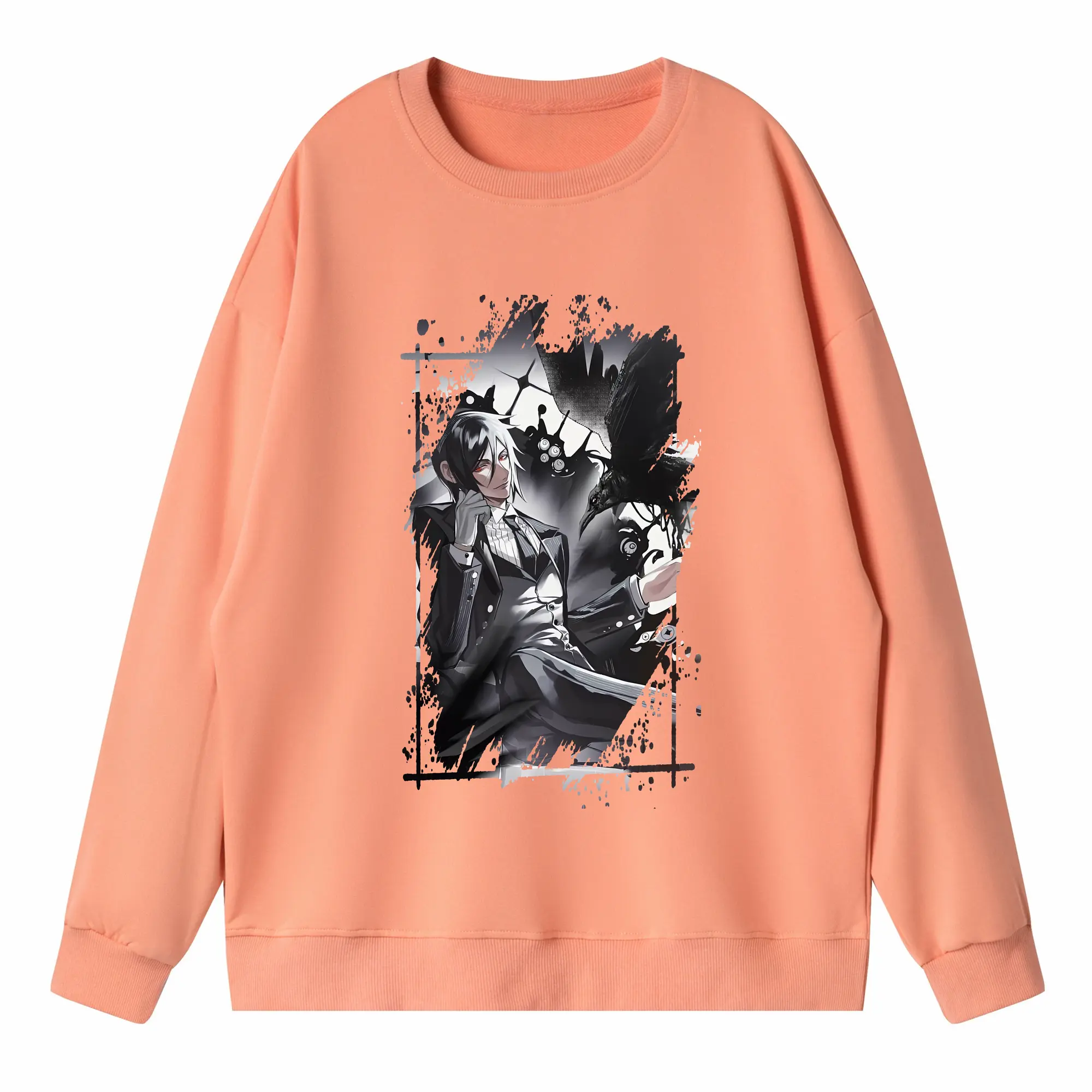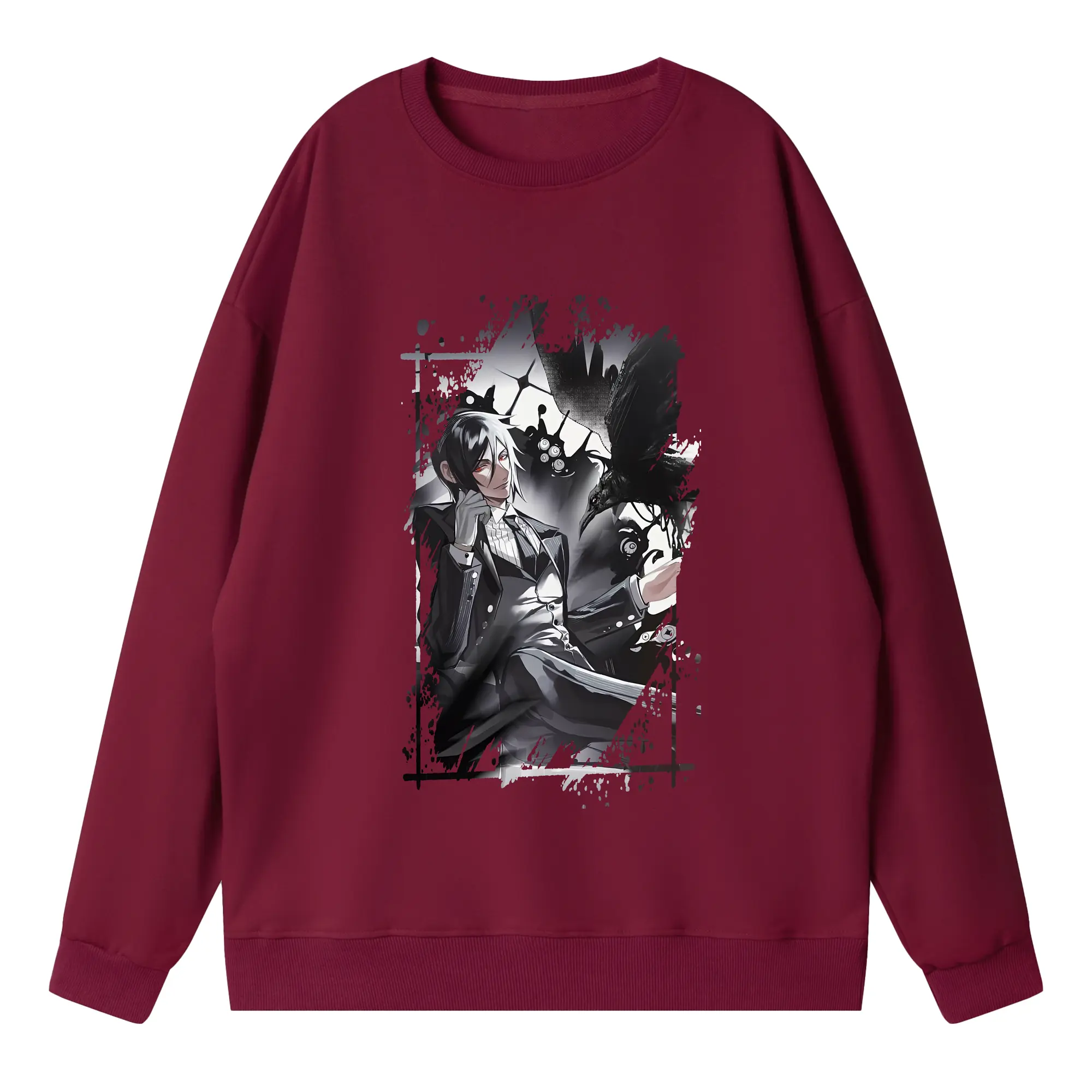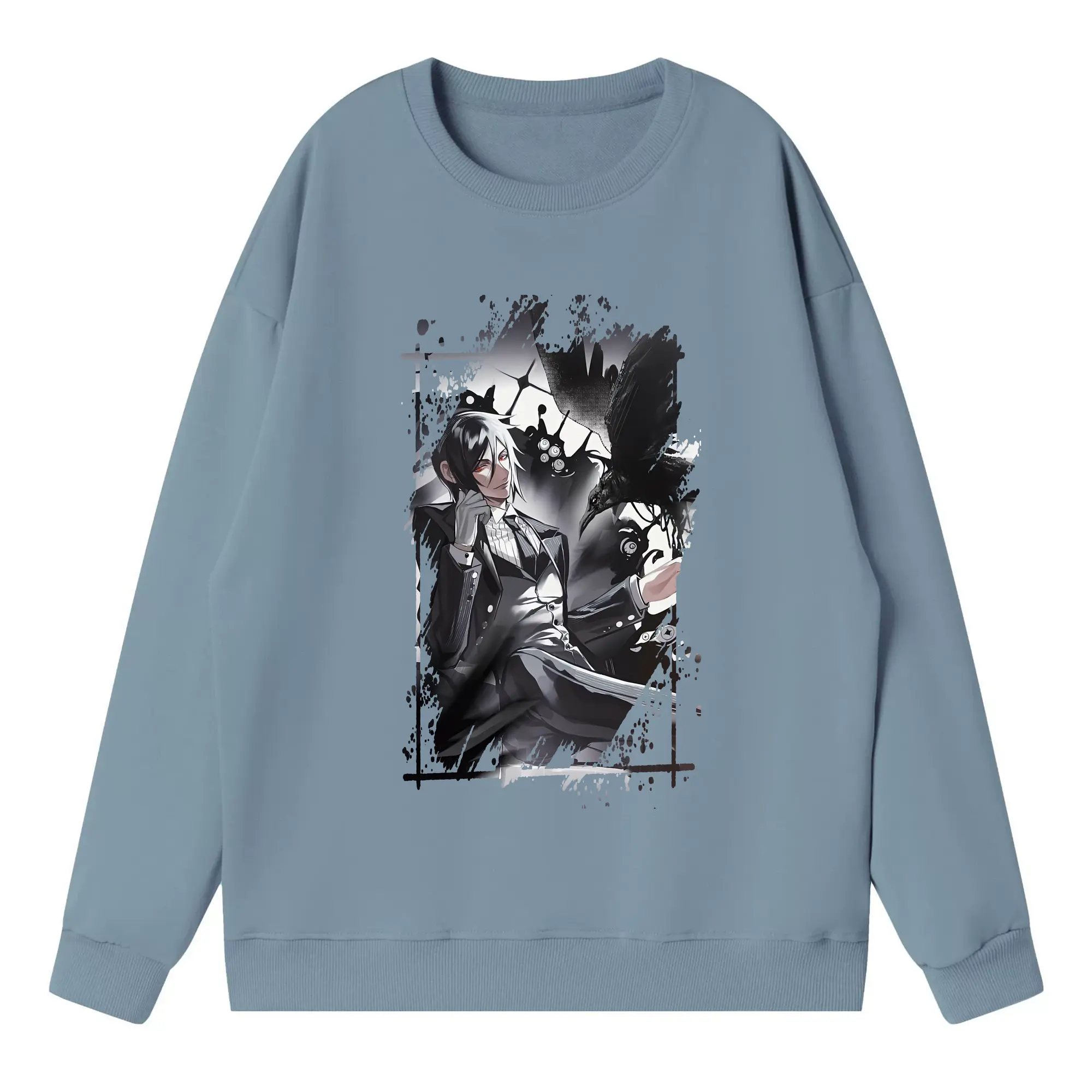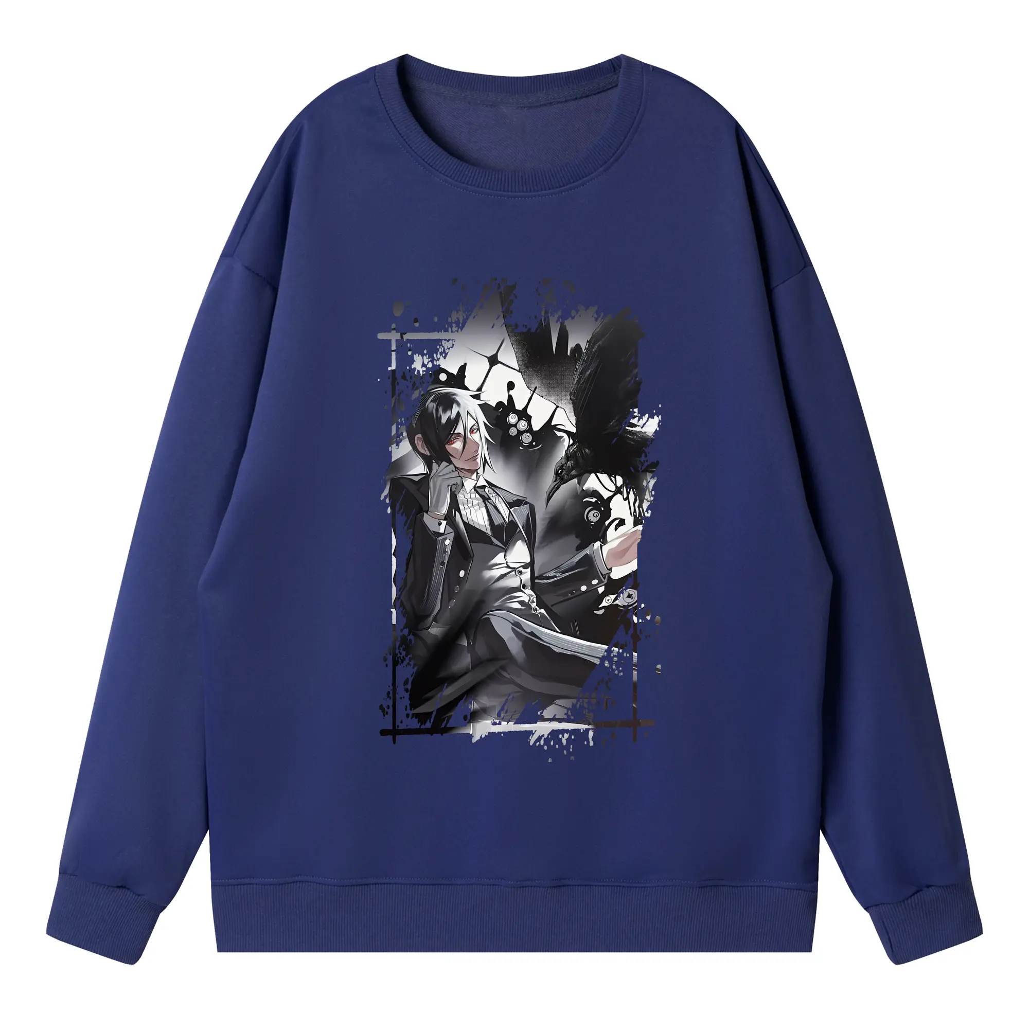 黒執事 グッズ,セバスチャン・ミカエリス - 高品質 クルーネック スウェット ・ コットン59% ポリエステル41% ・ ユニセックス 長袖 トレーナー ・ カジュアル デイリー スポーツ 散歩用