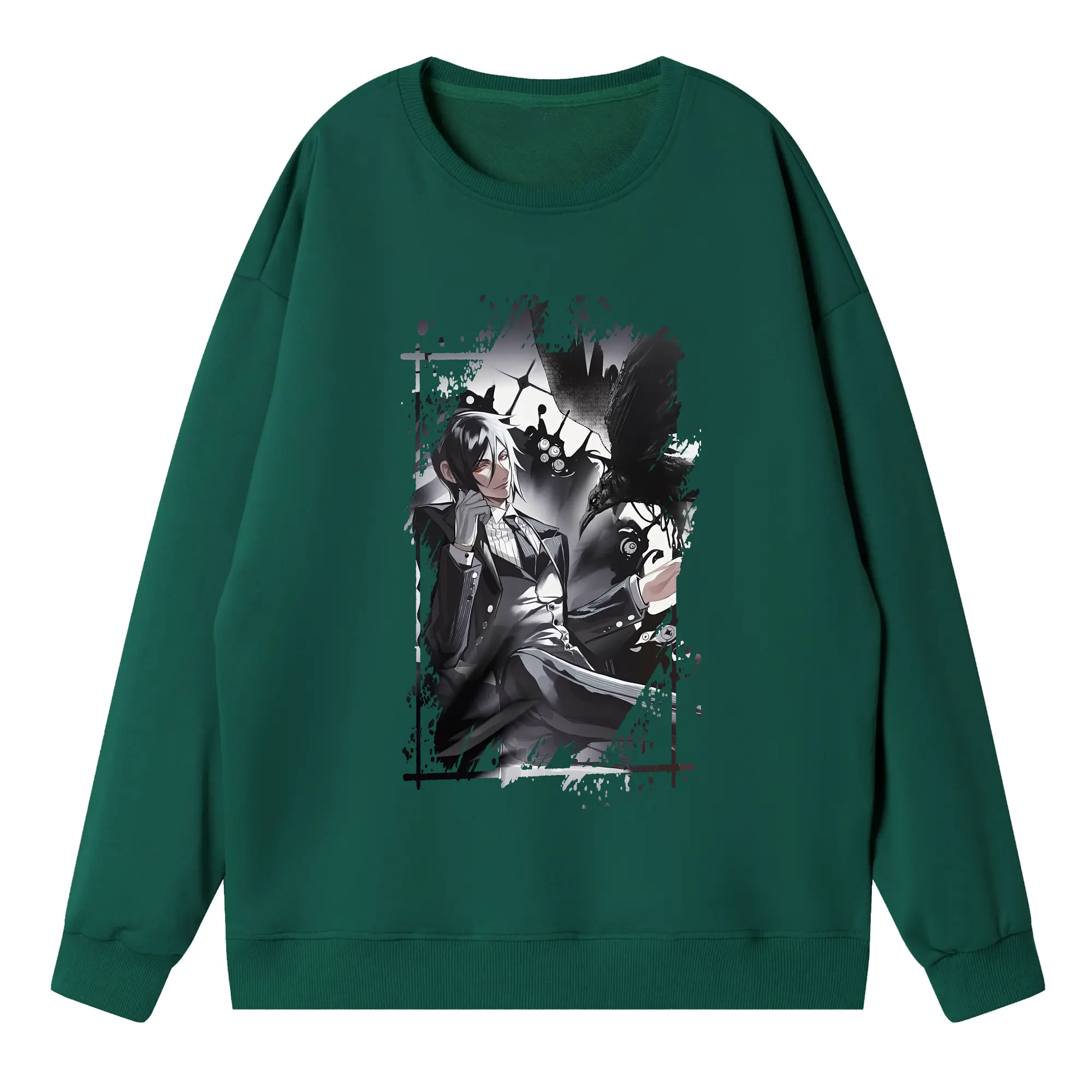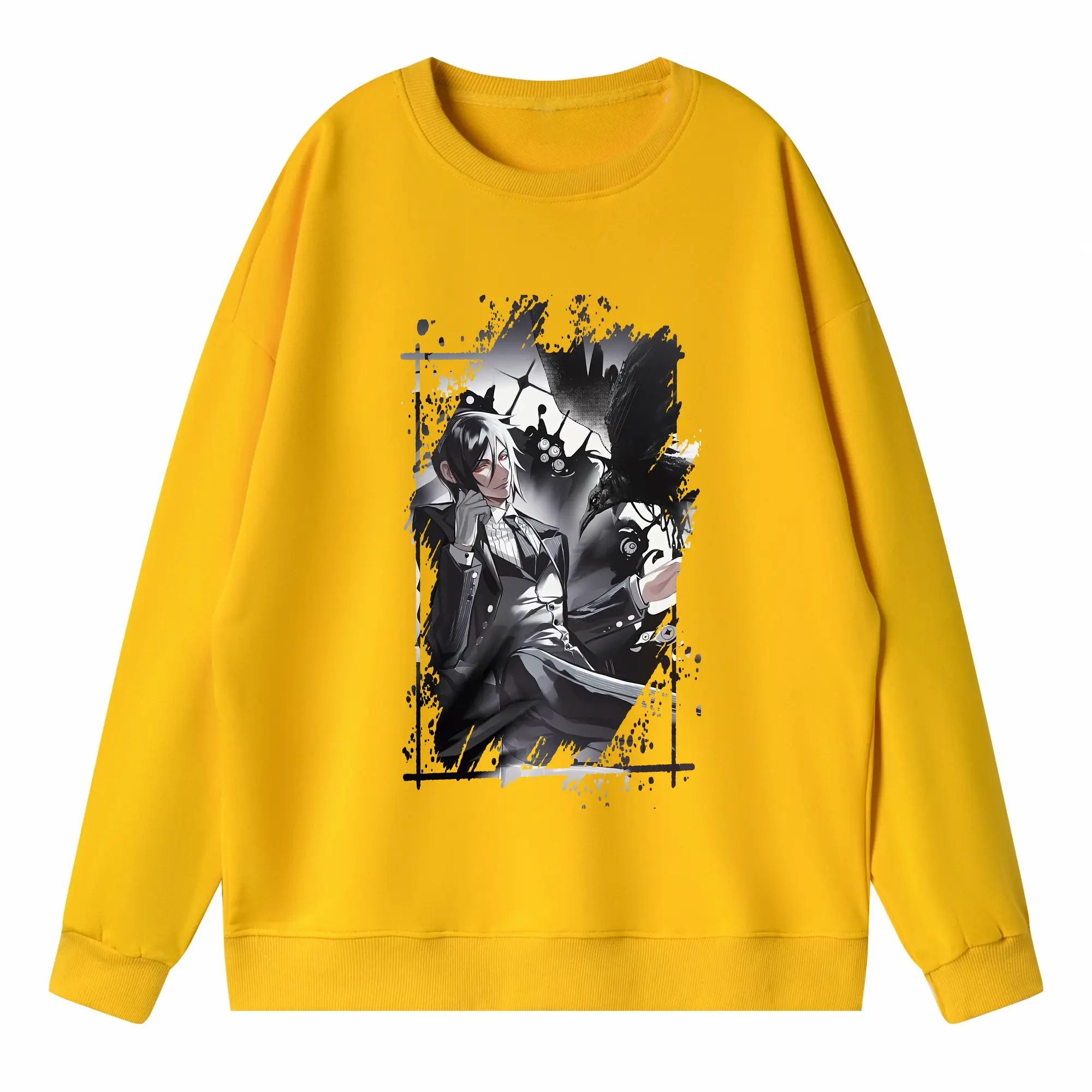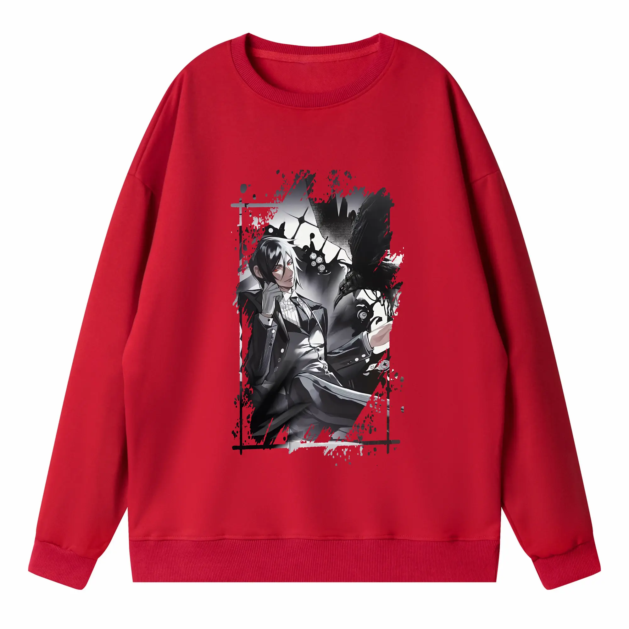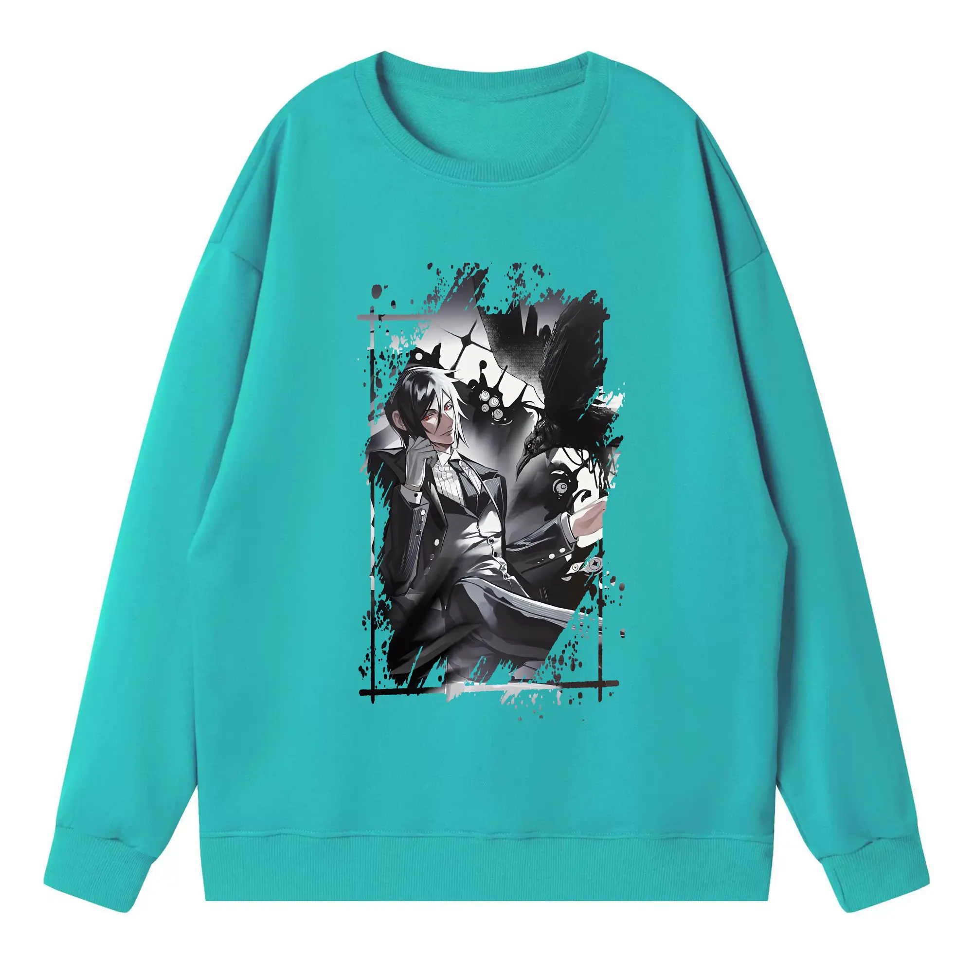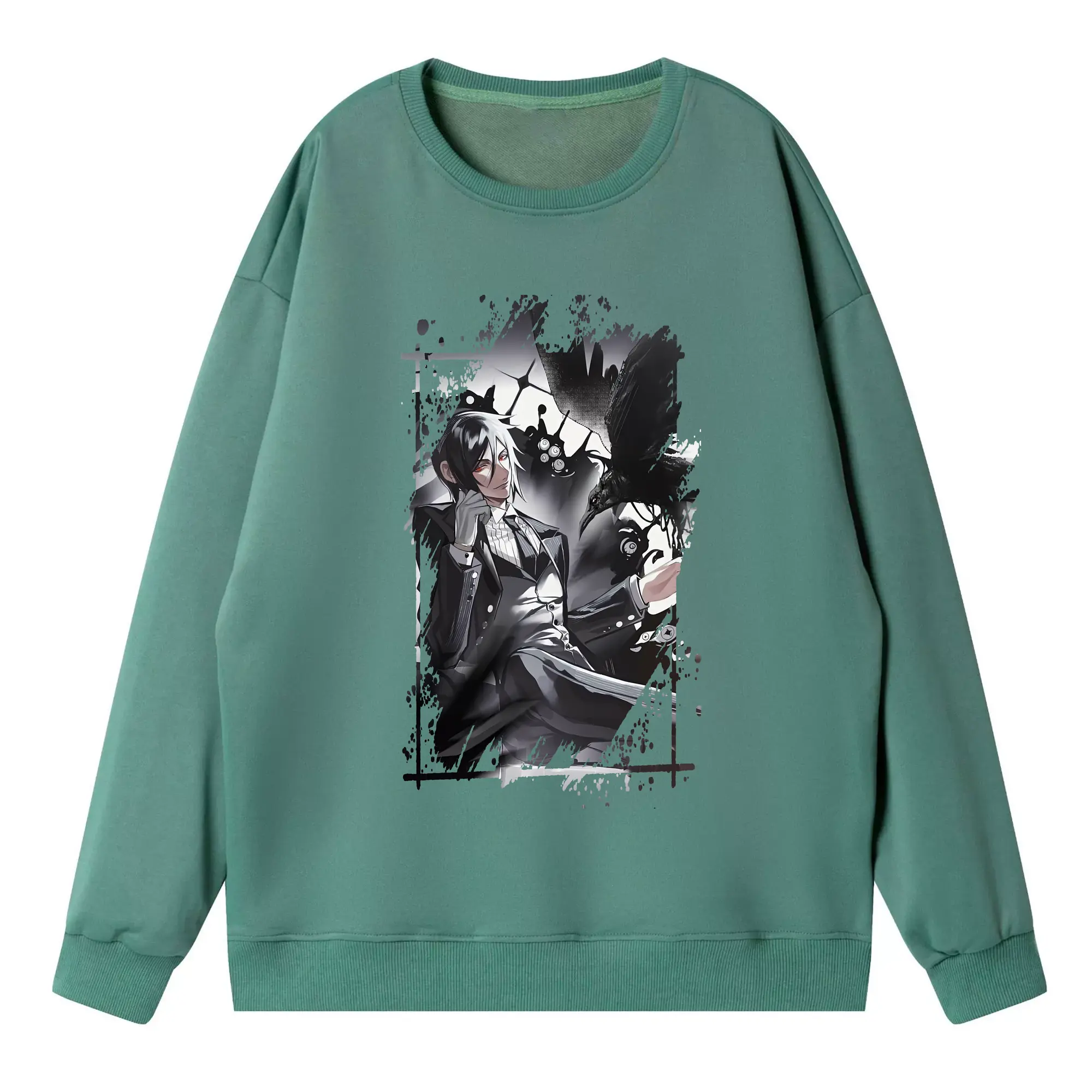 黒執事 グッズ,セバスチャン・ミカエリス - 高品質 クルーネック スウェット ・ コットン59% ポリエステル41% ・ ユニセックス 長袖 トレーナー ・ カジュアル デイリー スポーツ 散歩用