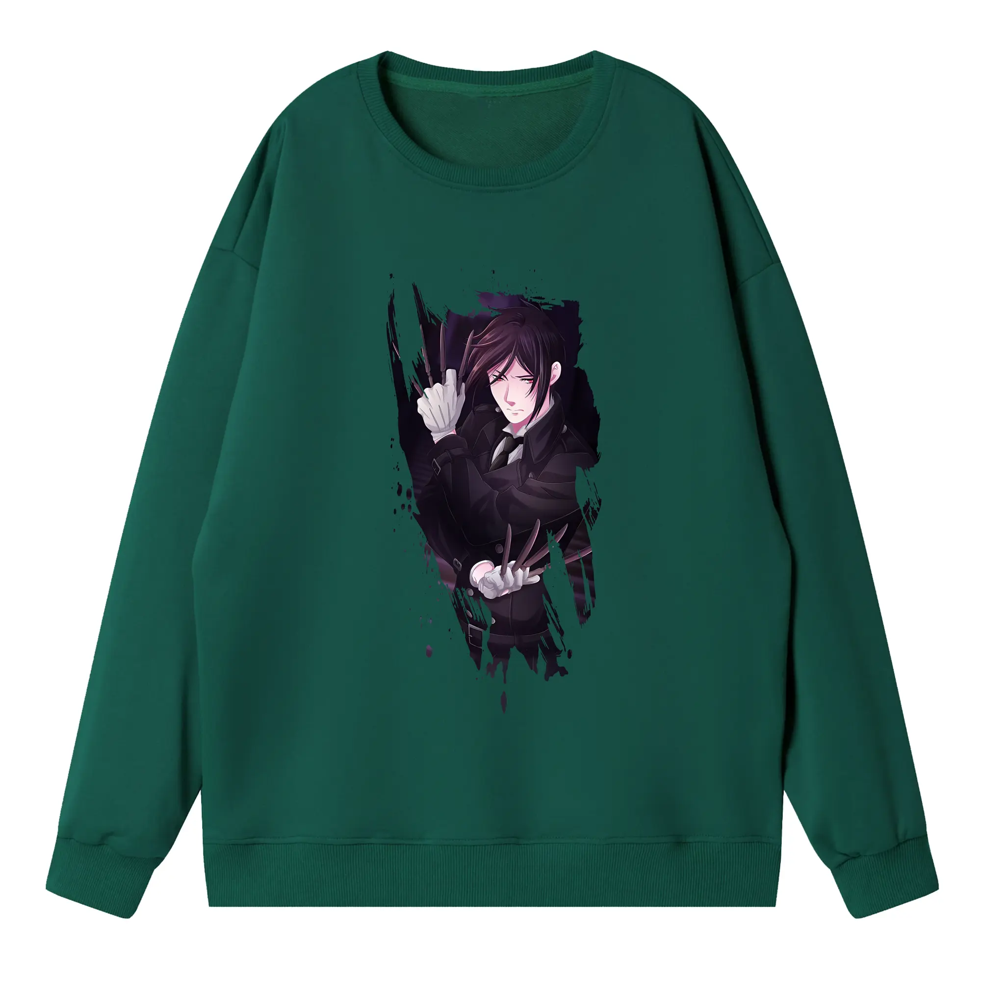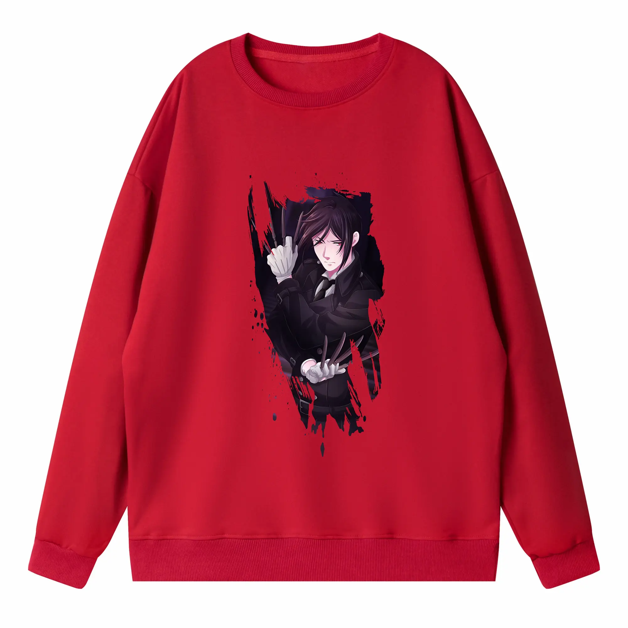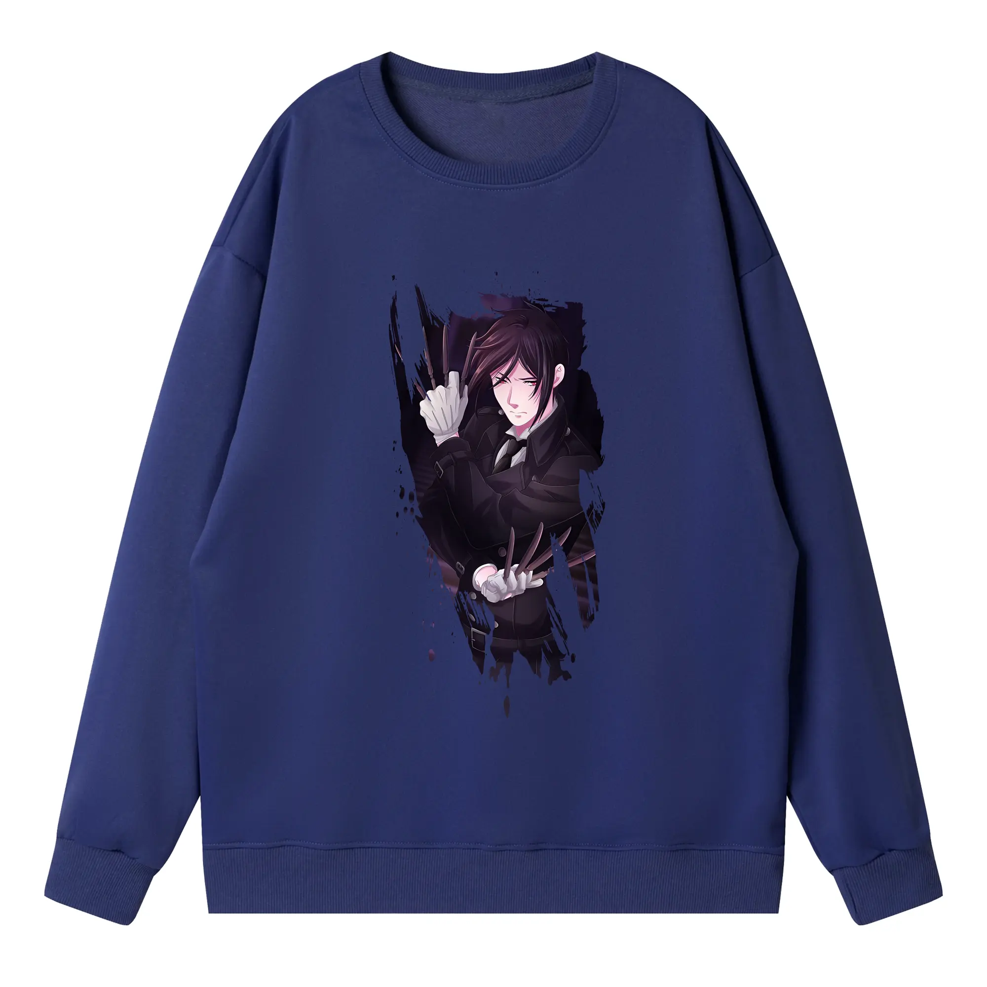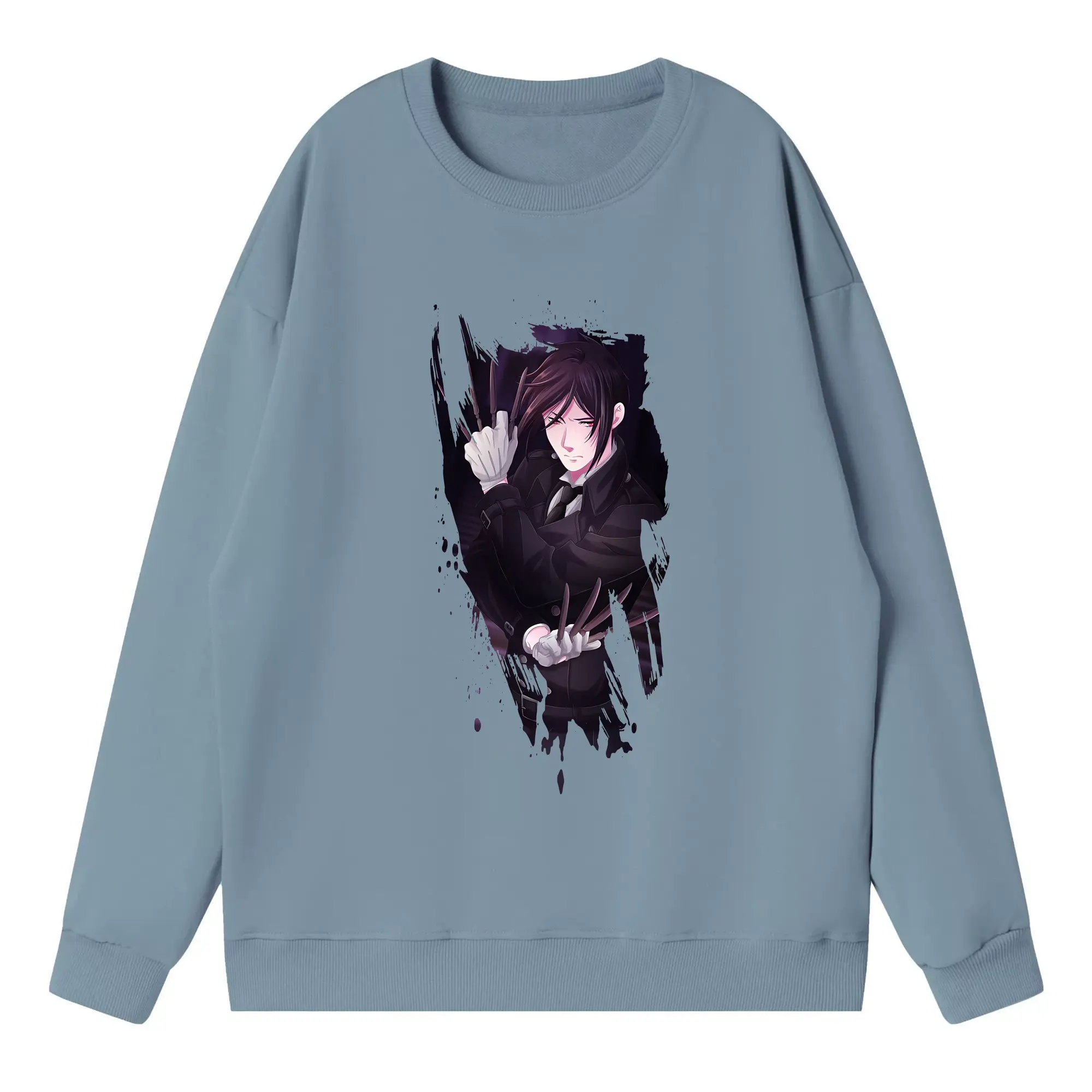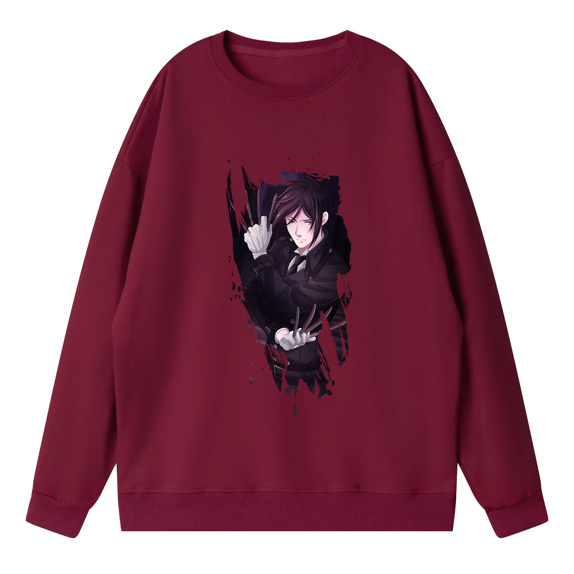 黒執事 グッズ,セバスチャン・ミカエリス - 高品質 クルーネック スウェット ・ コットン59% ポリエステル41% ・ ユニセックス 長袖 トレーナー ・ カジュアル デイリー スポーツ 散歩用