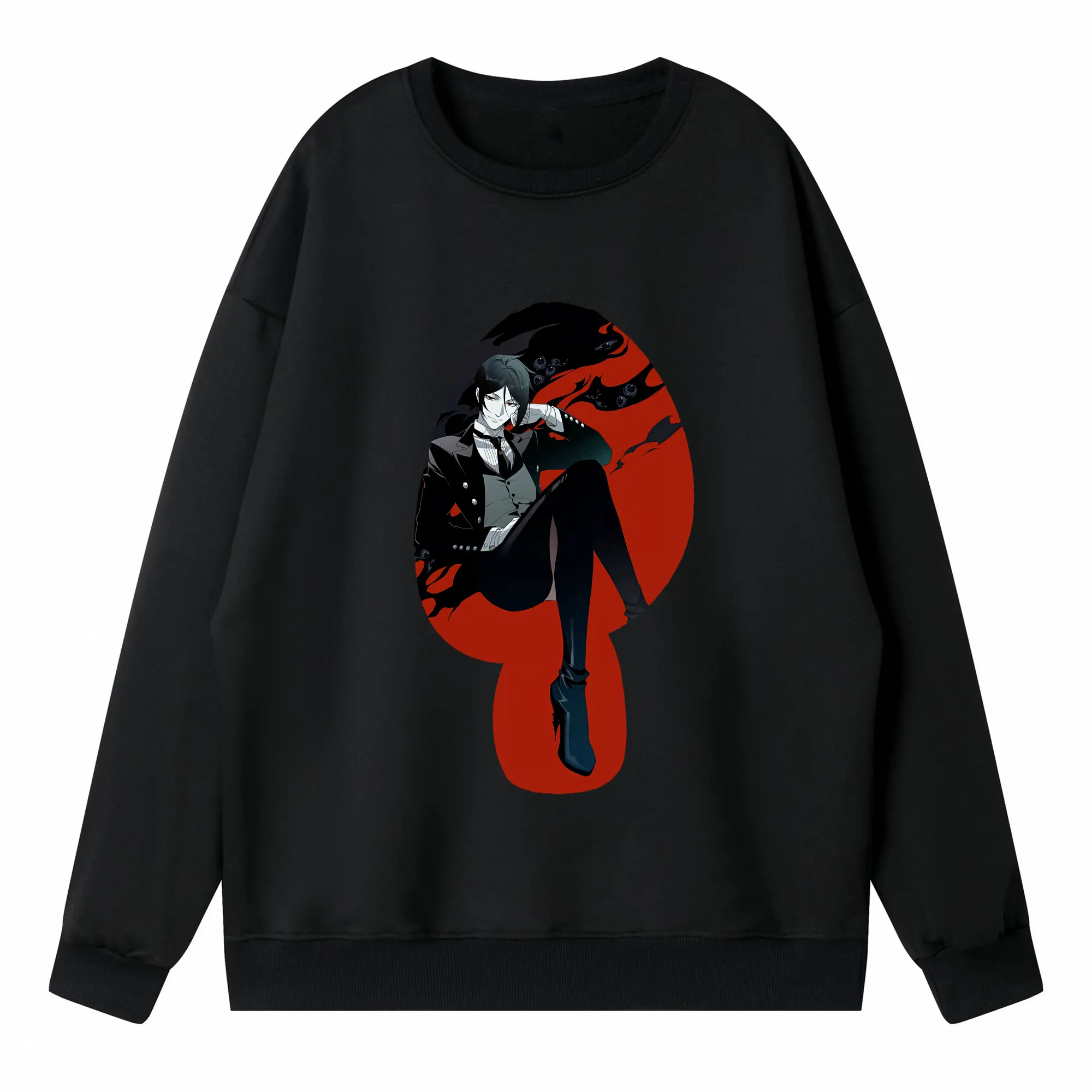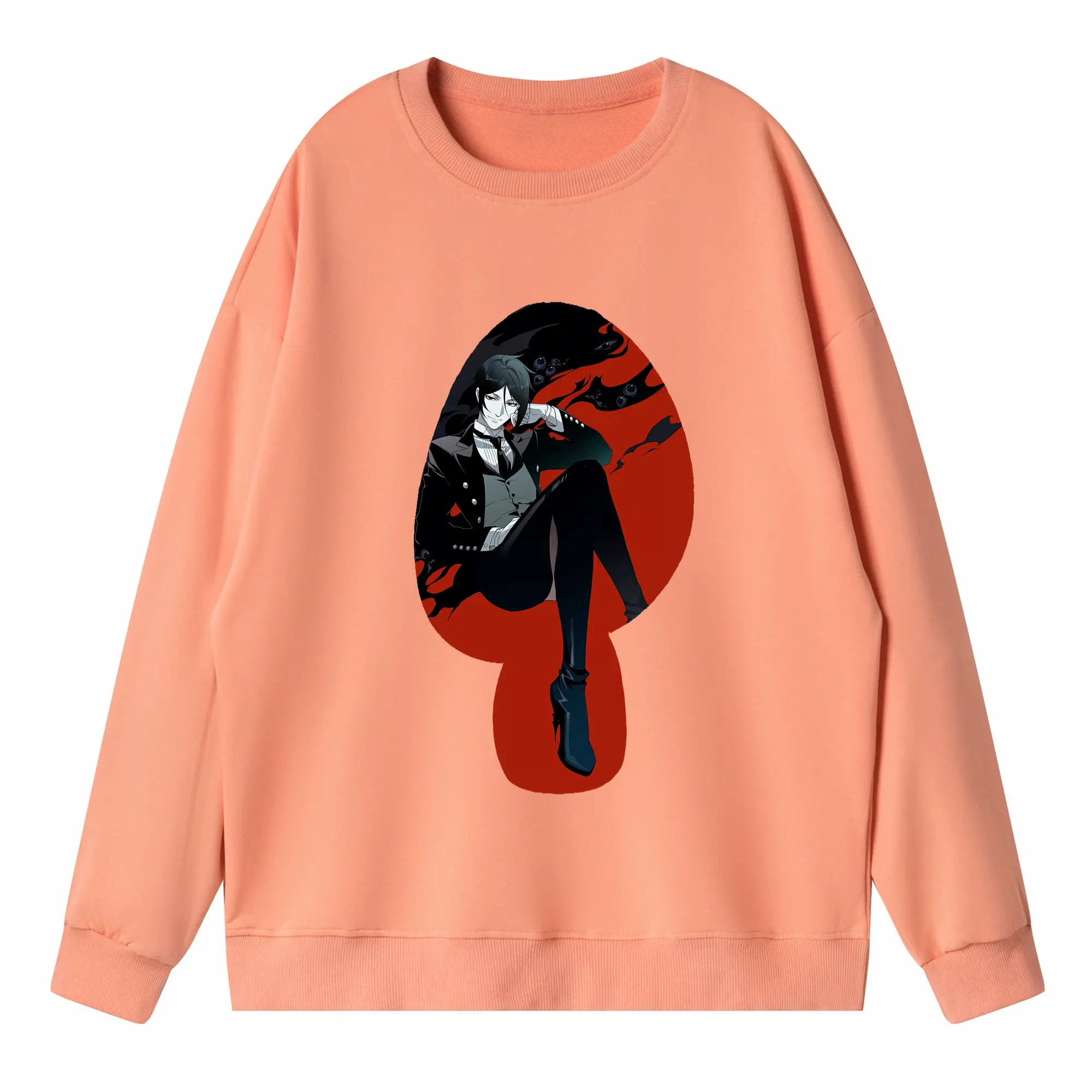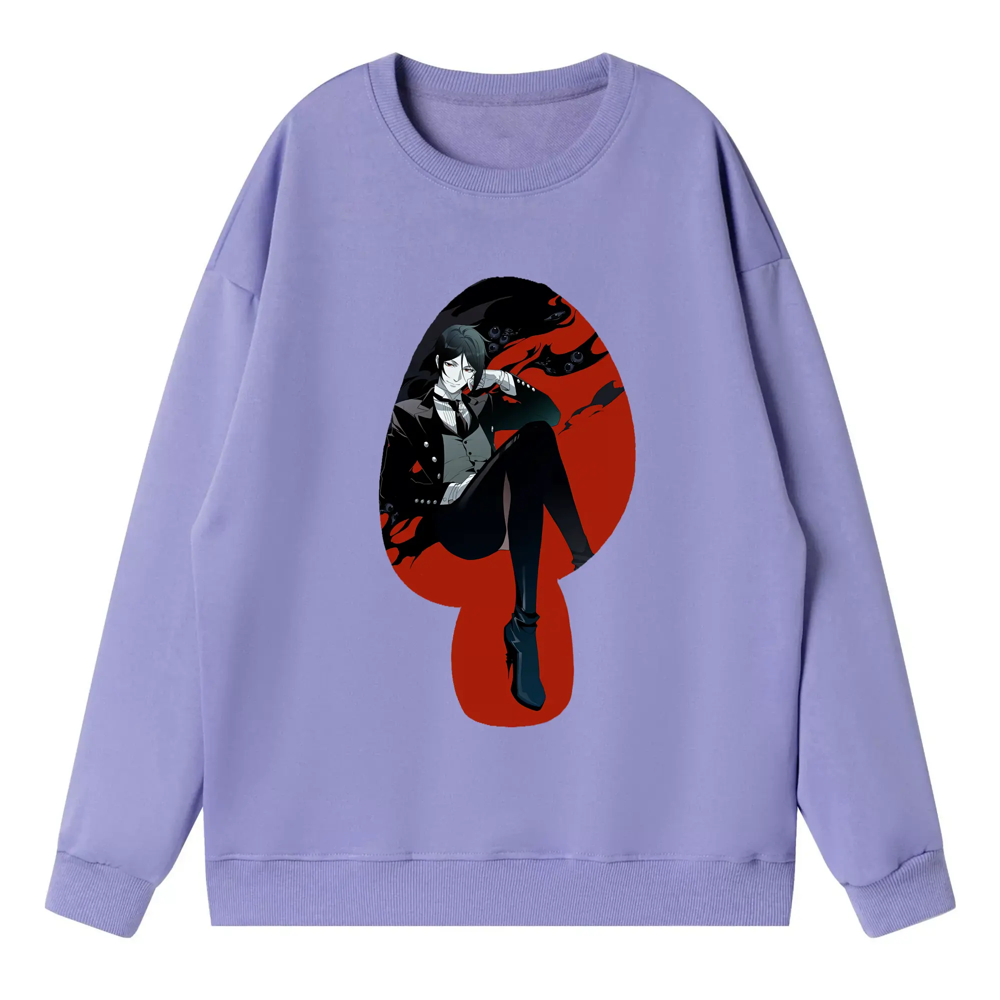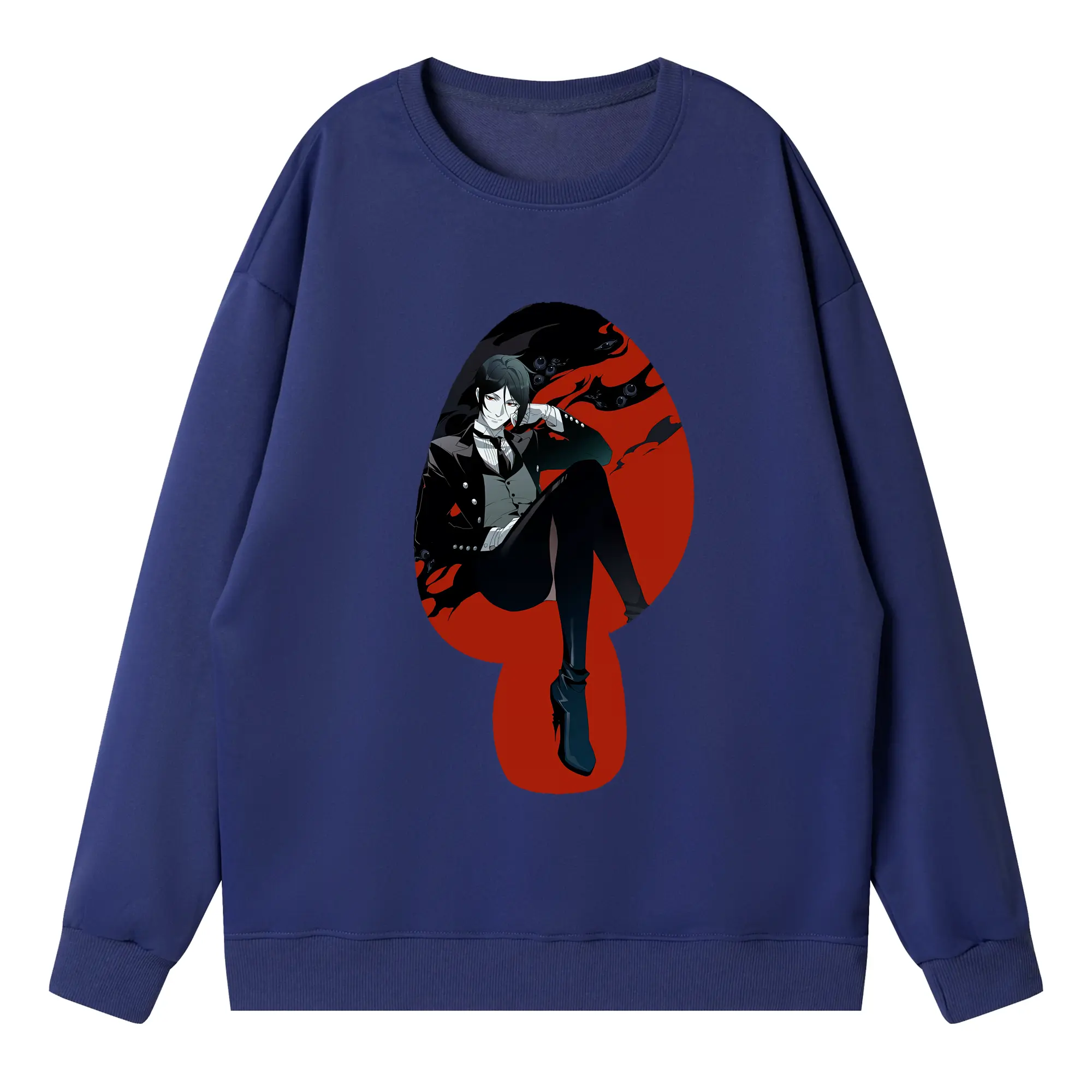 黒執事 グッズ,セバスチャン・ミカエリス - 高品質 クルーネック スウェット ・ コットン59% ポリエステル41% ・ ユニセックス 長袖 トレーナー ・ カジュアル デイリー スポーツ 散歩用