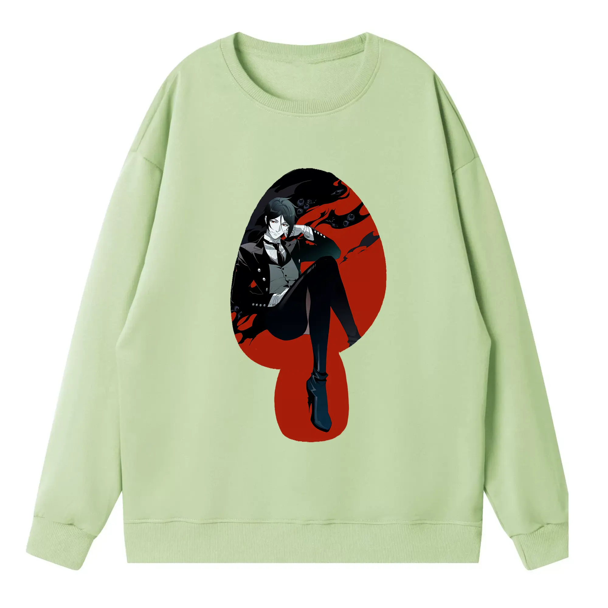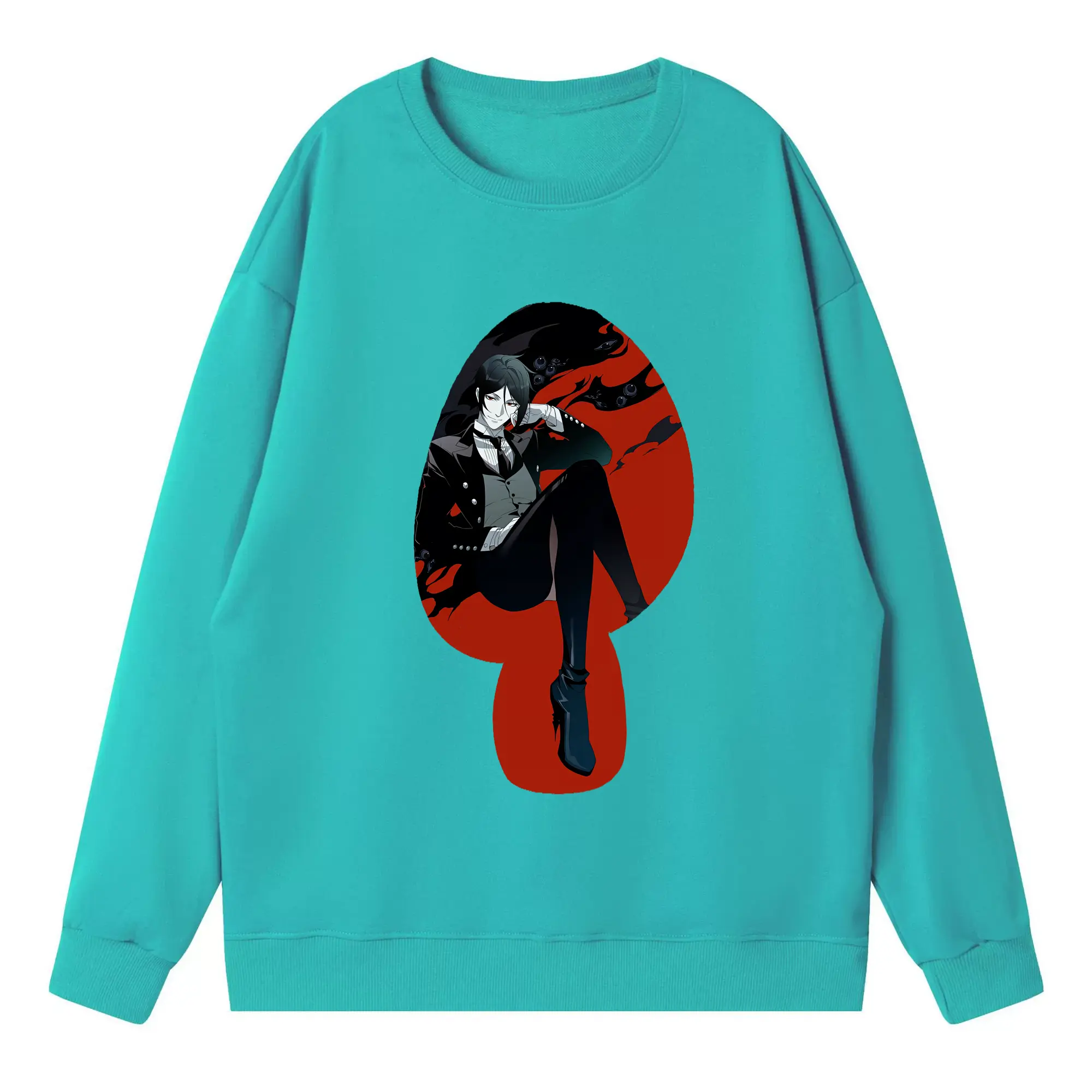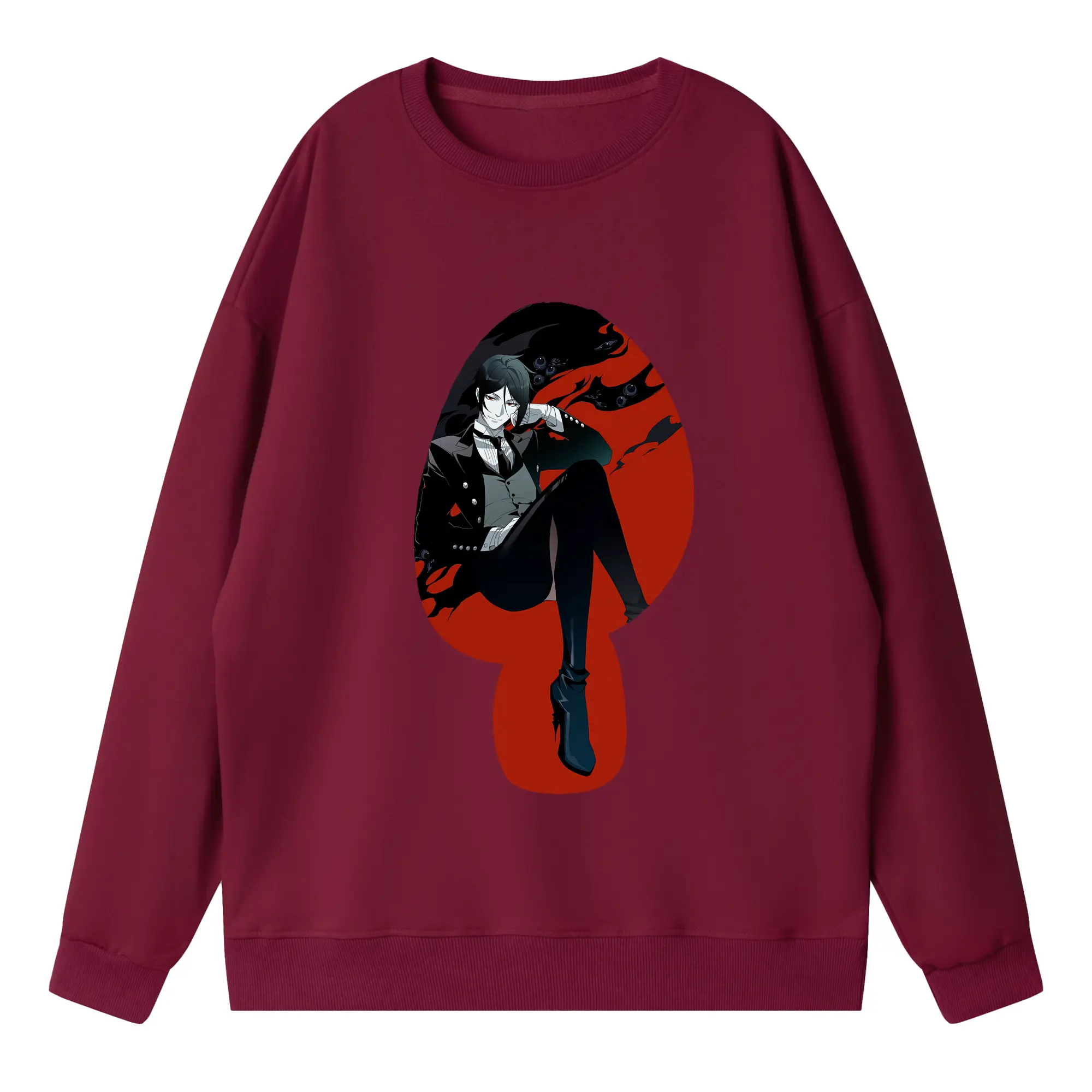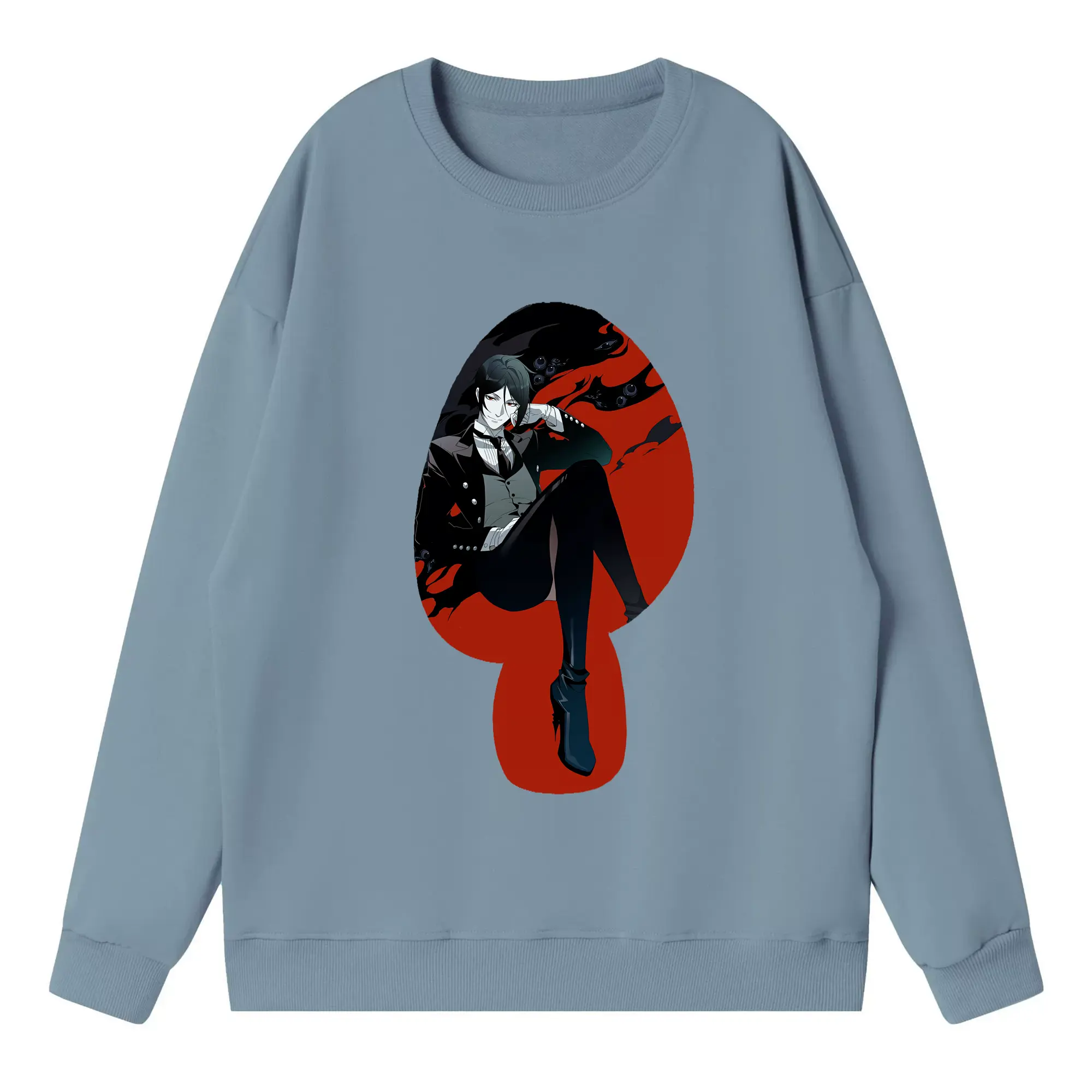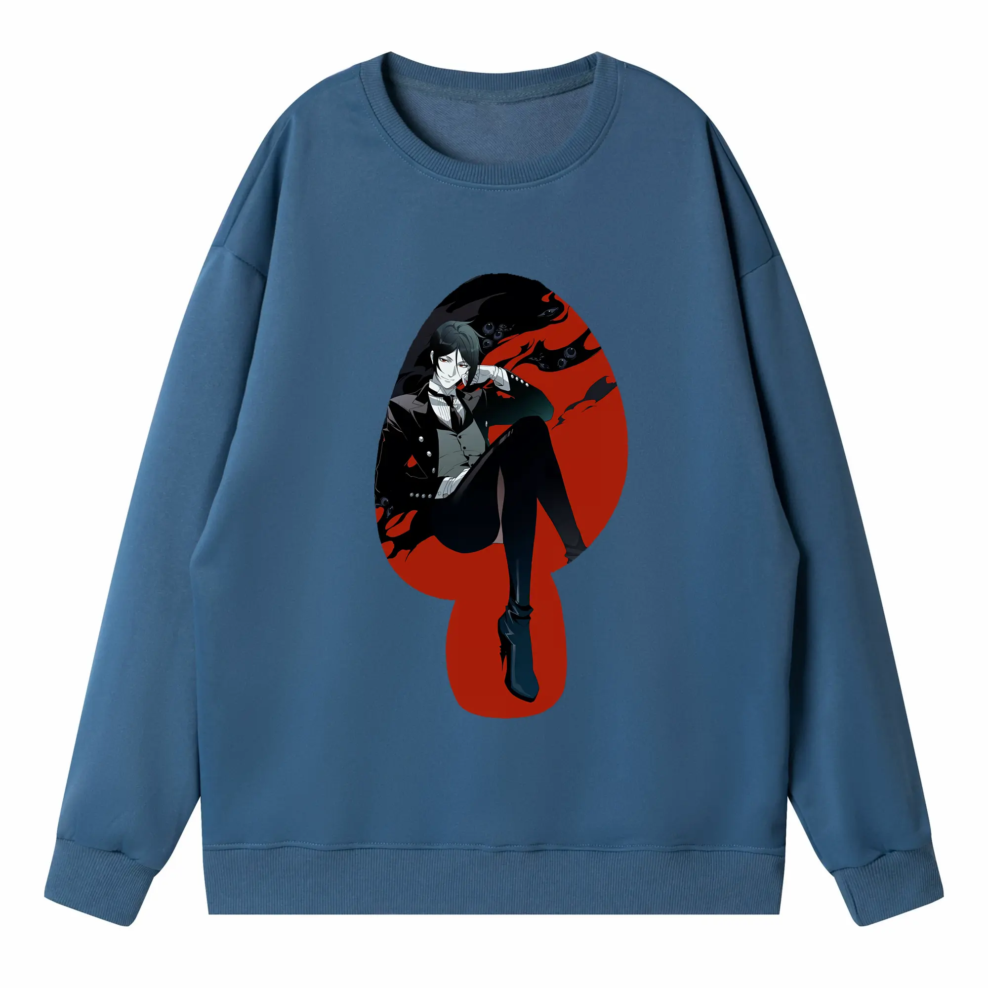 黒執事 グッズ,セバスチャン・ミカエリス - 高品質 クルーネック スウェット ・ コットン59% ポリエステル41% ・ ユニセックス 長袖 トレーナー ・ カジュアル デイリー スポーツ 散歩用