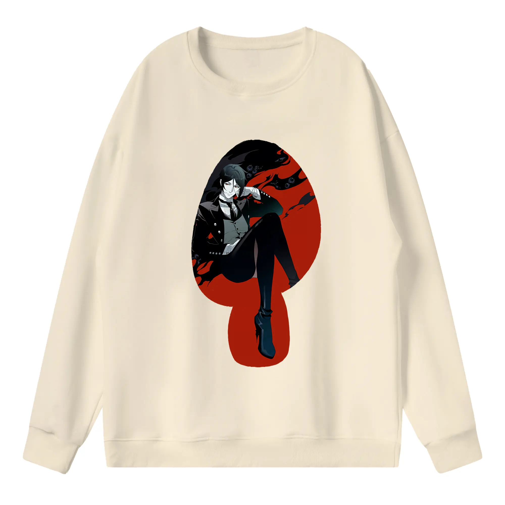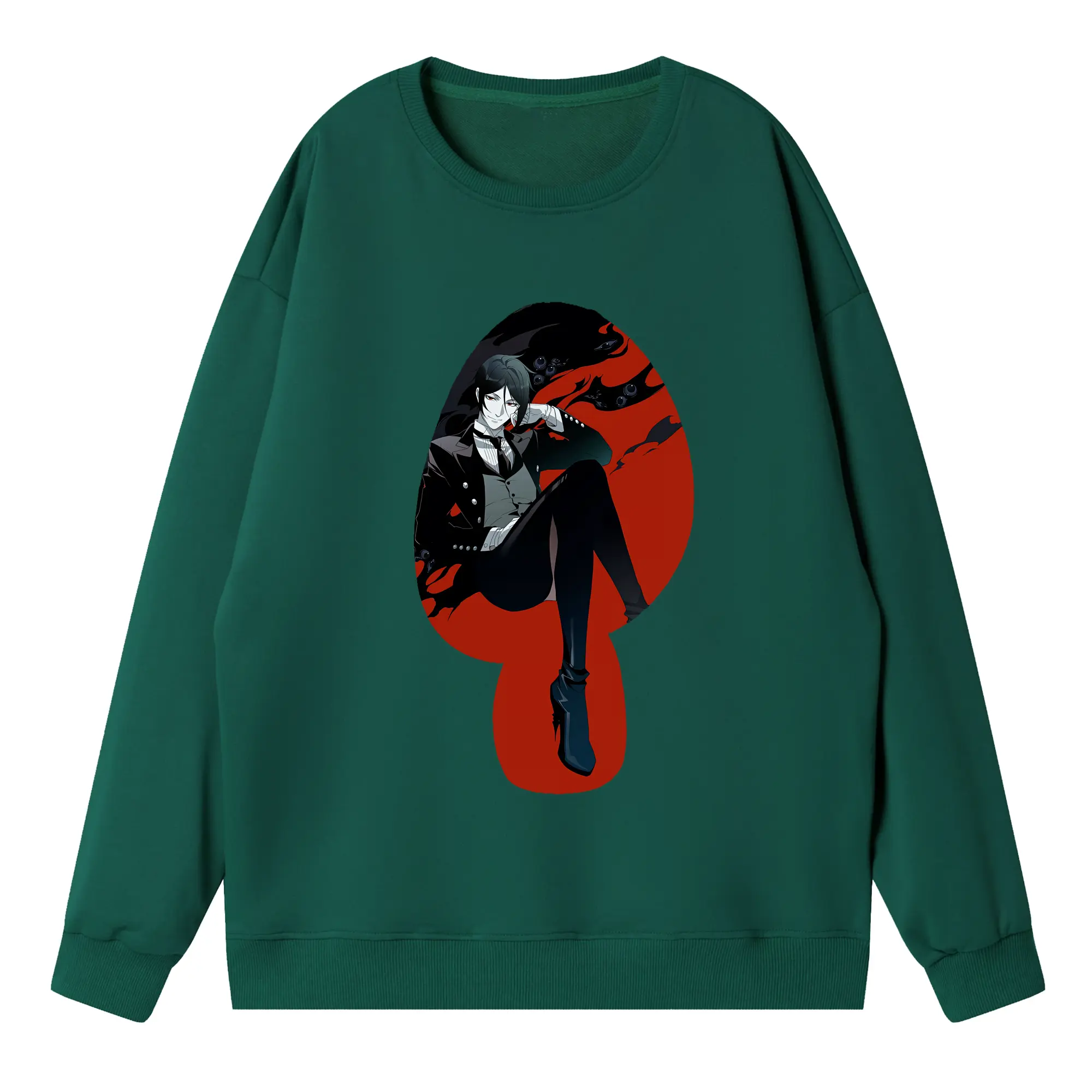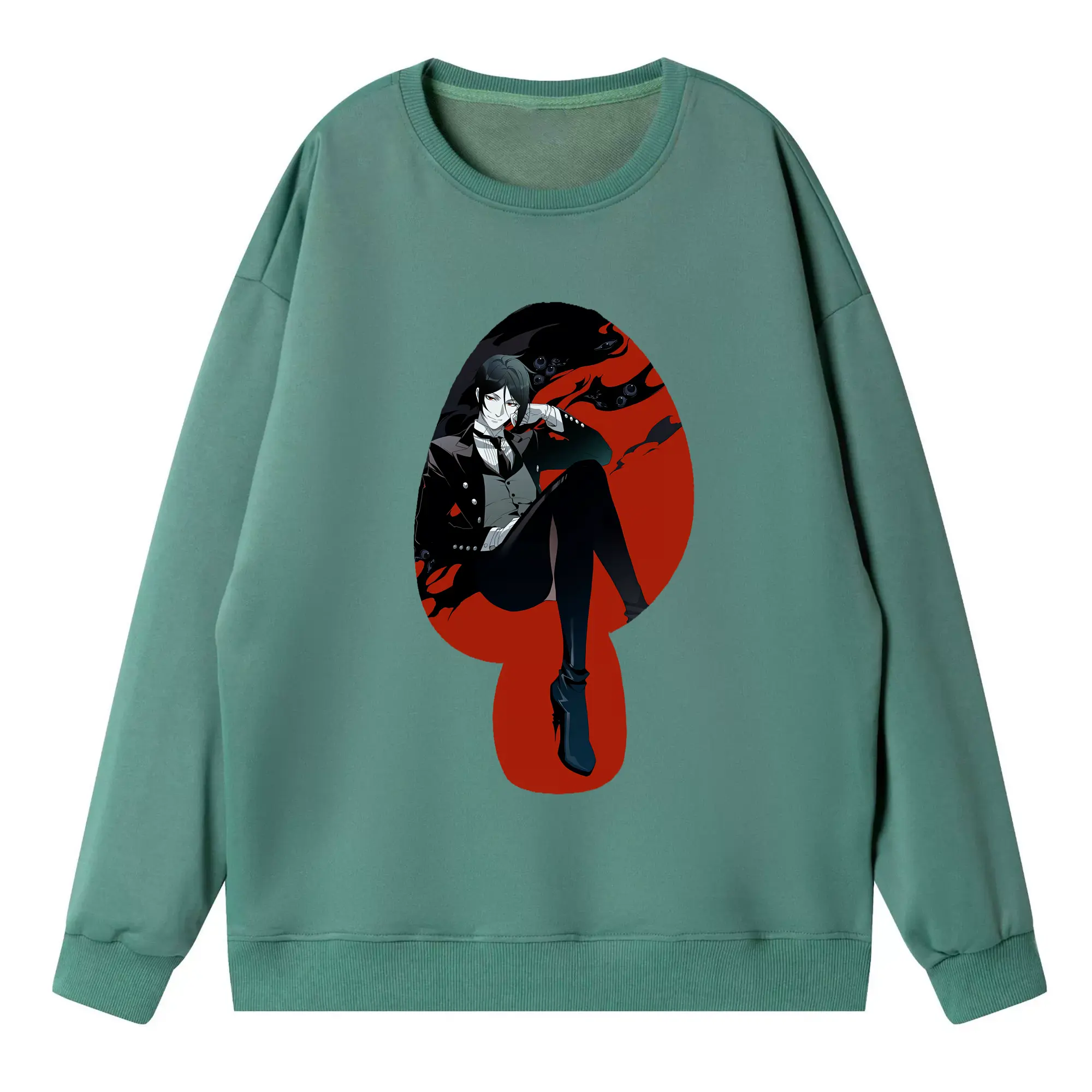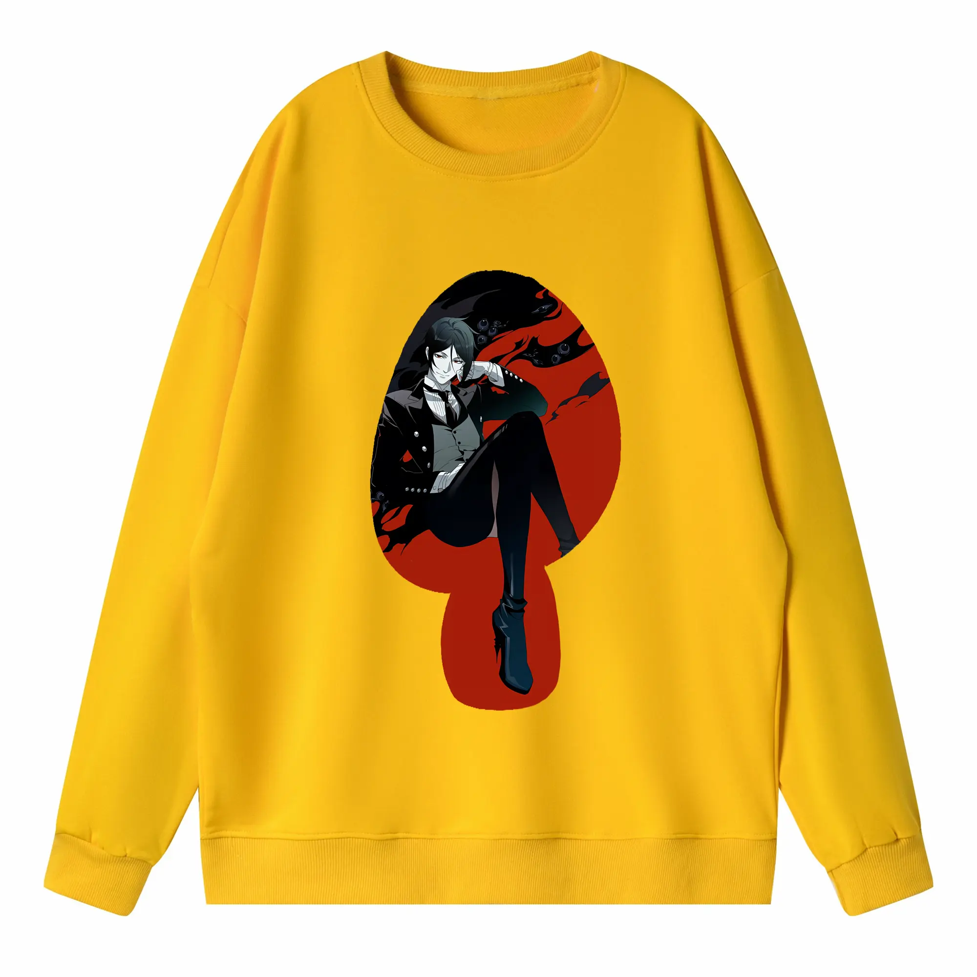 黒執事 グッズ,セバスチャン・ミカエリス - 高品質 クルーネック スウェット ・ コットン59% ポリエステル41% ・ ユニセックス 長袖 トレーナー ・ カジュアル デイリー スポーツ 散歩用
