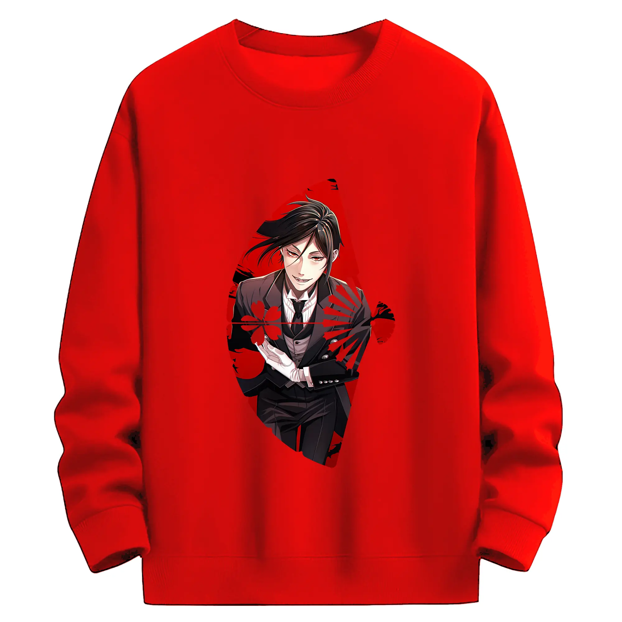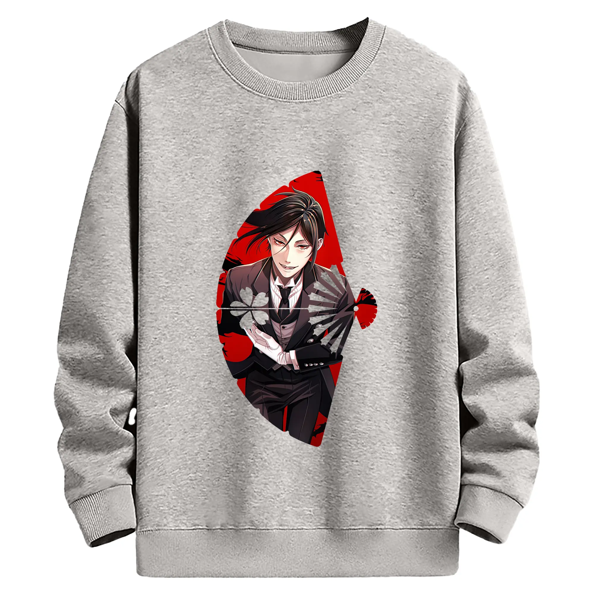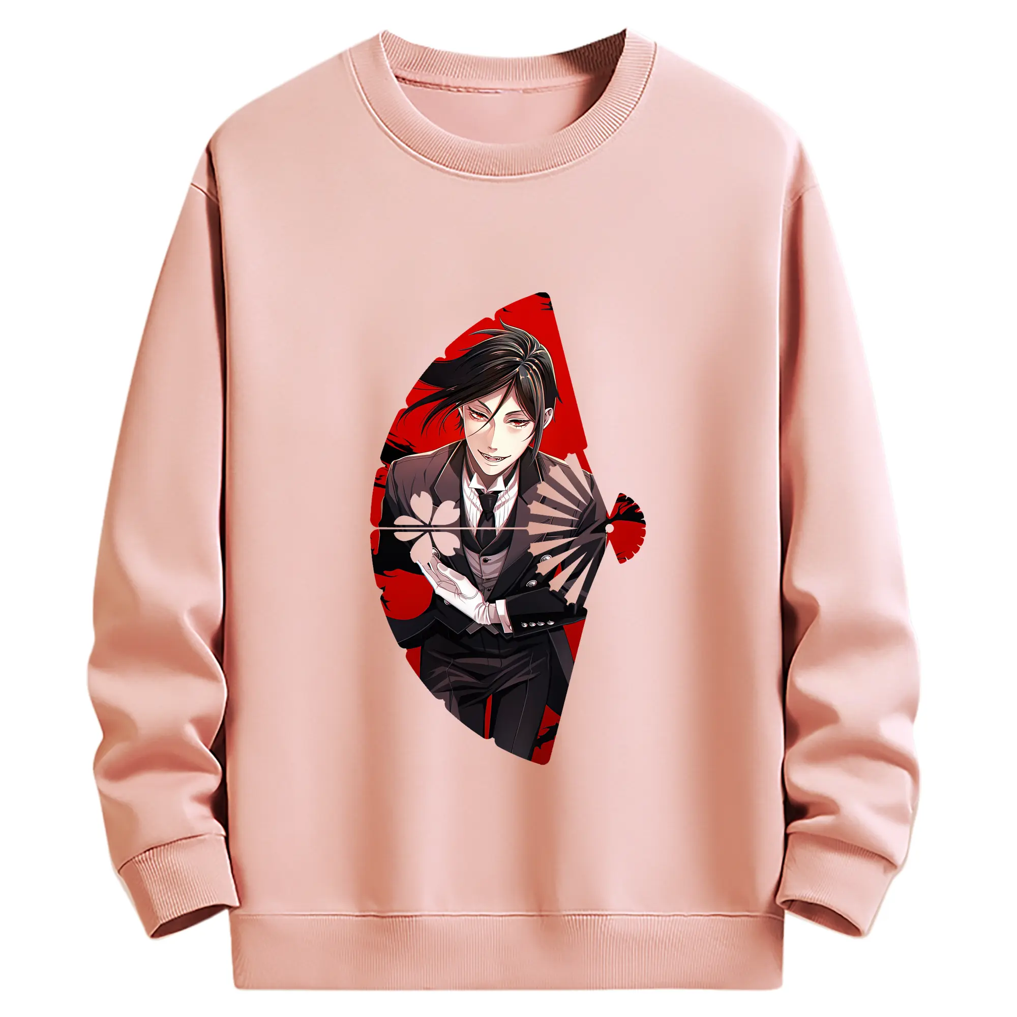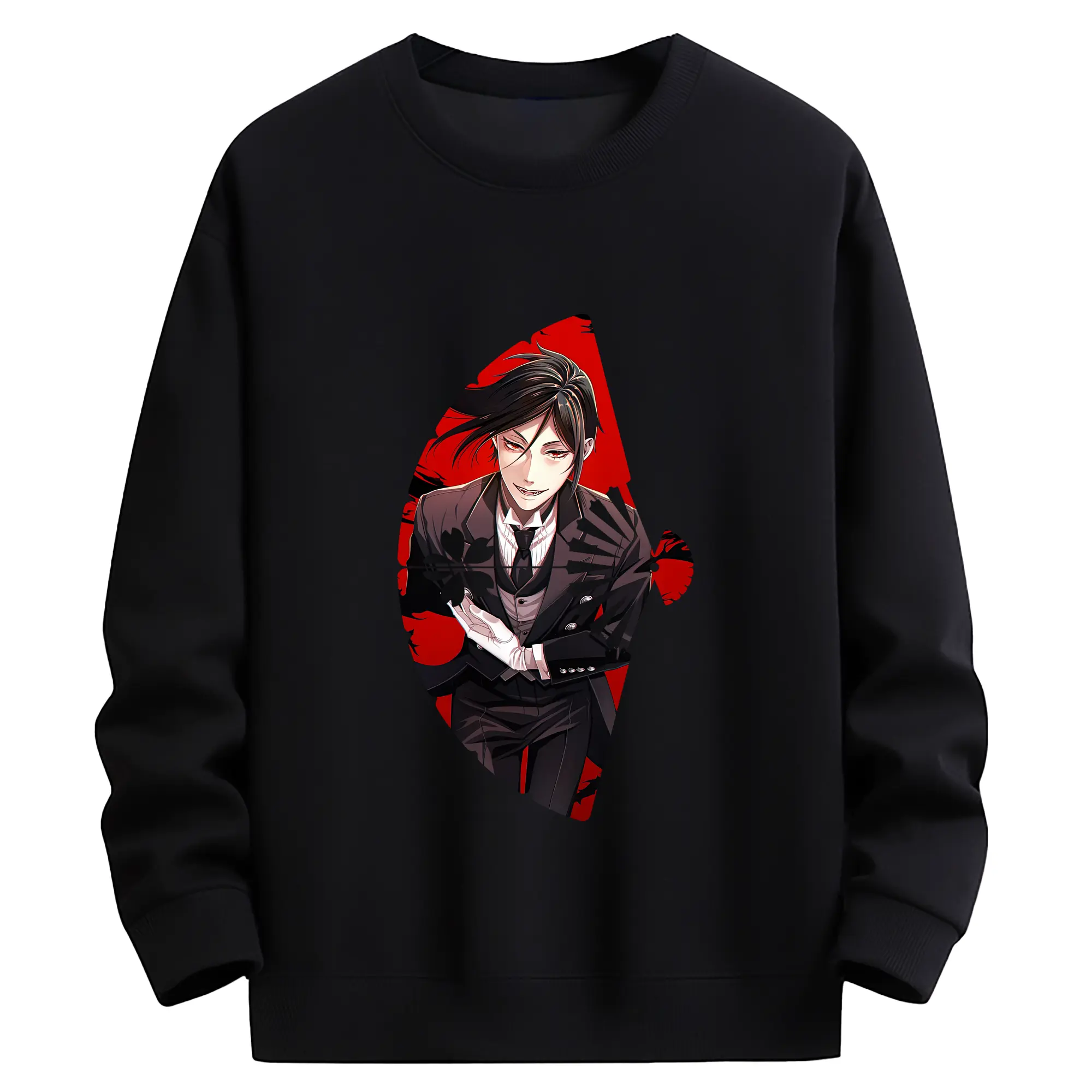 黒執事 グッズ,セバスチャン・ミカエリス - 薄手 クルーネック スウェット 裏毛260g · ポリエステル 春秋向け カジュアル 男女兼用 · トレーナー デイリー スポーツ 散歩に最適
