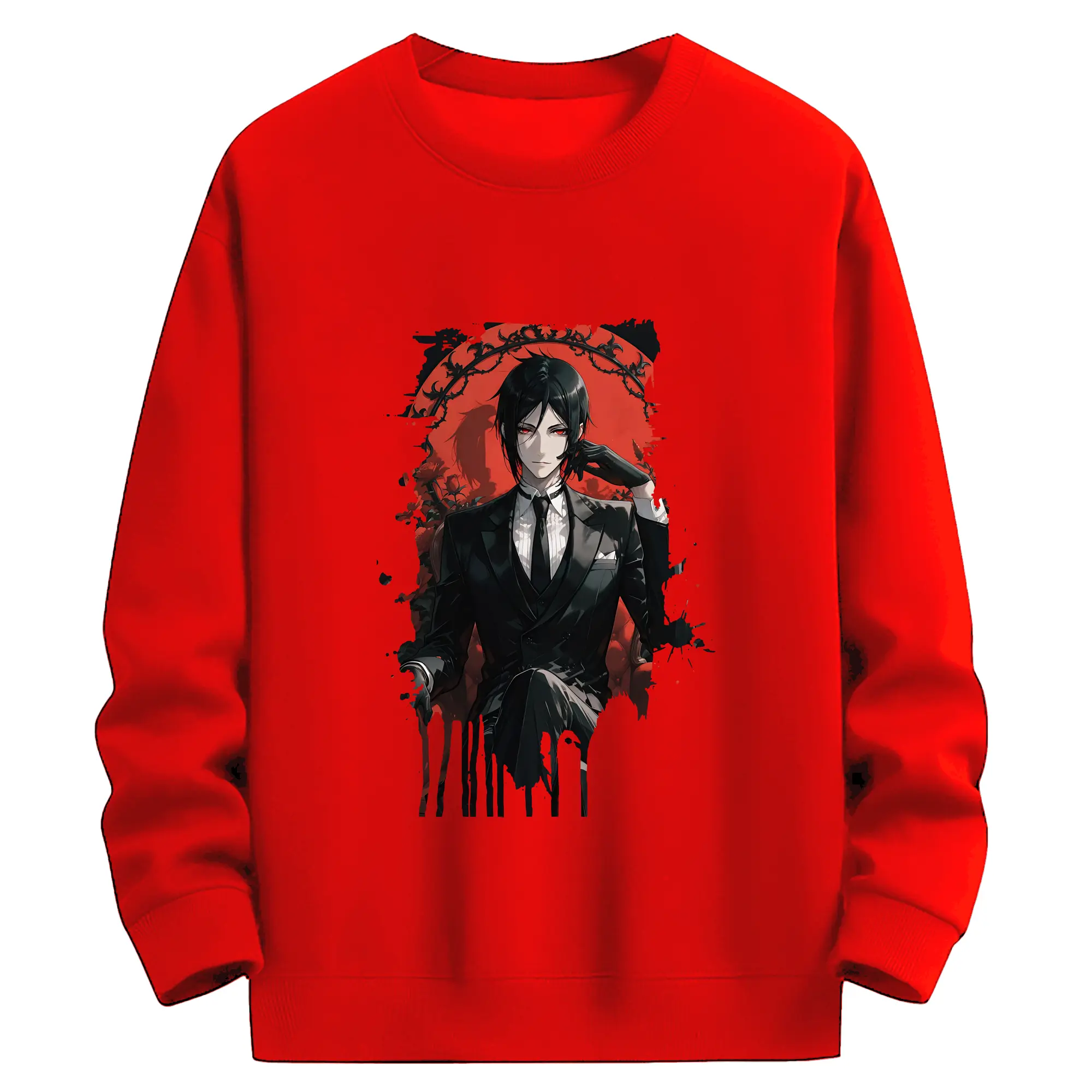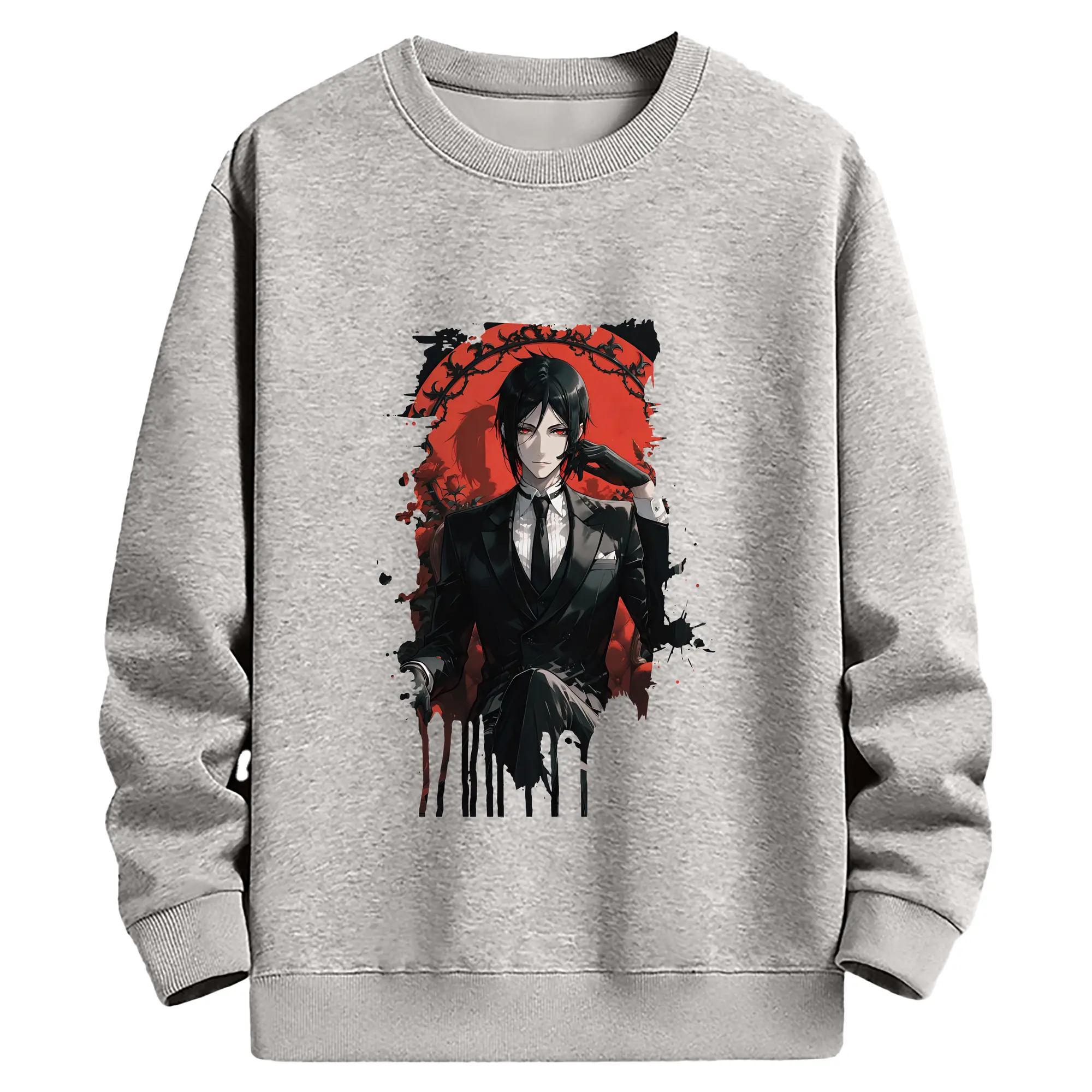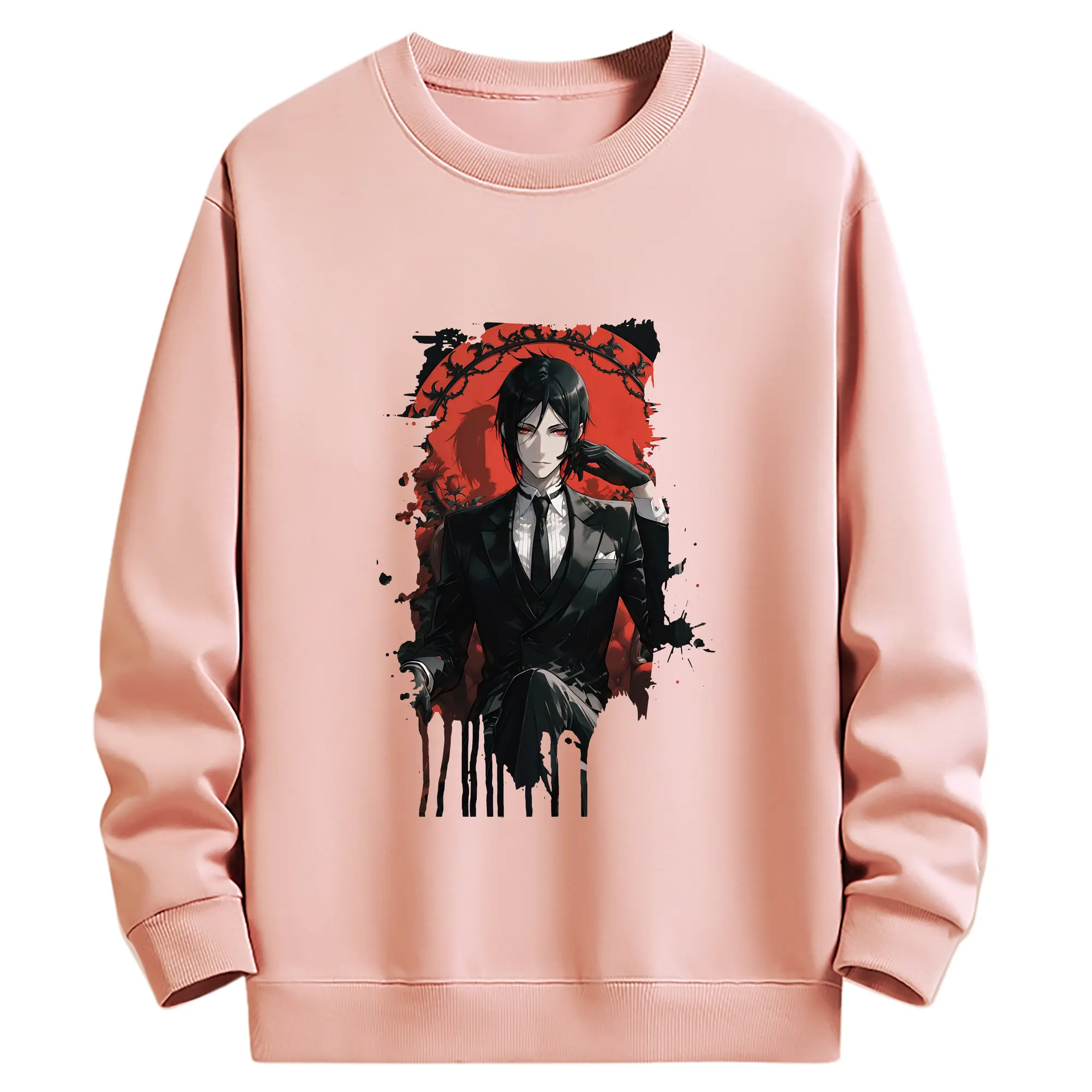 黒執事 グッズ,セバスチャン・ミカエリス - 薄手 クルーネック スウェット 裏毛260g · ポリエステル 春秋向け カジュアル 男女兼用 · トレーナー デイリー スポーツ 散歩に最適