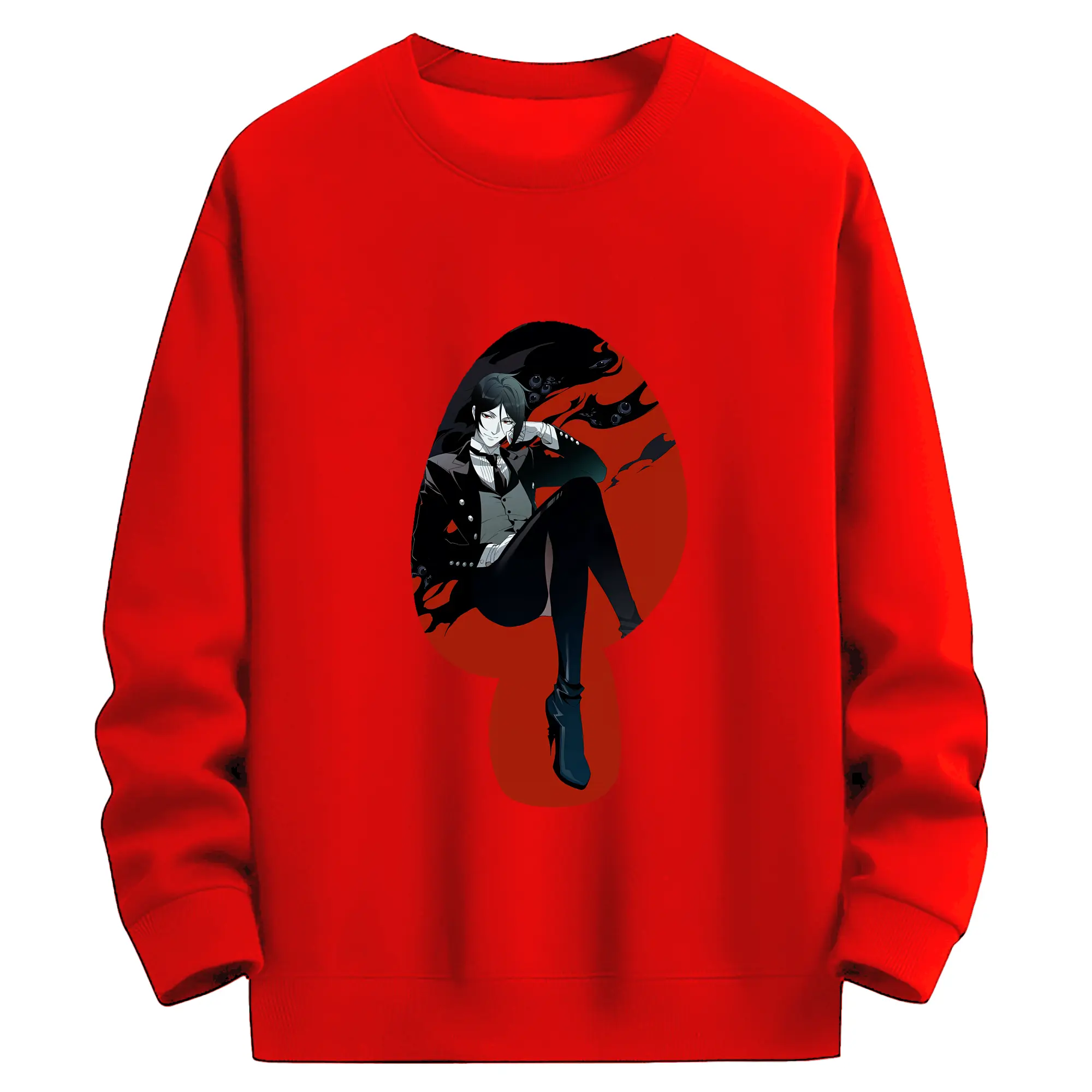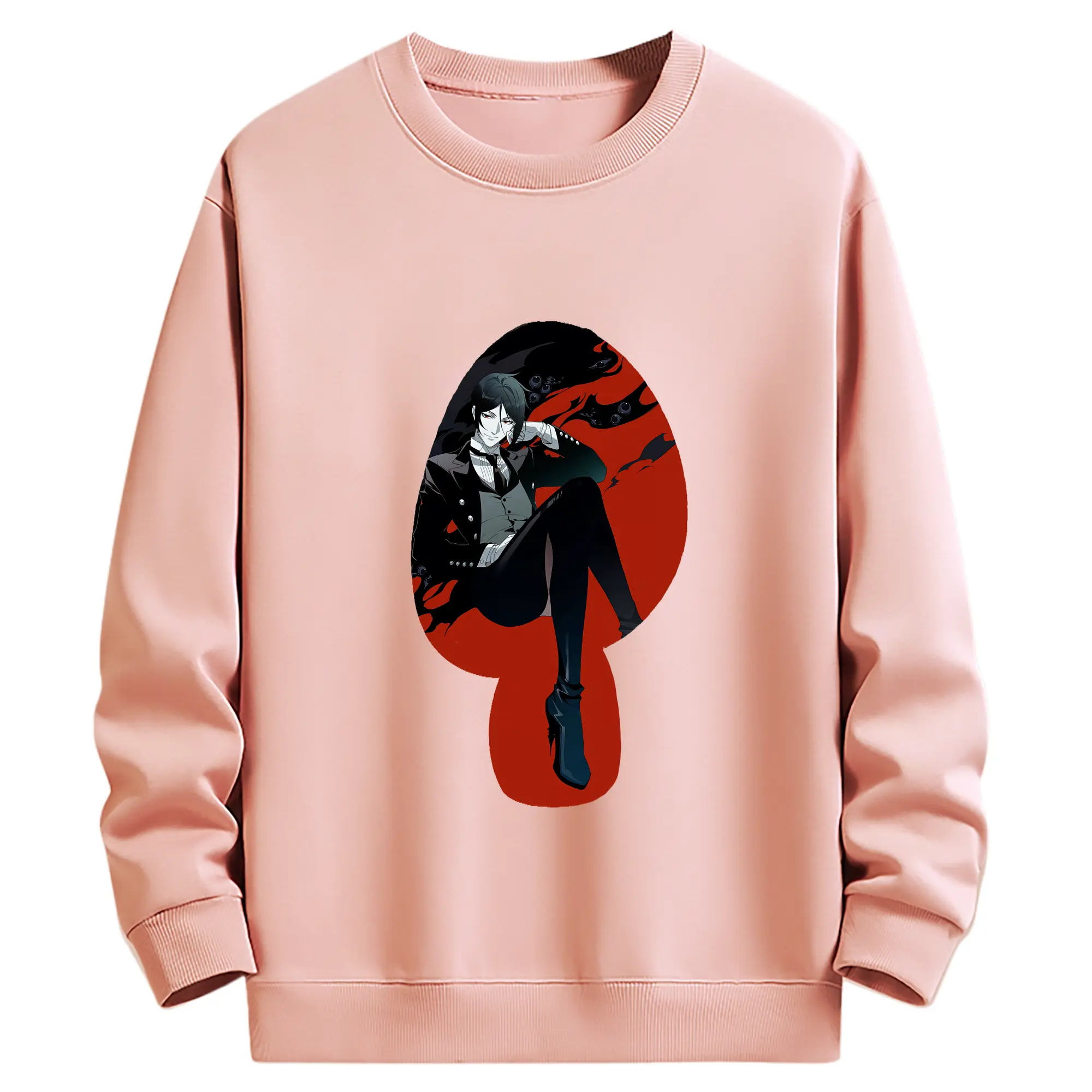 黒執事 グッズ,セバスチャン・ミカエリス - 薄手 クルーネック スウェット 裏毛260g · ポリエステル 春秋向け カジュアル 男女兼用 · トレーナー デイリー スポーツ 散歩に最適