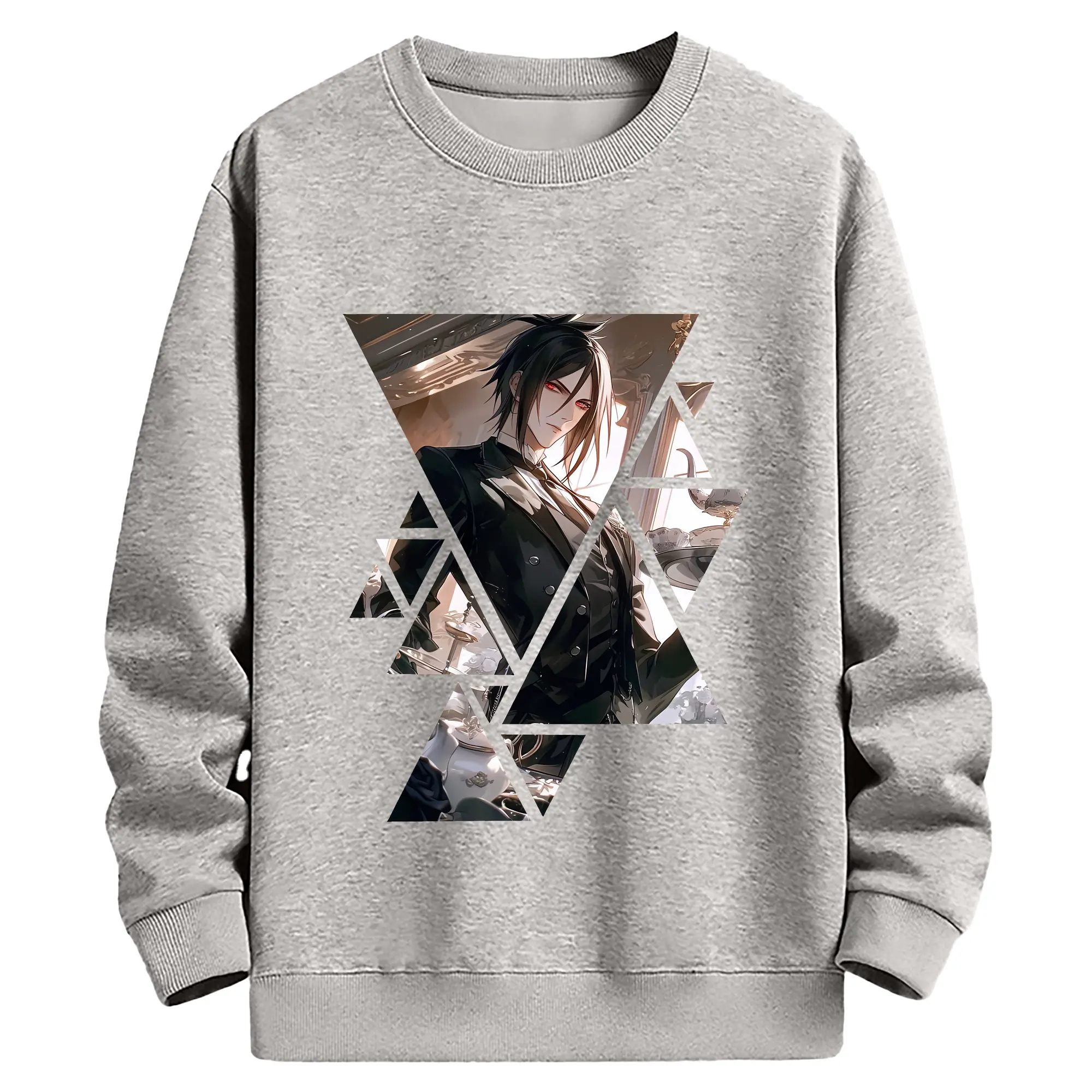 黒執事 グッズ,セバスチャン・ミカエリス - 薄手 クルーネック スウェット 裏毛260g · ポリエステル 春秋向け カジュアル 男女兼用 · トレーナー デイリー スポーツ 散歩に最適