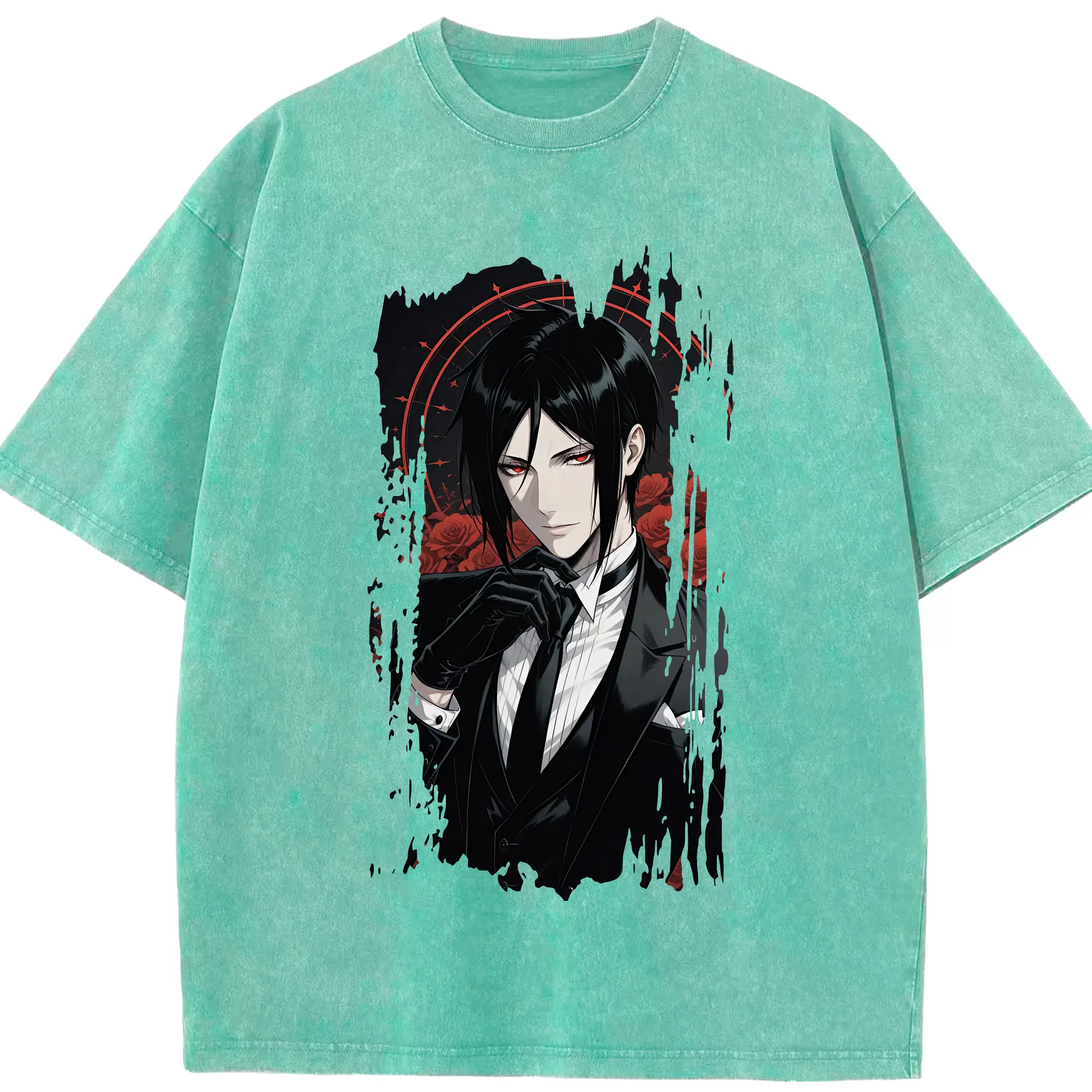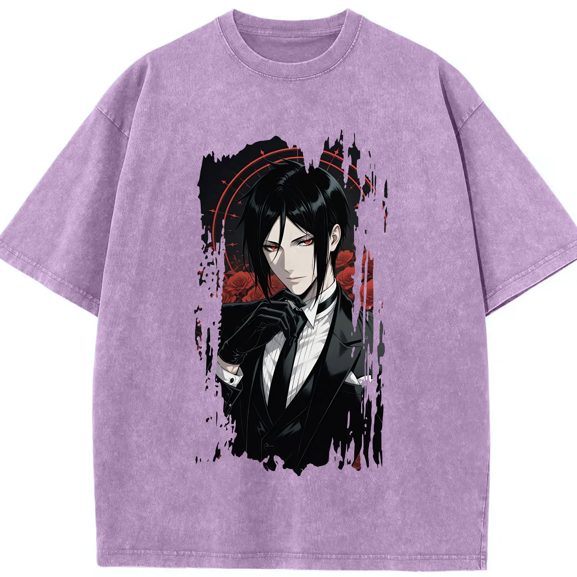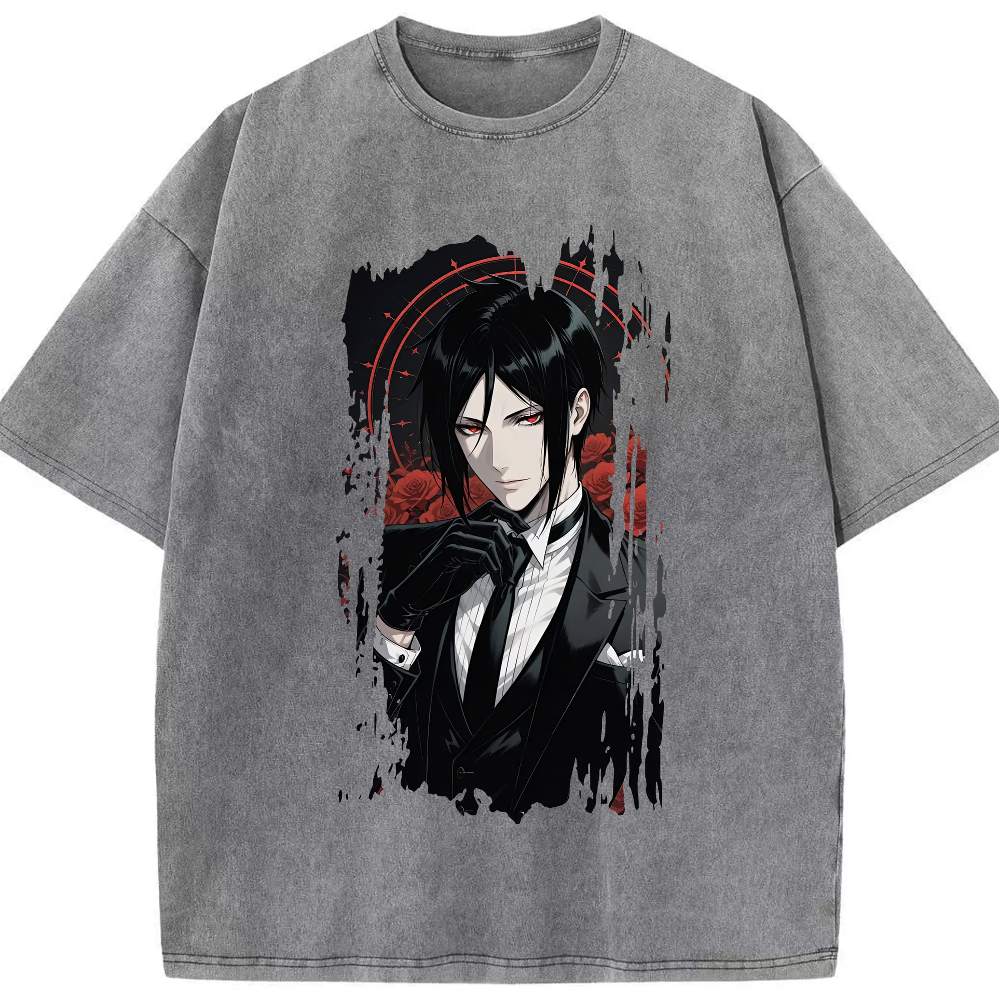 黒執事 グッズ,セバスチャン・ミカエリス - 綿100% ヴィンテージ風 半袖Tシャツ ・ 背面プリント ・ 柔らか肌触り ・ 通気性 快適 ・ スポーツ カジュアル 外出用