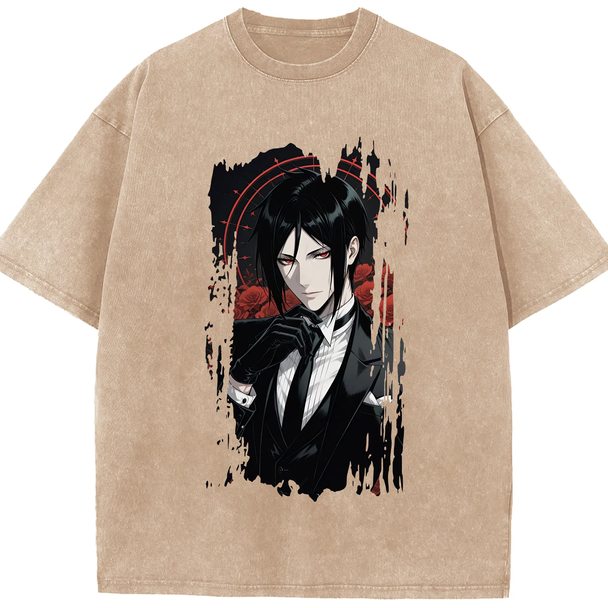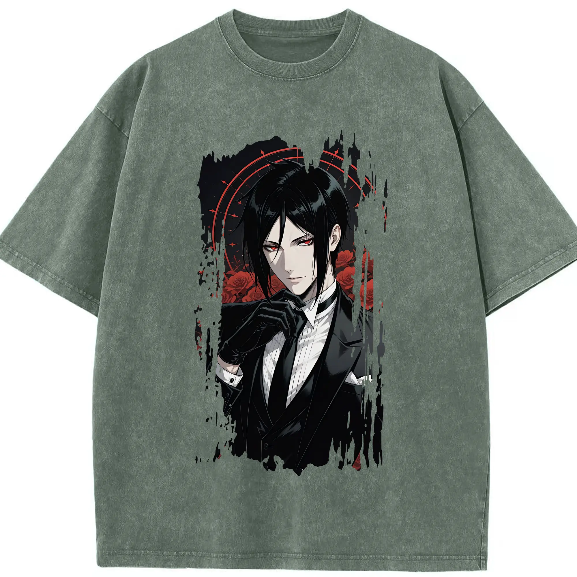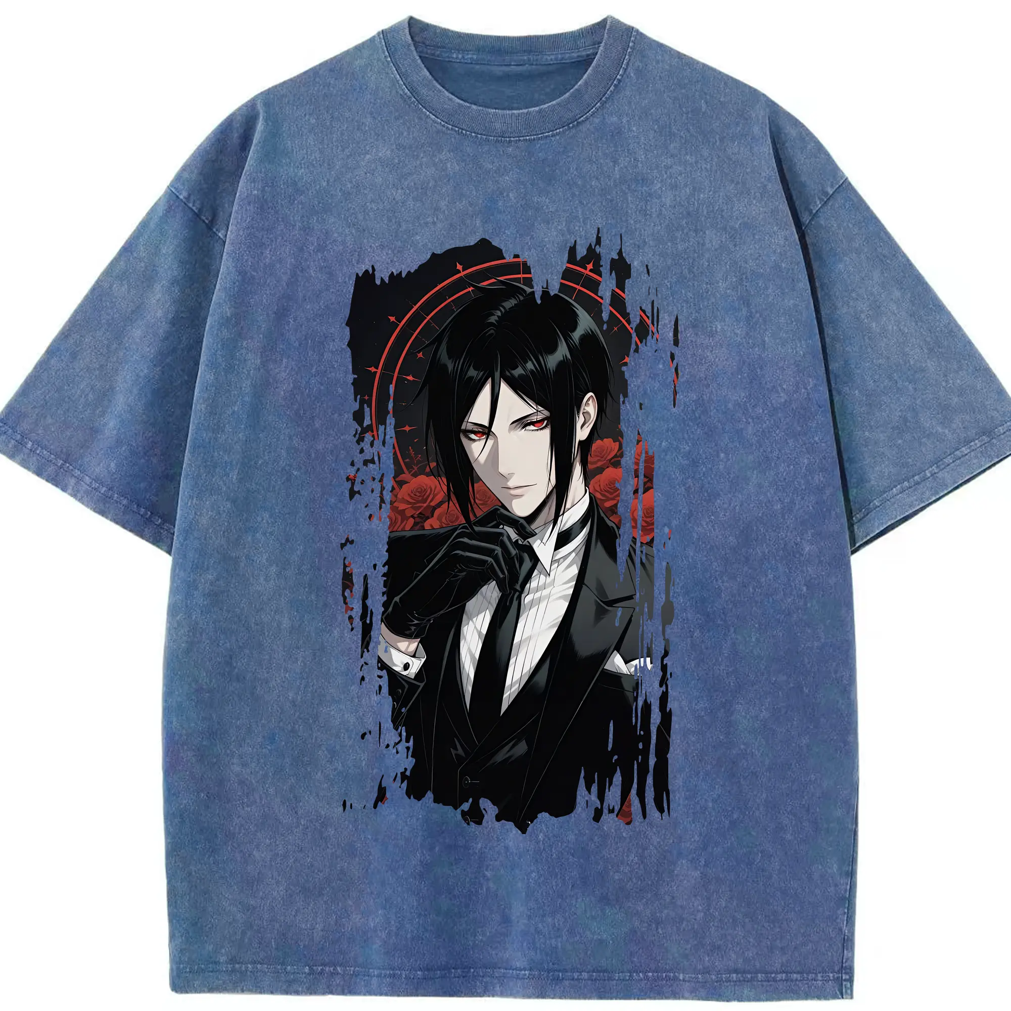黒執事 グッズ,セバスチャン・ミカエリス - 綿100% ヴィンテージ風 半袖Tシャツ ・ 背面プリント ・ 柔らか肌触り ・ 通気性 快適 ・ スポーツ カジュアル 外出用
