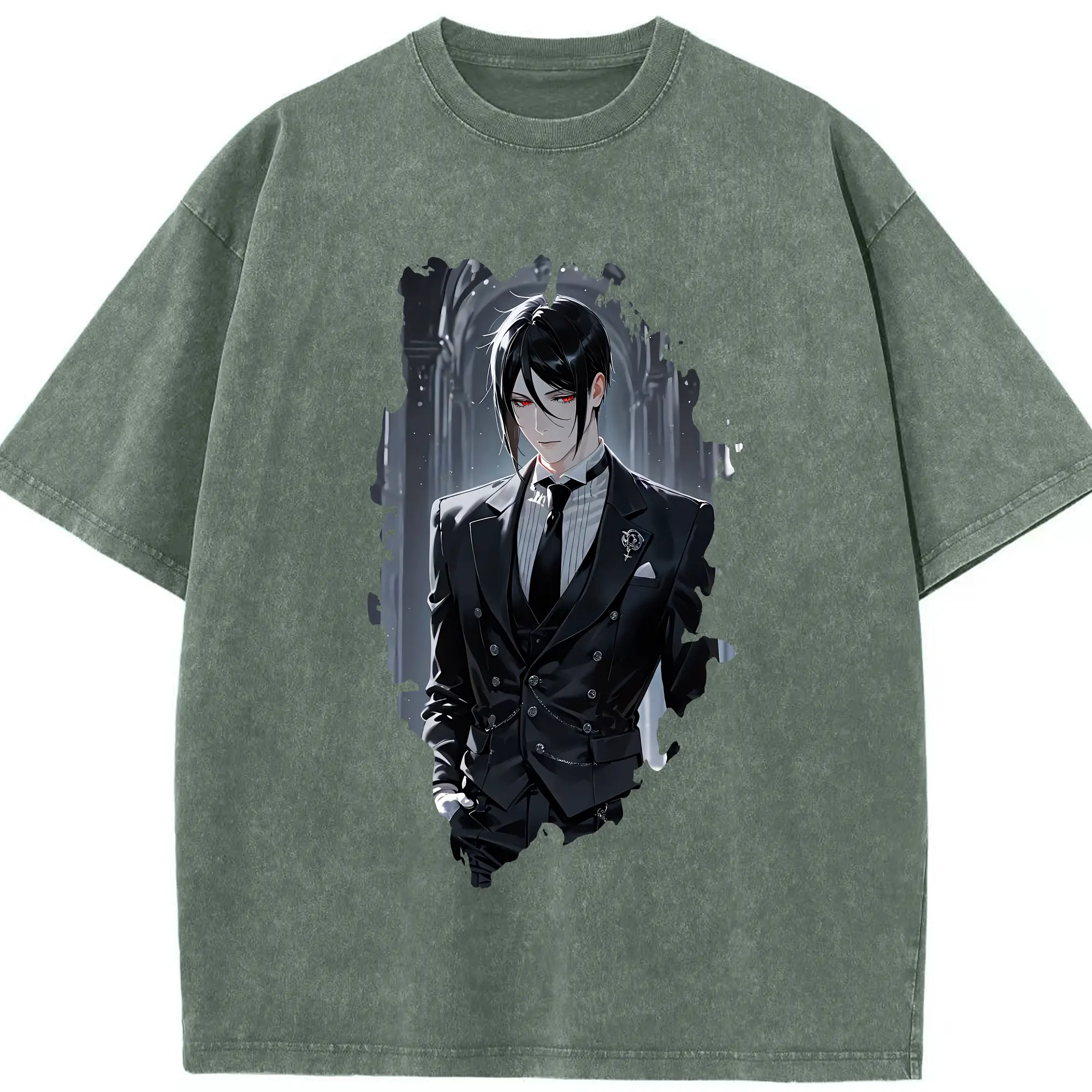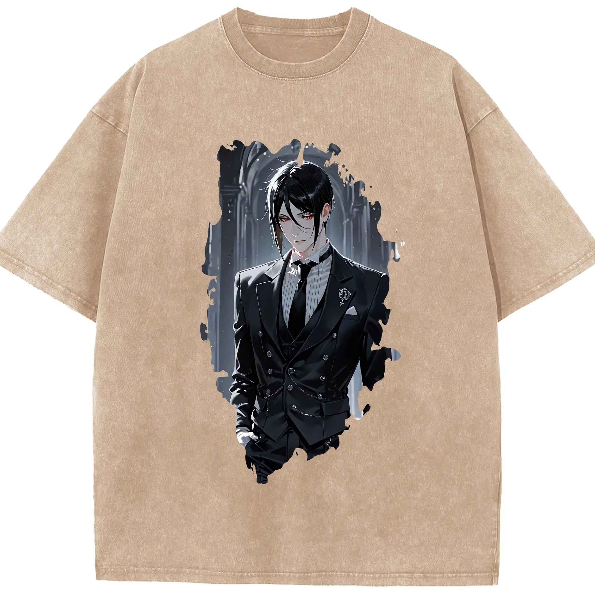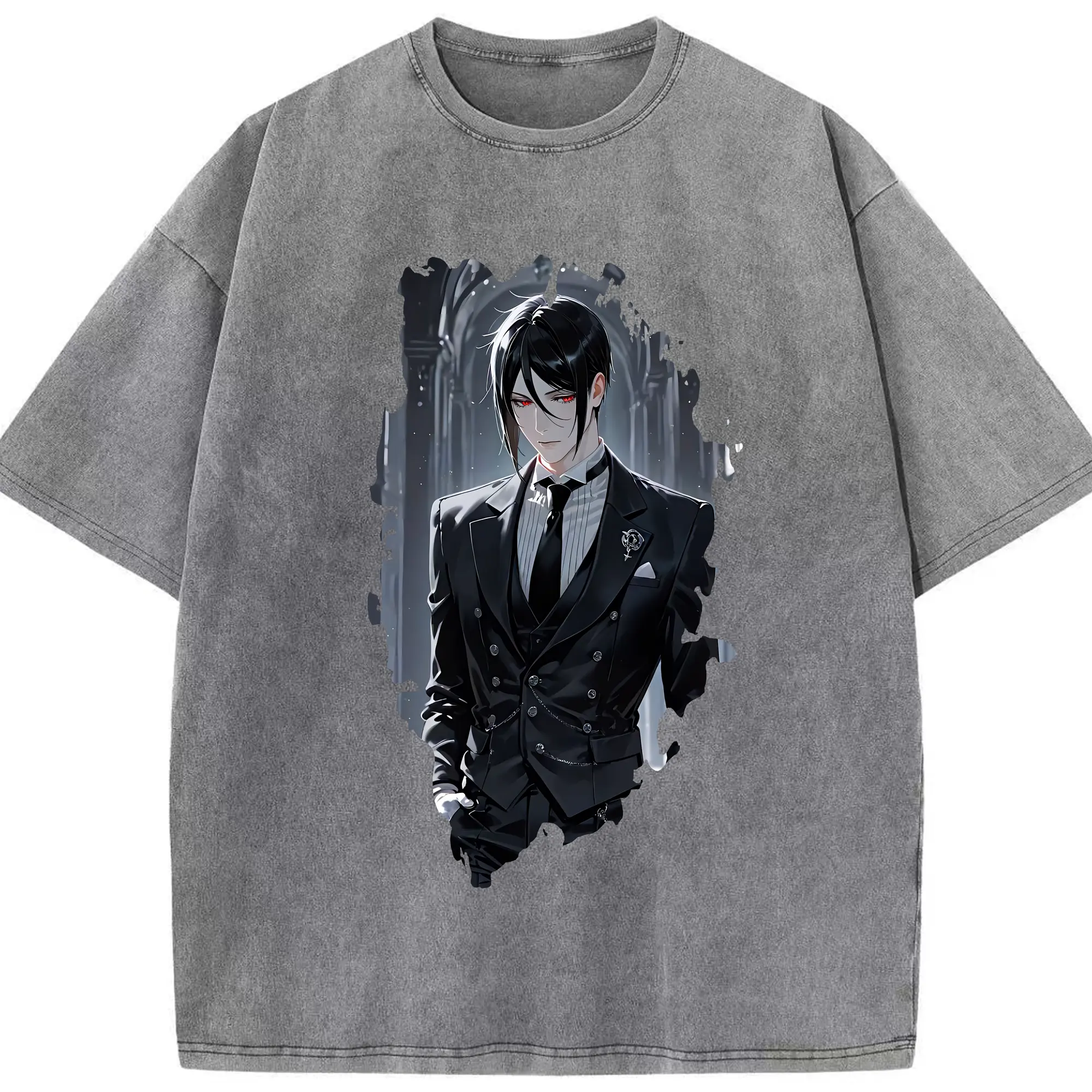黒執事 グッズ,セバスチャン・ミカエリス - 綿100% ヴィンテージ風 半袖Tシャツ ・ 背面プリント ・ 柔らか肌触り ・ 通気性 快適 ・ スポーツ カジュアル 外出用