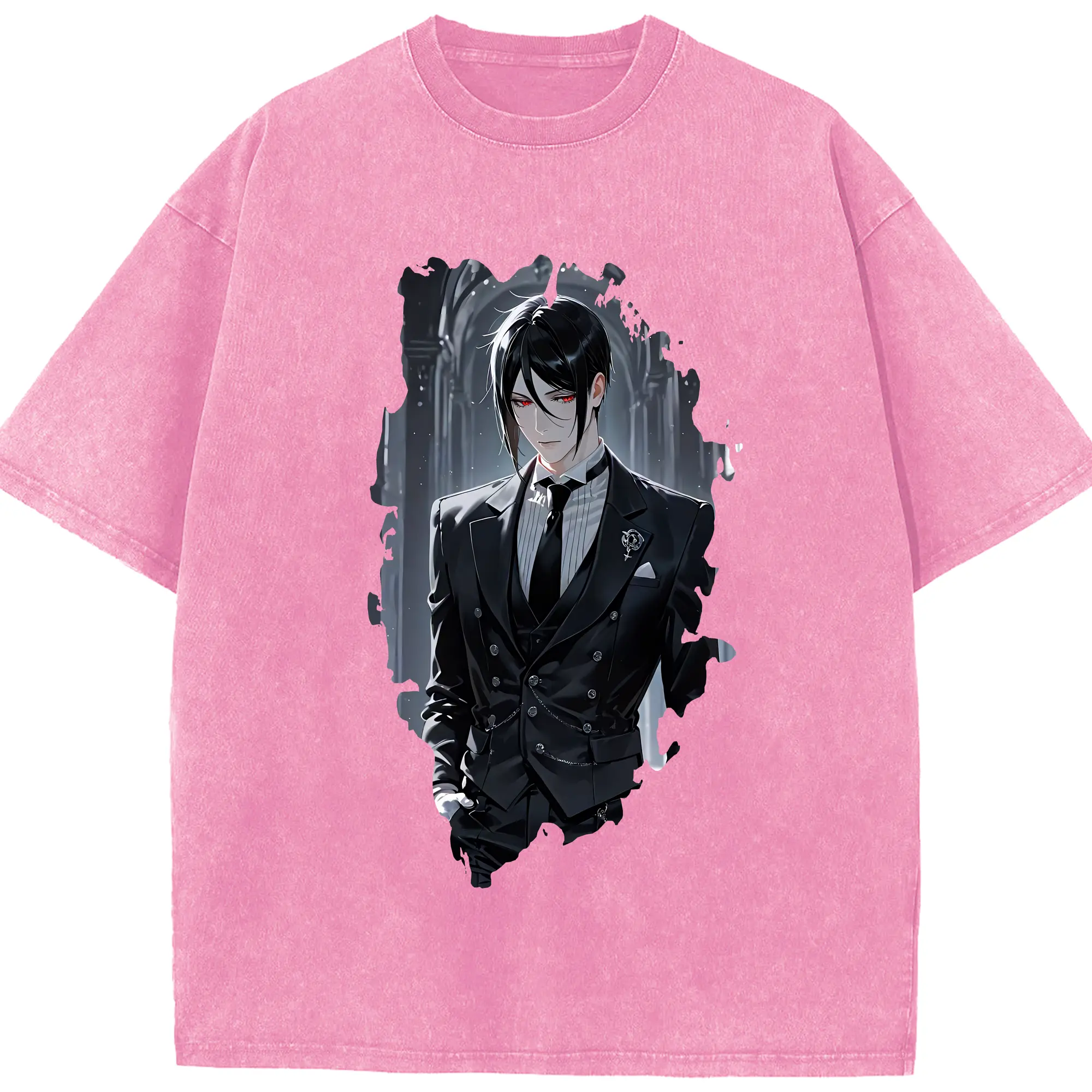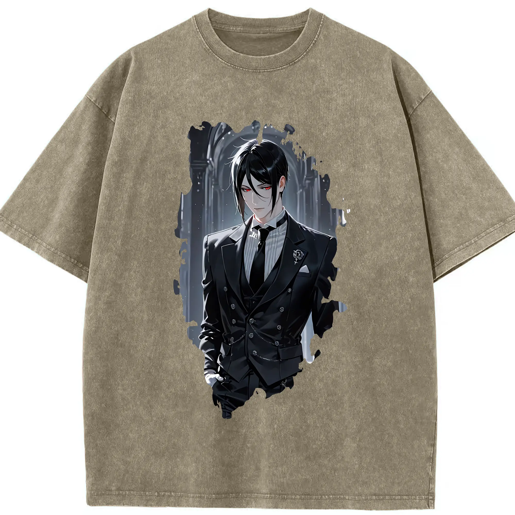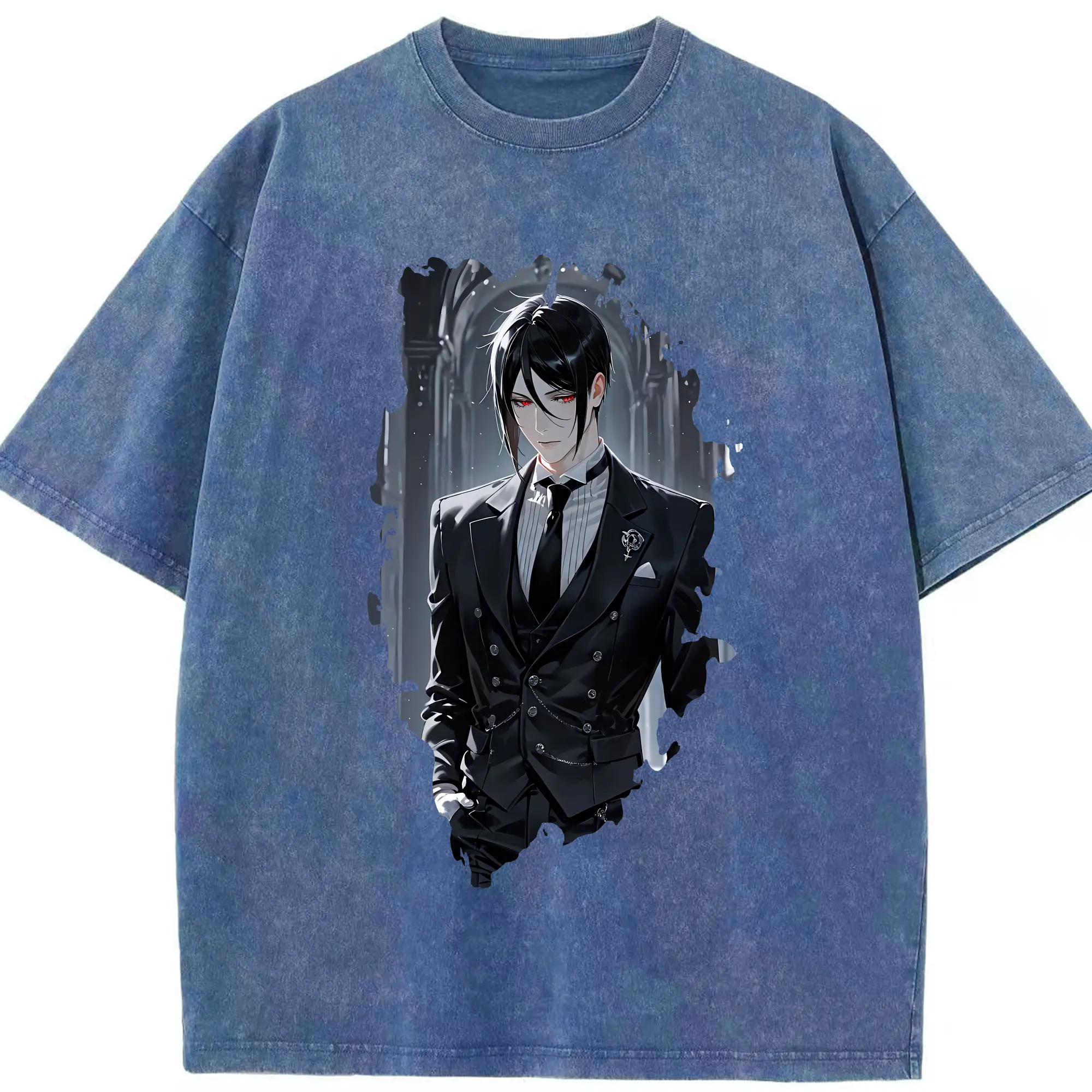 黒執事 グッズ,セバスチャン・ミカエリス - 綿100% ヴィンテージ風 半袖Tシャツ ・ 背面プリント ・ 柔らか肌触り ・ 通気性 快適 ・ スポーツ カジュアル 外出用