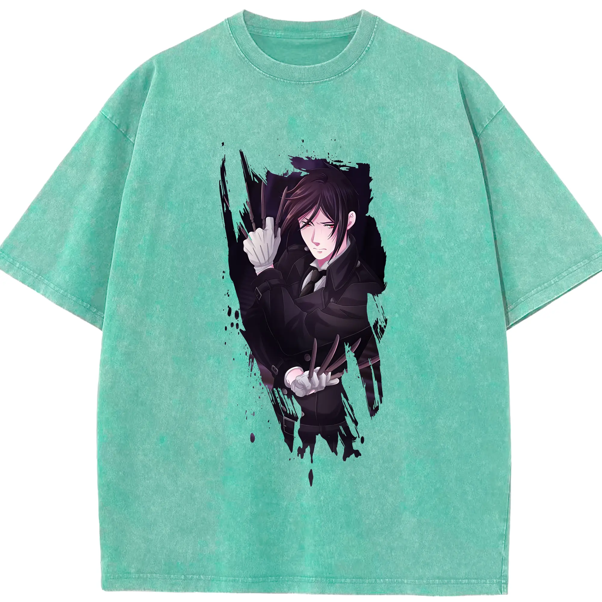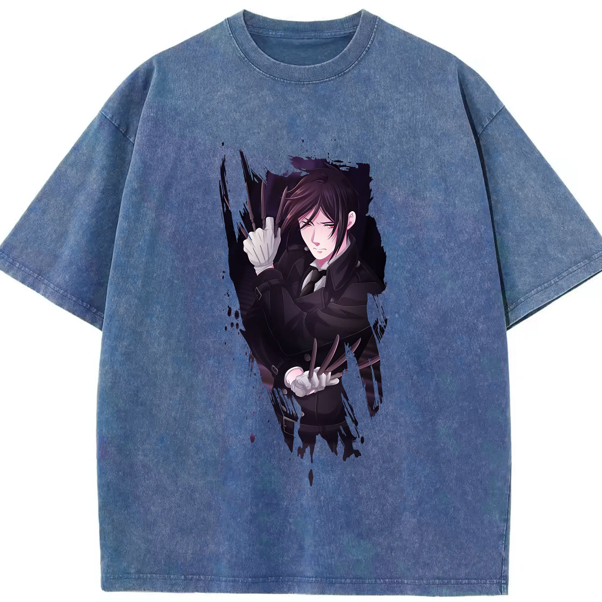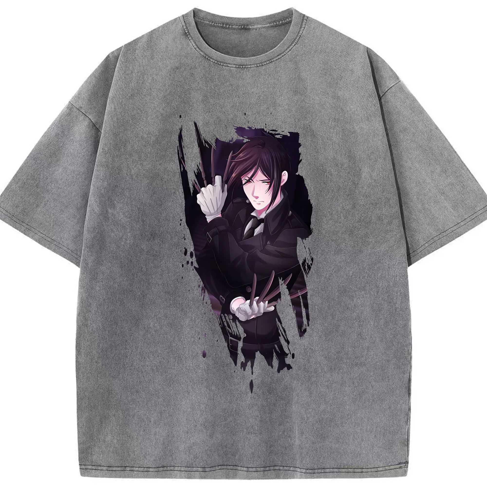 黒執事 グッズ,セバスチャン・ミカエリス - 綿100% ヴィンテージ風 半袖Tシャツ ・ 背面プリント ・ 柔らか肌触り ・ 通気性 快適 ・ スポーツ カジュアル 外出用