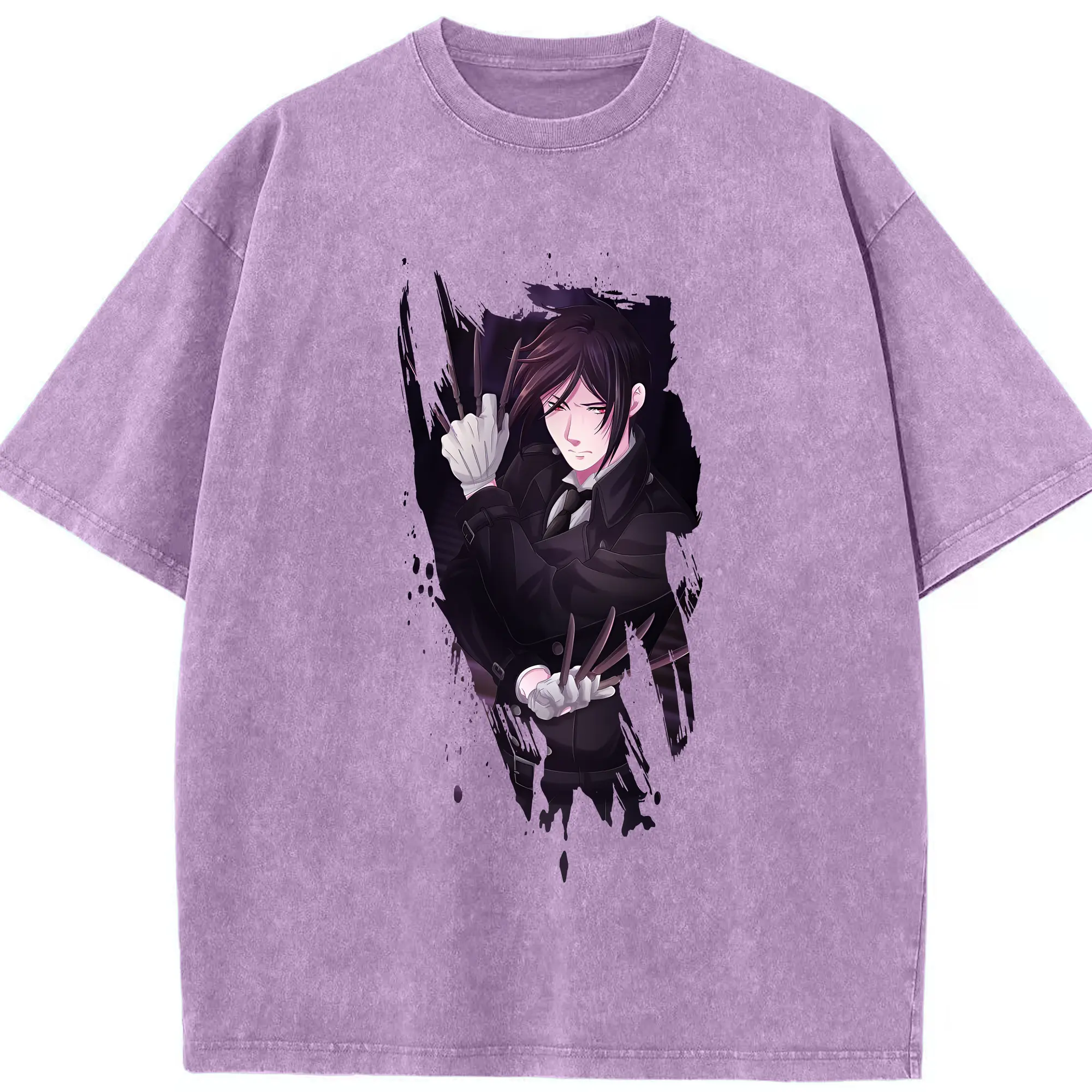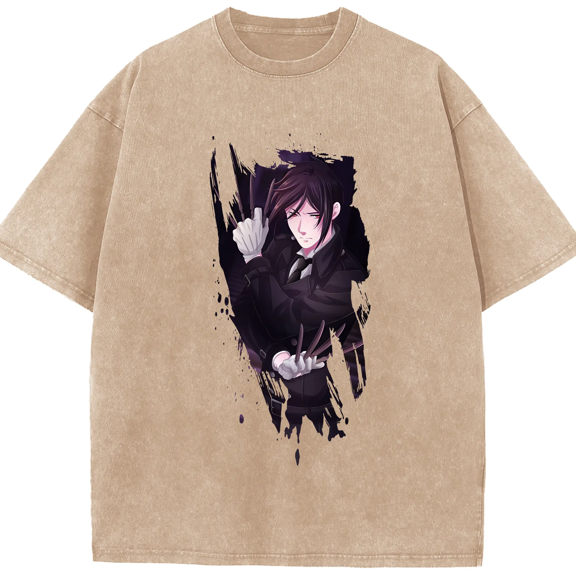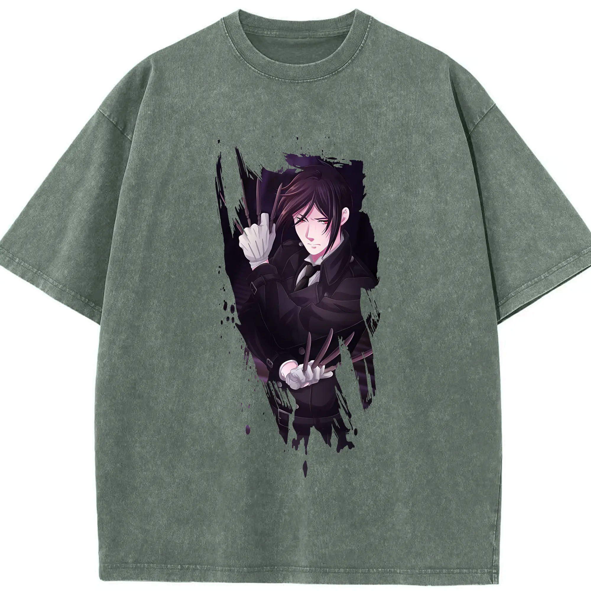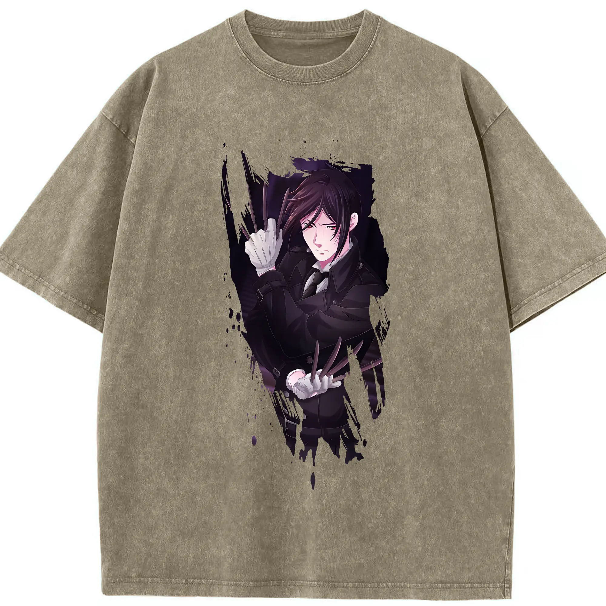 黒執事 グッズ,セバスチャン・ミカエリス - 綿100% ヴィンテージ風 半袖Tシャツ ・ 背面プリント ・ 柔らか肌触り ・ 通気性 快適 ・ スポーツ カジュアル 外出用