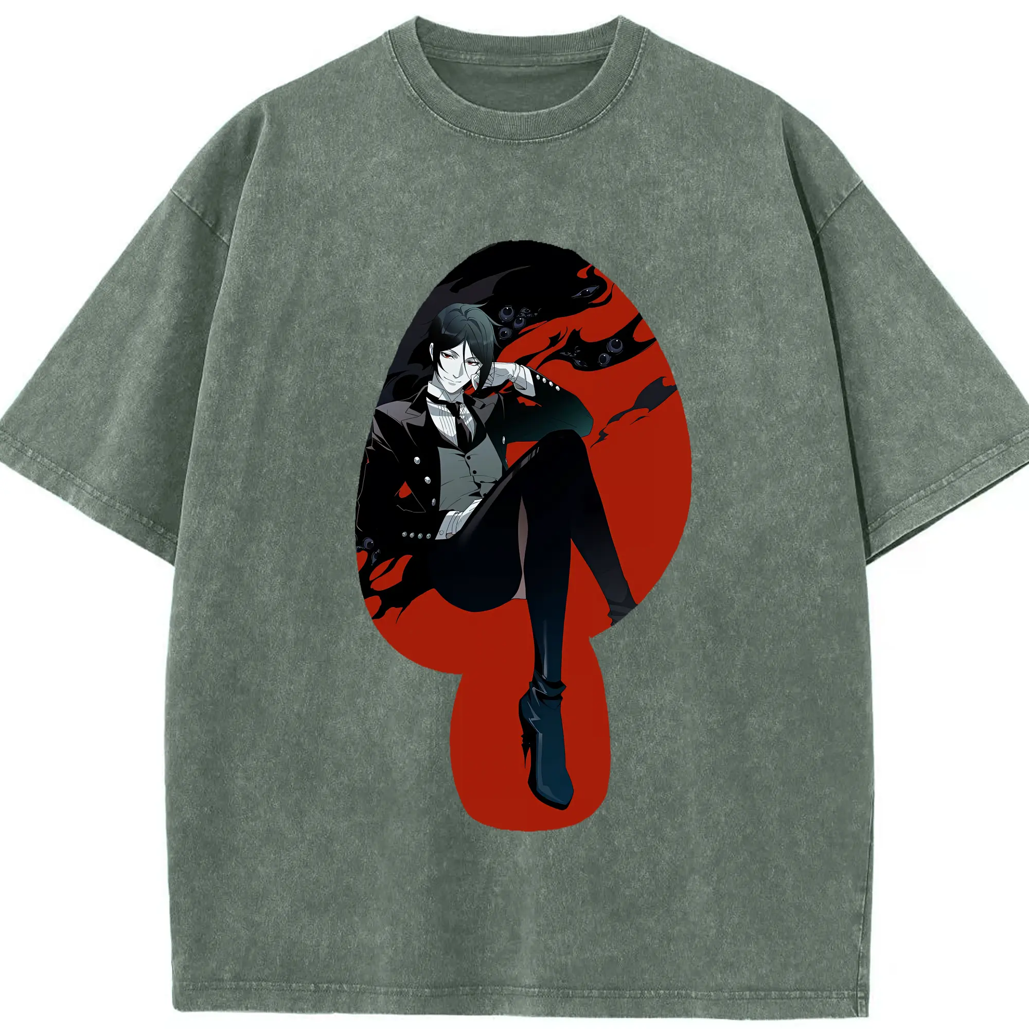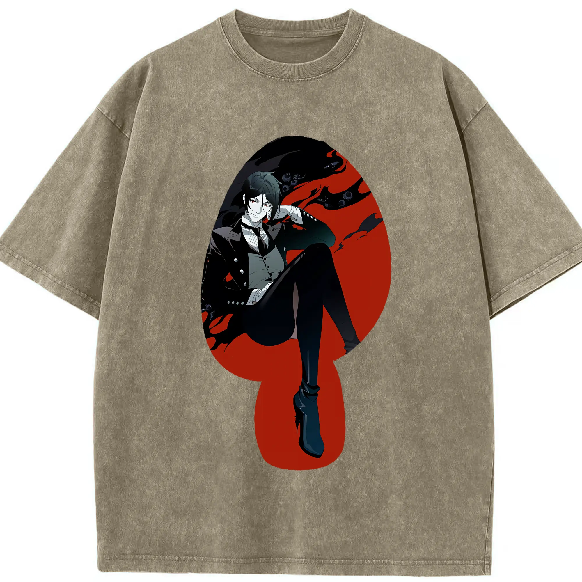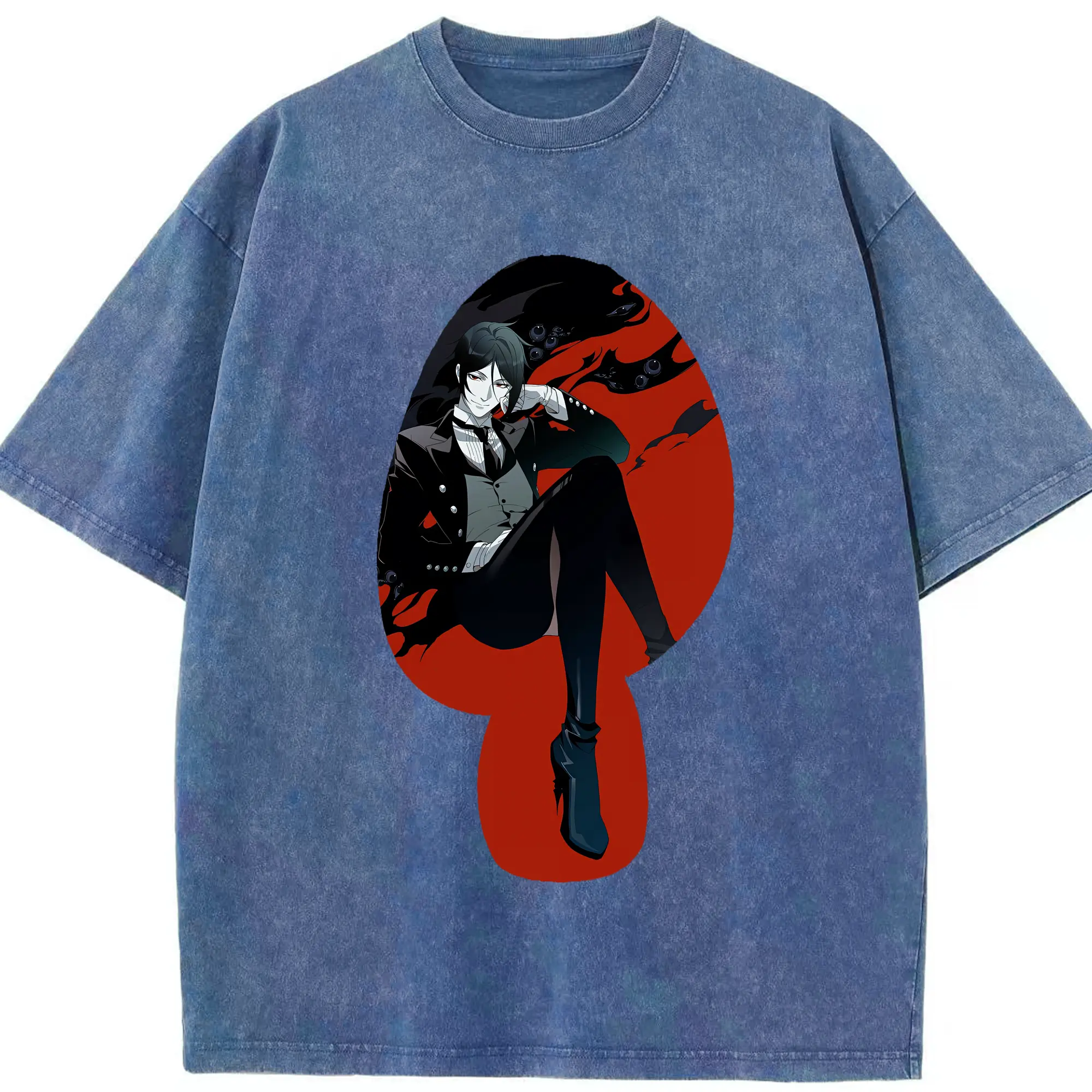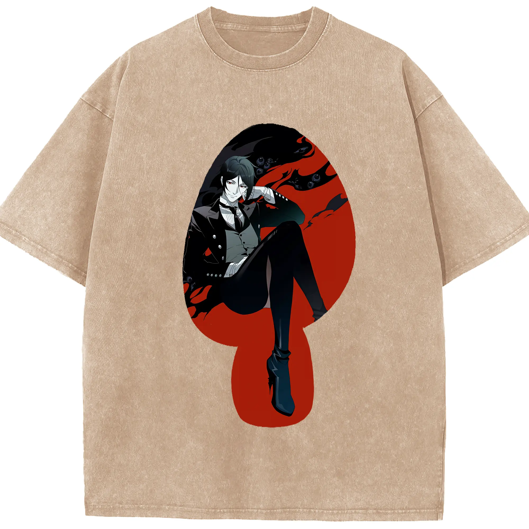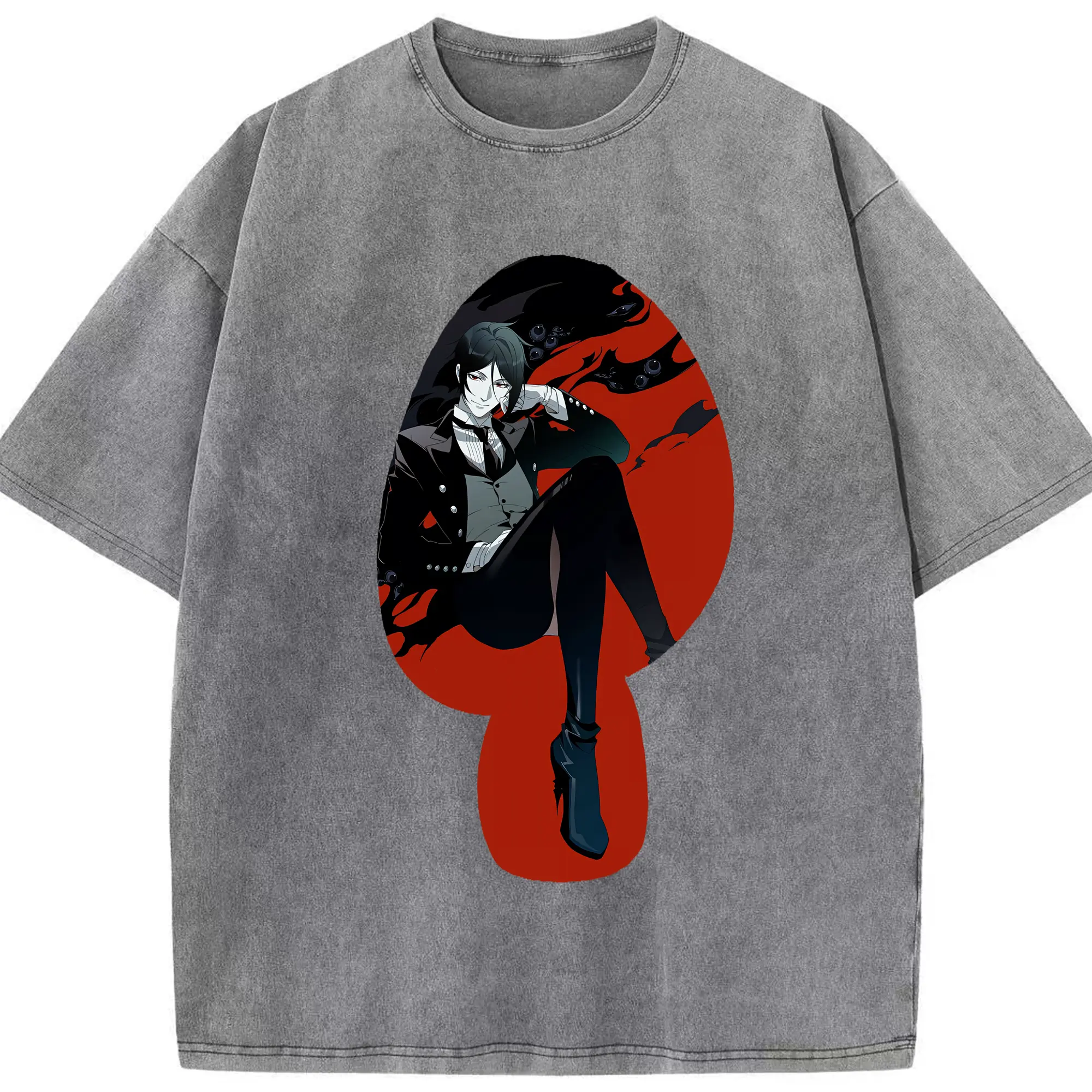 黒執事 グッズ,セバスチャン・ミカエリス - 綿100% ヴィンテージ風 半袖Tシャツ ・ 背面プリント ・ 柔らか肌触り ・ 通気性 快適 ・ スポーツ カジュアル 外出用