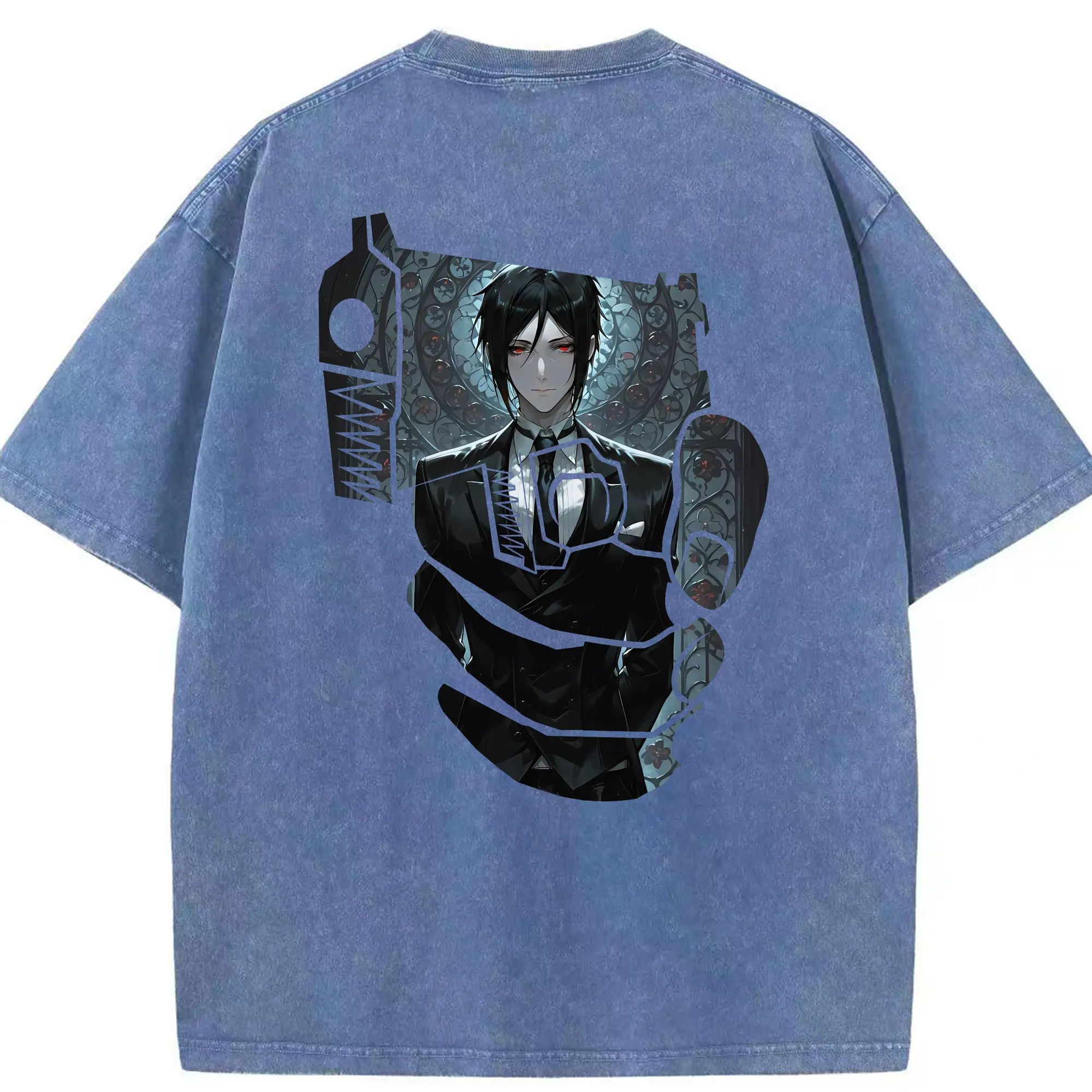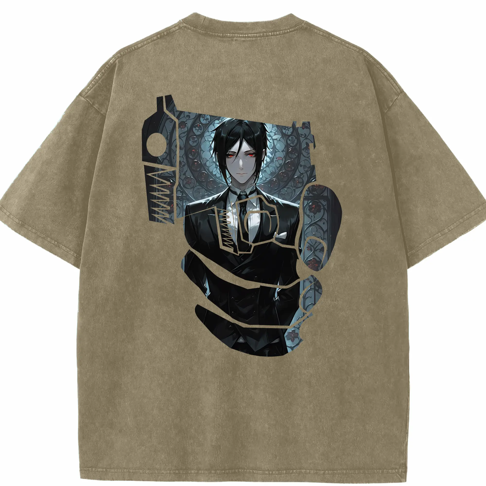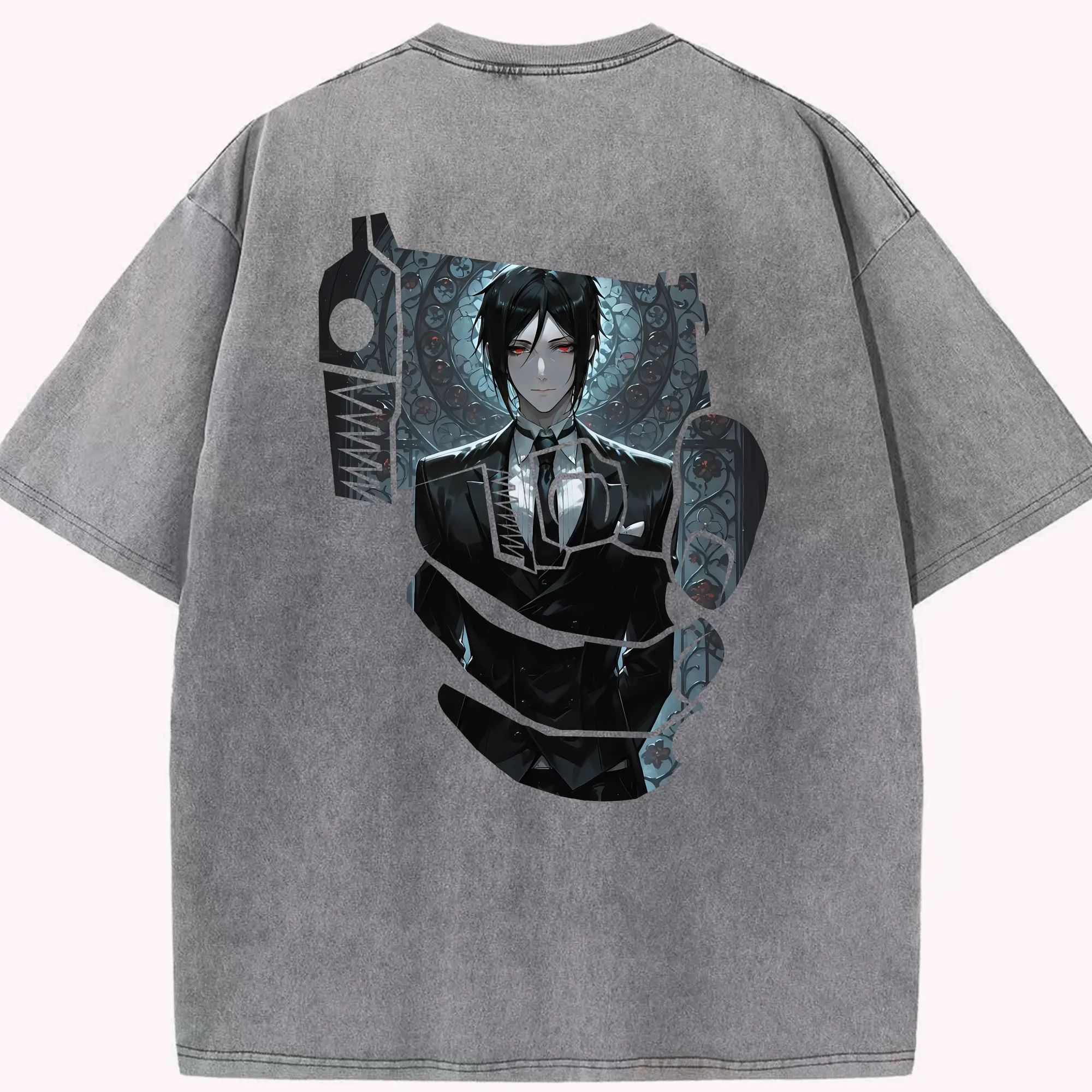 黒執事 グッズ,セバスチャン・ミカエリス - 綿100% ヴィンテージ風 半袖Tシャツ ・ フロントプリント ・ 柔らか肌触り ・ 通気性 快適 ・ スポーツ カジュアル 外出用