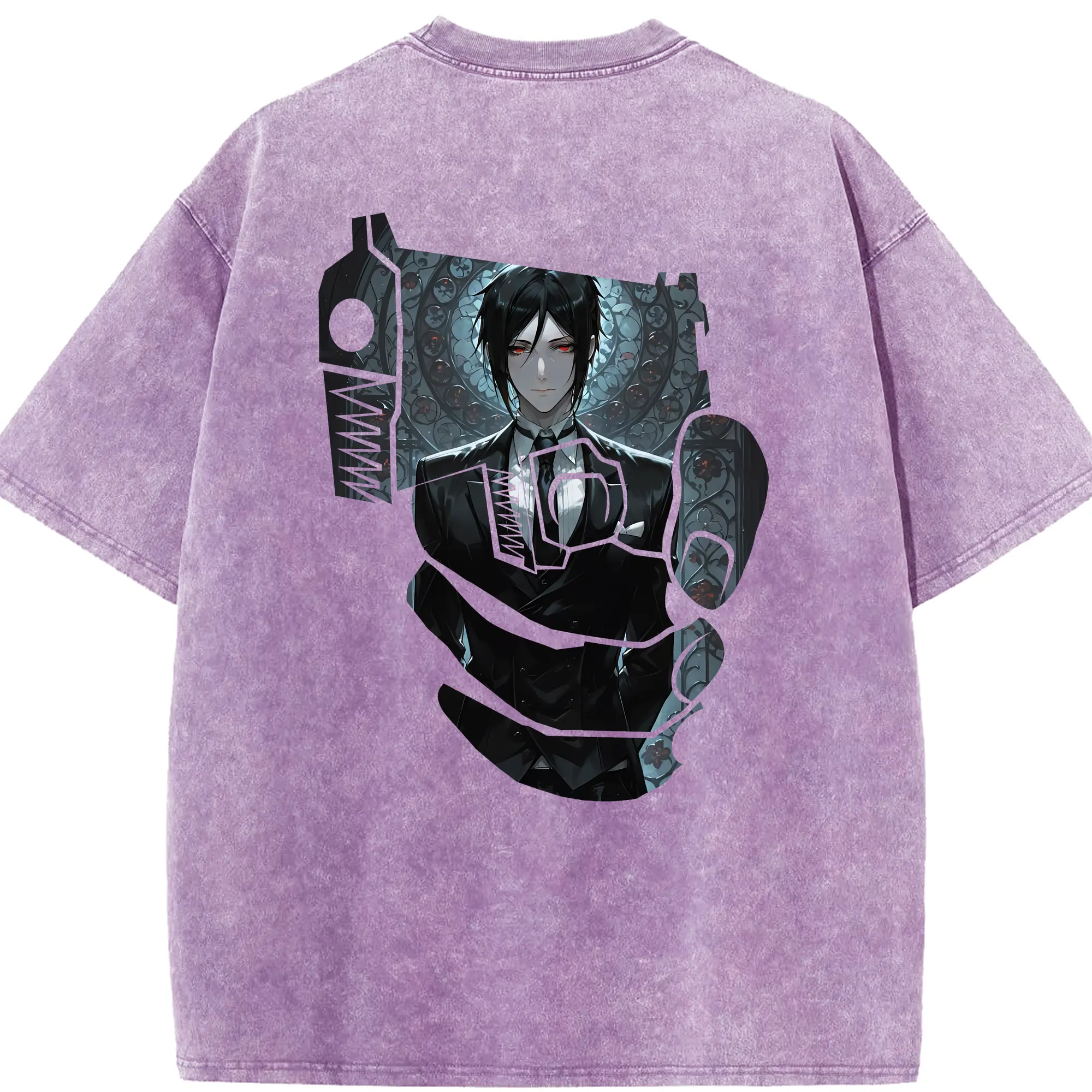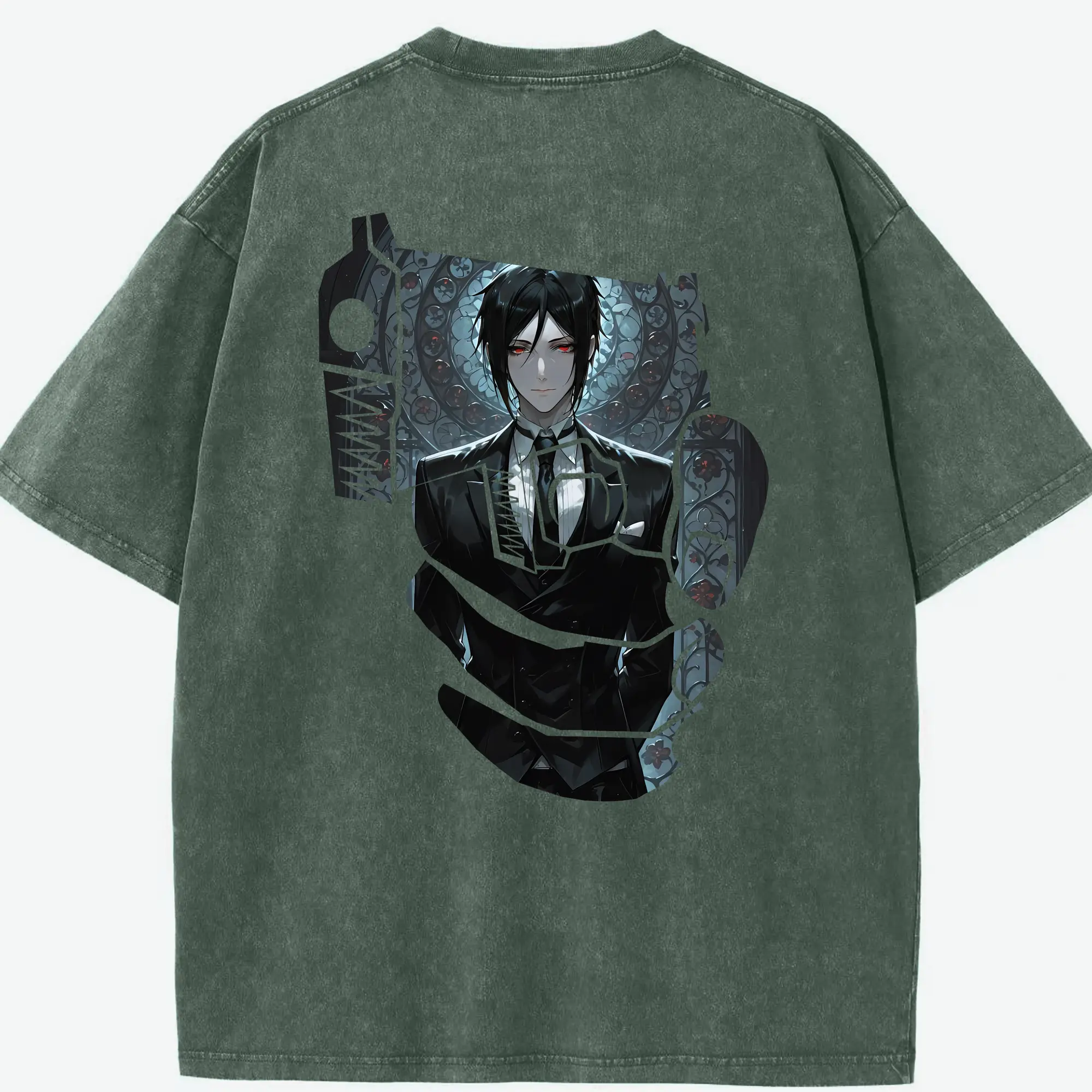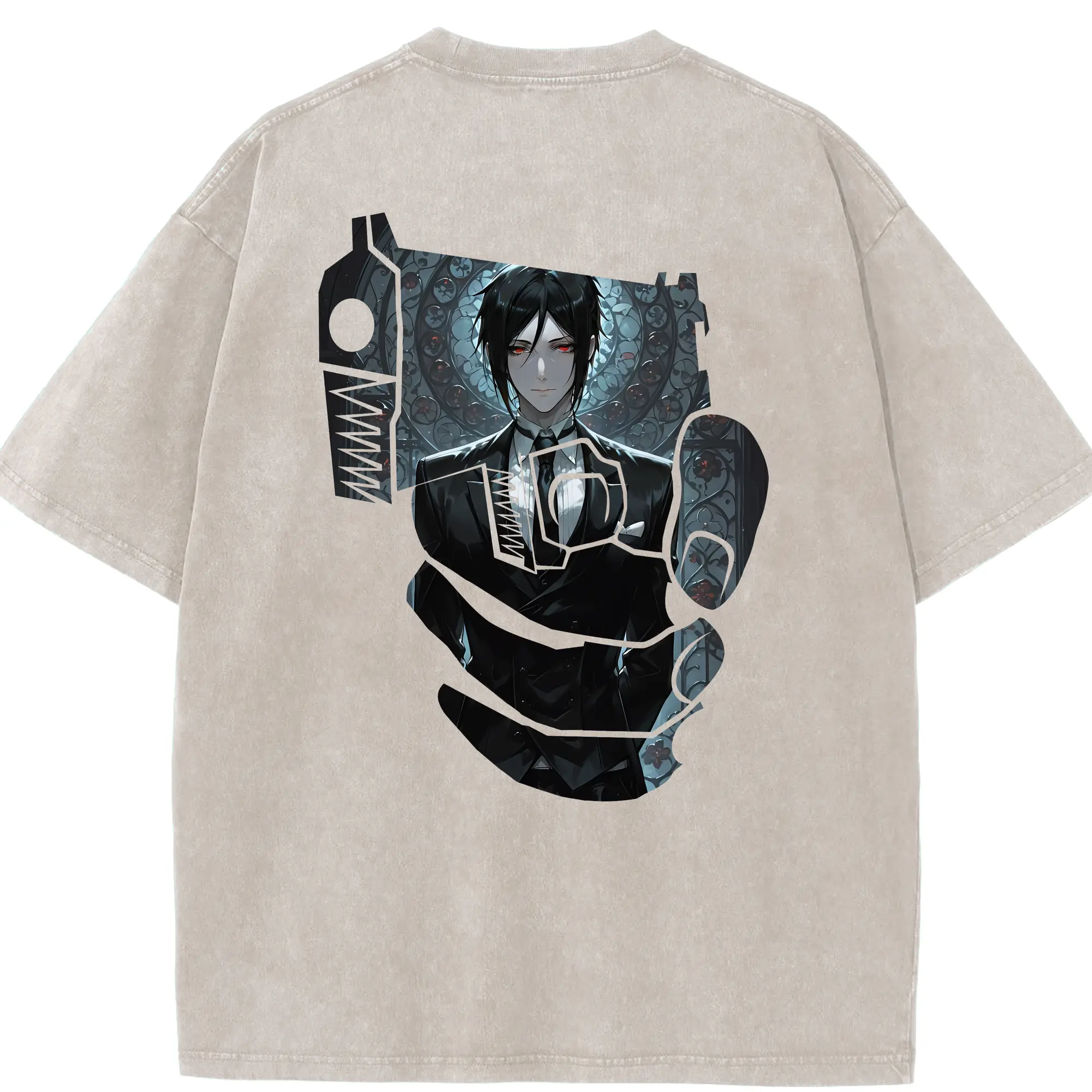 黒執事 グッズ,セバスチャン・ミカエリス - 綿100% ヴィンテージ風 半袖Tシャツ ・ フロントプリント ・ 柔らか肌触り ・ 通気性 快適 ・ スポーツ カジュアル 外出用