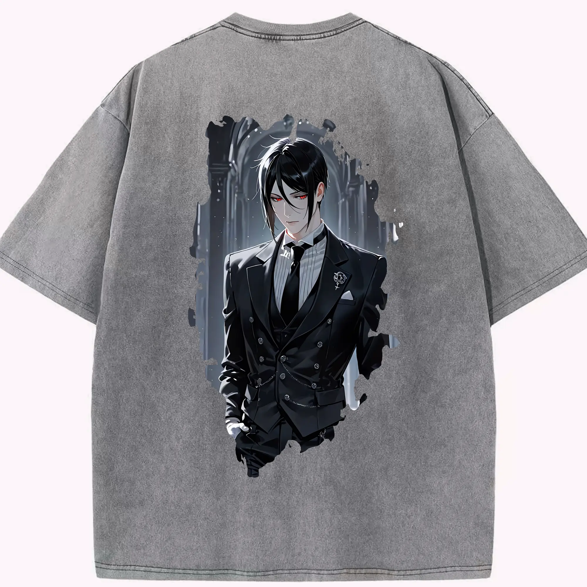 黒執事 グッズ,セバスチャン・ミカエリス - 綿100% ヴィンテージ風 半袖Tシャツ ・ フロントプリント ・ 柔らか肌触り ・ 通気性 快適 ・ スポーツ カジュアル 外出用