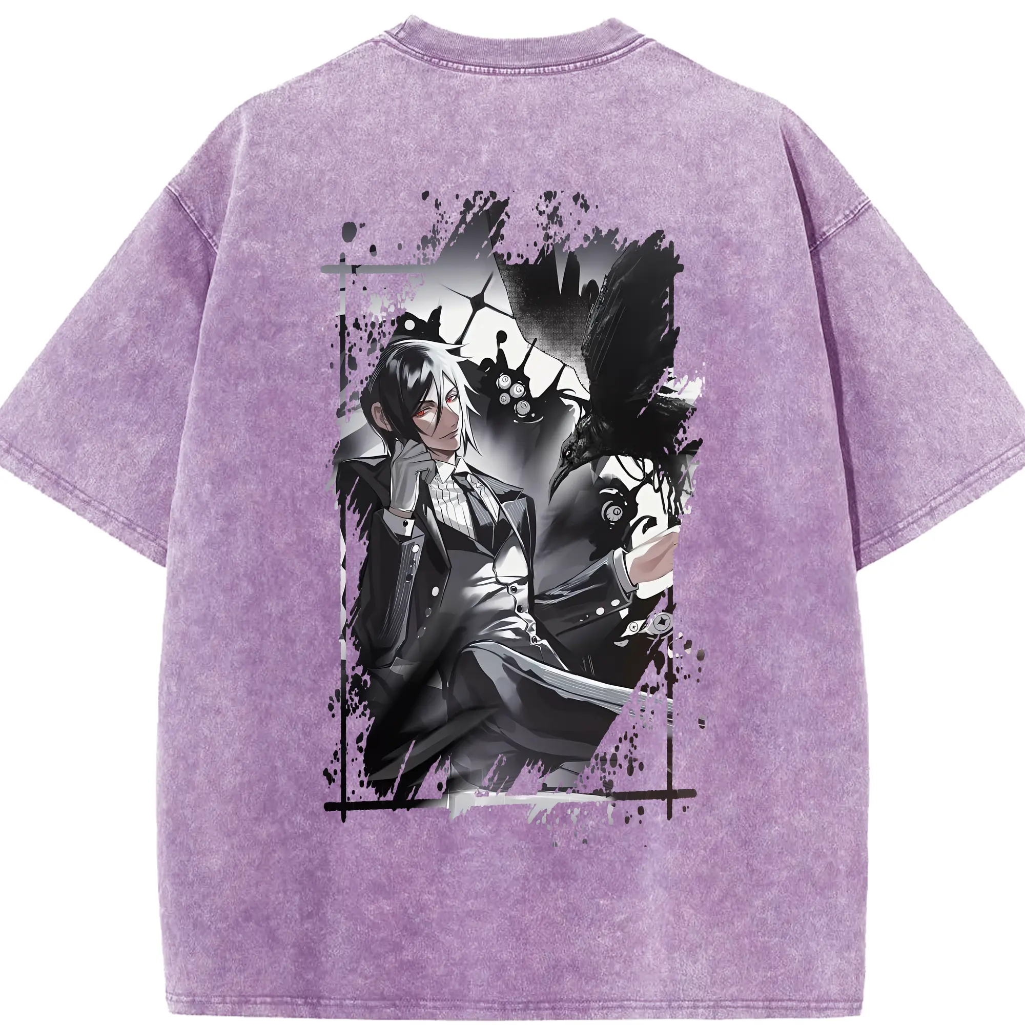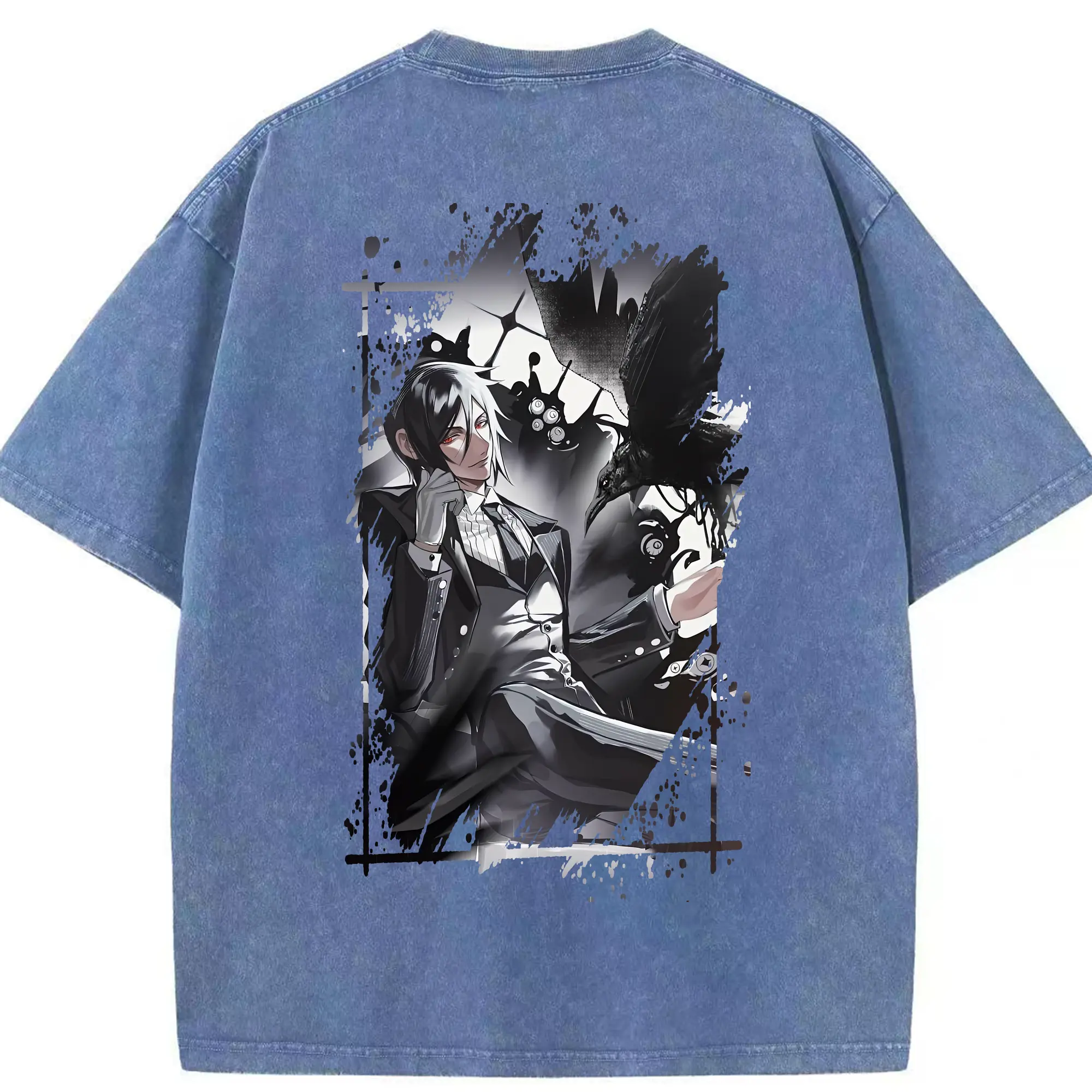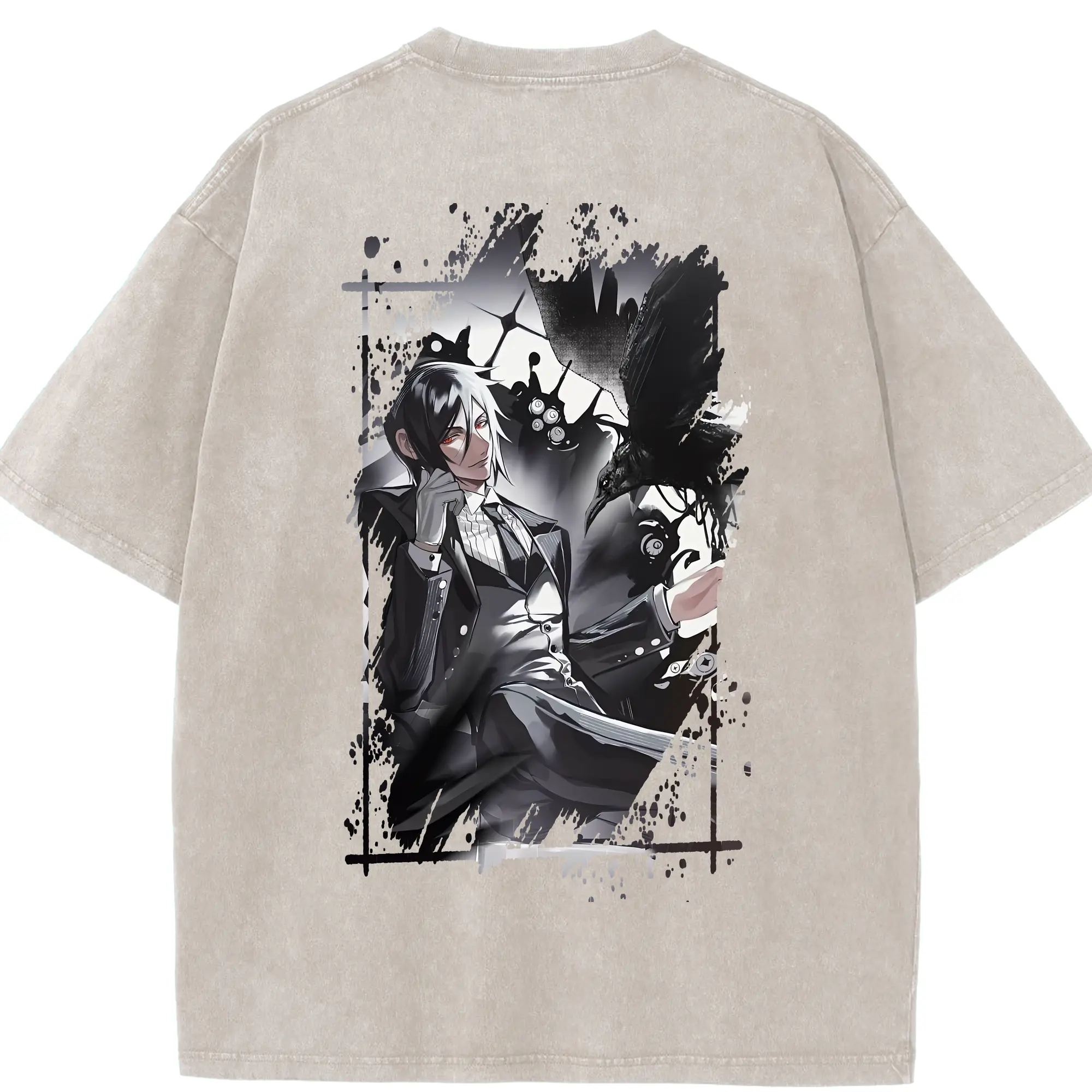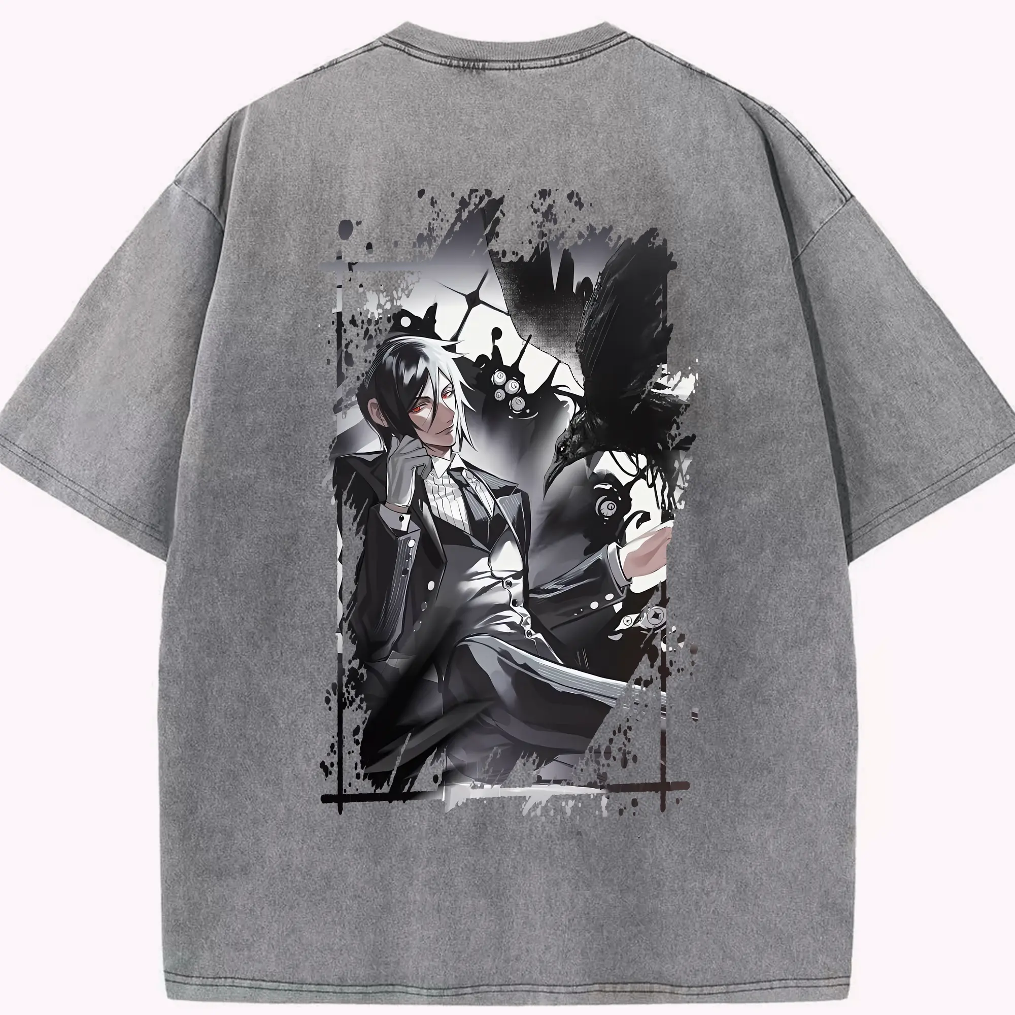 黒執事 グッズ,セバスチャン・ミカエリス - 綿100% ヴィンテージ風 半袖Tシャツ ・ フロントプリント ・ 柔らか肌触り ・ 通気性 快適 ・ スポーツ カジュアル 外出用