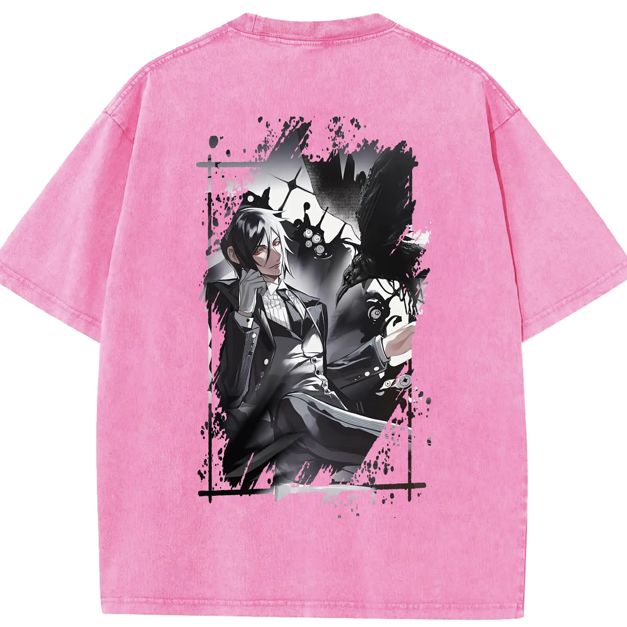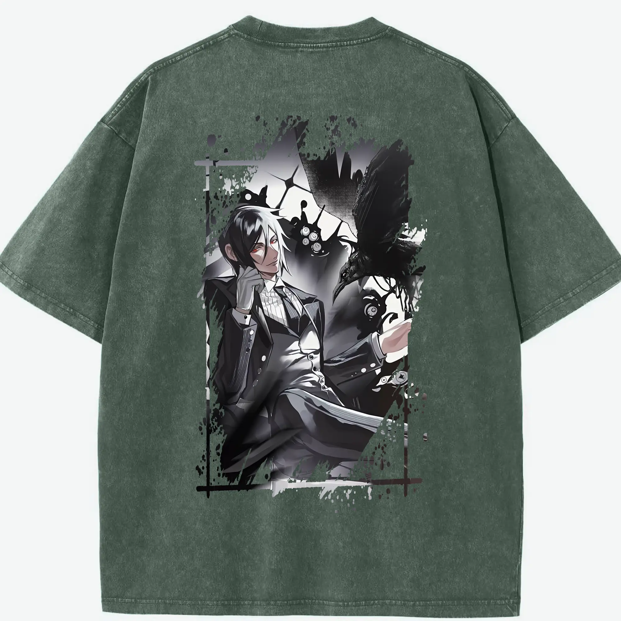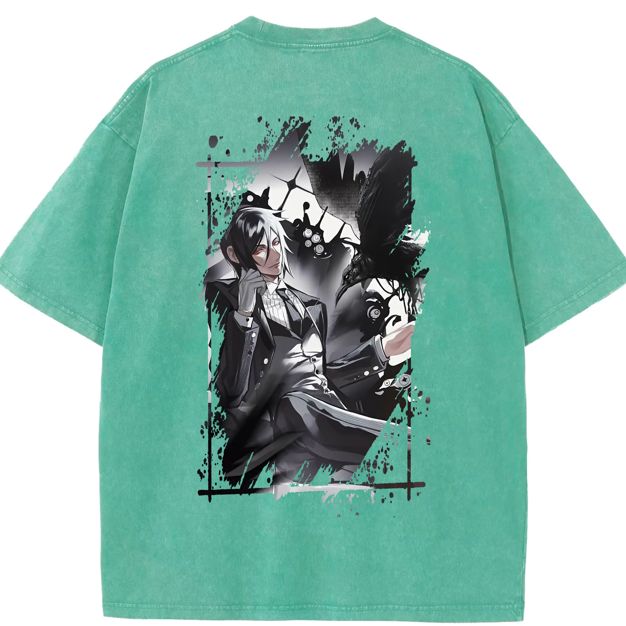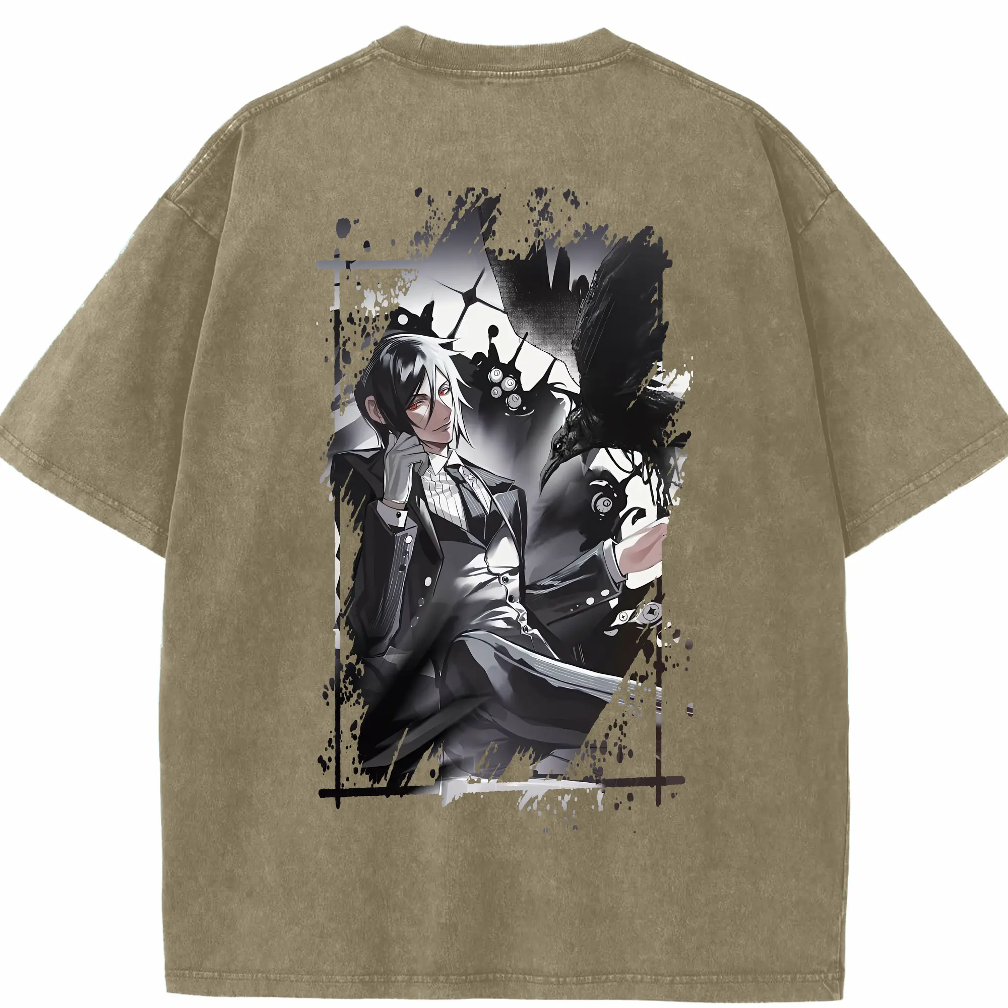 黒執事 グッズ,セバスチャン・ミカエリス - 綿100% ヴィンテージ風 半袖Tシャツ ・ フロントプリント ・ 柔らか肌触り ・ 通気性 快適 ・ スポーツ カジュアル 外出用