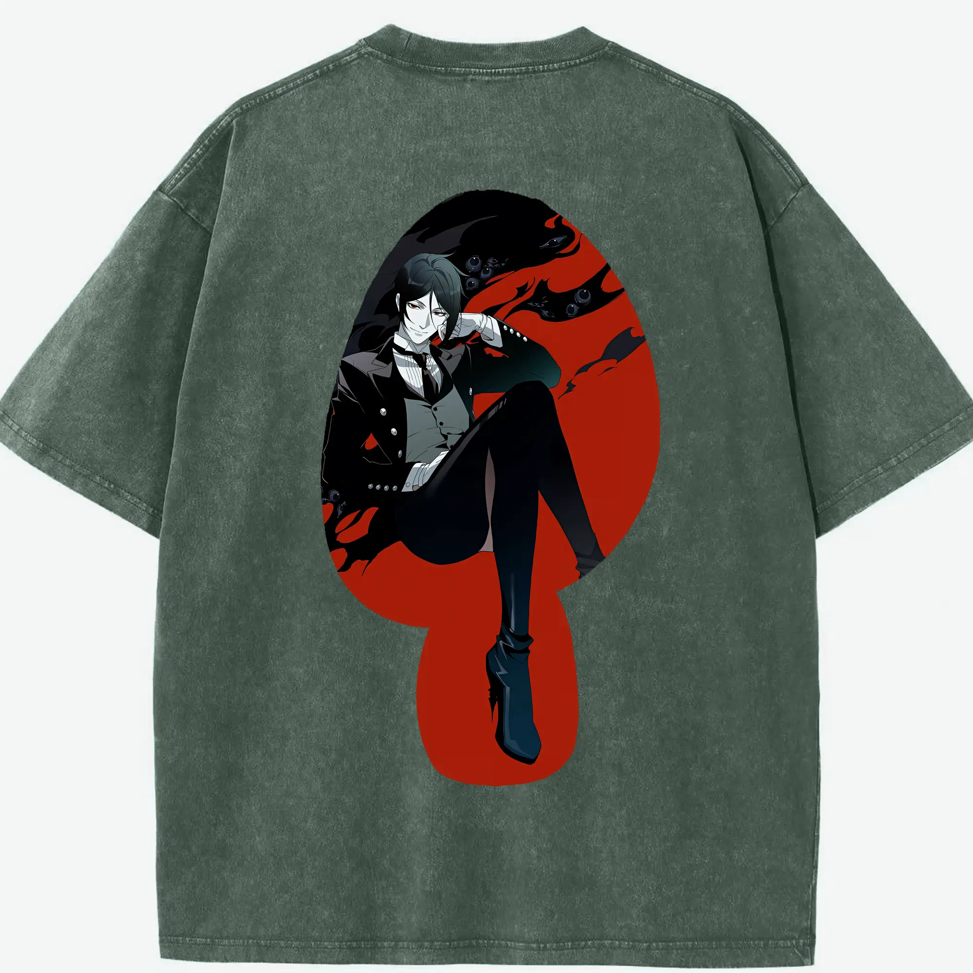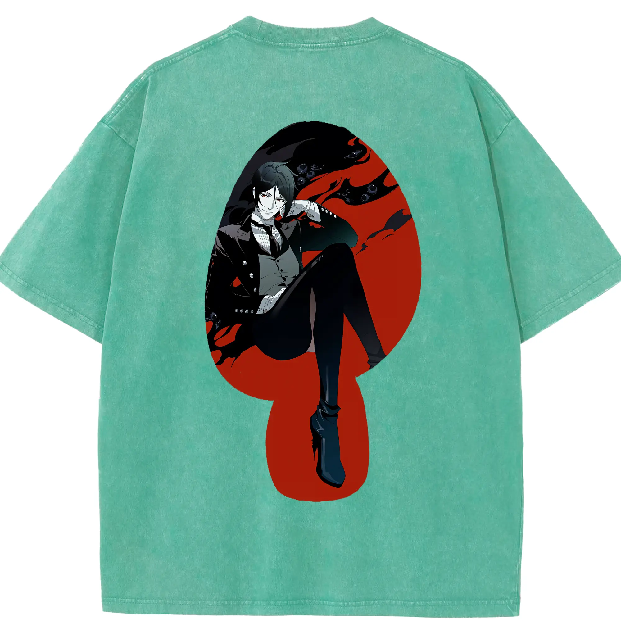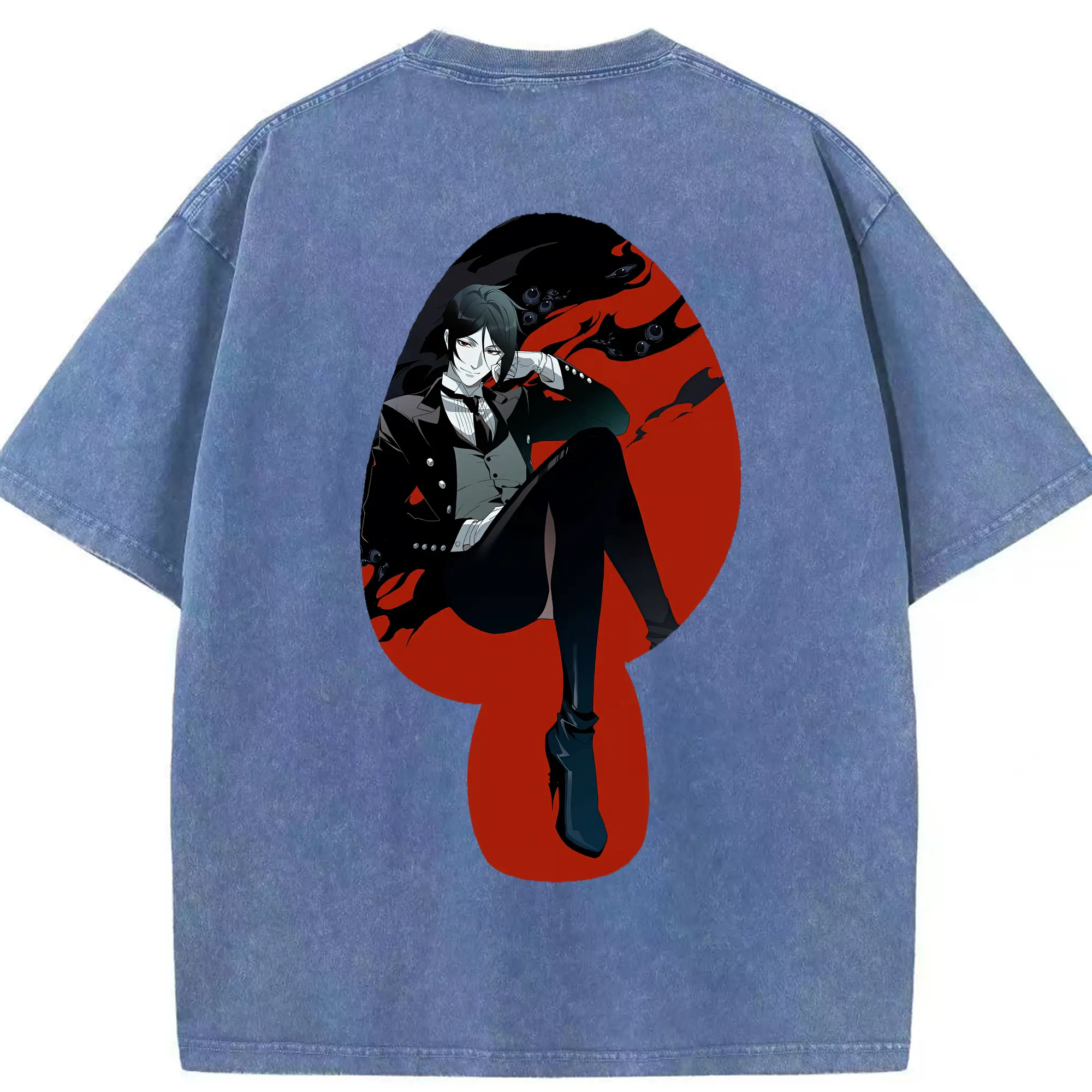 黒執事 グッズ,セバスチャン・ミカエリス - 綿100% ヴィンテージ風 半袖Tシャツ ・ フロントプリント ・ 柔らか肌触り ・ 通気性 快適 ・ スポーツ カジュアル 外出用