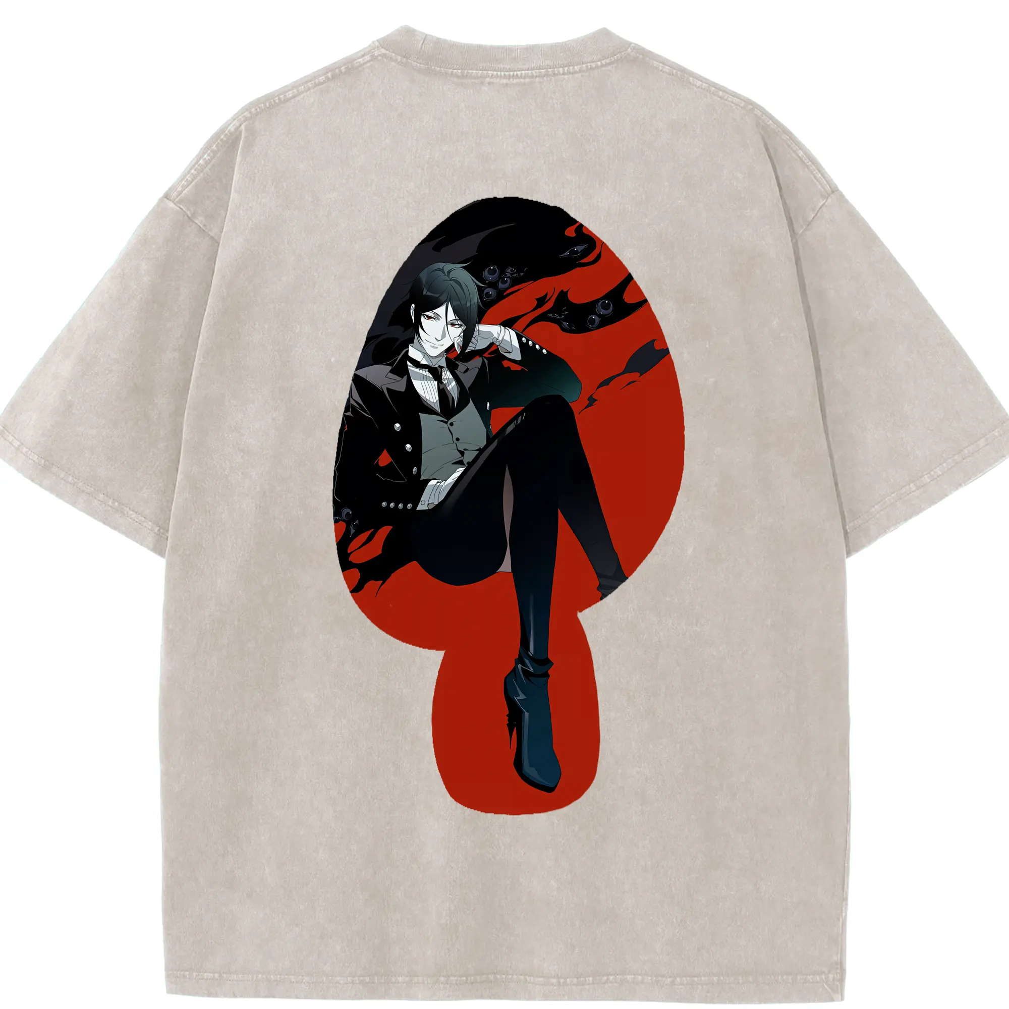黒執事 グッズ,セバスチャン・ミカエリス - 綿100% 半袖Tシャツ ・ バックプリント ・ 快適 通気性 ・ 日常使い 散歩 スポーツ用