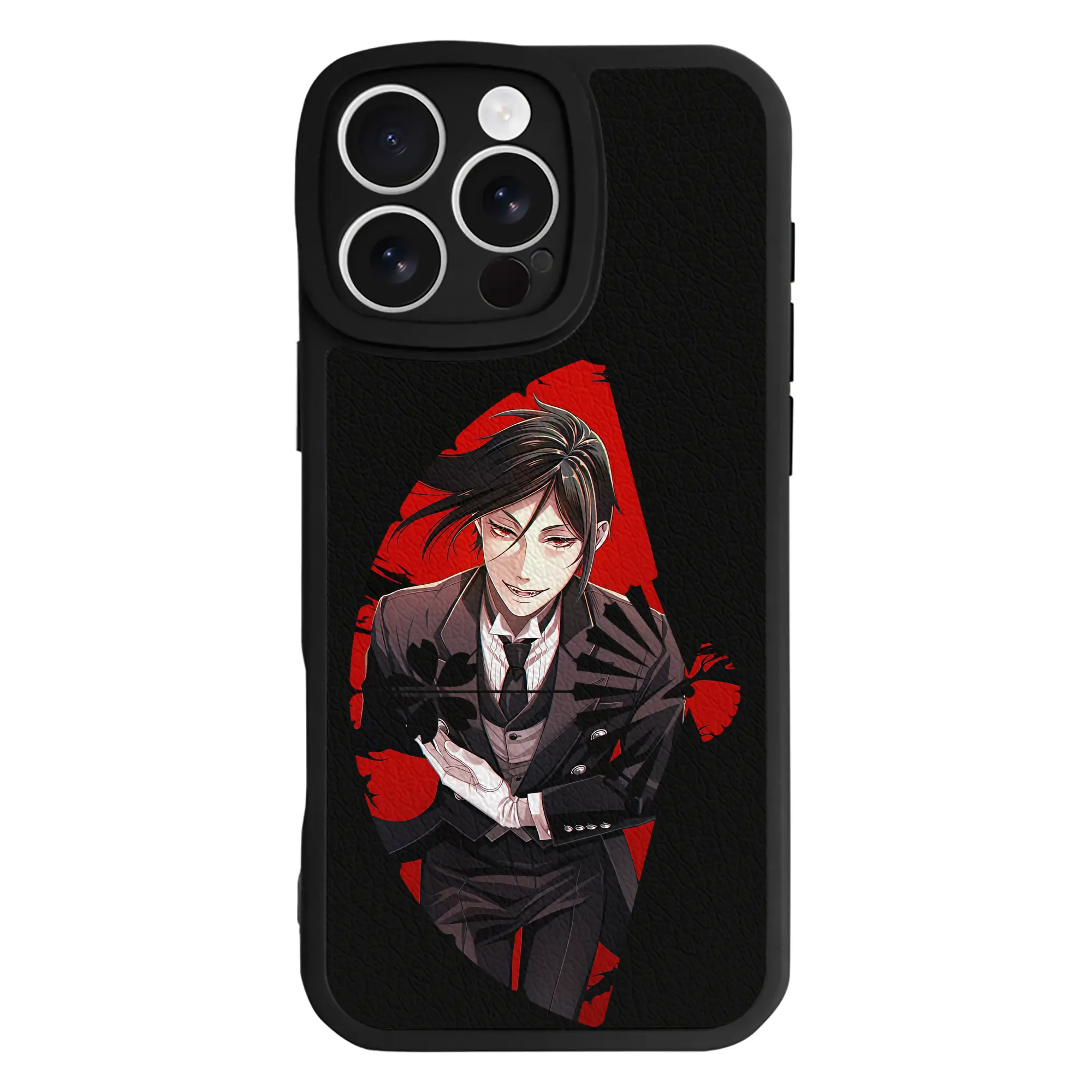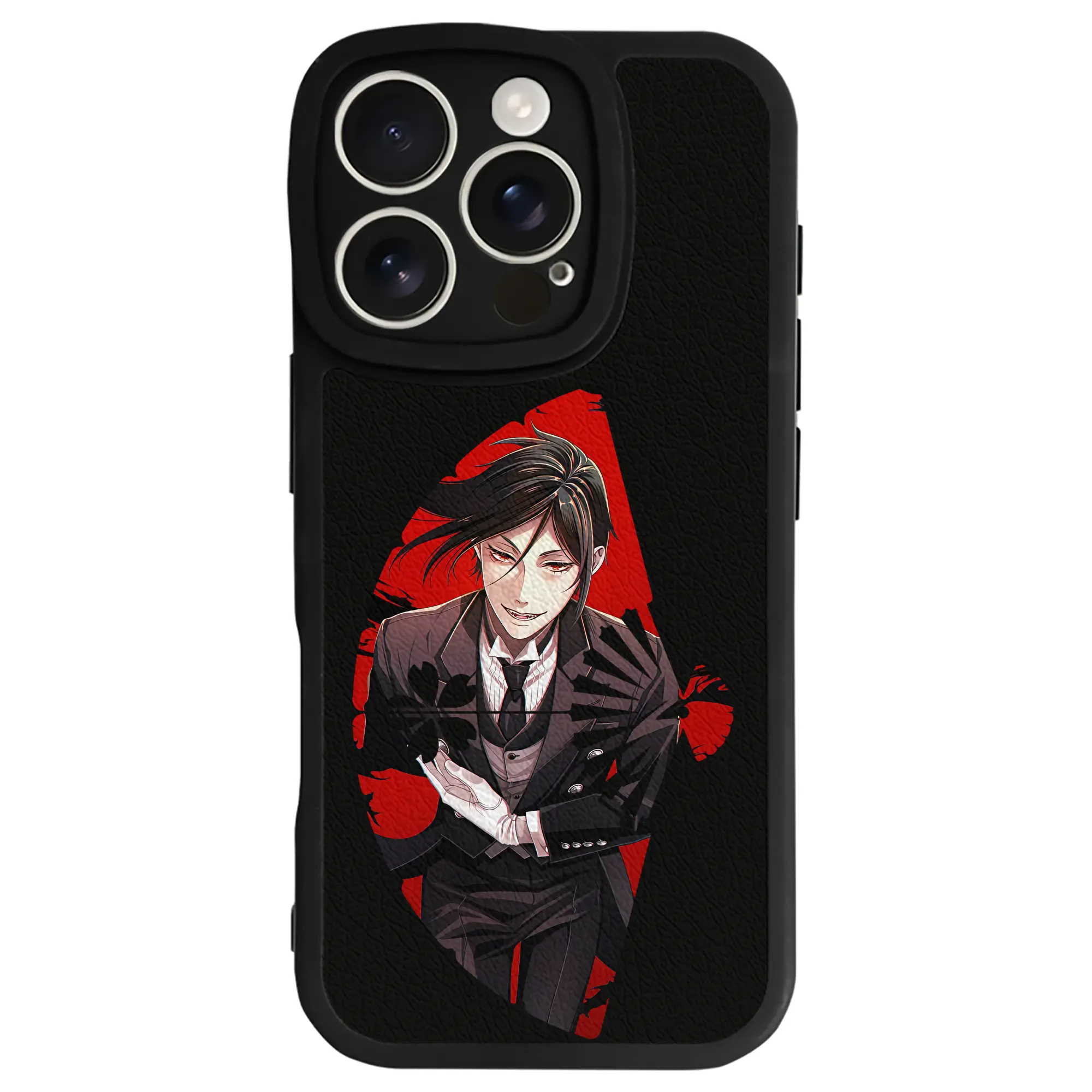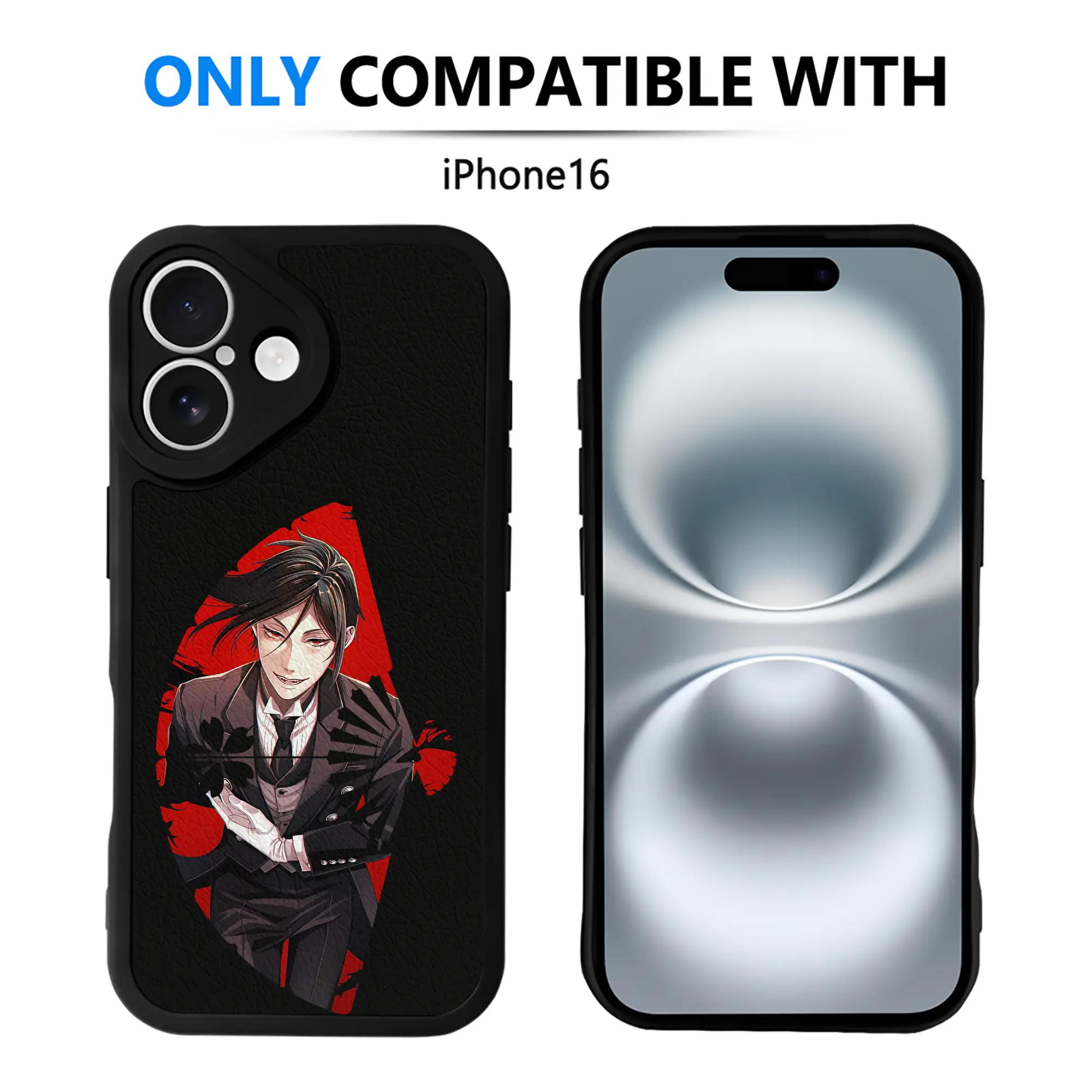 黒執事 グッズ,セバスチャン・ミカエリス - IPhone 16シリーズ対応 ・ シリコンスマホケース ・ レザー調 ・ 高精度フィット ・ 耐衝撃 ・ ワイヤレス充電対応 ・ 精密カット