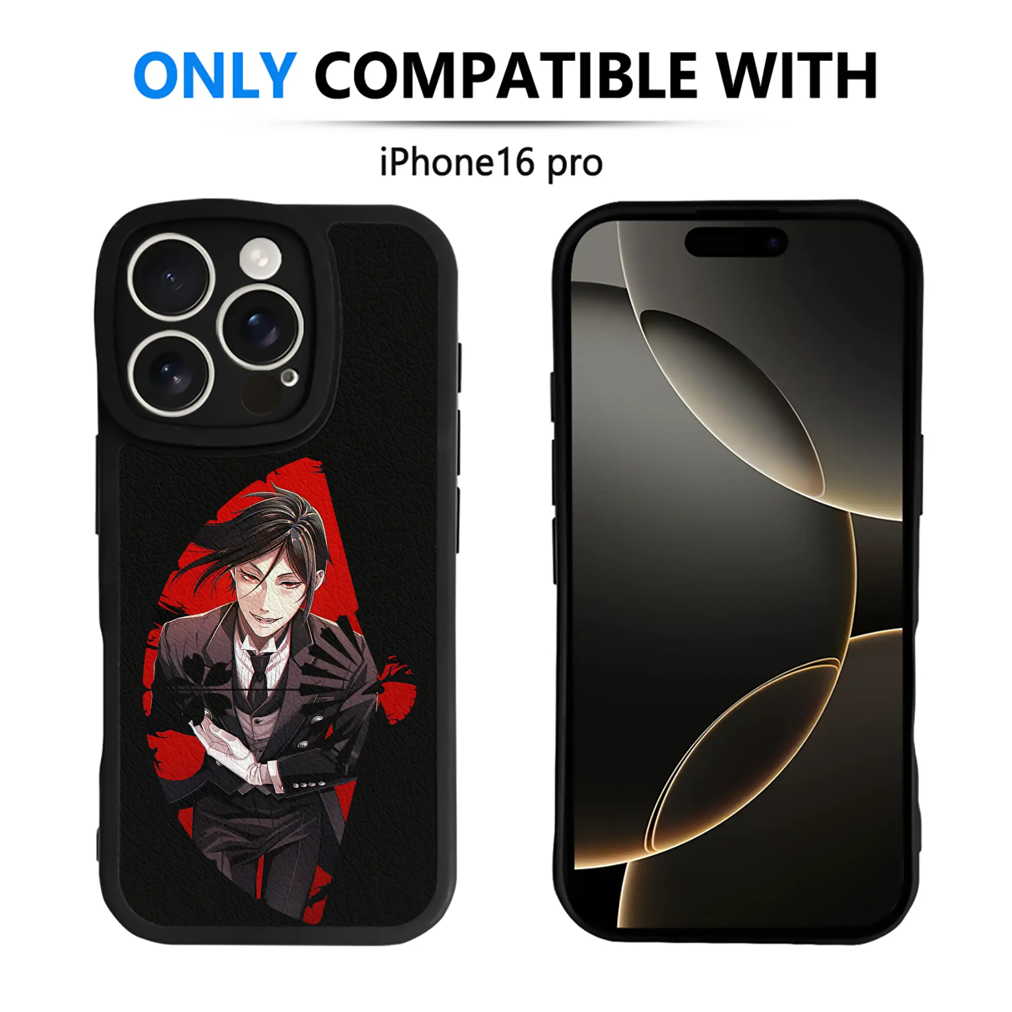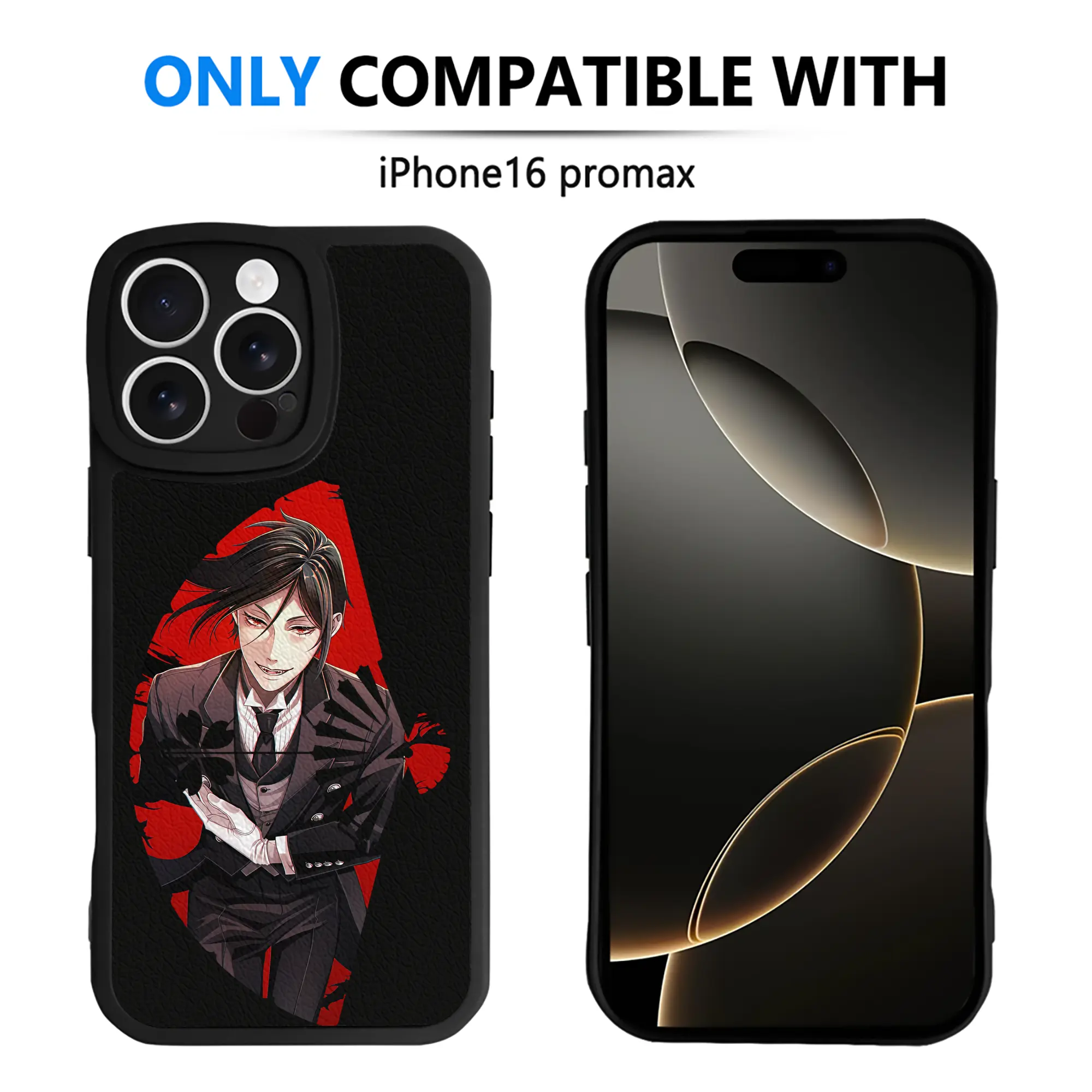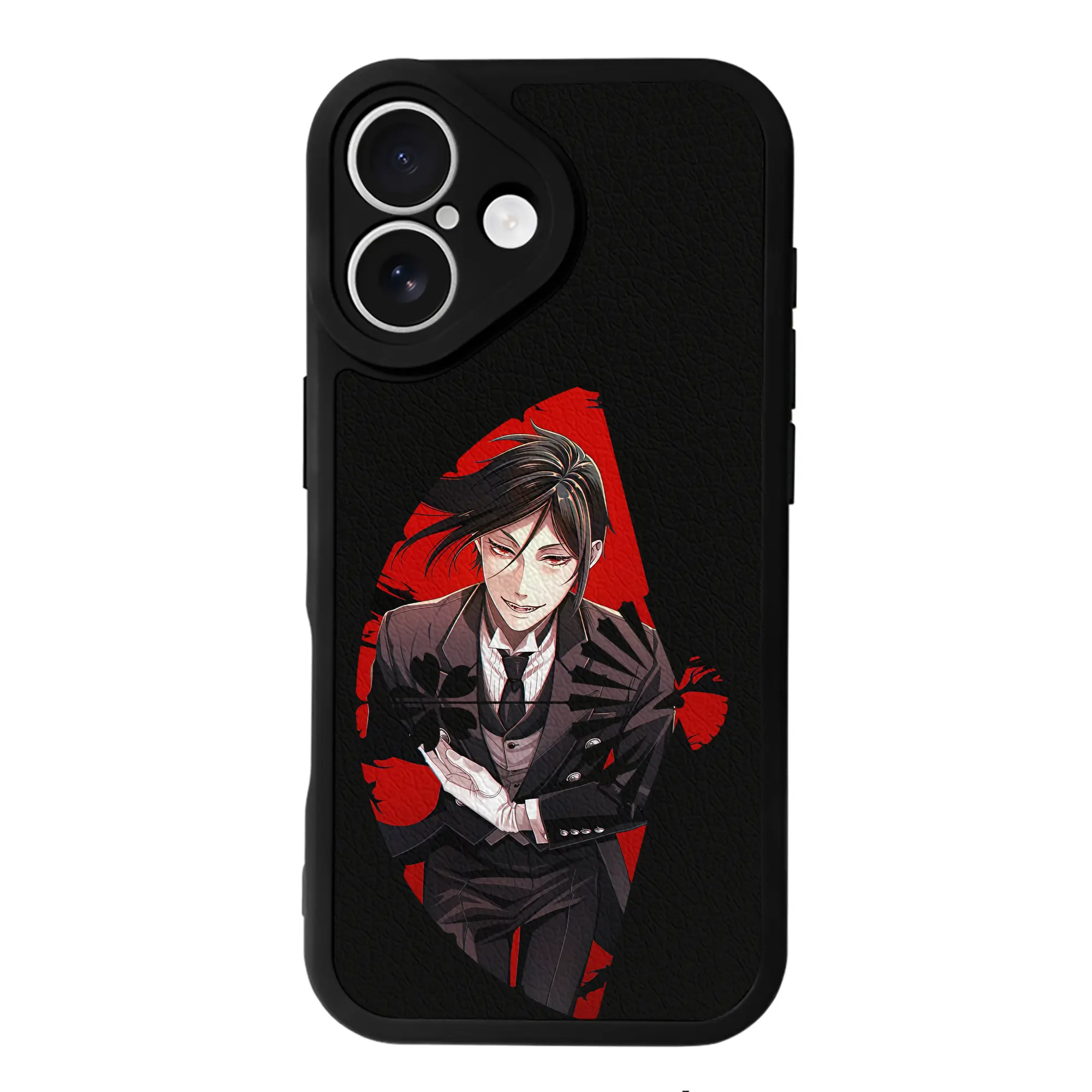 黒執事 グッズ,セバスチャン・ミカエリス - IPhone 16シリーズ対応 ・ シリコンスマホケース ・ レザー調 ・ 高精度フィット ・ 耐衝撃 ・ ワイヤレス充電対応 ・ 精密カット