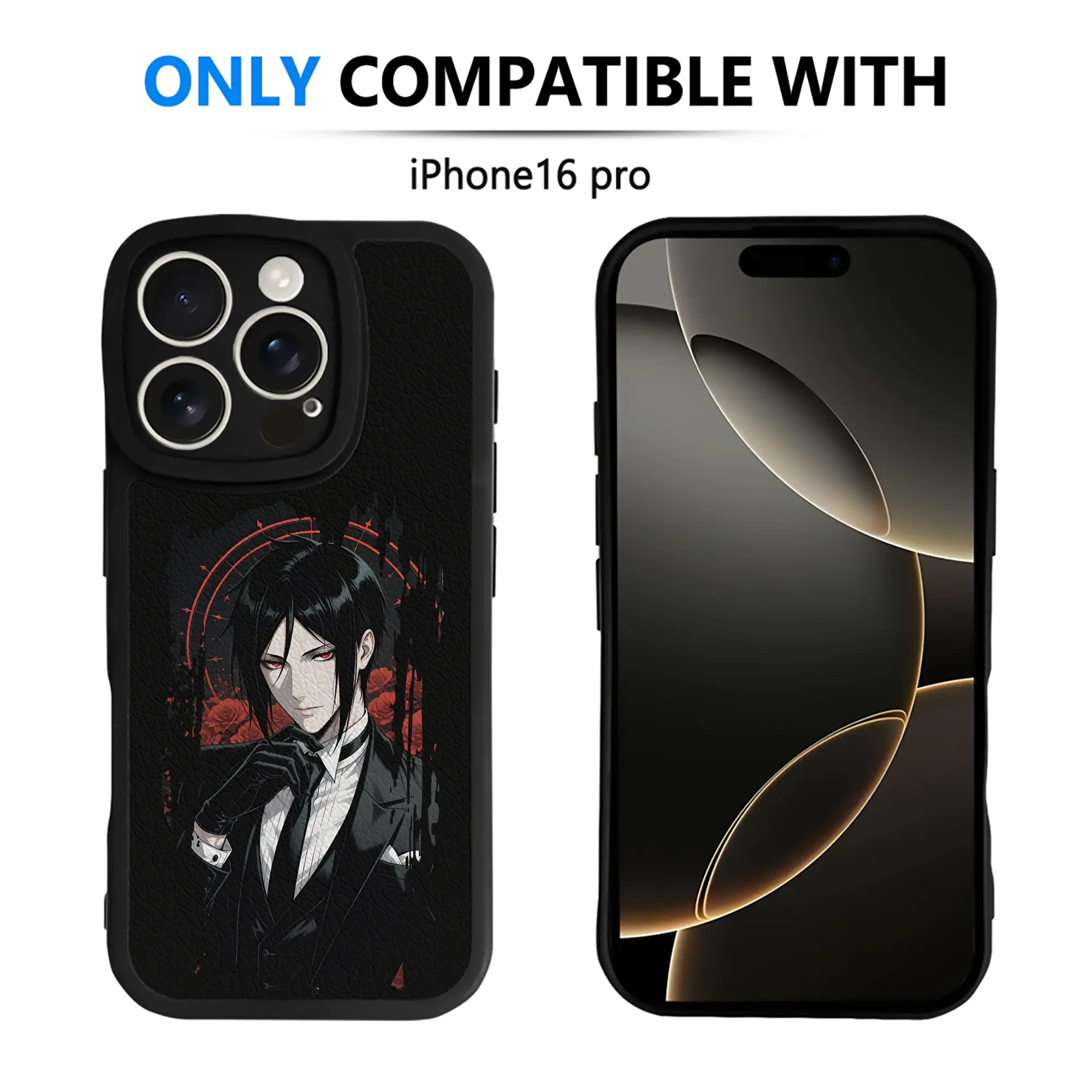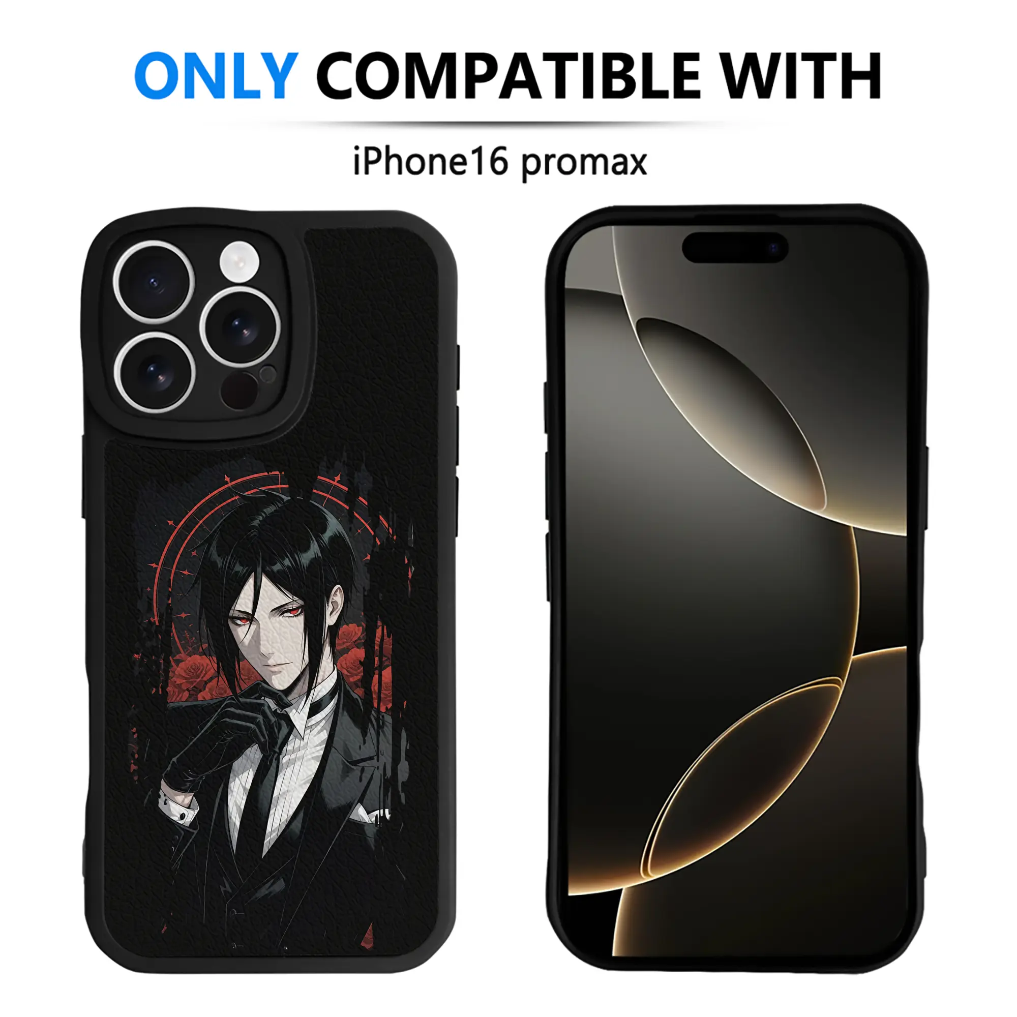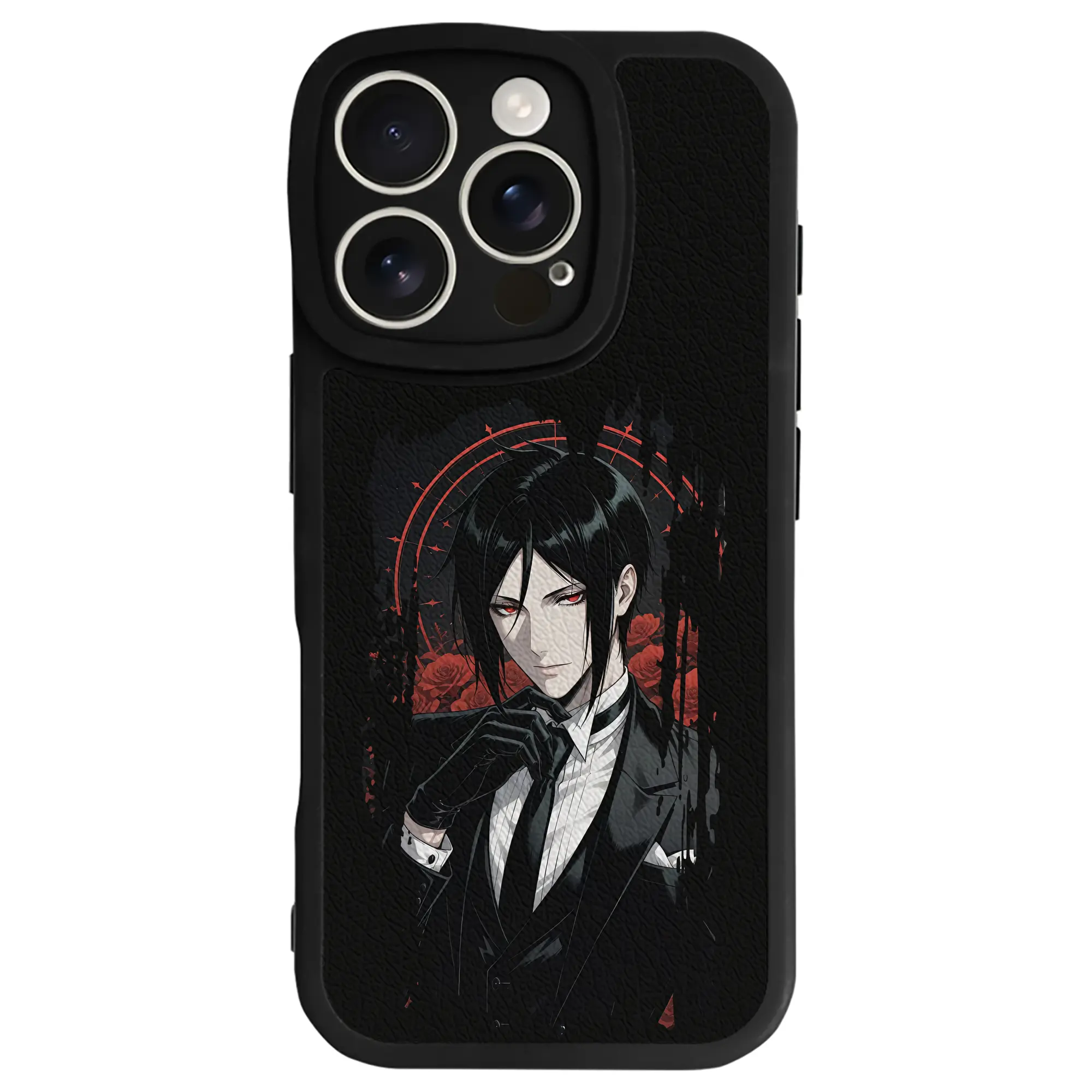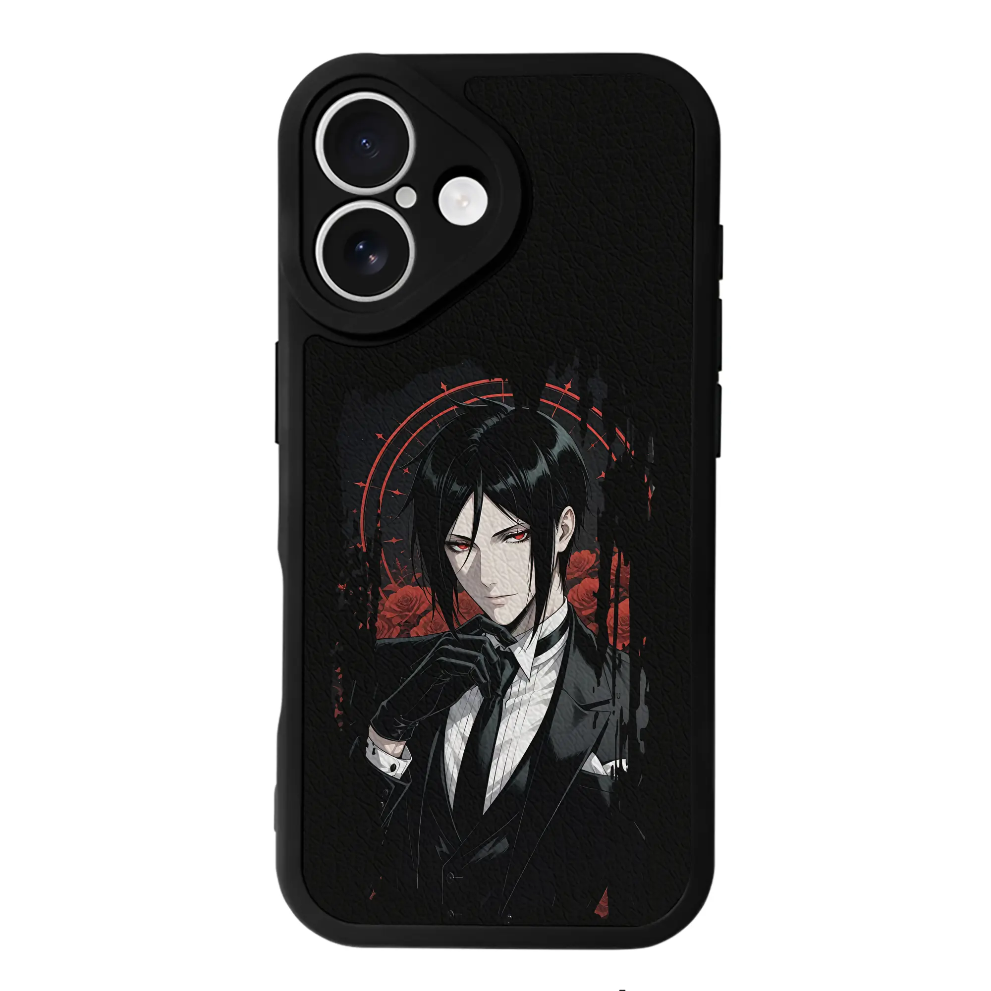 黒執事 グッズ,セバスチャン・ミカエリス - IPhone 16シリーズ対応 ・ シリコンスマホケース ・ レザー調 ・ 高精度フィット ・ 耐衝撃 ・ ワイヤレス充電対応 ・ 精密カット