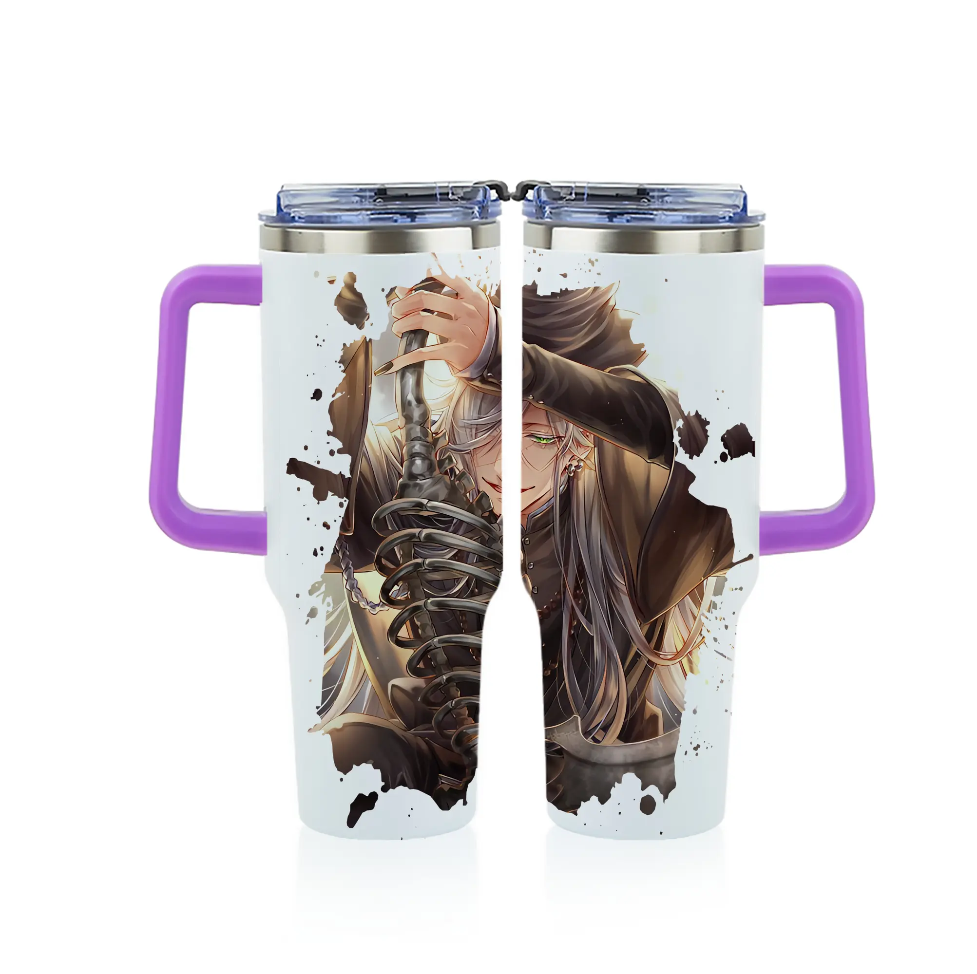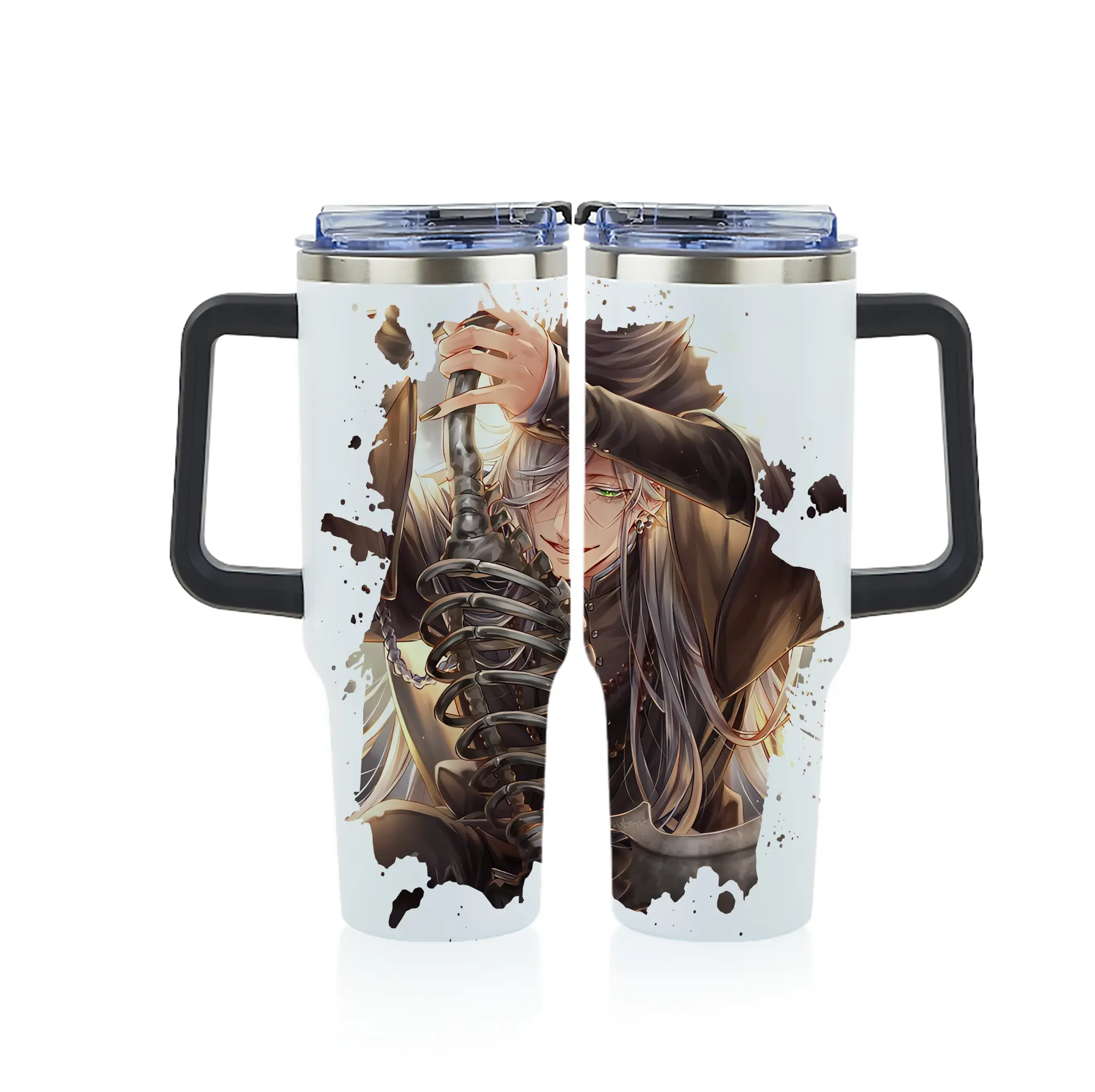 黒執事 グッズ,葬儀屋 - 1200mL フルプリント車用タンブラー ・ 304ステンレス 内側 ・ 201ステンレス 外側 ・ 保温 保冷 ・ 通勤 ドライブ アウトドア用