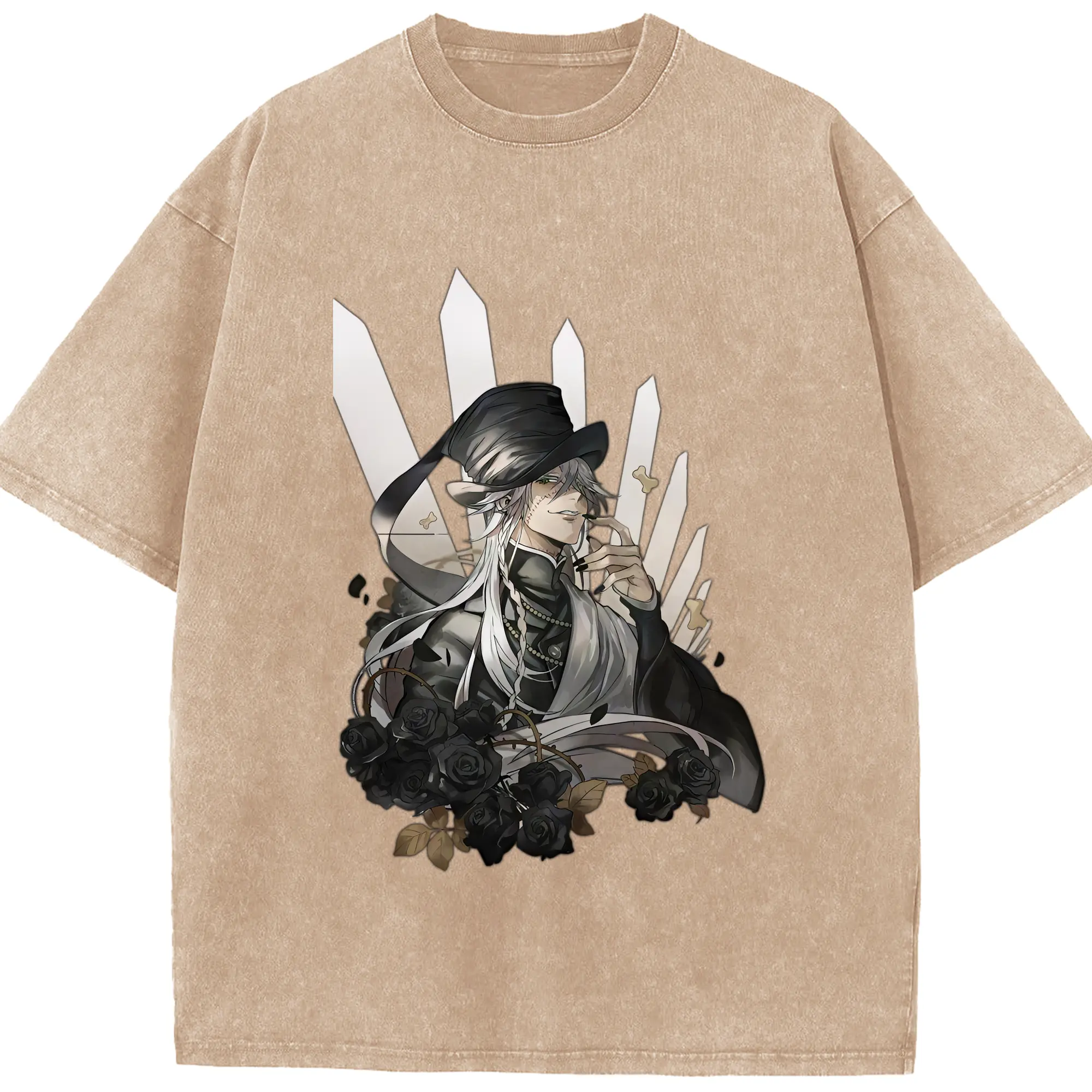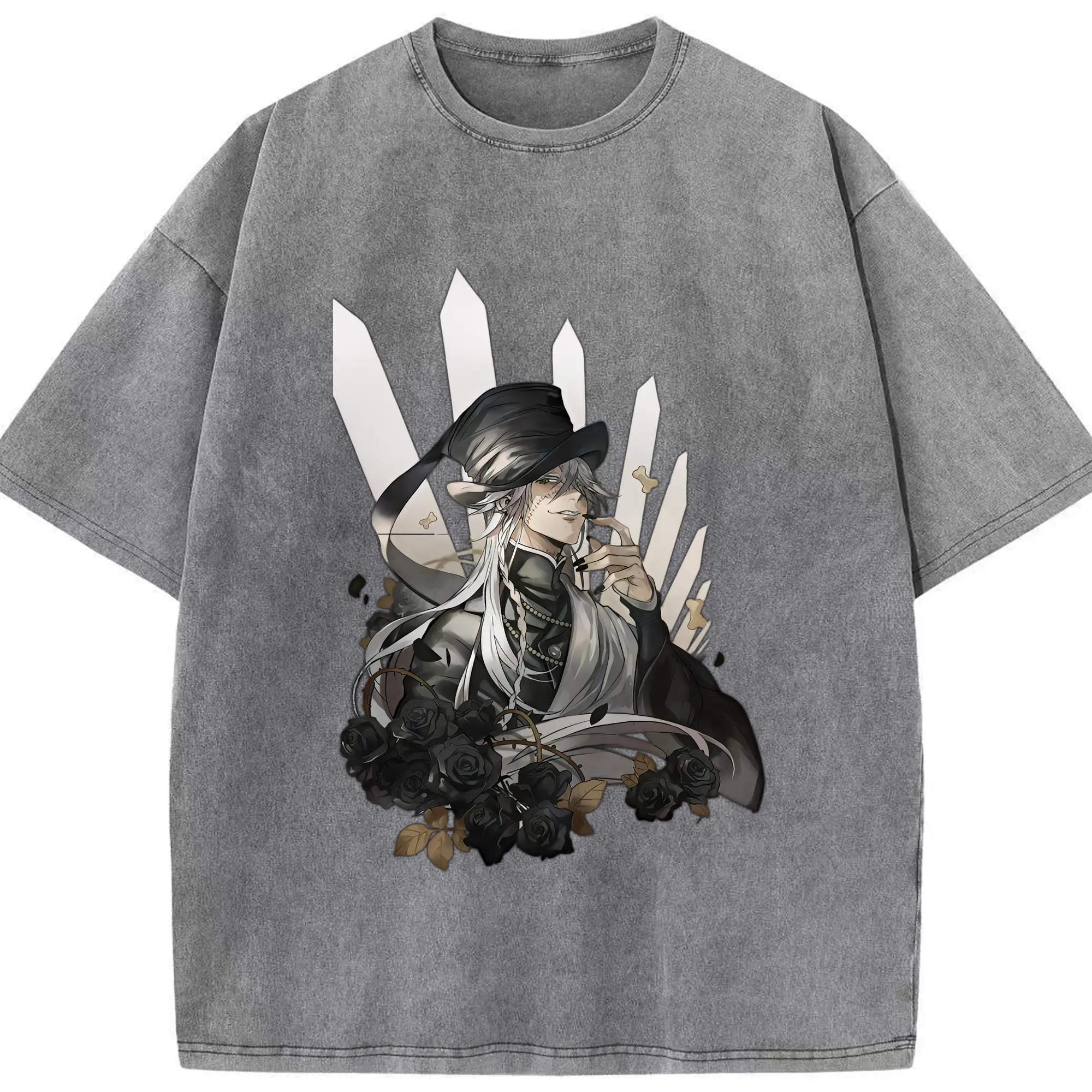 黒執事 グッズ,葬儀屋 - 綿100% ヴィンテージ風 半袖Tシャツ ・ 背面プリント ・ 柔らか肌触り ・ 通気性 快適 ・ スポーツ カジュアル 外出用