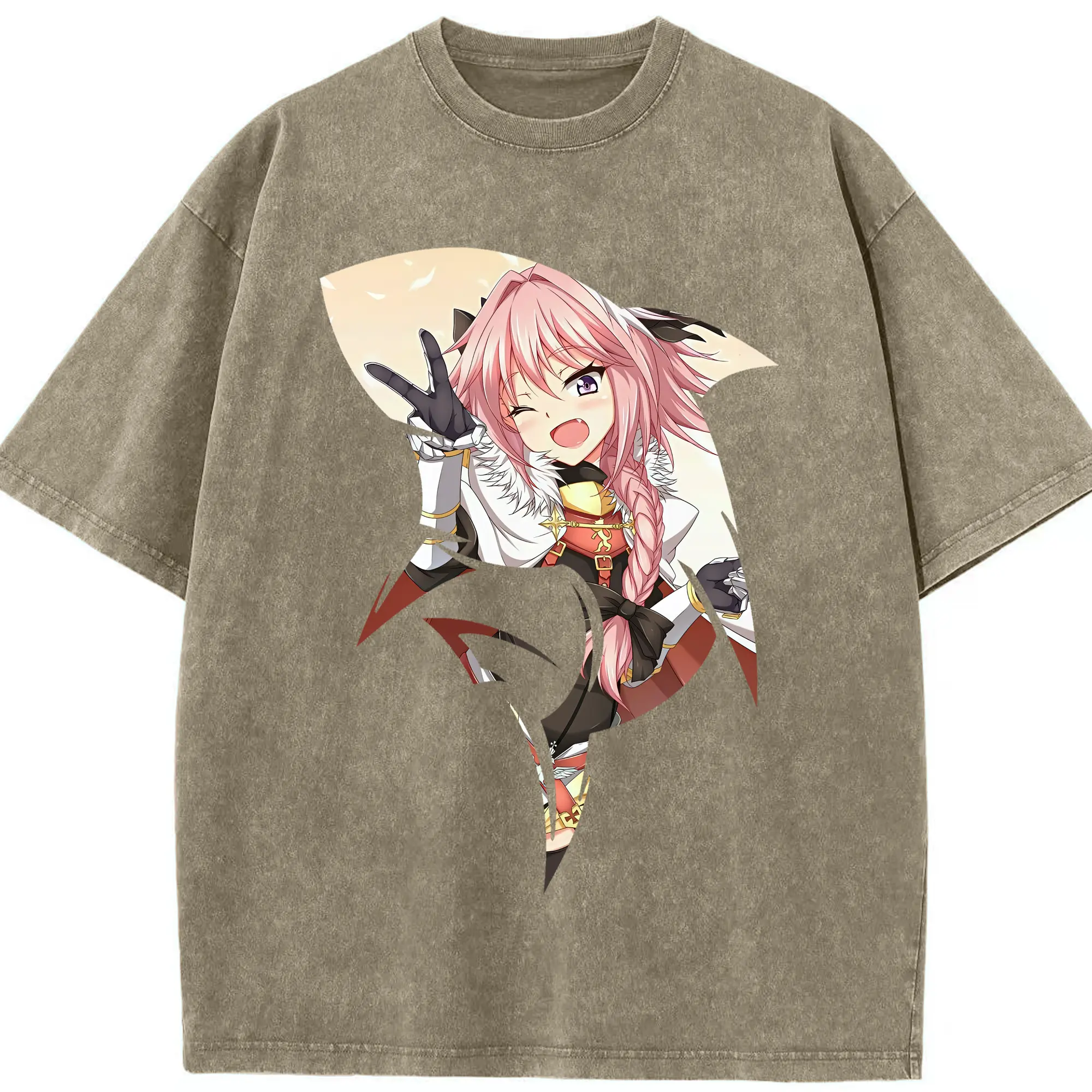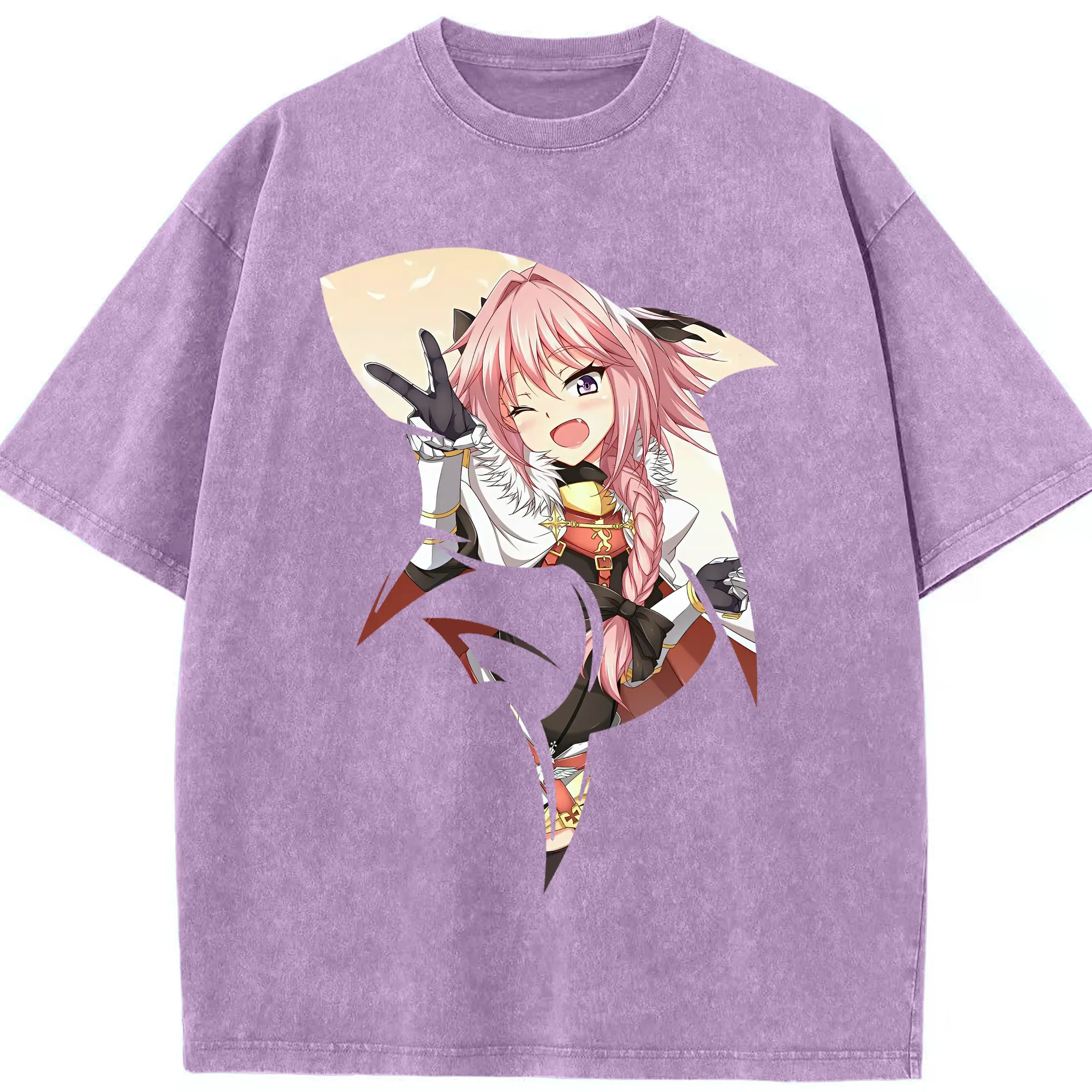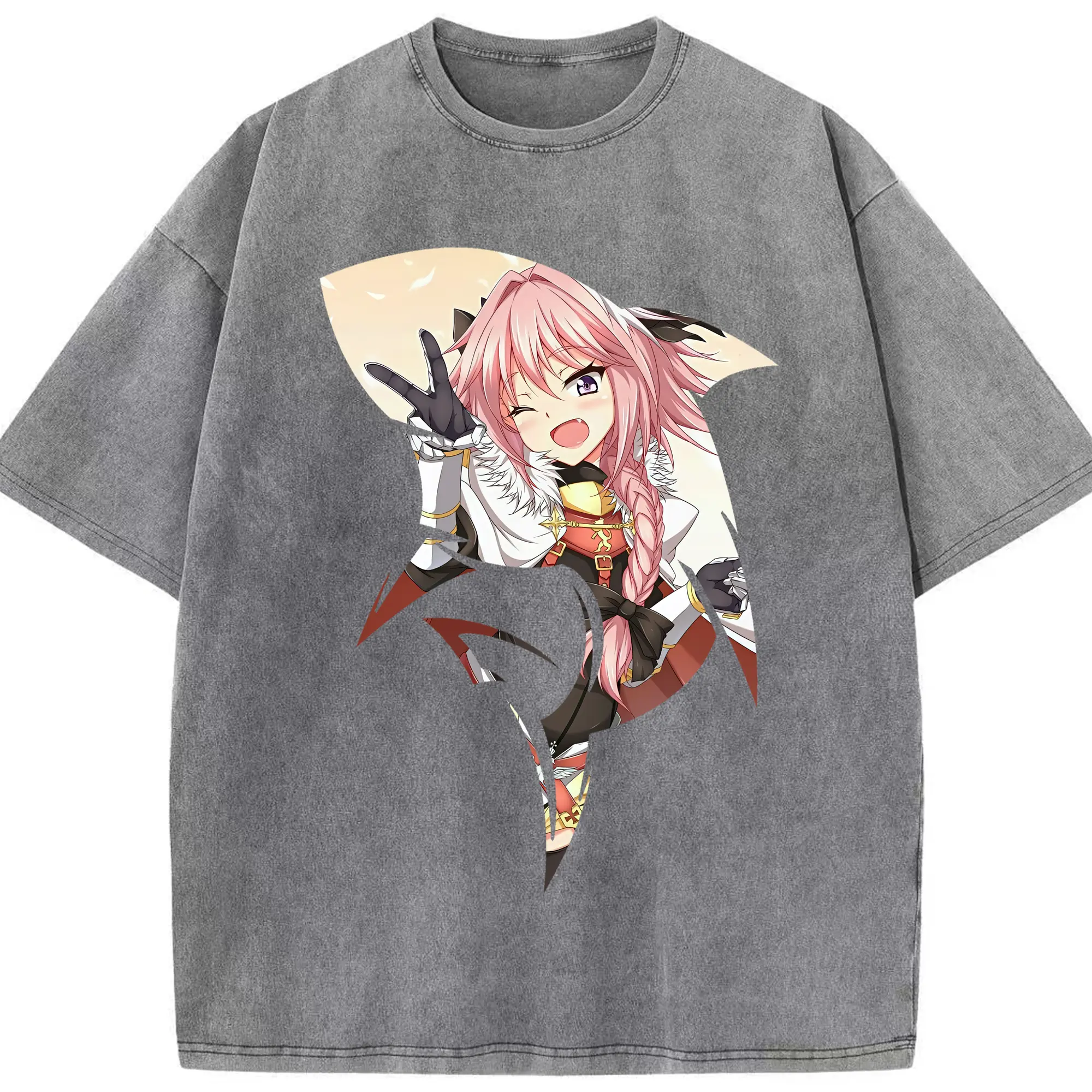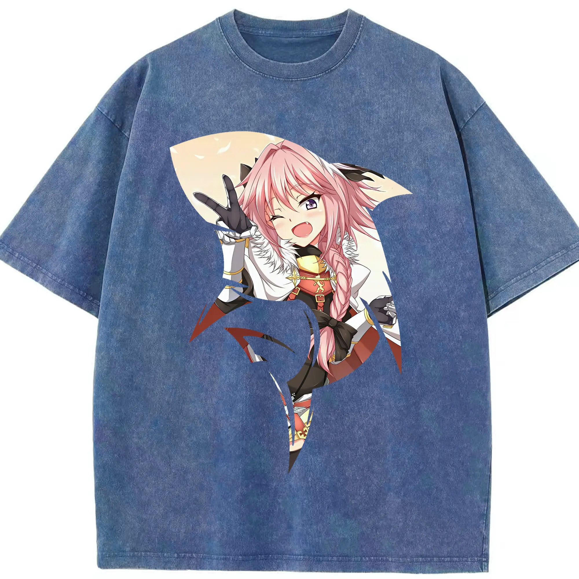 FGO グッズ,アストルフォ - 綿100% ヴィンテージ風 半袖Tシャツ ・ 背面プリント ・ 柔らか肌触り ・ 通気性 快適 ・ スポーツ カジュアル 外出用