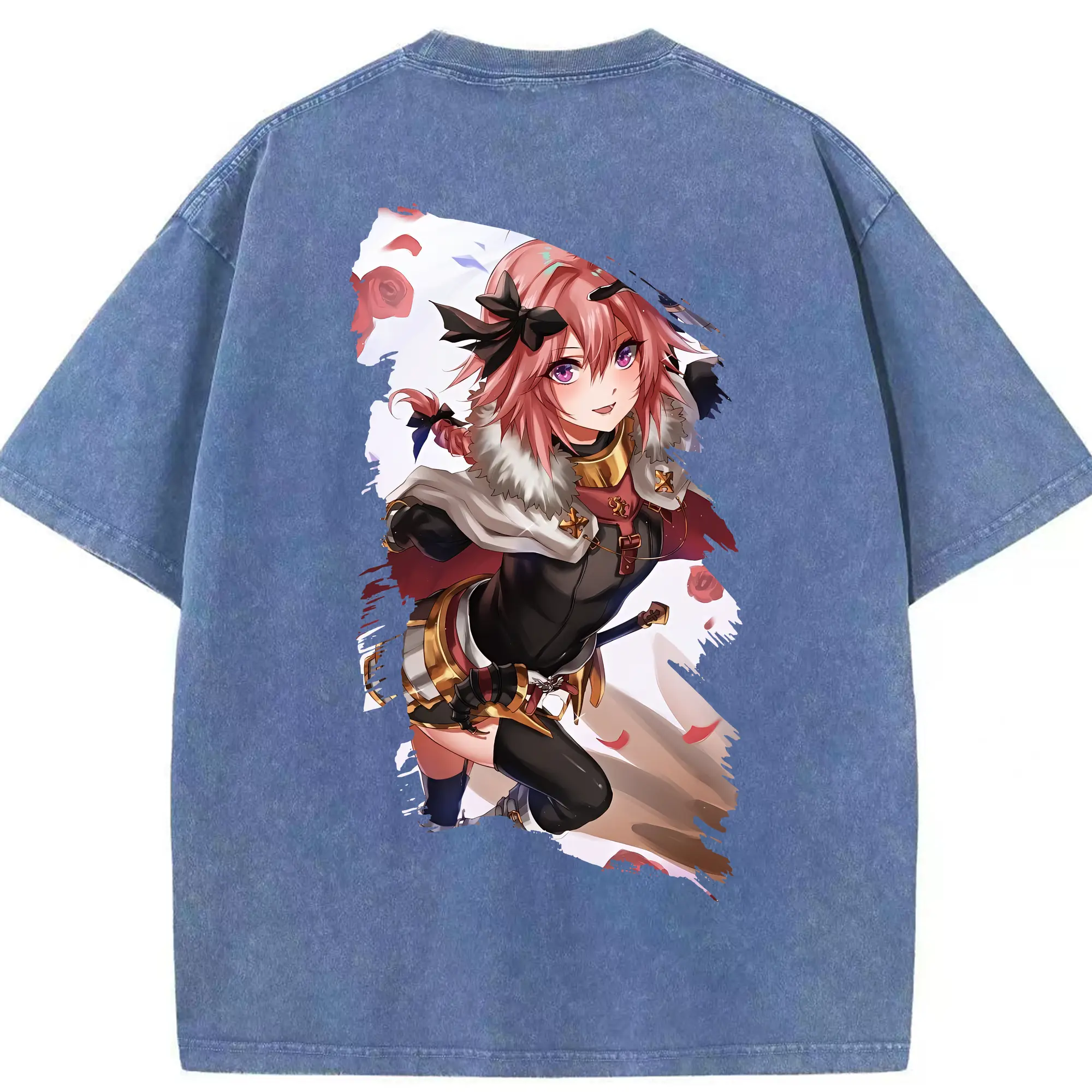 FGO グッズ,アストルフォ - 綿100% ヴィンテージ風 半袖Tシャツ ・ フロントプリント ・ 柔らか肌触り ・ 通気性 快適 ・ スポーツ カジュアル 外出用