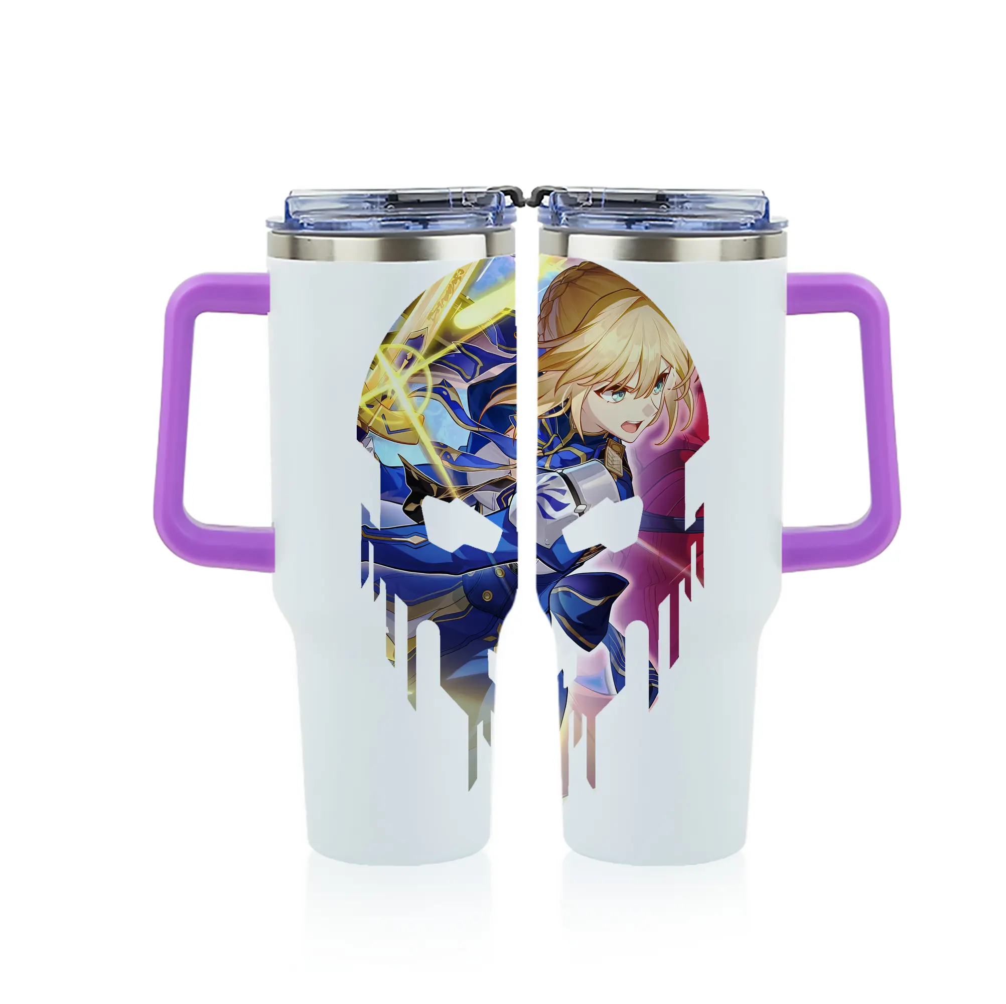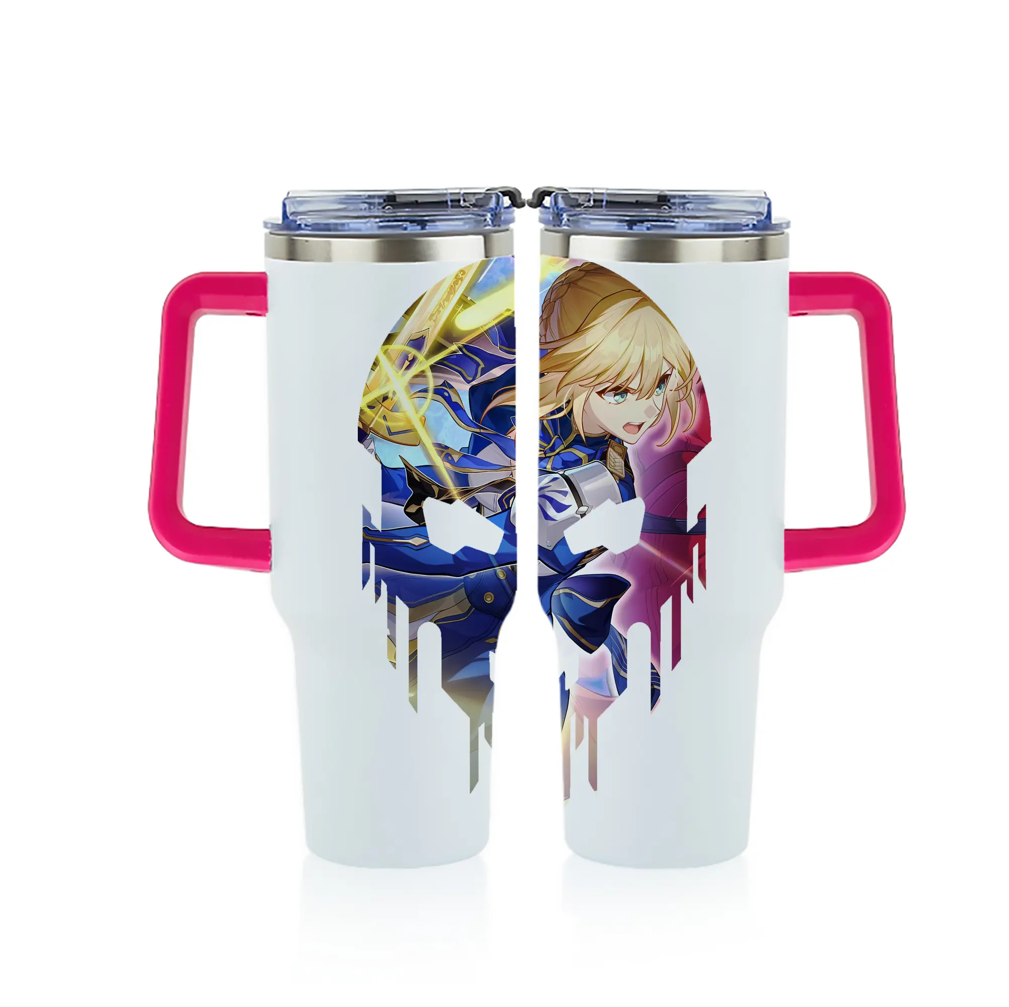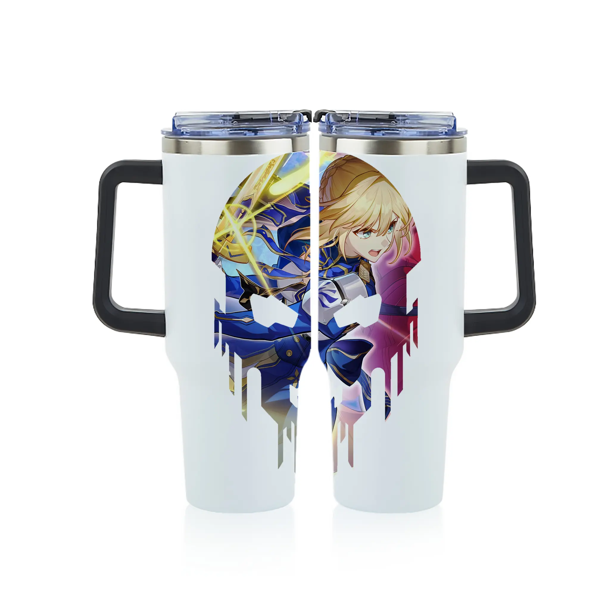 FGO グッズ,アルトリア - 1200mL フルプリント車用タンブラー ・ 304ステンレス 内側 ・ 201ステンレス 外側 ・ 保温 保冷 ・ 通勤 ドライブ アウトドア用