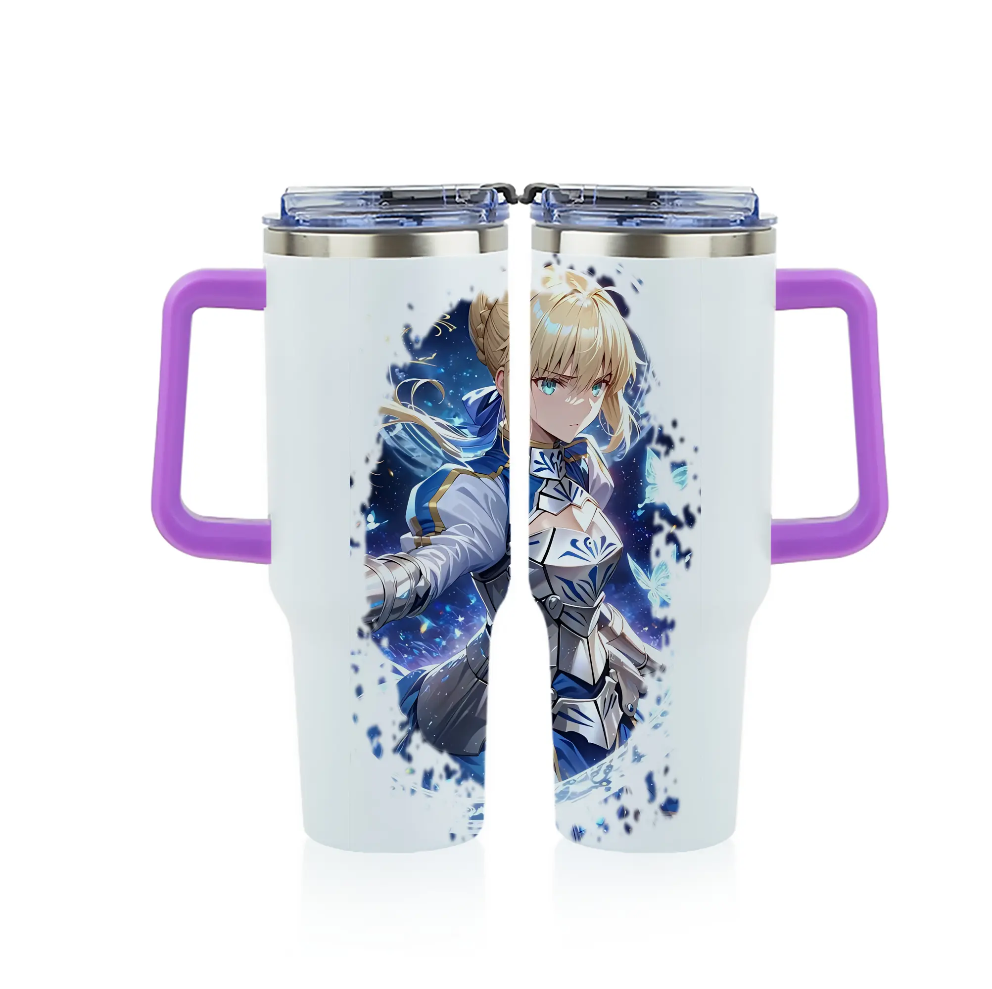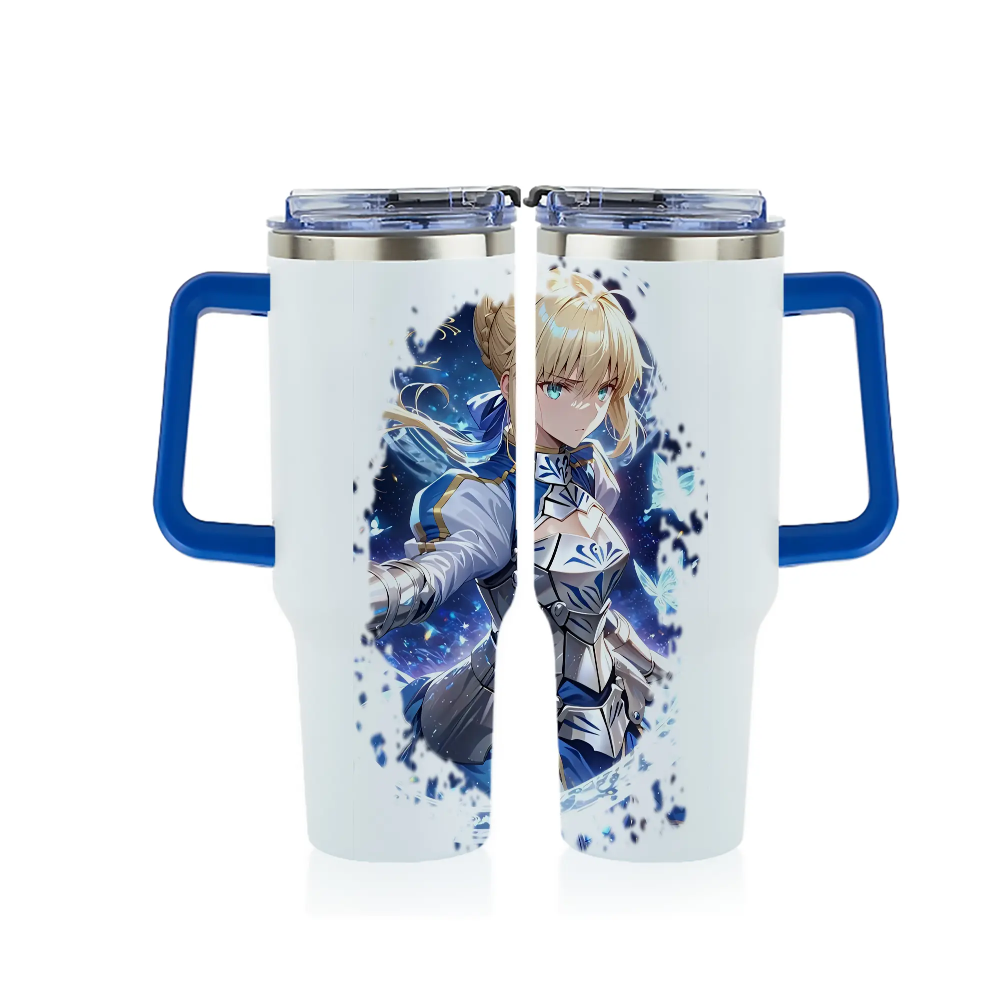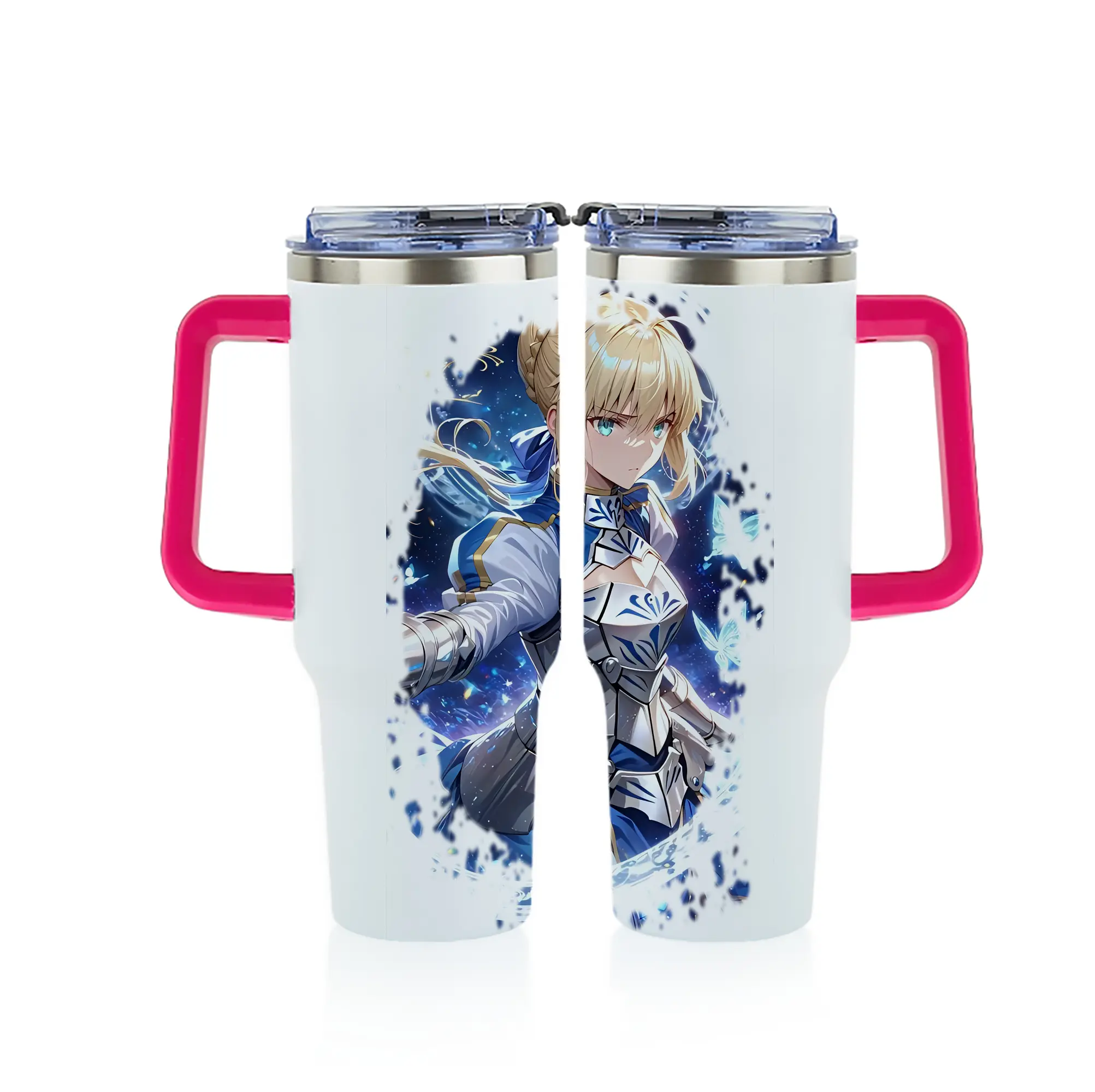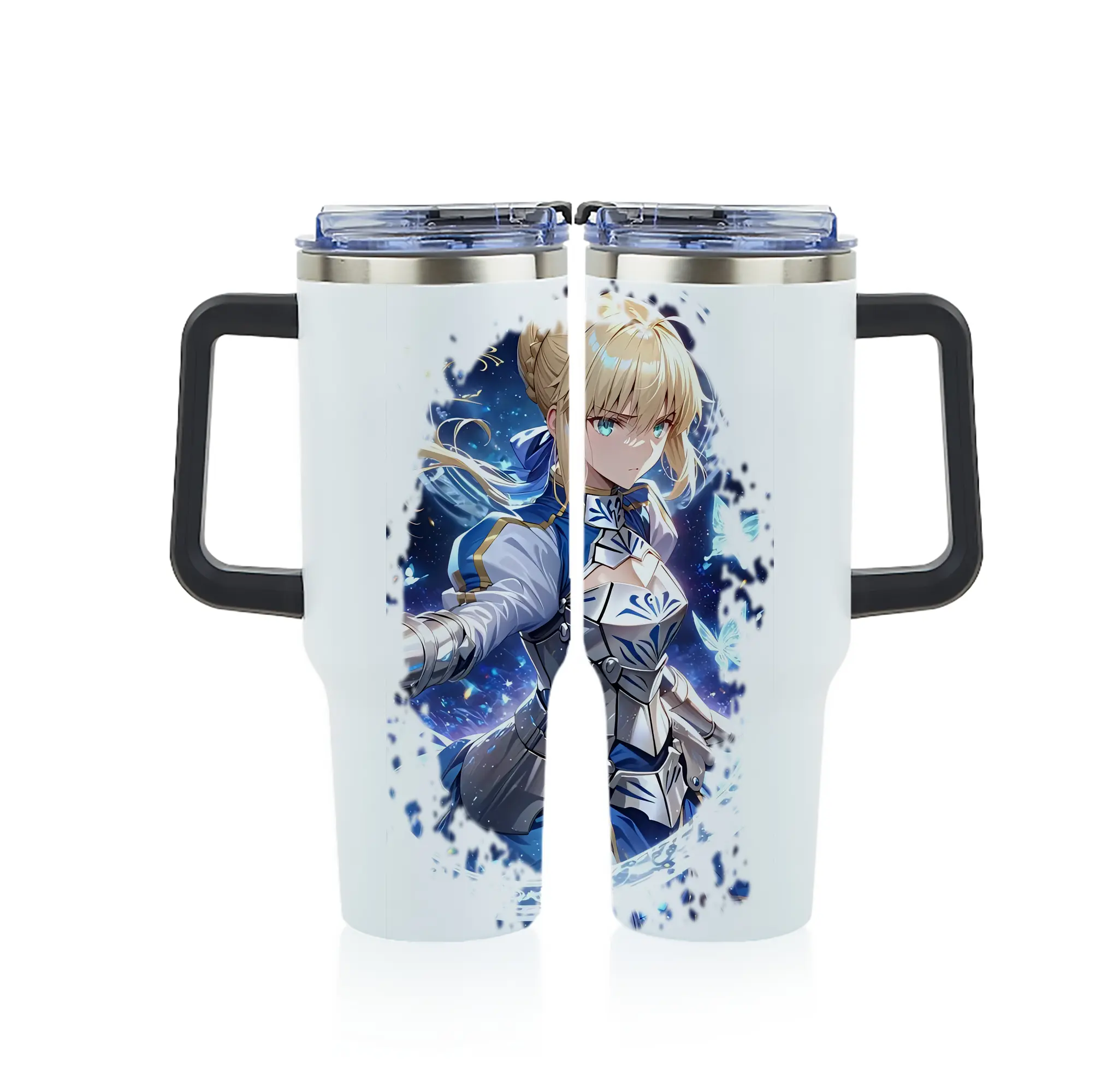 FGO グッズ,アルトリア - 1200mL フルプリント車用タンブラー ・ 304ステンレス 内側 ・ 201ステンレス 外側 ・ 保温 保冷 ・ 通勤 ドライブ アウトドア用