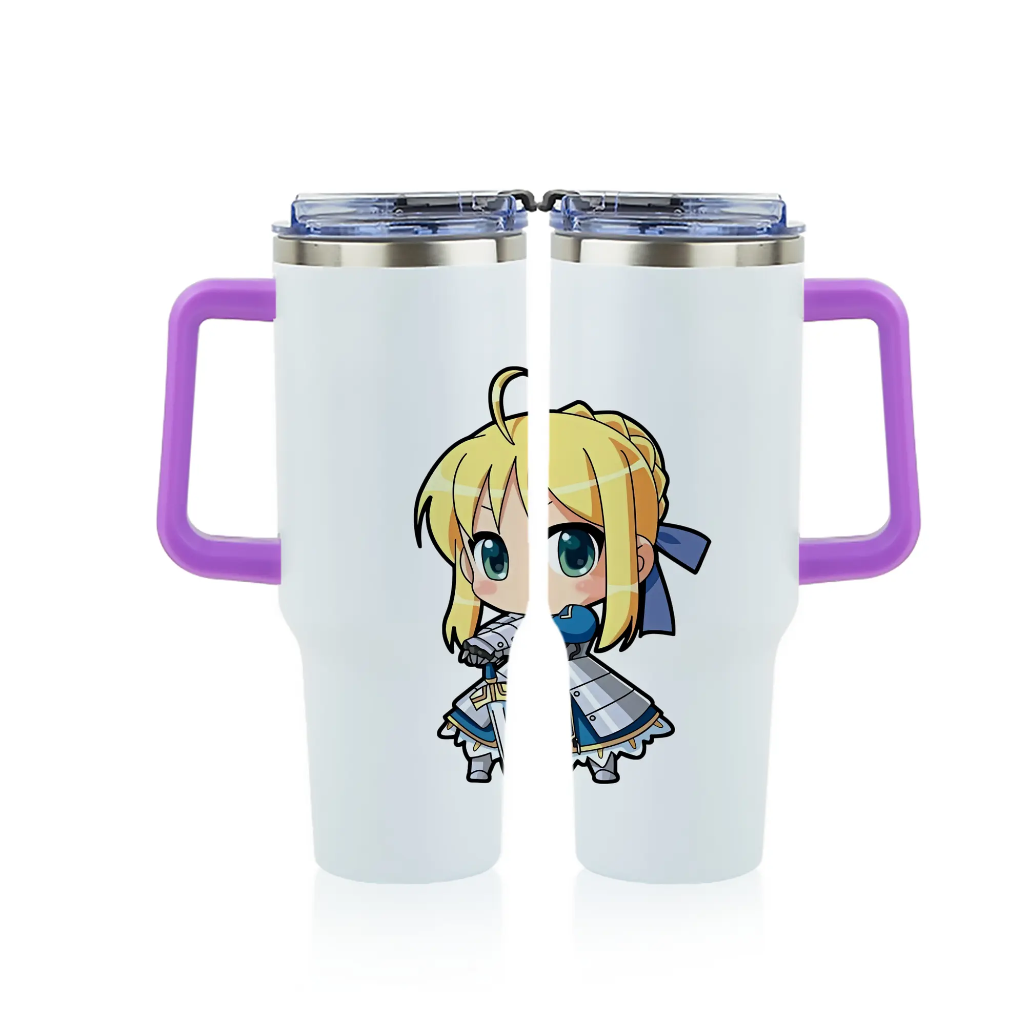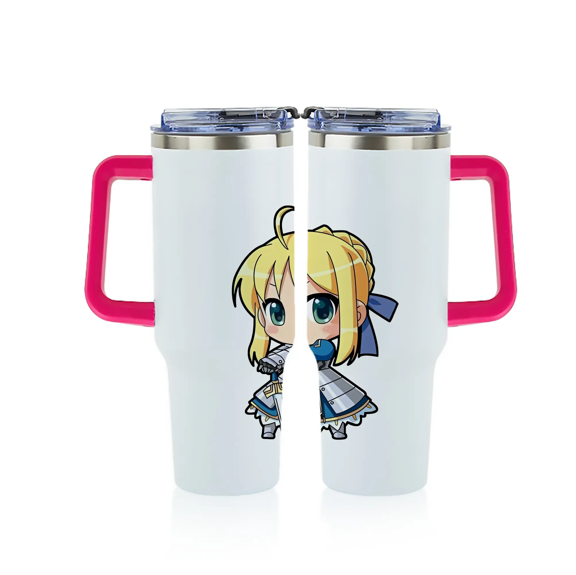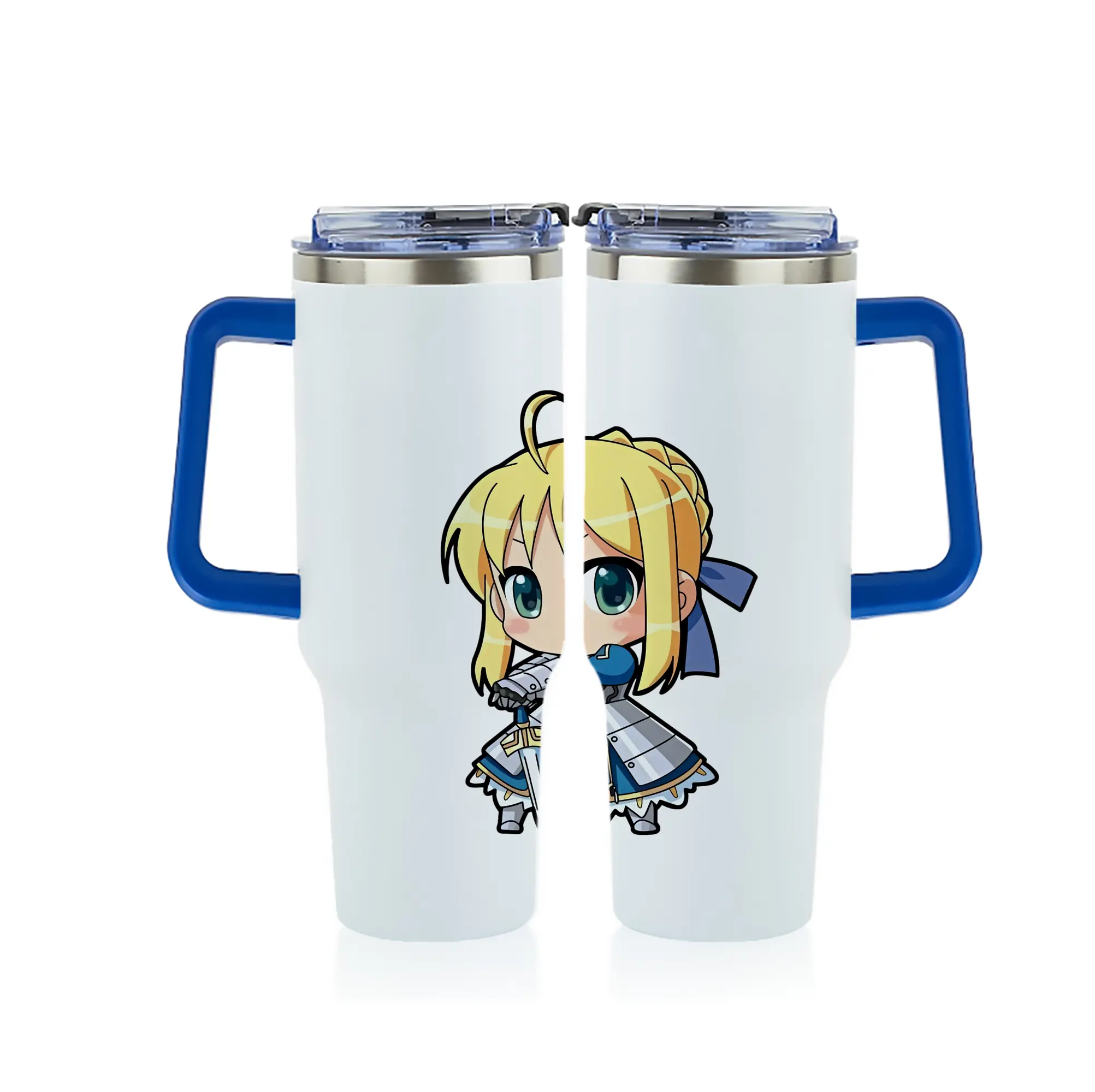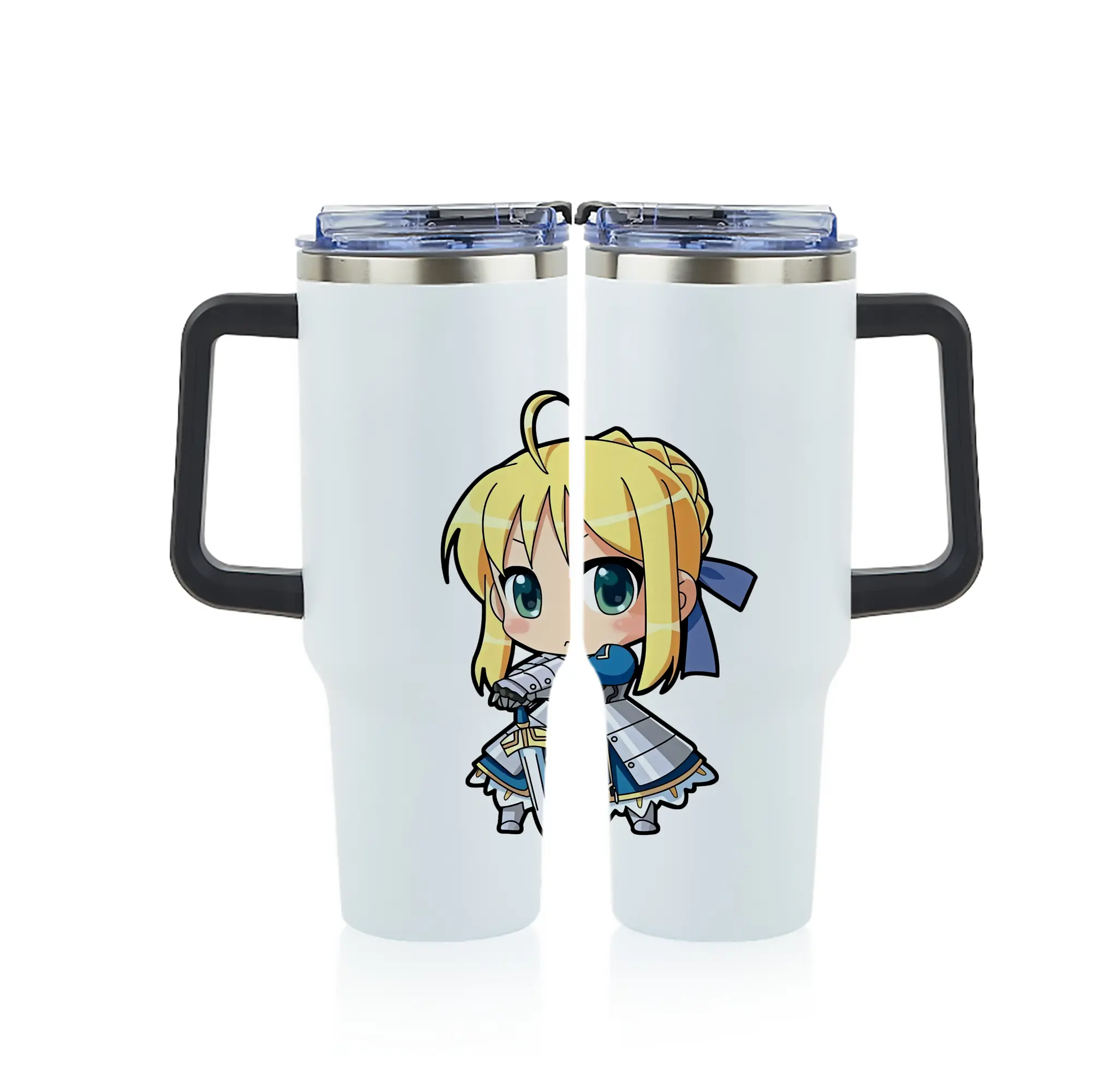 FGO グッズ,アルトリア - 1200mL フルプリント車用タンブラー ・ 304ステンレス 内側 ・ 201ステンレス 外側 ・ 保温 保冷 ・ 通勤 ドライブ アウトドア用