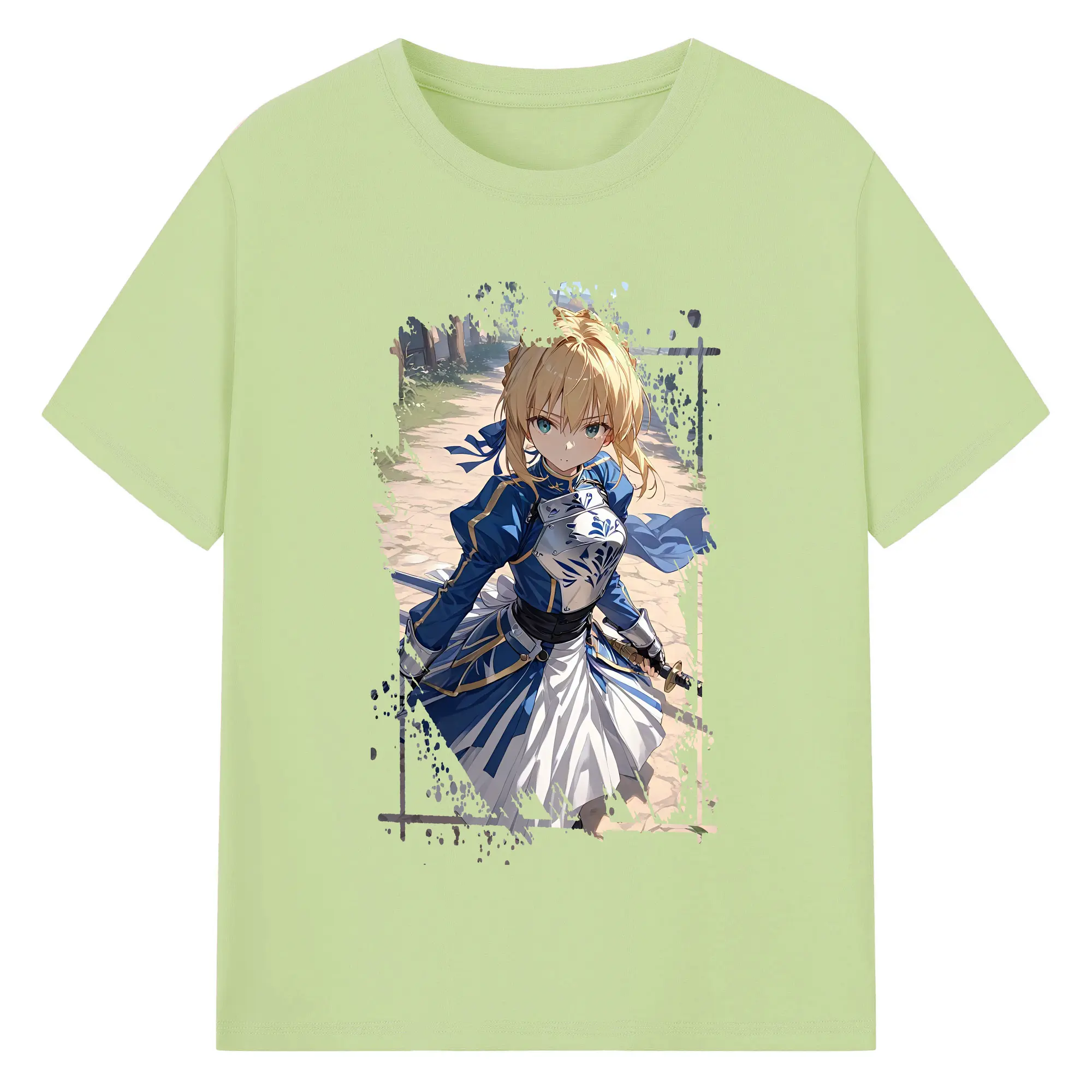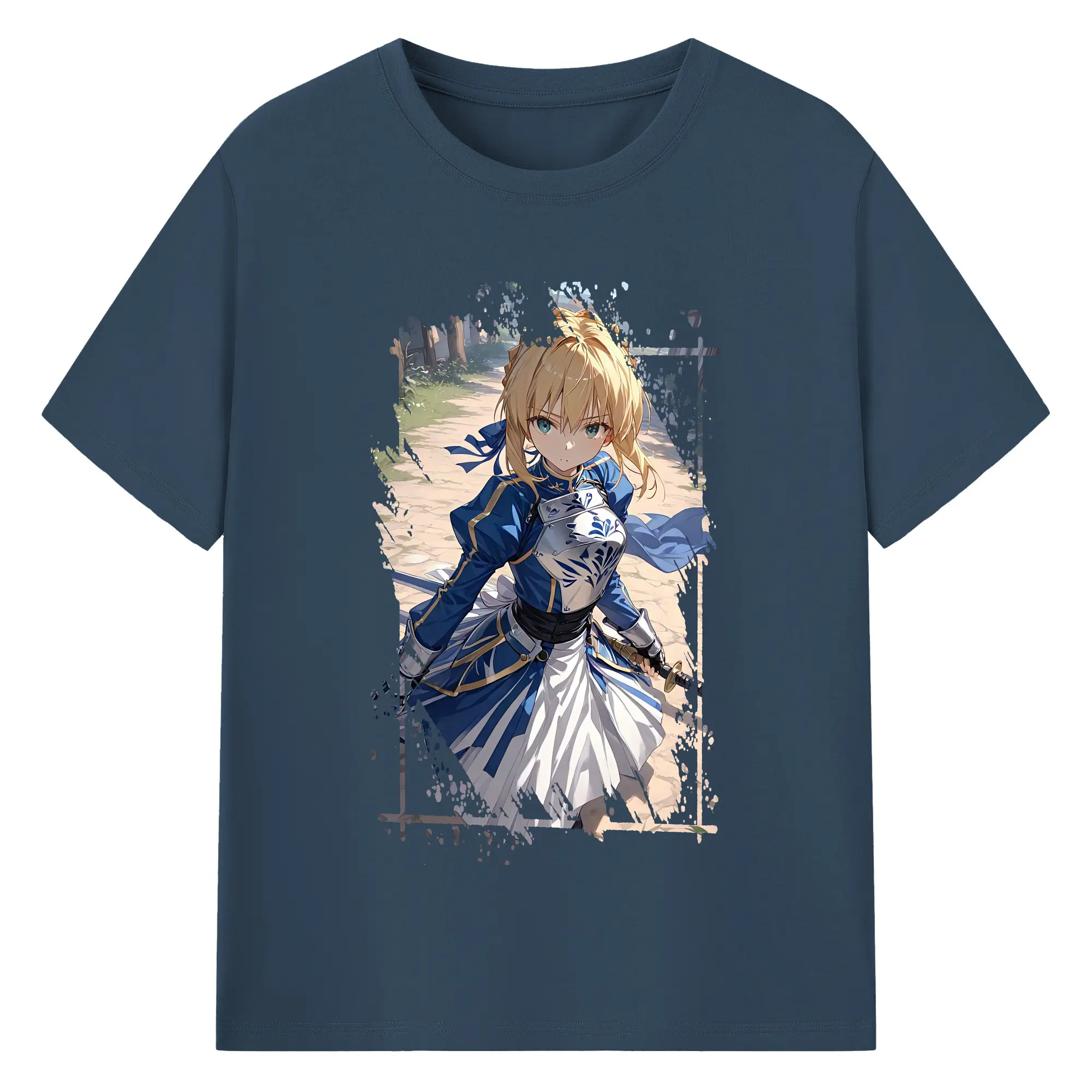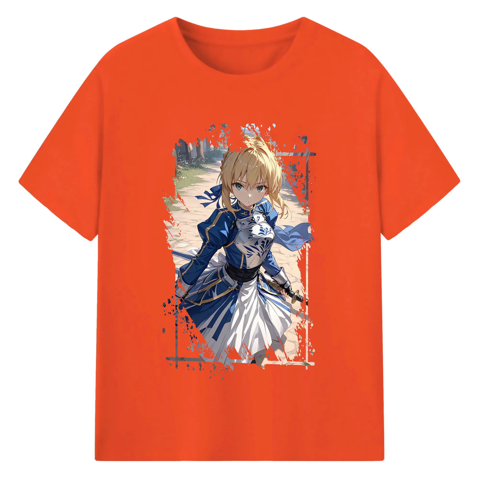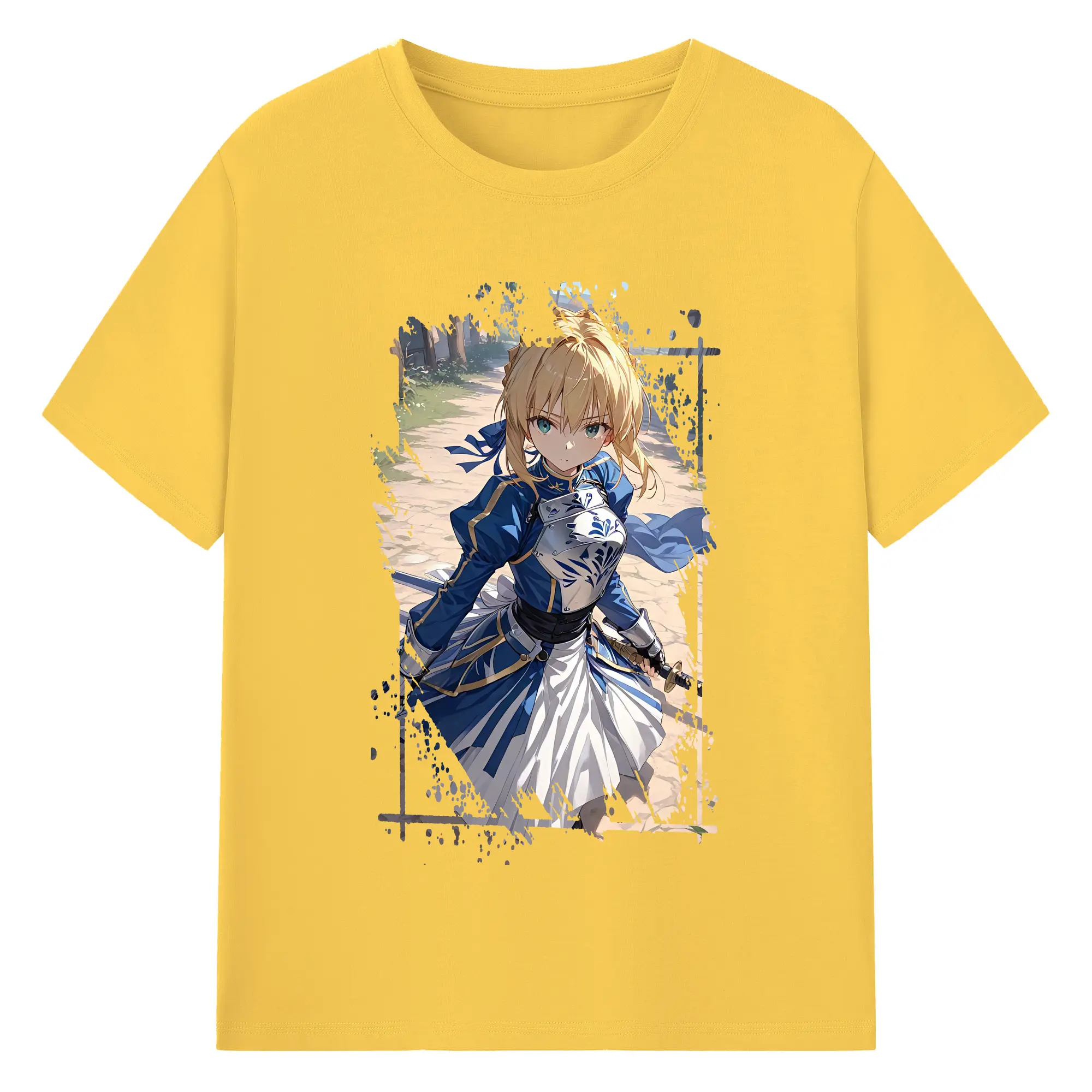 FGO グッズ,アルトリア - 綿100% ヴィンテージ風 半袖Tシャツ ・ フロントプリント ・ 柔らか肌触り ・ 通気性 快適 ・ スポーツ カジュアル 外出用