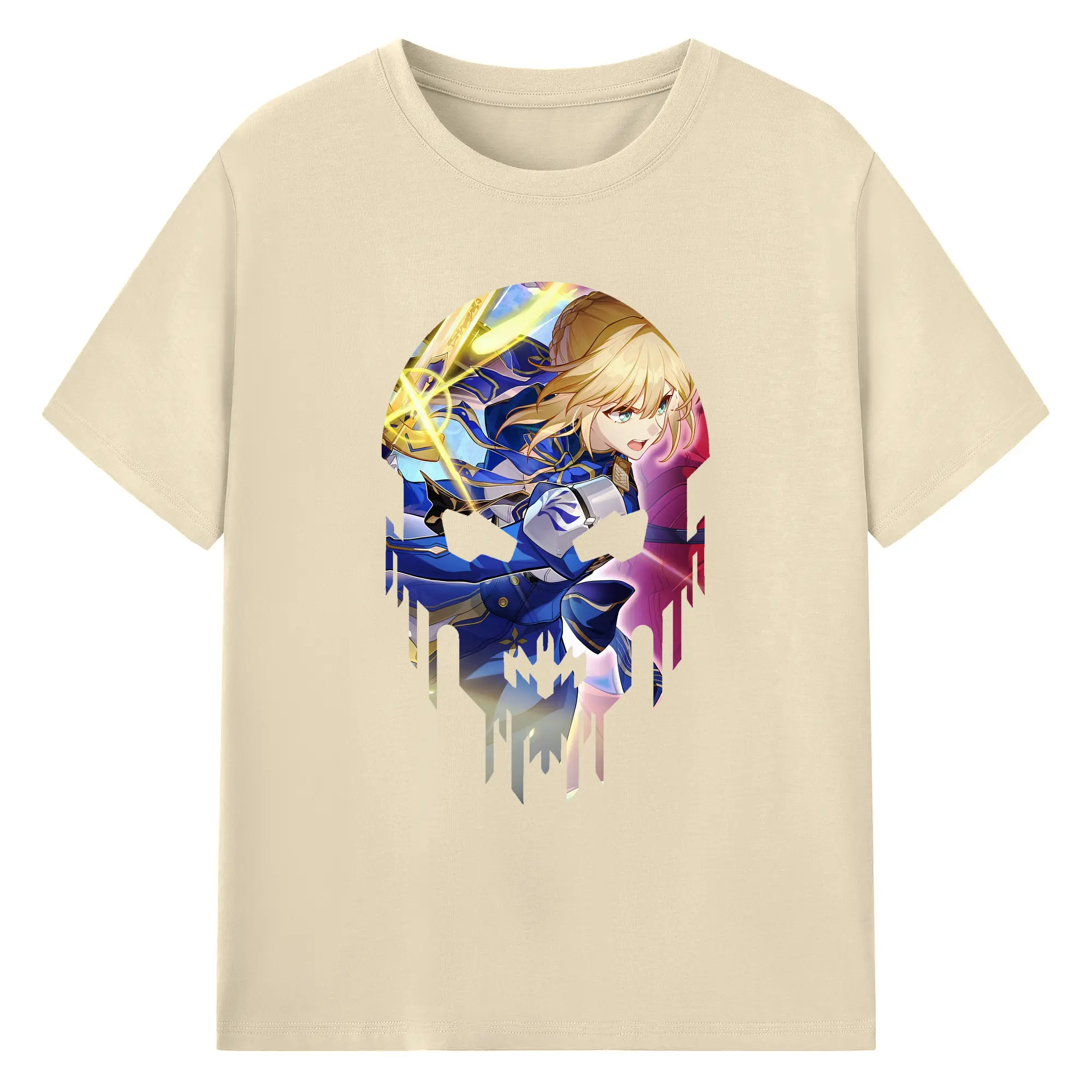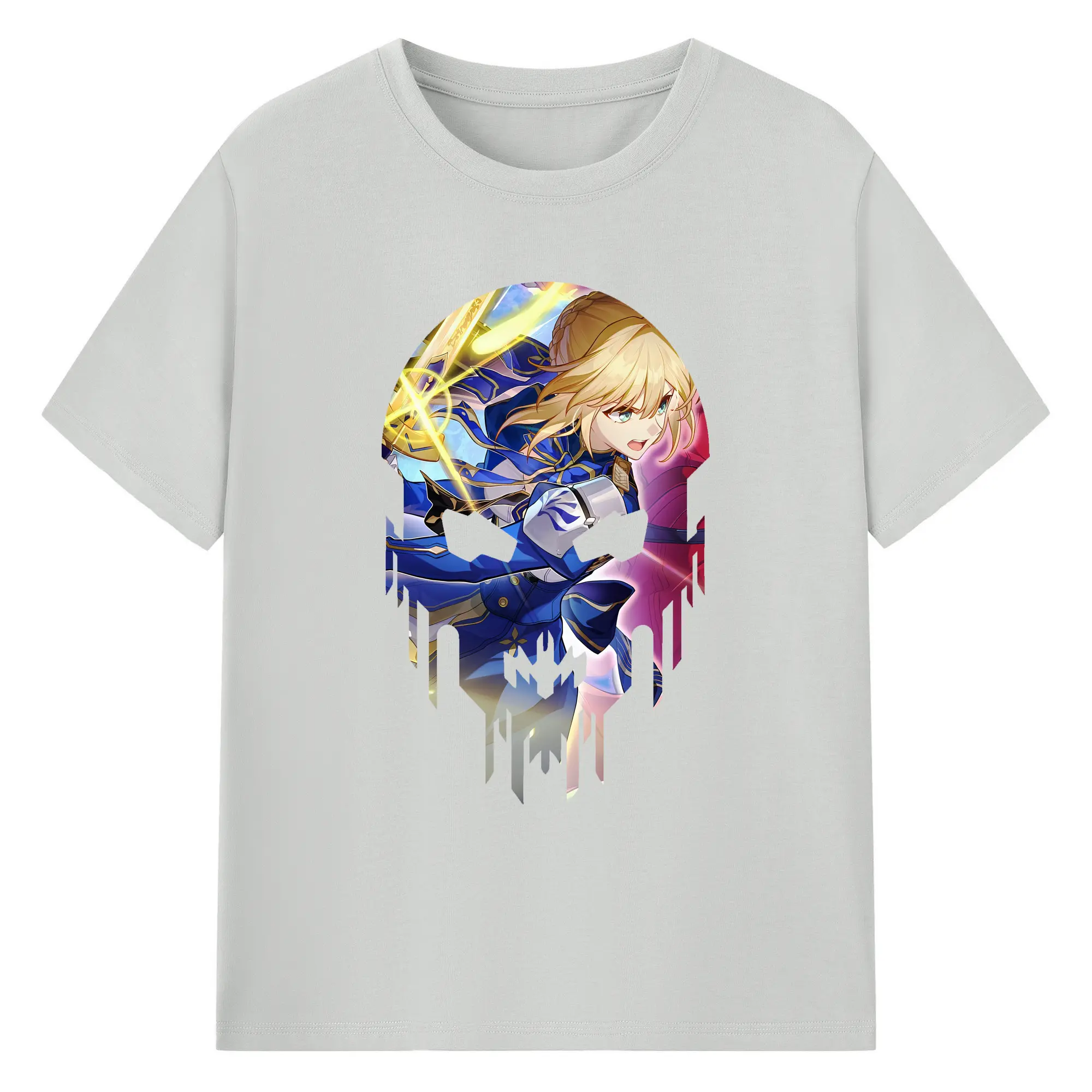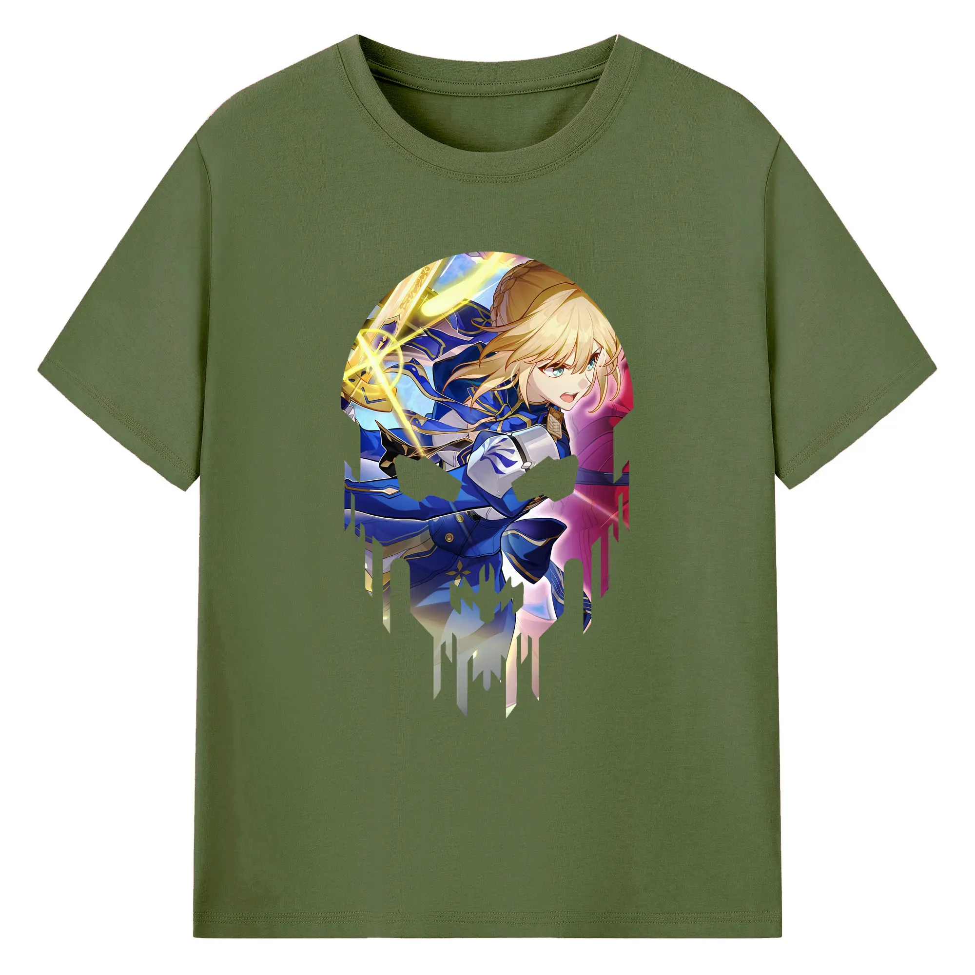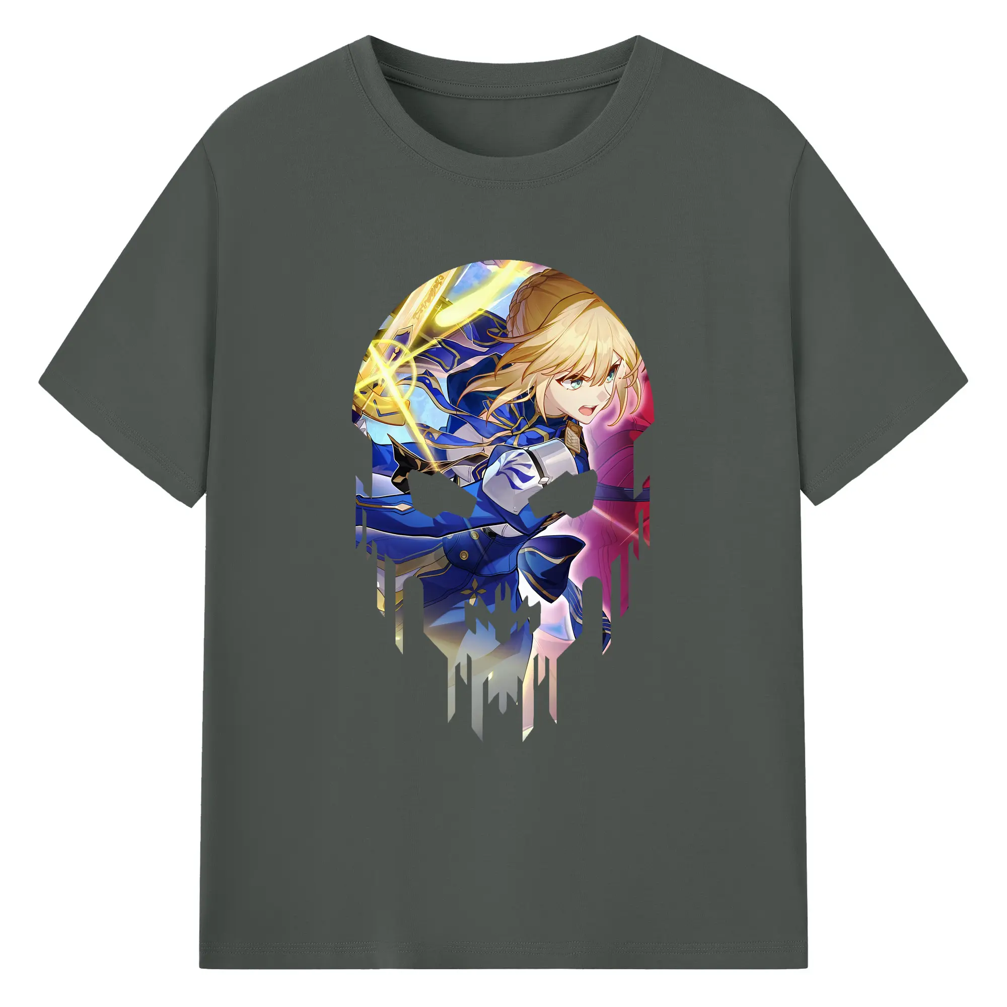 FGO グッズ,アルトリア - 綿100% ヴィンテージ風 半袖Tシャツ ・ フロントプリント ・ 柔らか肌触り ・ 通気性 快適 ・ スポーツ カジュアル 外出用