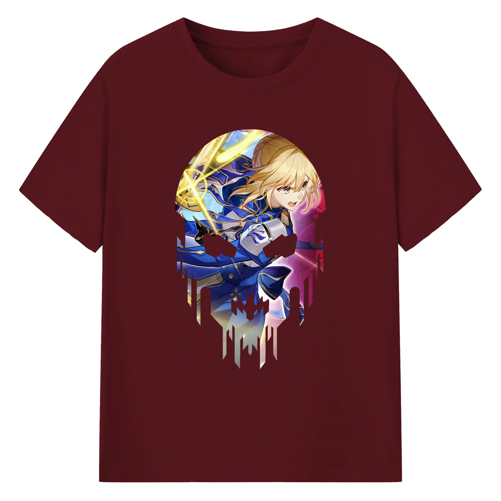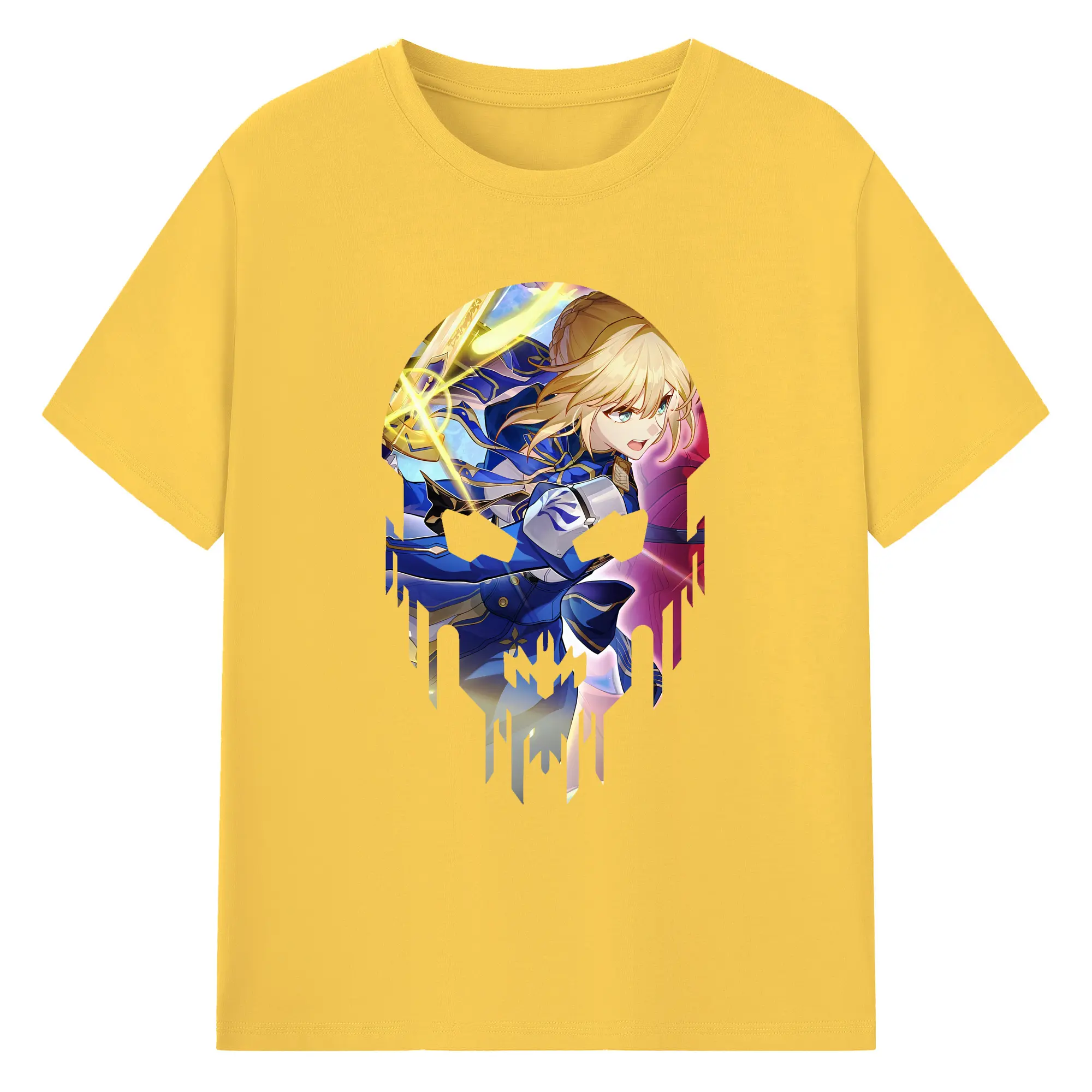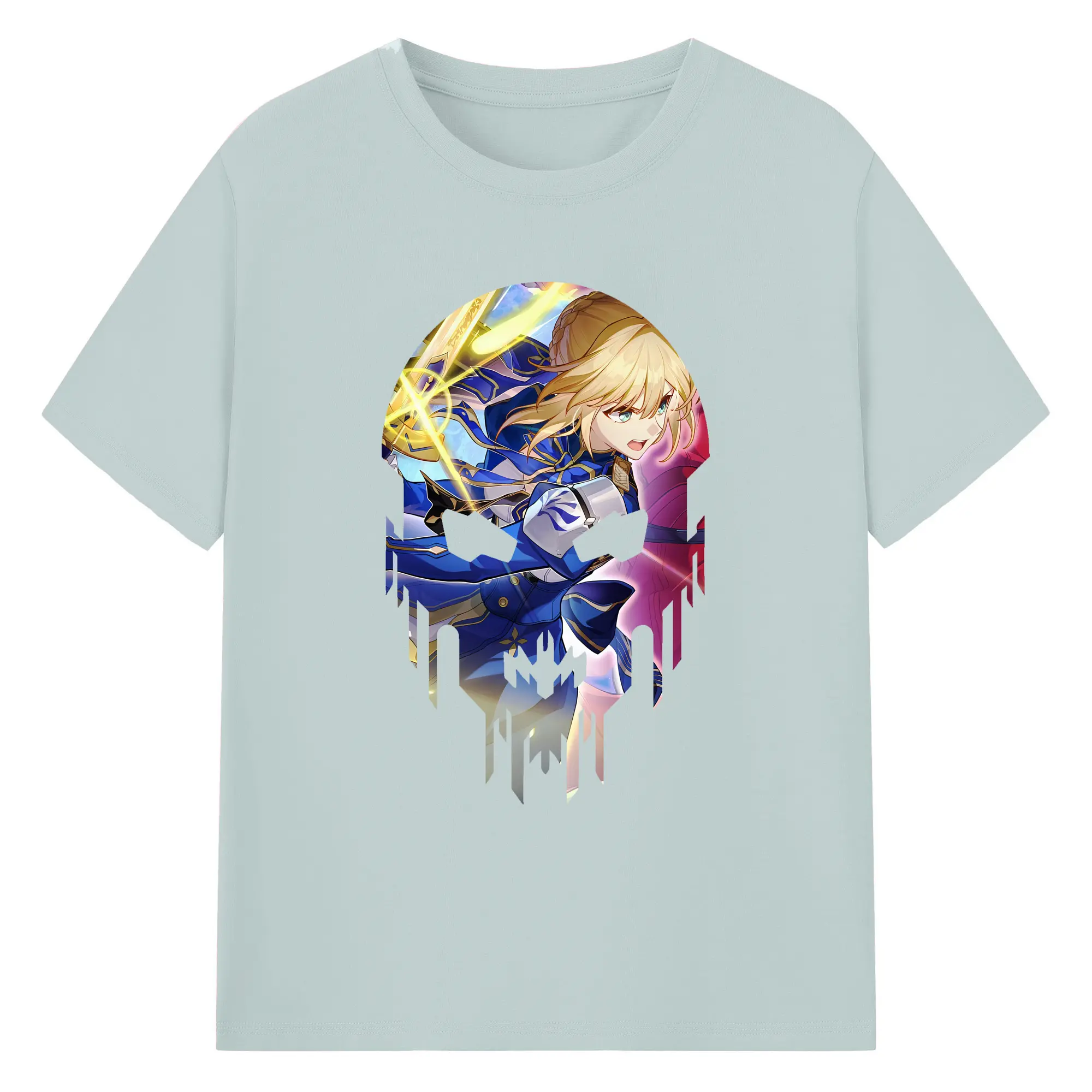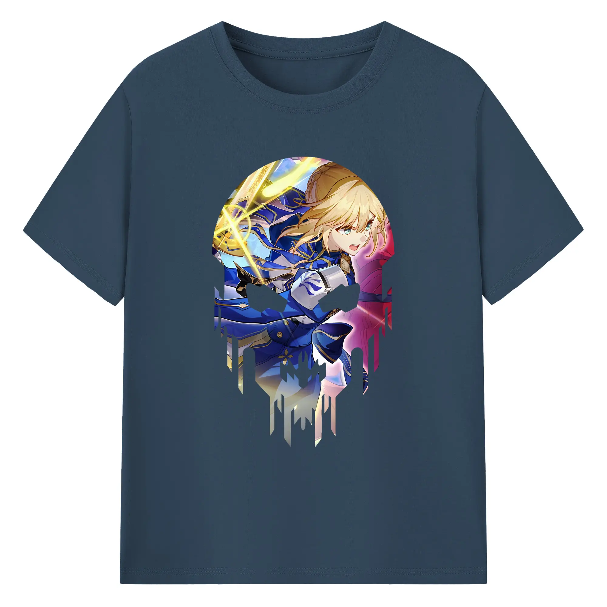 FGO グッズ,アルトリア - 綿100% ヴィンテージ風 半袖Tシャツ ・ フロントプリント ・ 柔らか肌触り ・ 通気性 快適 ・ スポーツ カジュアル 外出用