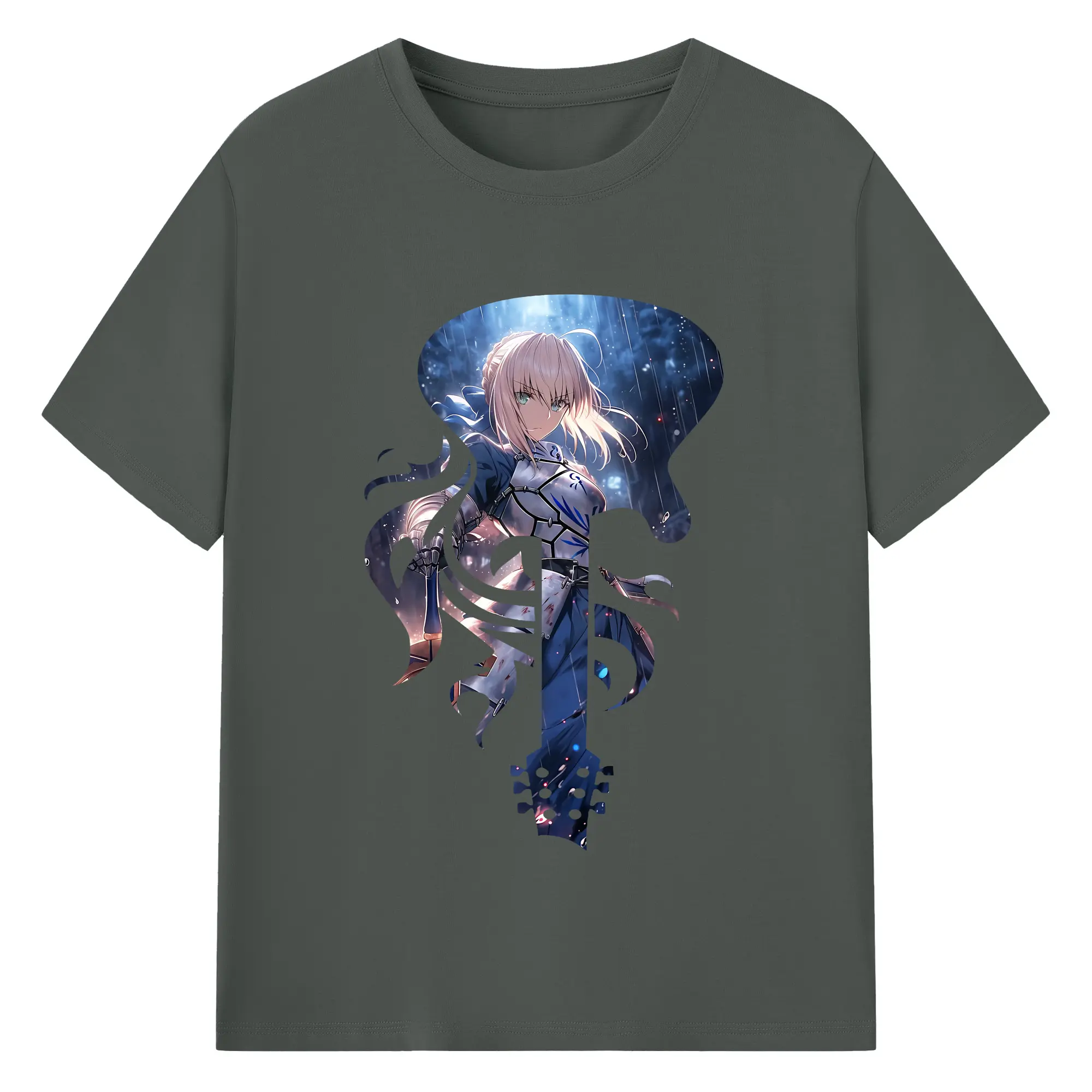 FGO グッズ,アルトリア - 綿100% ヴィンテージ風 半袖Tシャツ ・ 背面プリント ・ 柔らか肌触り ・ 通気性 快適 ・ スポーツ カジュアル 外出用