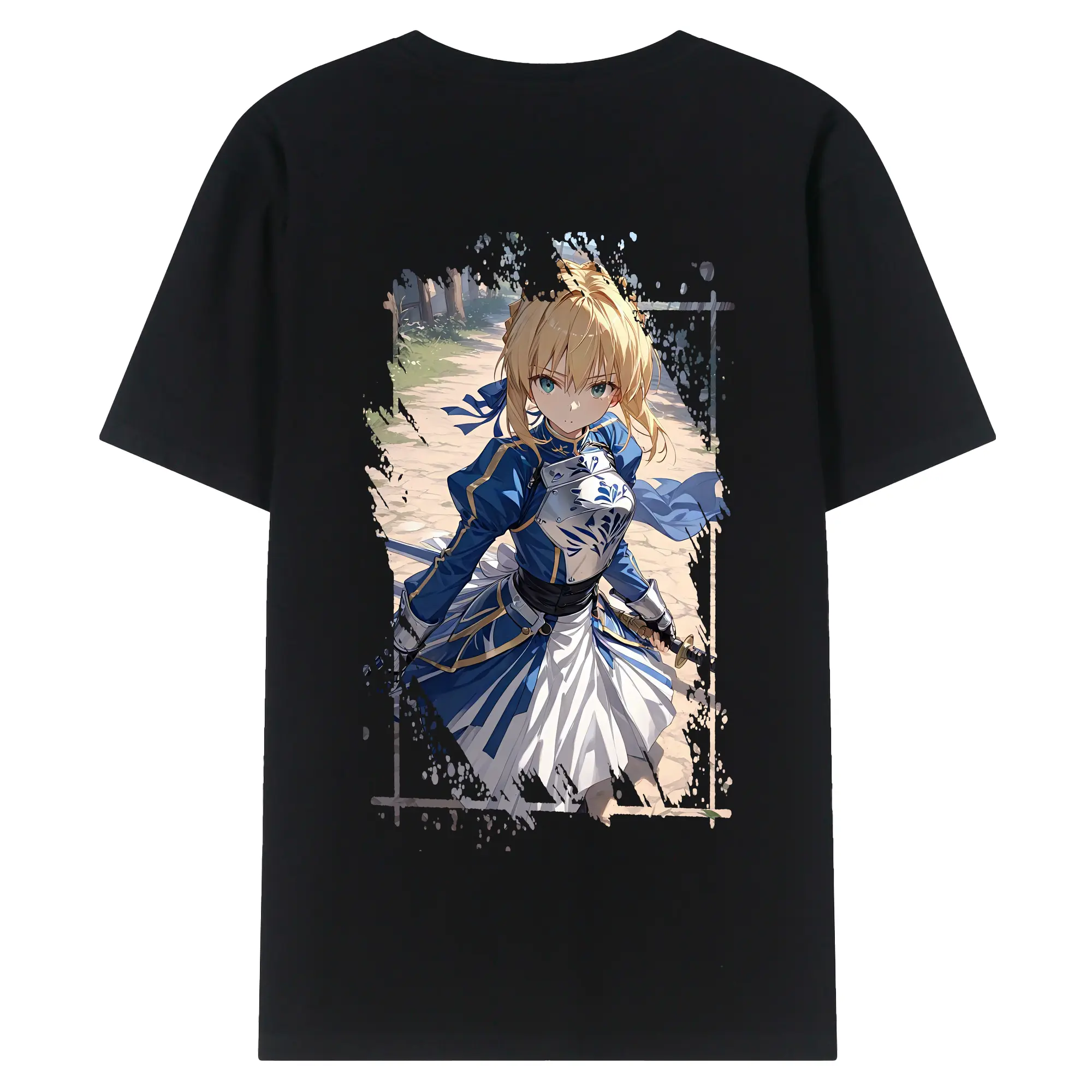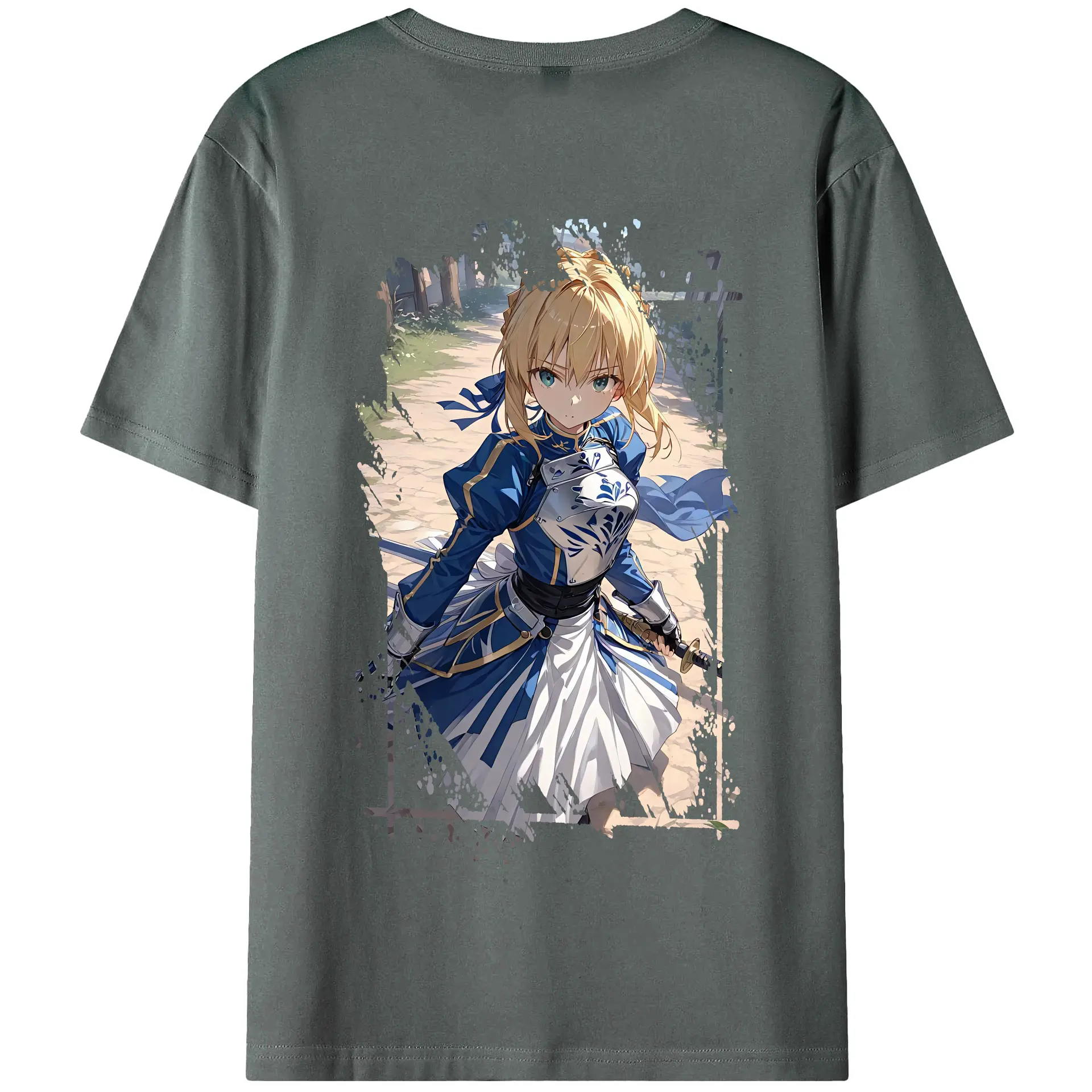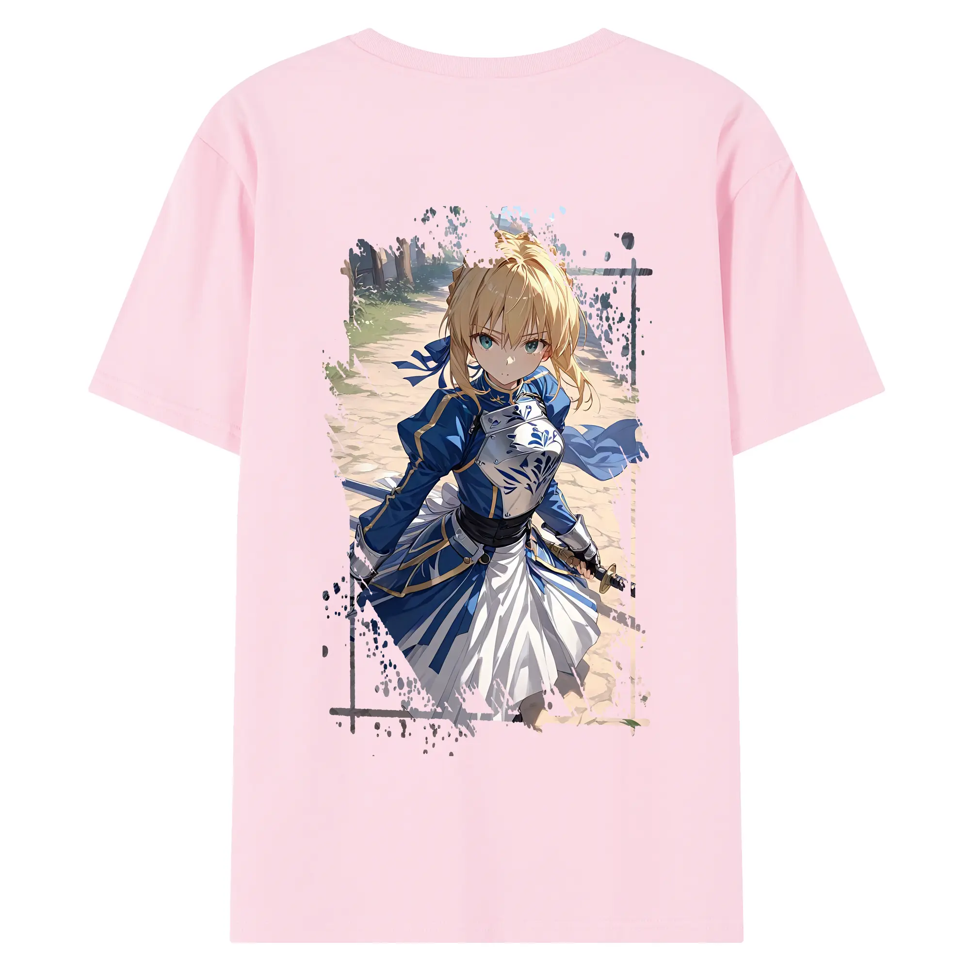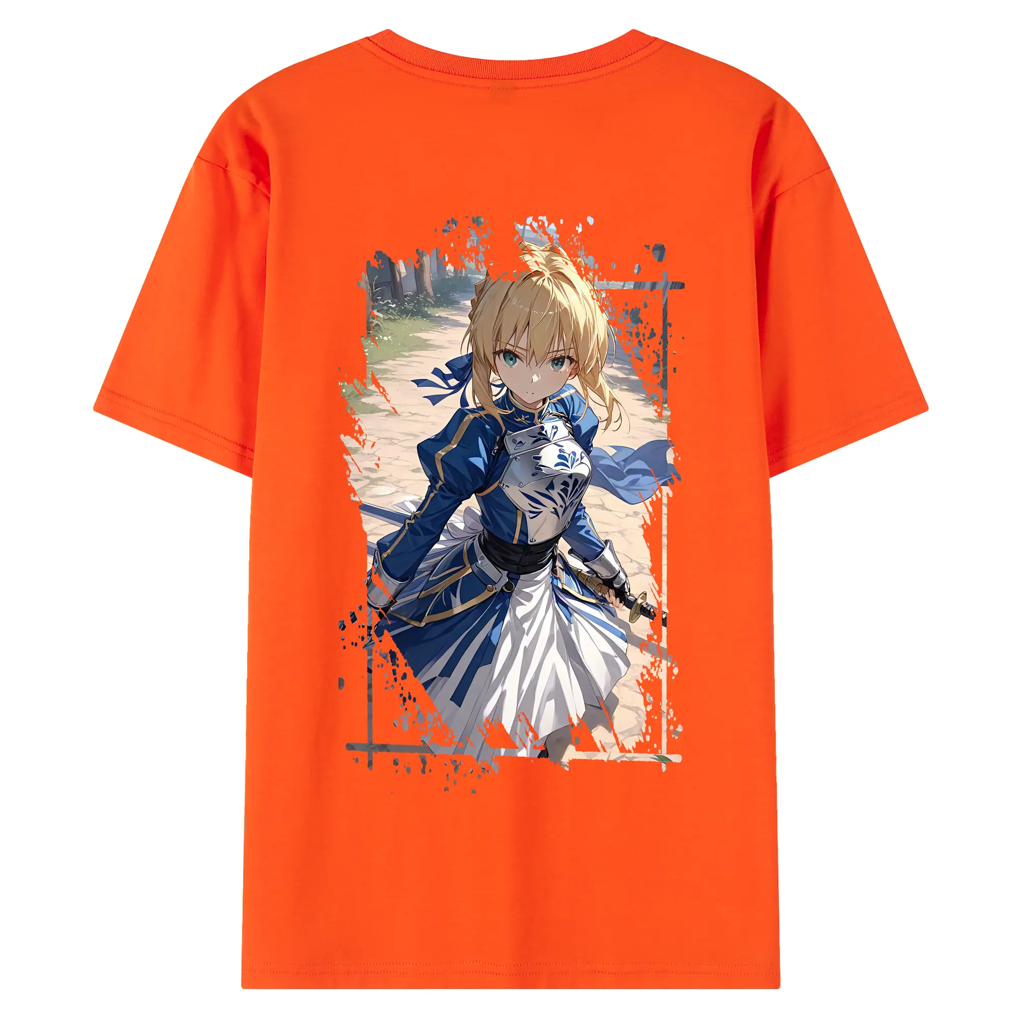 FGO グッズ,アルトリア - 綿100% ヴィンテージ風 半袖Tシャツ ・ 背面プリント ・ 柔らか肌触り ・ 通気性 快適 ・ スポーツ カジュアル 外出用