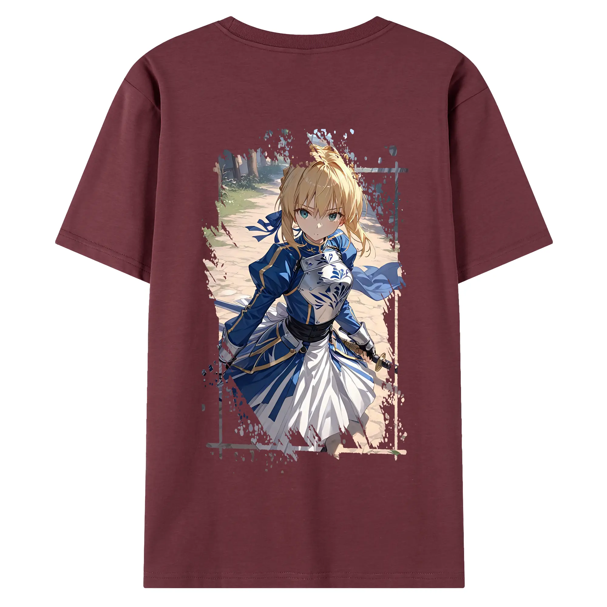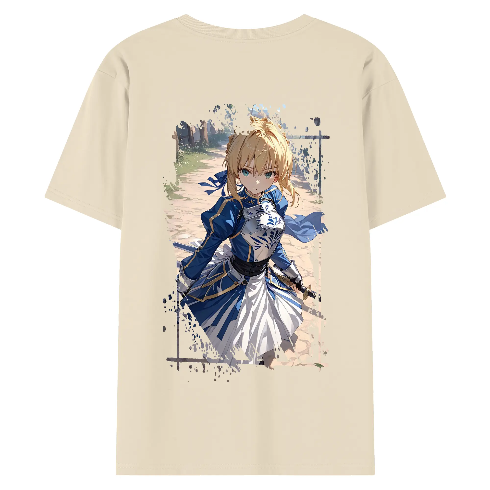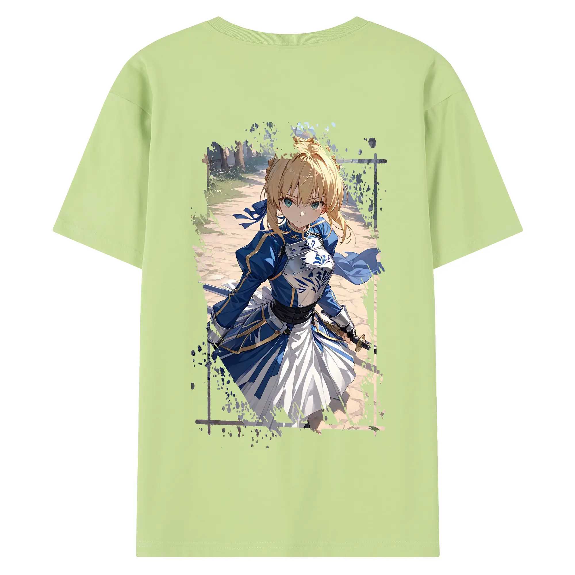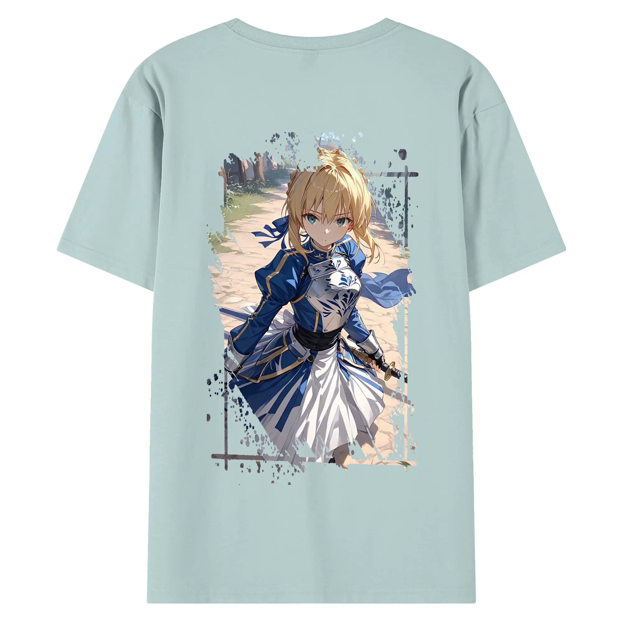 FGO グッズ,アルトリア - 綿100% ヴィンテージ風 半袖Tシャツ ・ 背面プリント ・ 柔らか肌触り ・ 通気性 快適 ・ スポーツ カジュアル 外出用