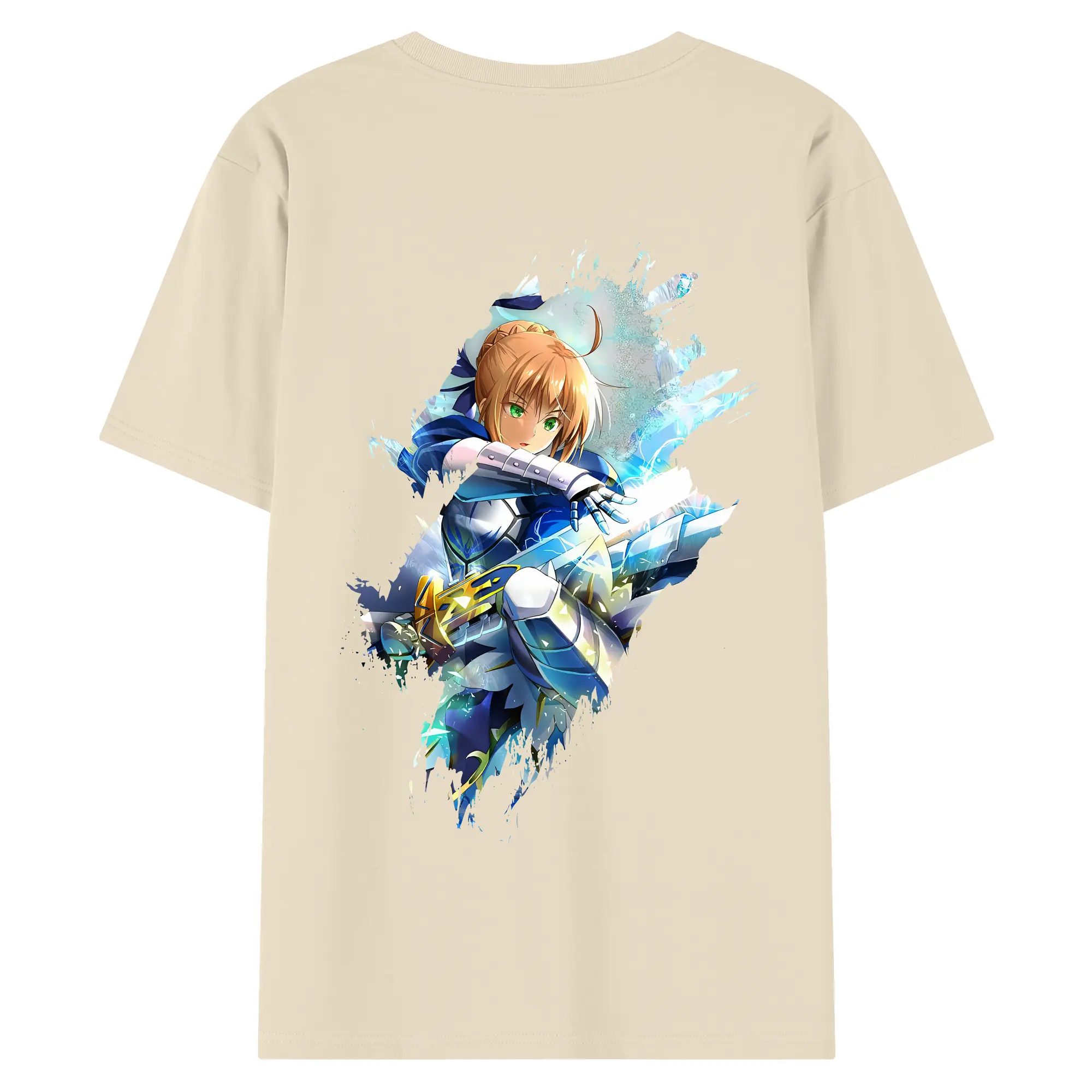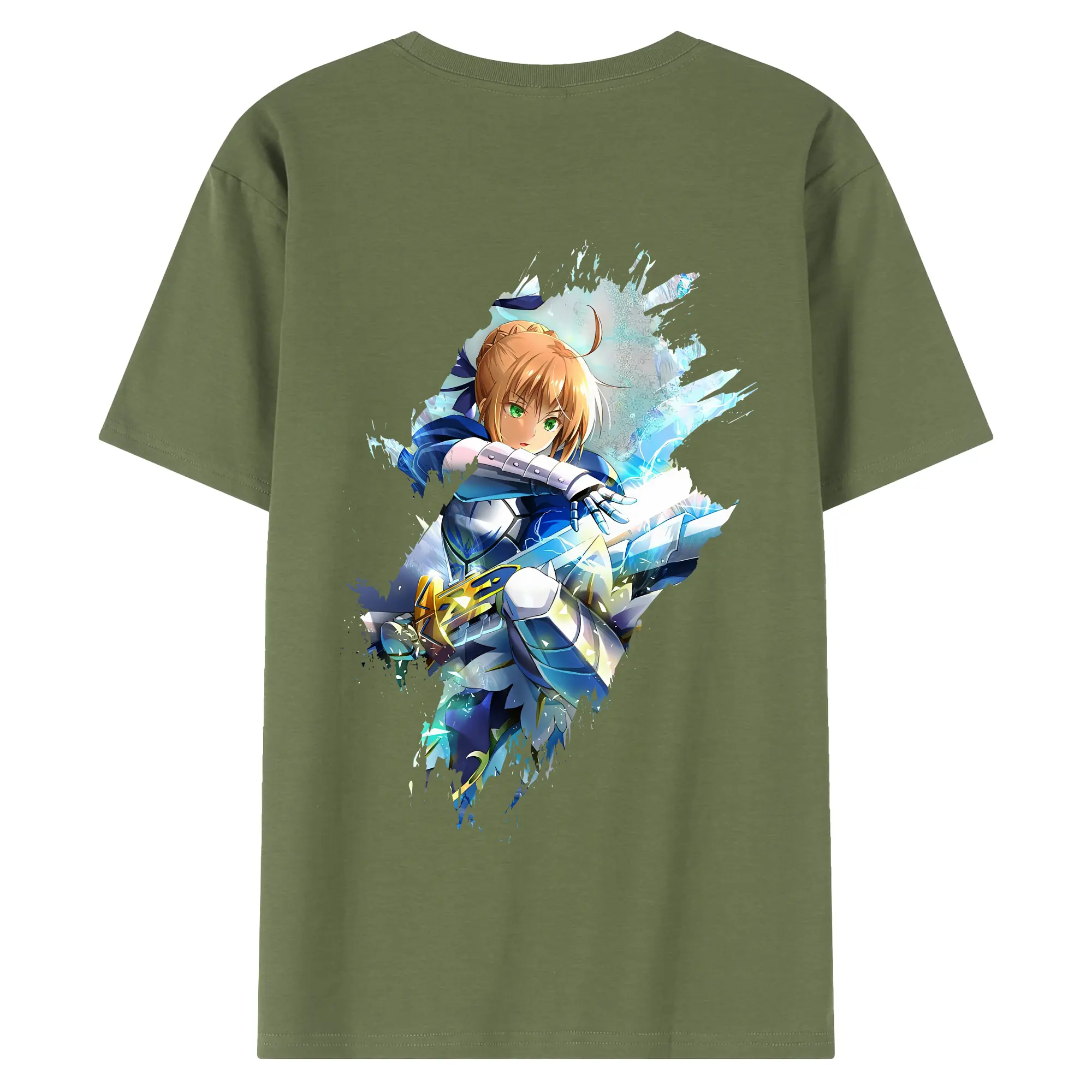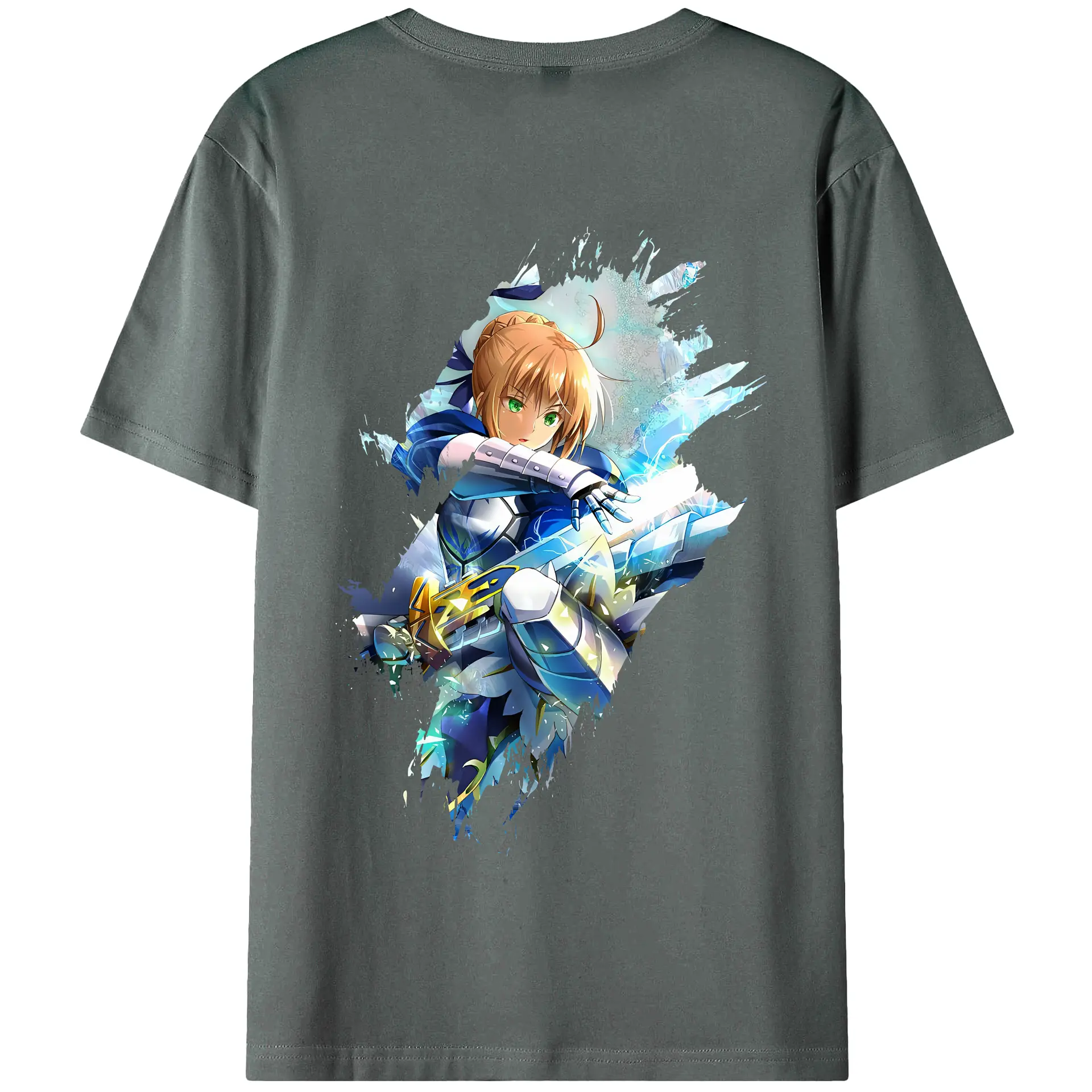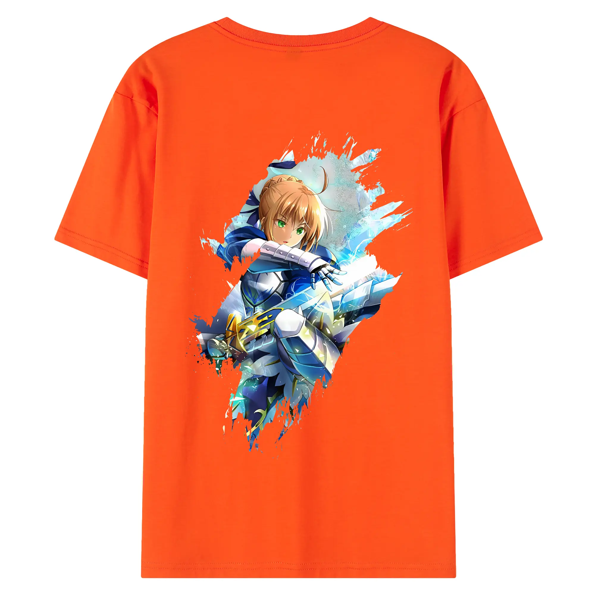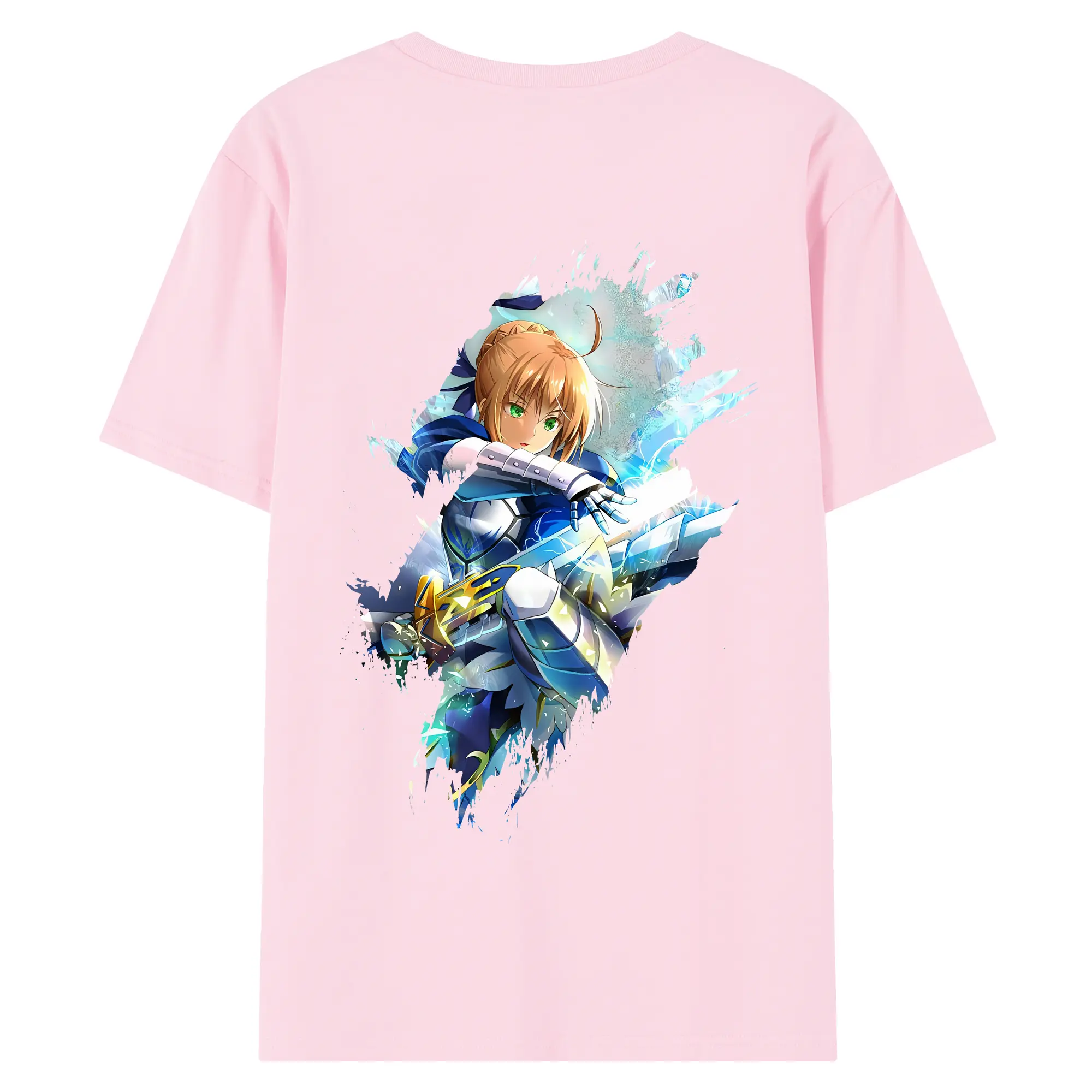 FGO グッズ,アルトリア - 綿100% ヴィンテージ風 半袖Tシャツ ・ 背面プリント ・ 柔らか肌触り ・ 通気性 快適 ・ スポーツ カジュアル 外出用