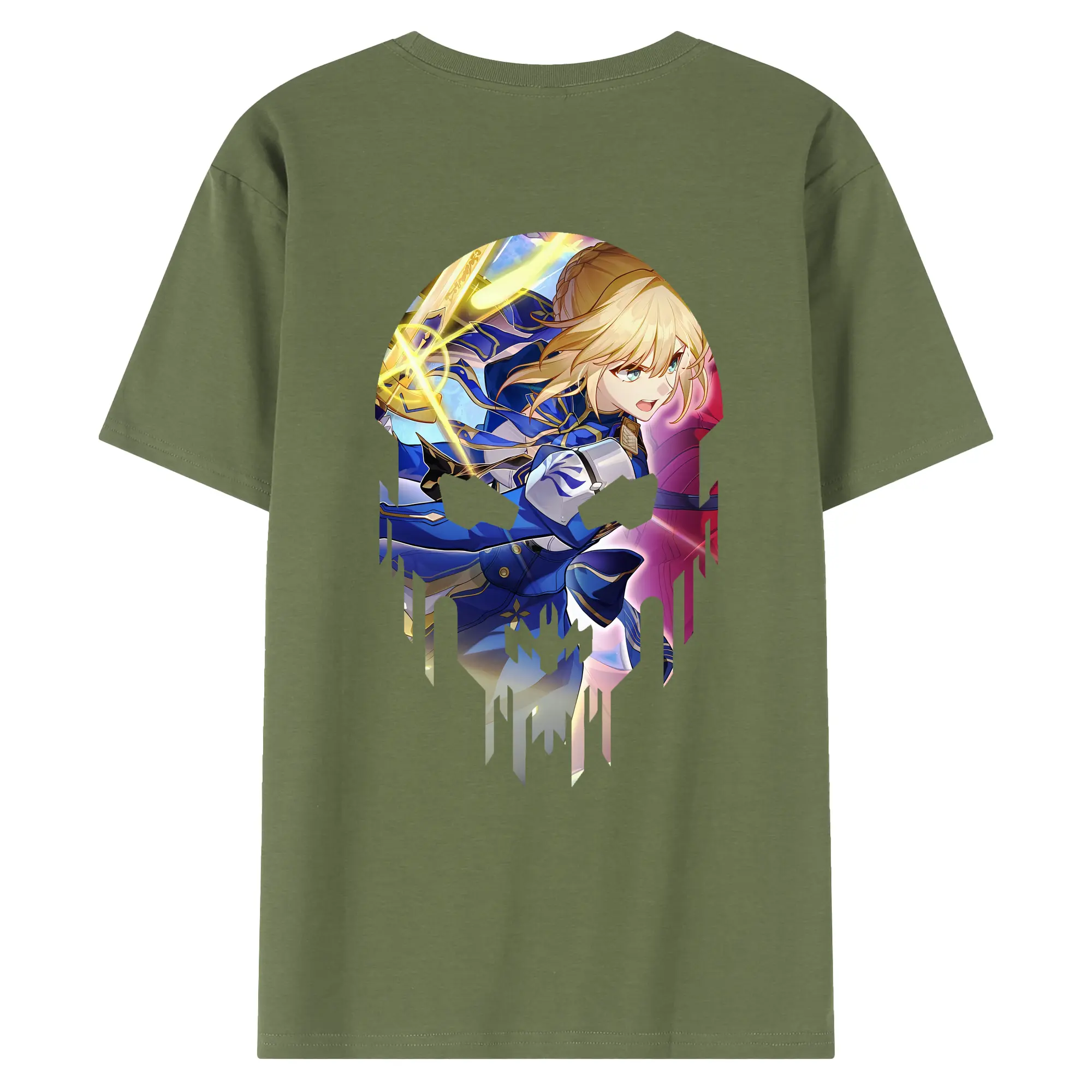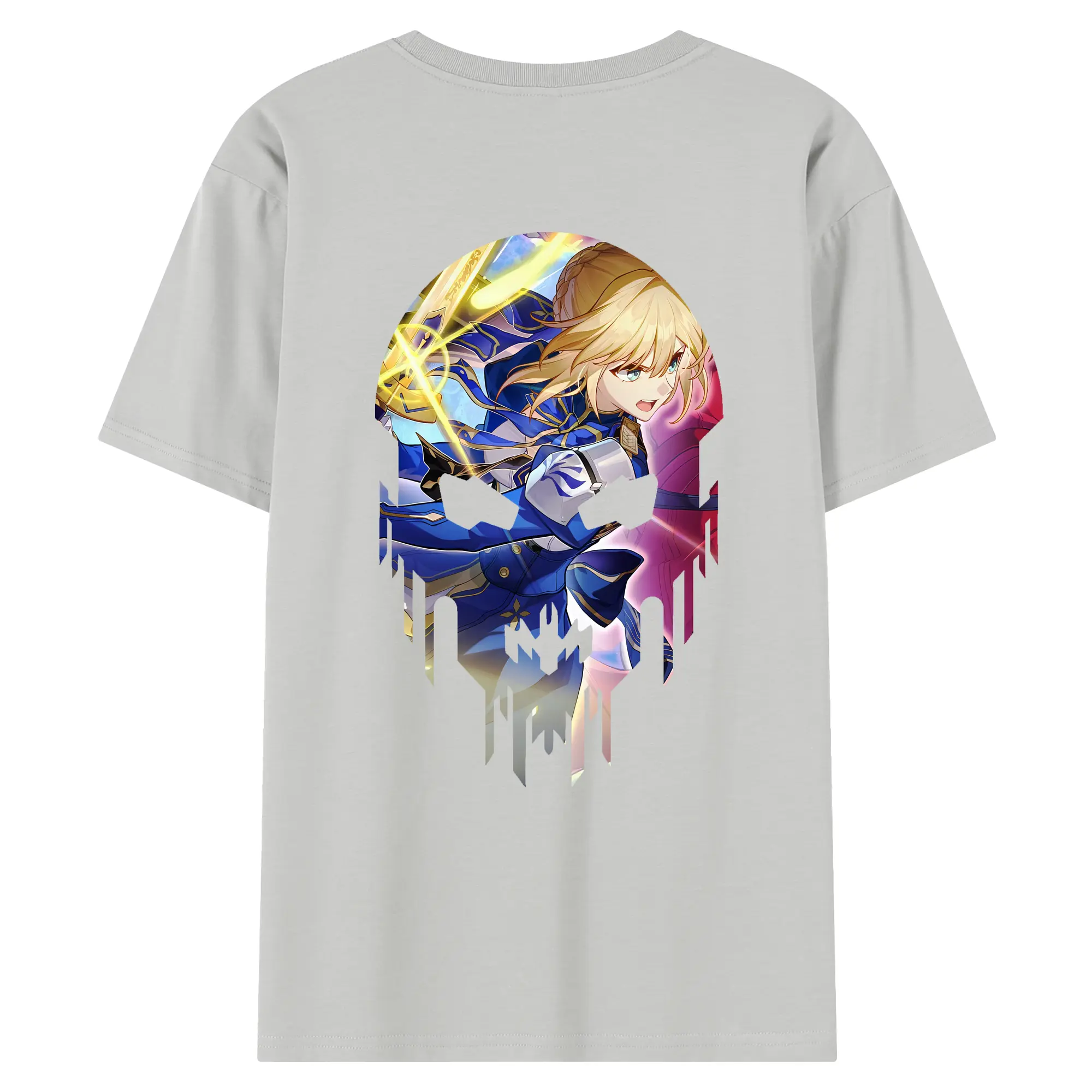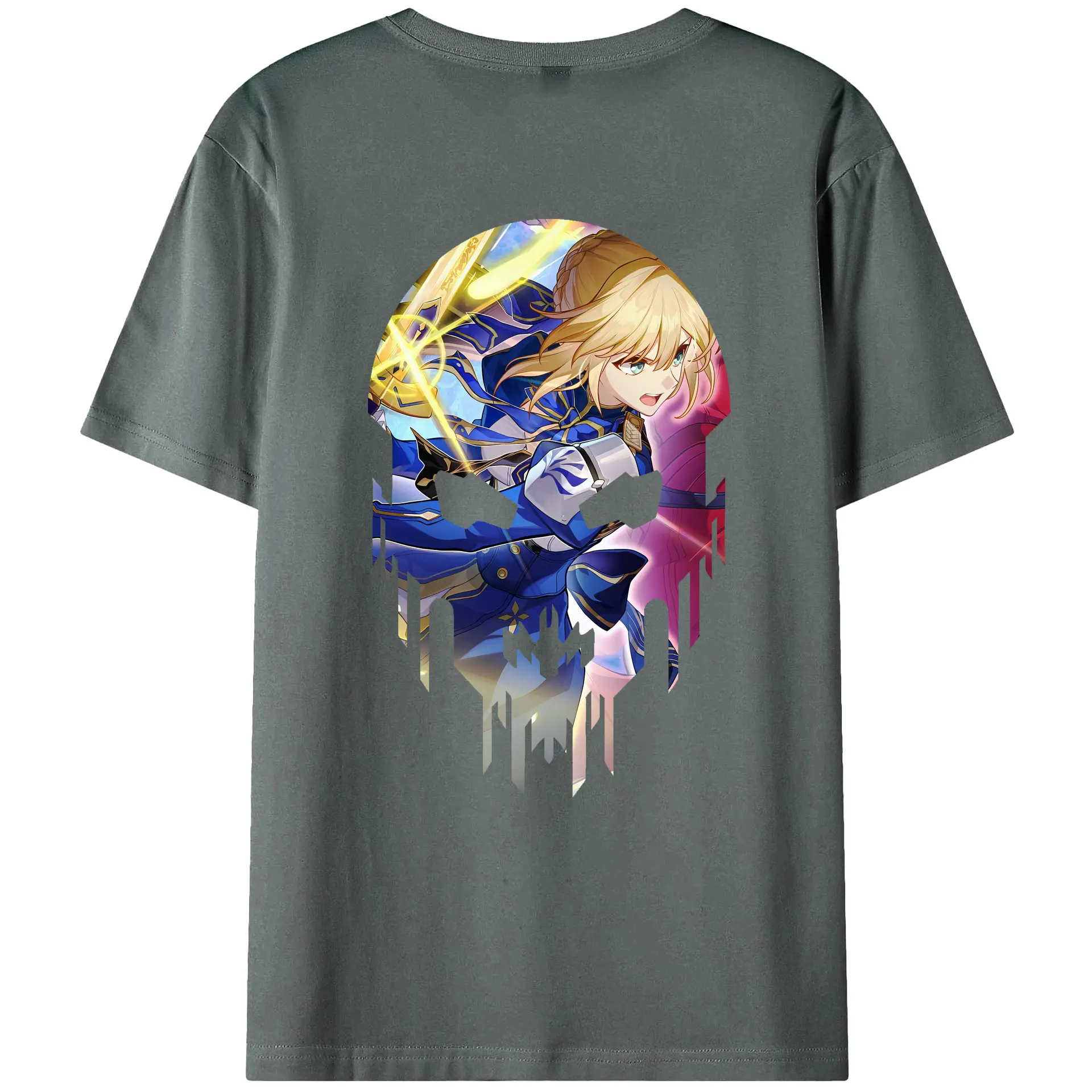 FGO グッズ,アルトリア - 綿100% ヴィンテージ風 半袖Tシャツ ・ 背面プリント ・ 柔らか肌触り ・ 通気性 快適 ・ スポーツ カジュアル 外出用
