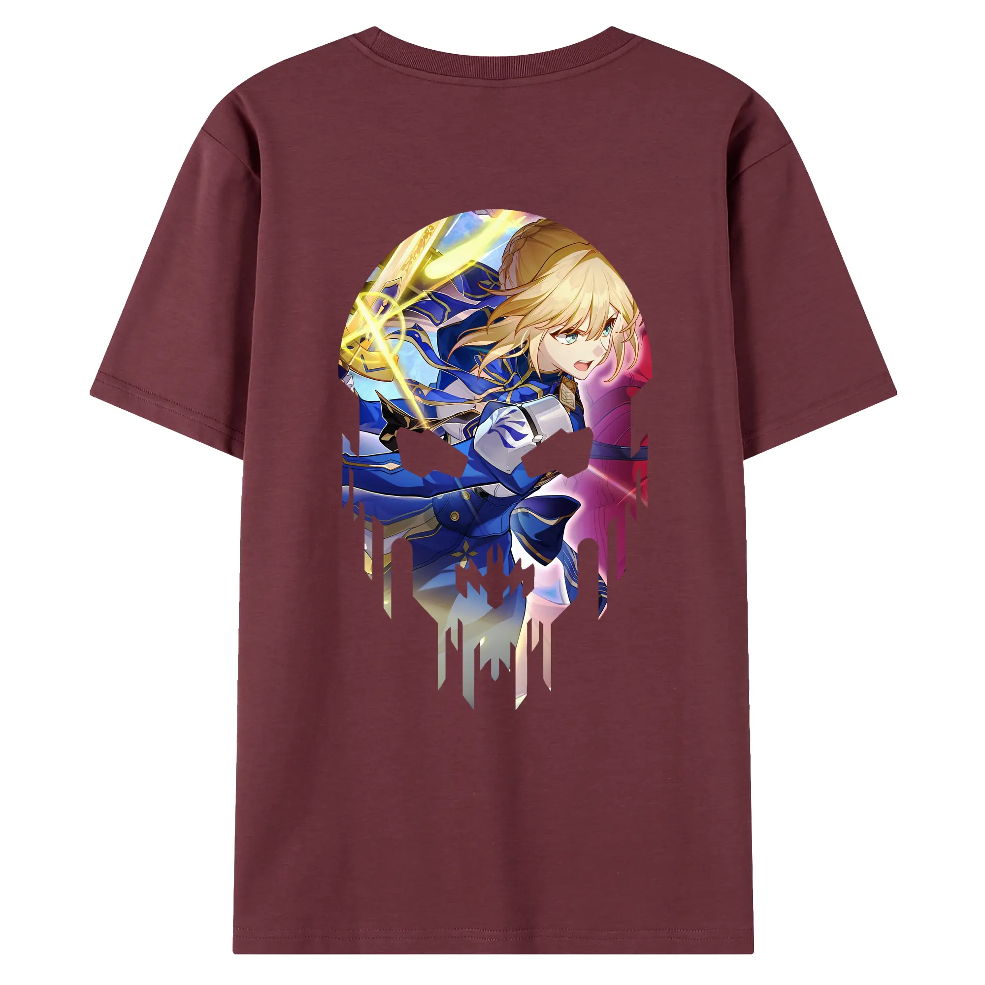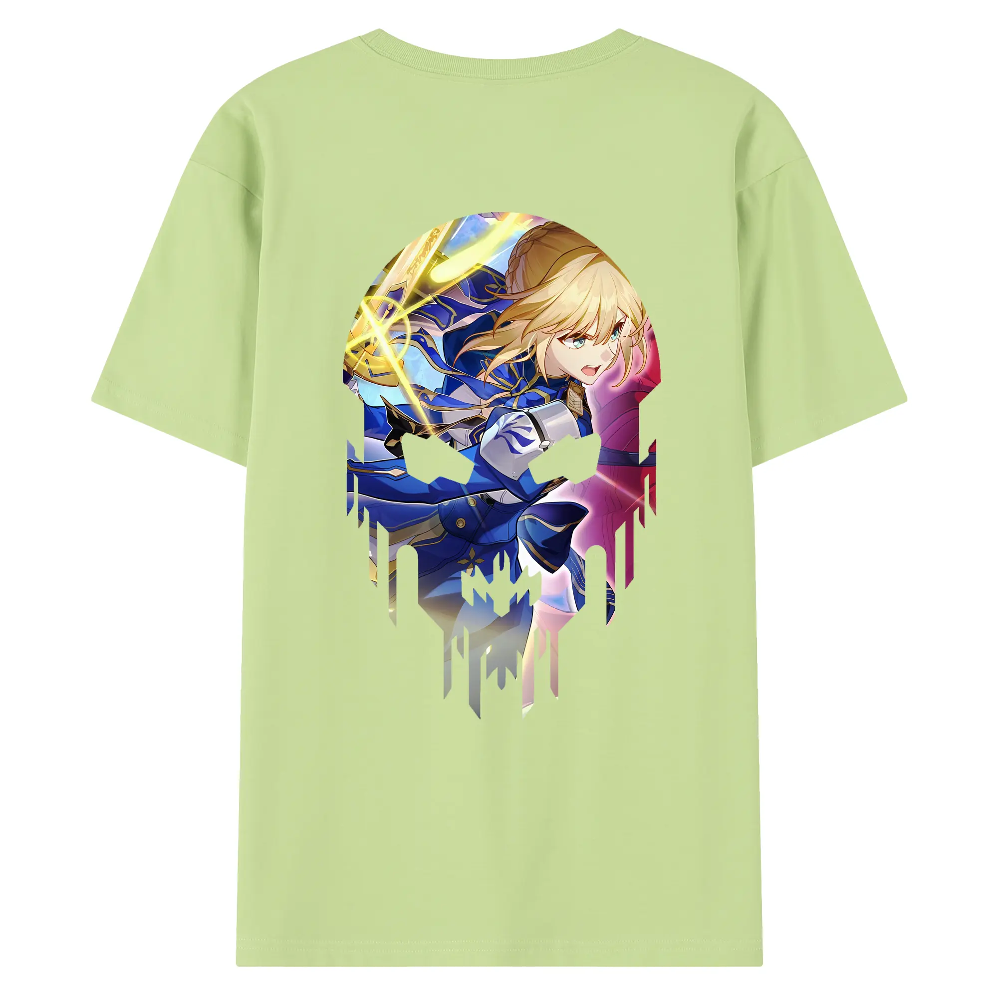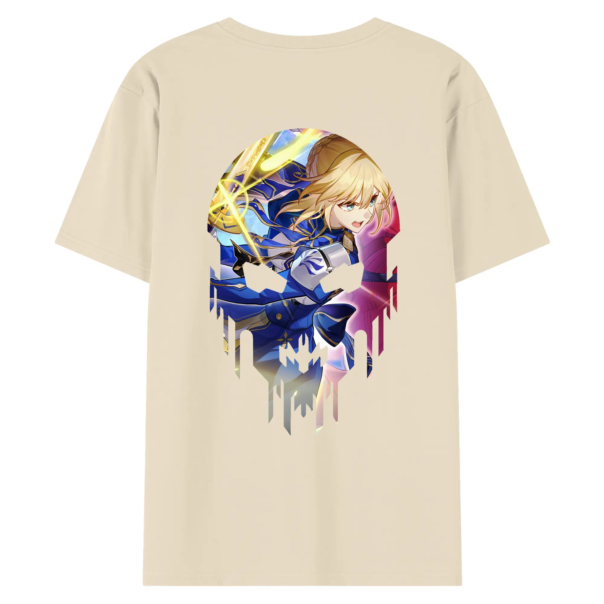 FGO グッズ,アルトリア - 綿100% ヴィンテージ風 半袖Tシャツ ・ 背面プリント ・ 柔らか肌触り ・ 通気性 快適 ・ スポーツ カジュアル 外出用
