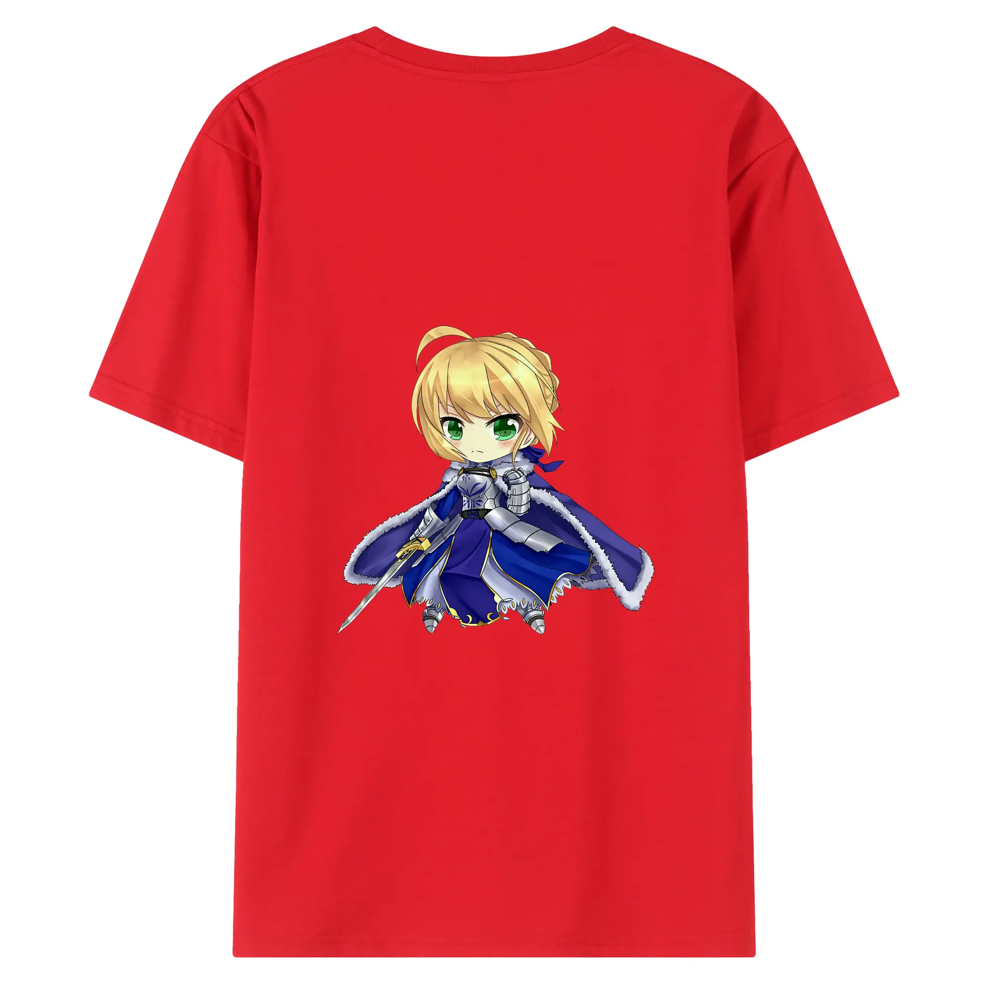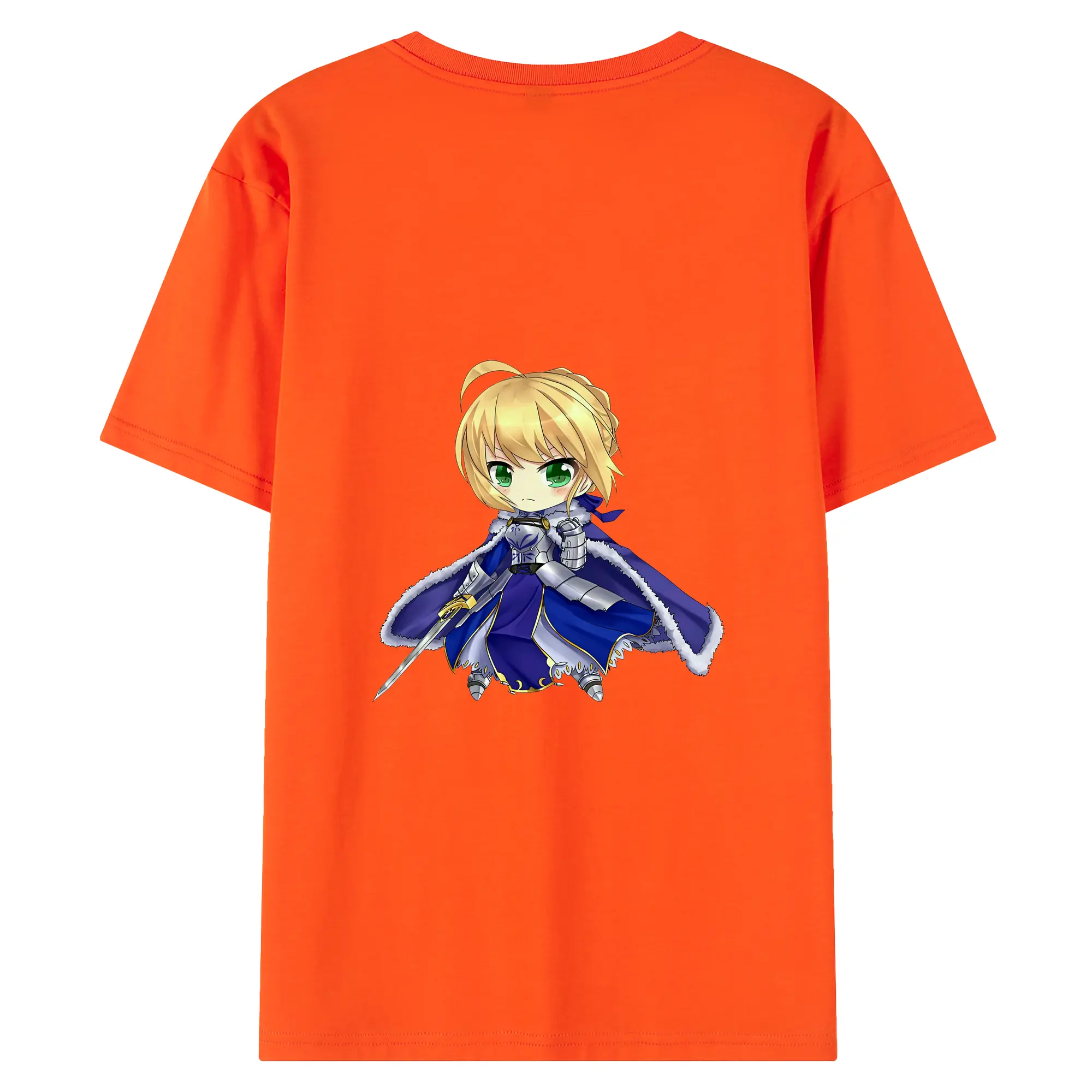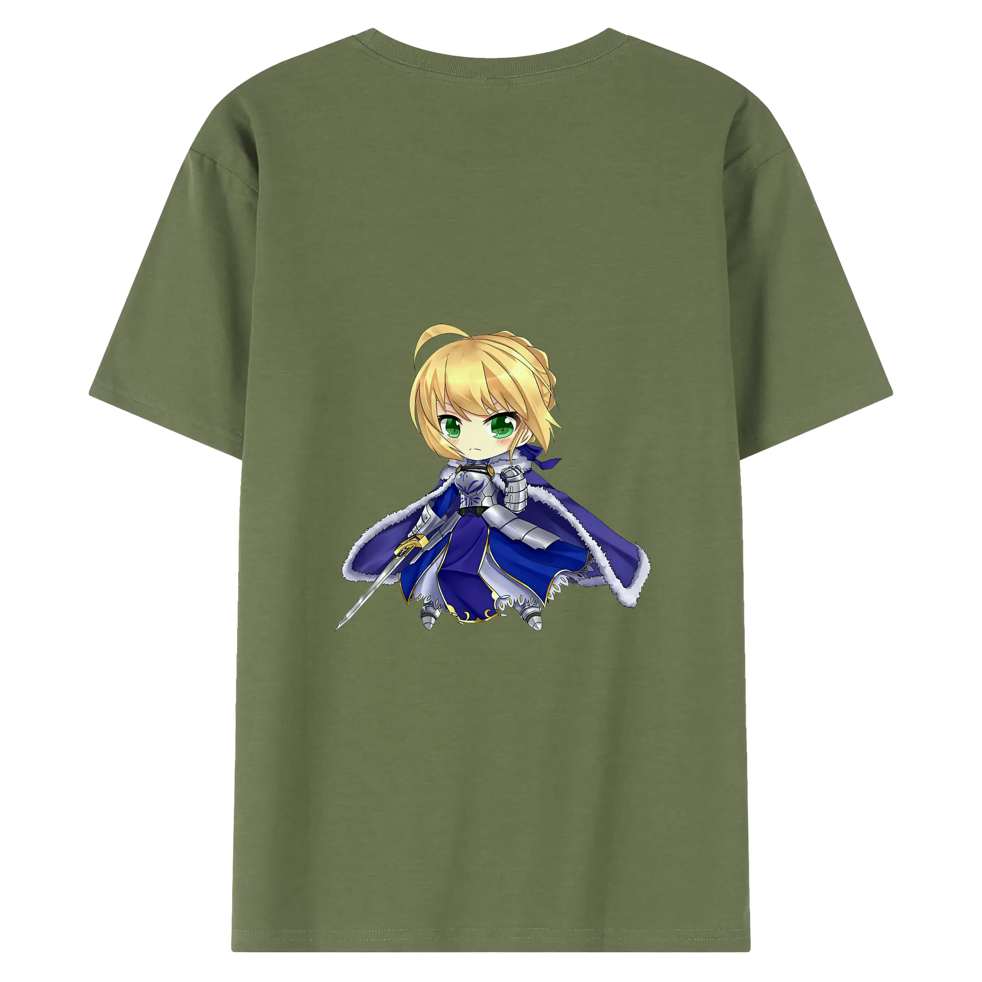FGO グッズ,アルトリア - 綿100% ヴィンテージ風 半袖Tシャツ ・ 背面プリント ・ 柔らか肌触り ・ 通気性 快適 ・ スポーツ カジュアル 外出用