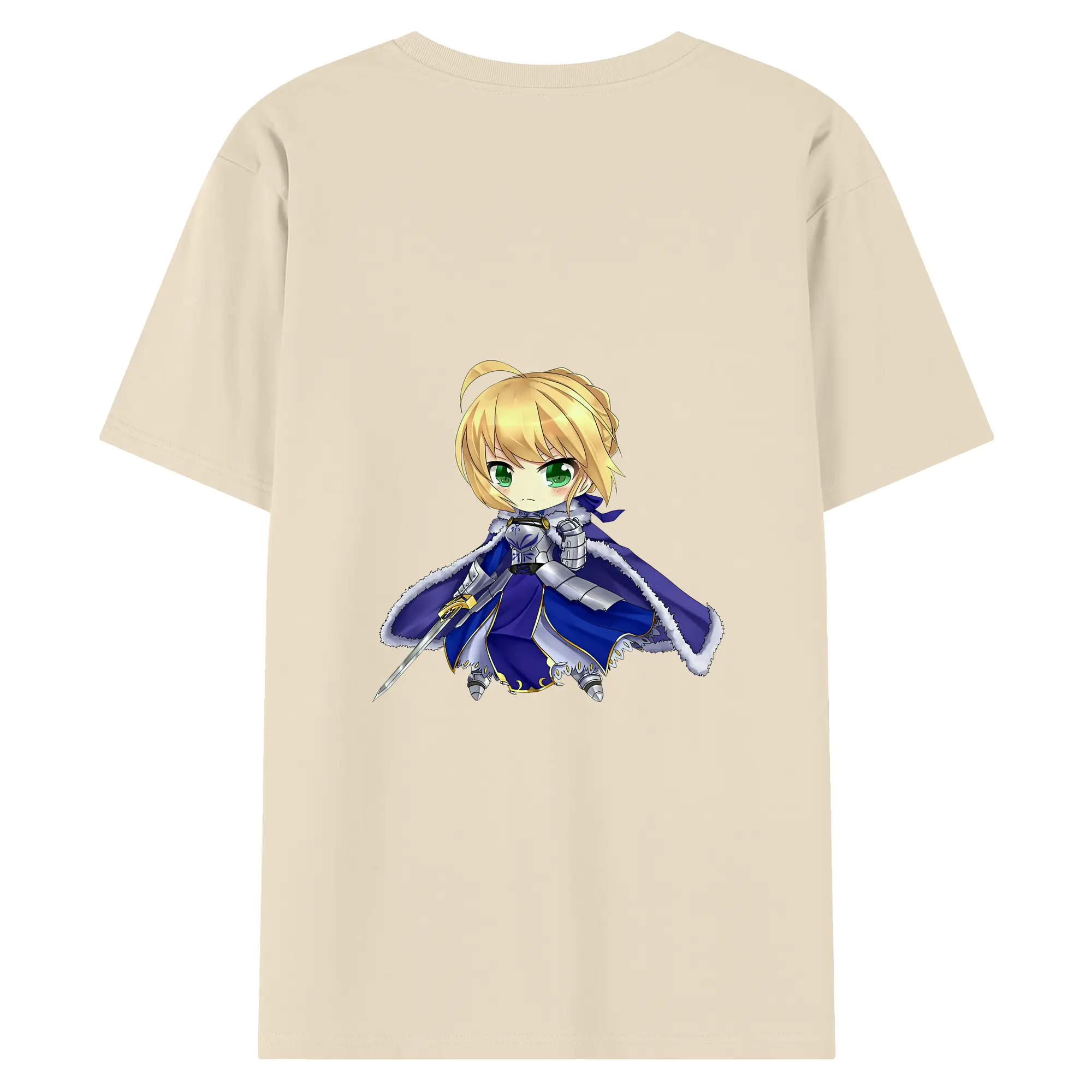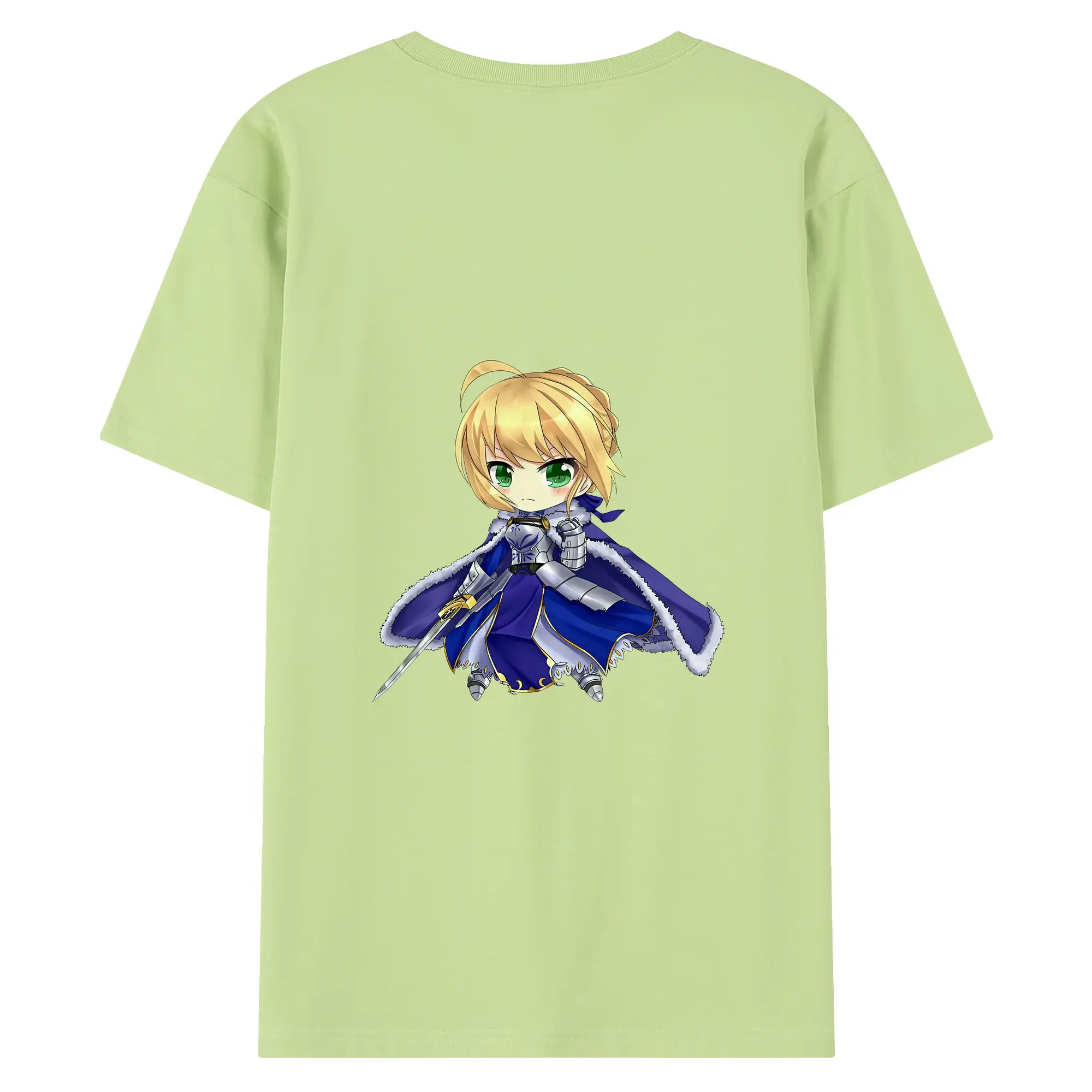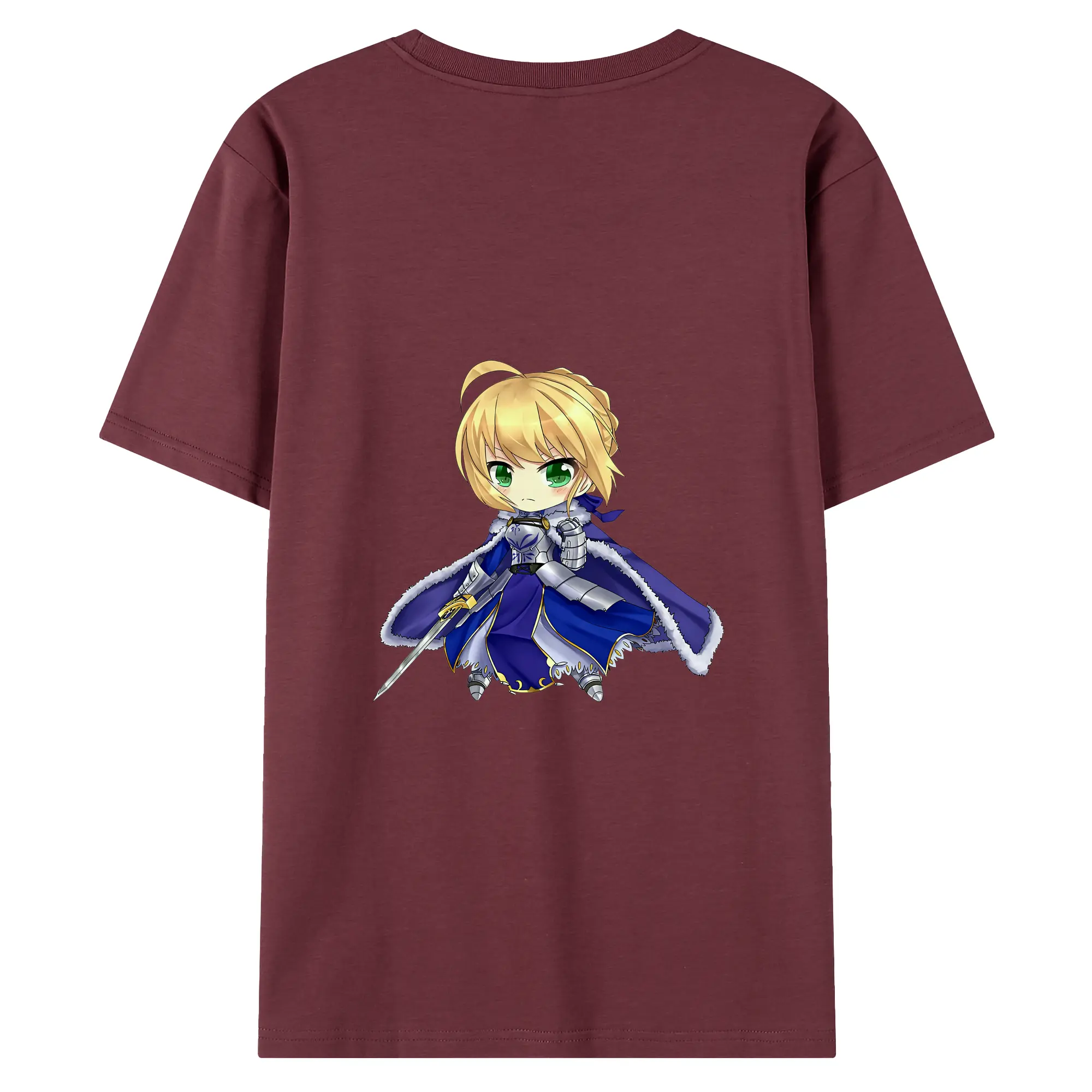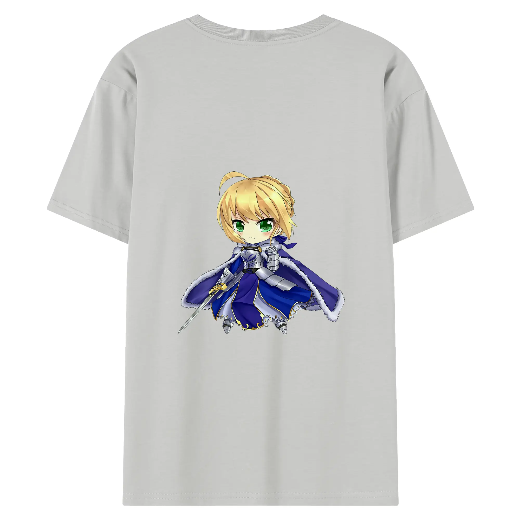 FGO グッズ,アルトリア - 綿100% ヴィンテージ風 半袖Tシャツ ・ 背面プリント ・ 柔らか肌触り ・ 通気性 快適 ・ スポーツ カジュアル 外出用